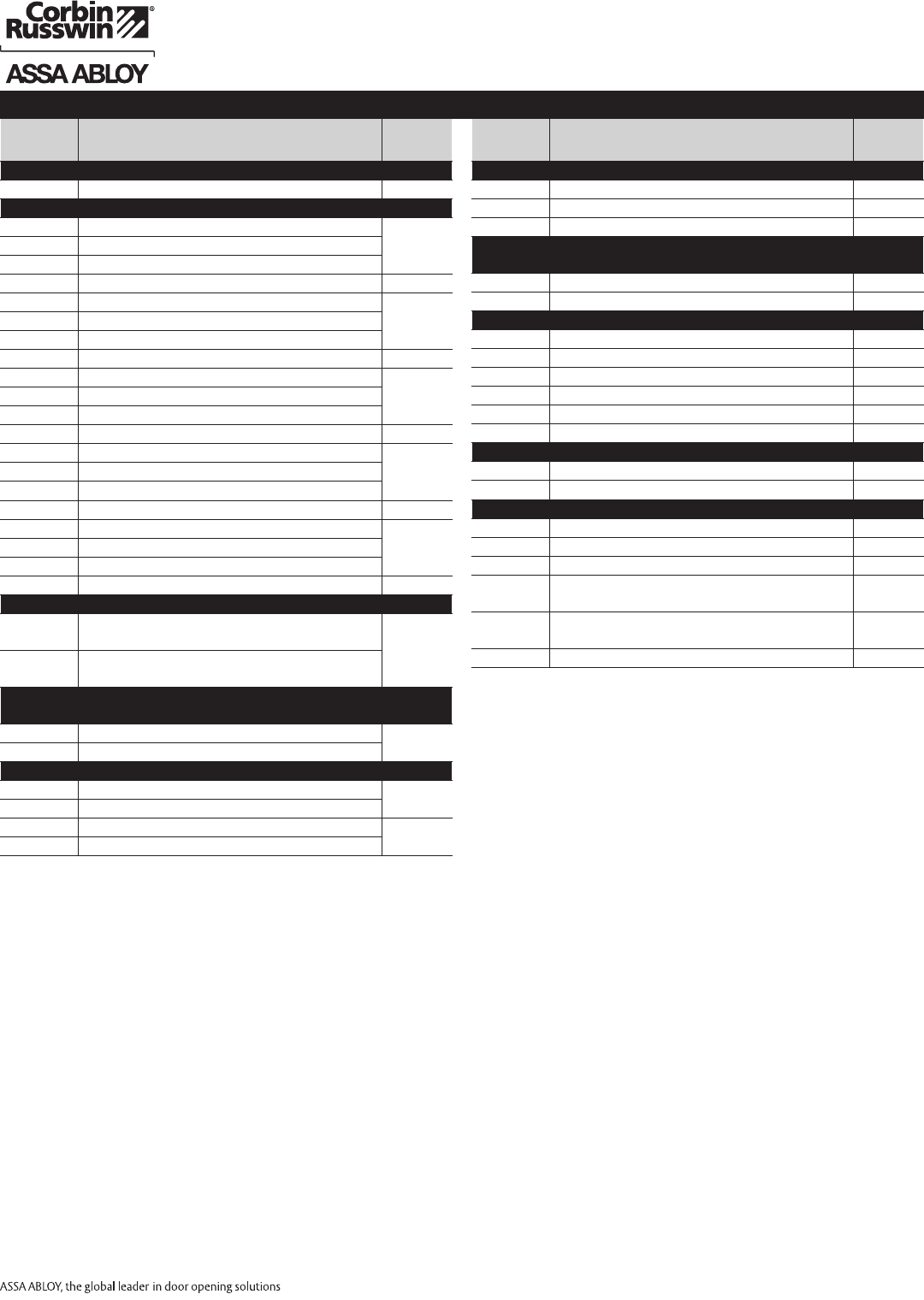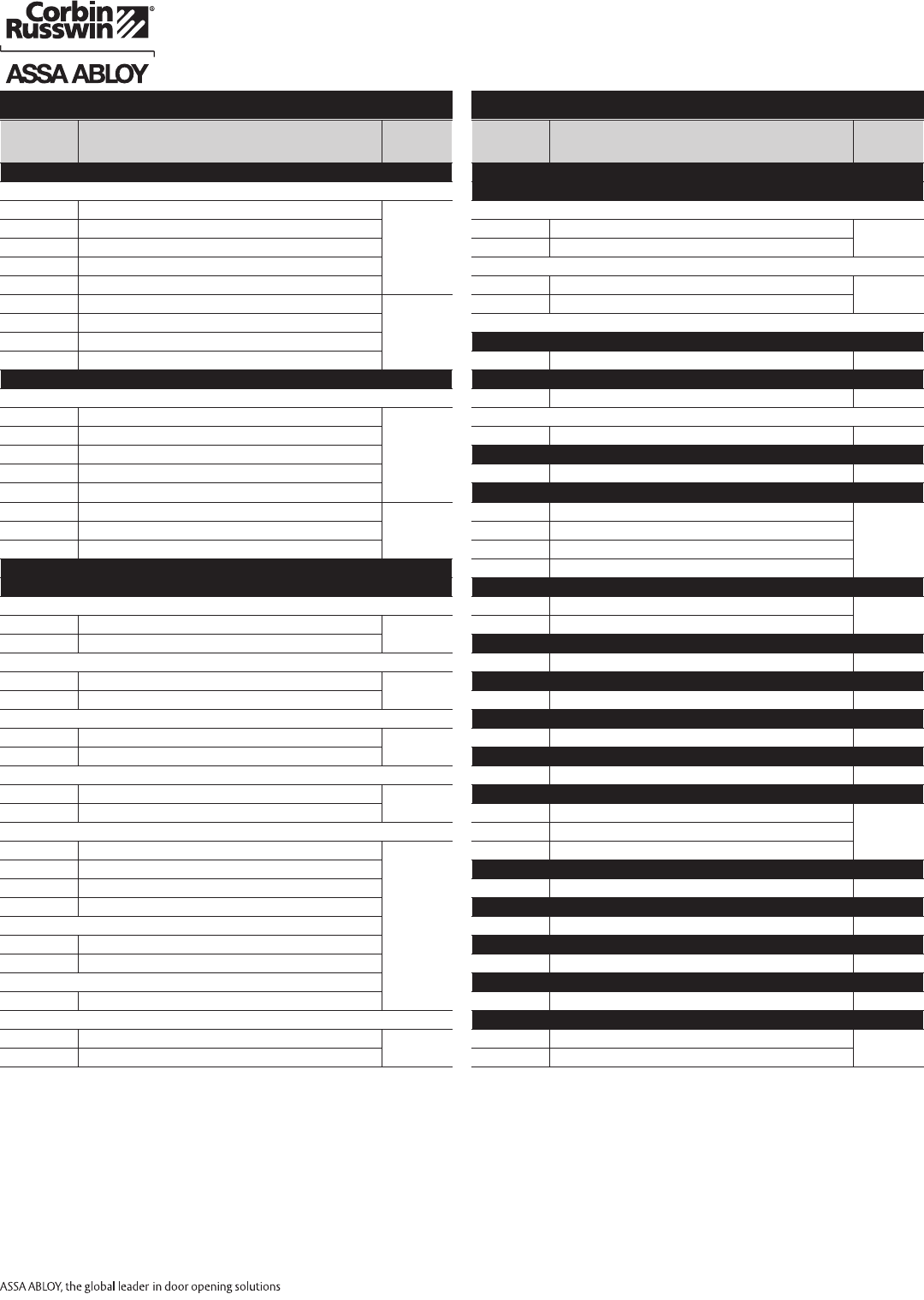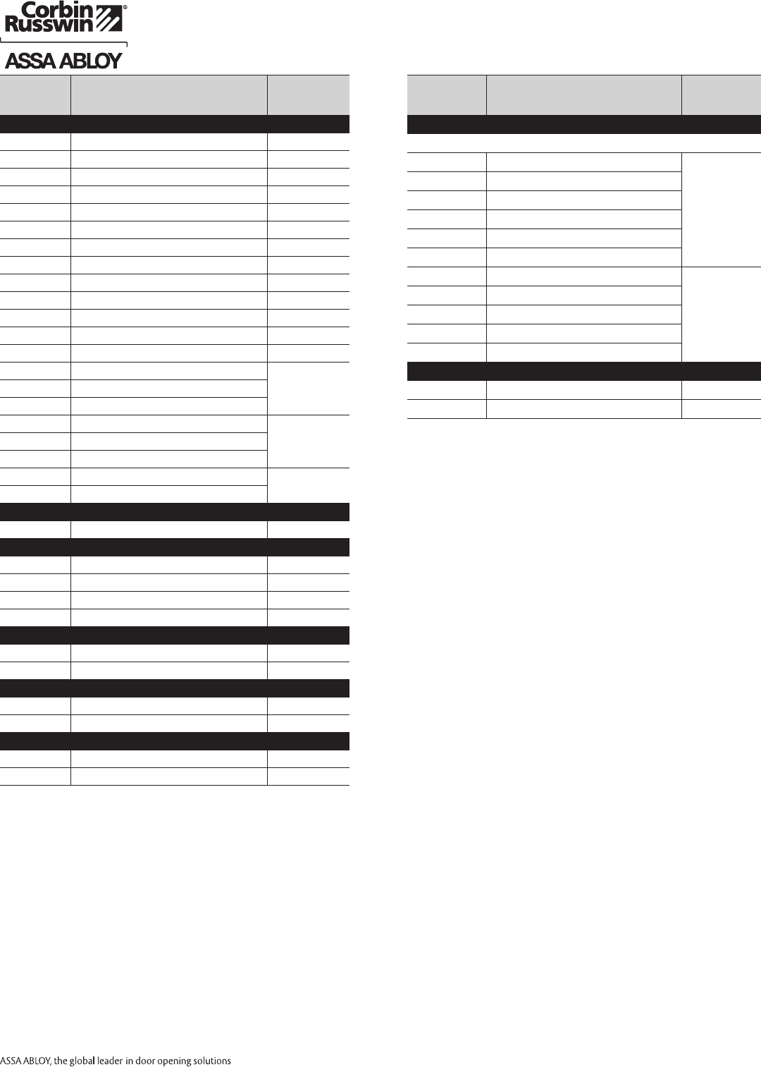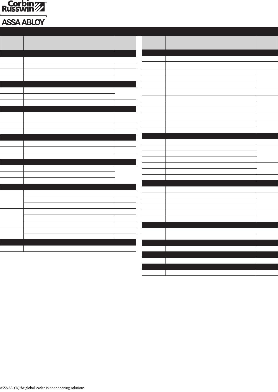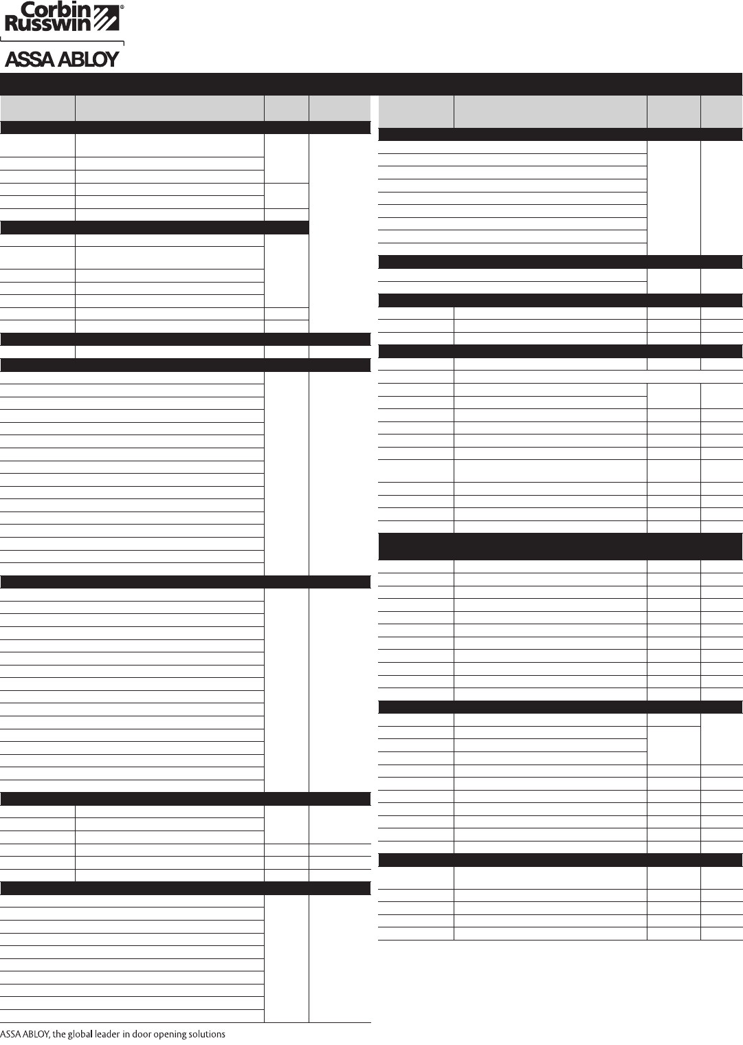 Corbin Russwin Inc., an ASSA ABLOY Group company reserves the right to change availability of any item in this catalog, its design, construction, and/or its materials.