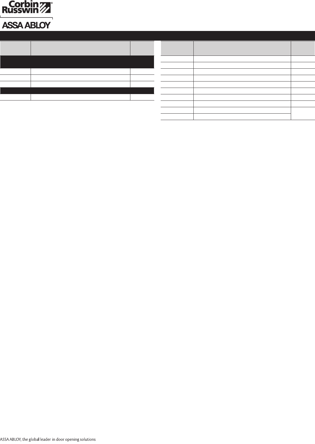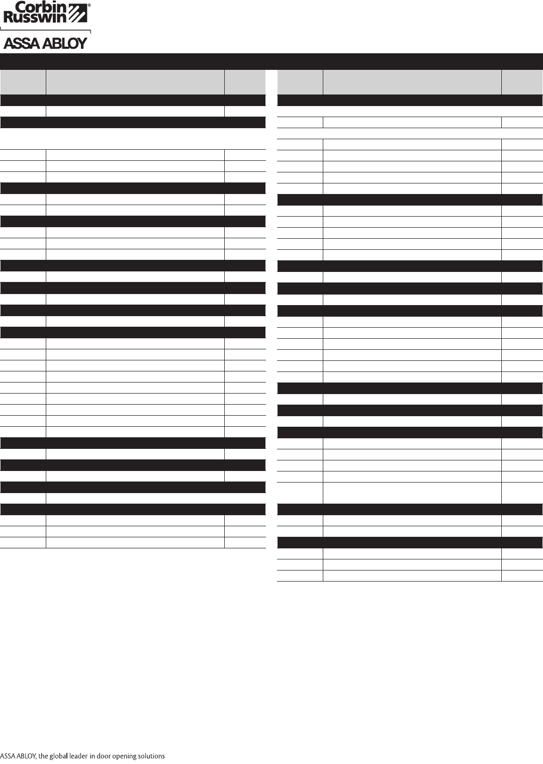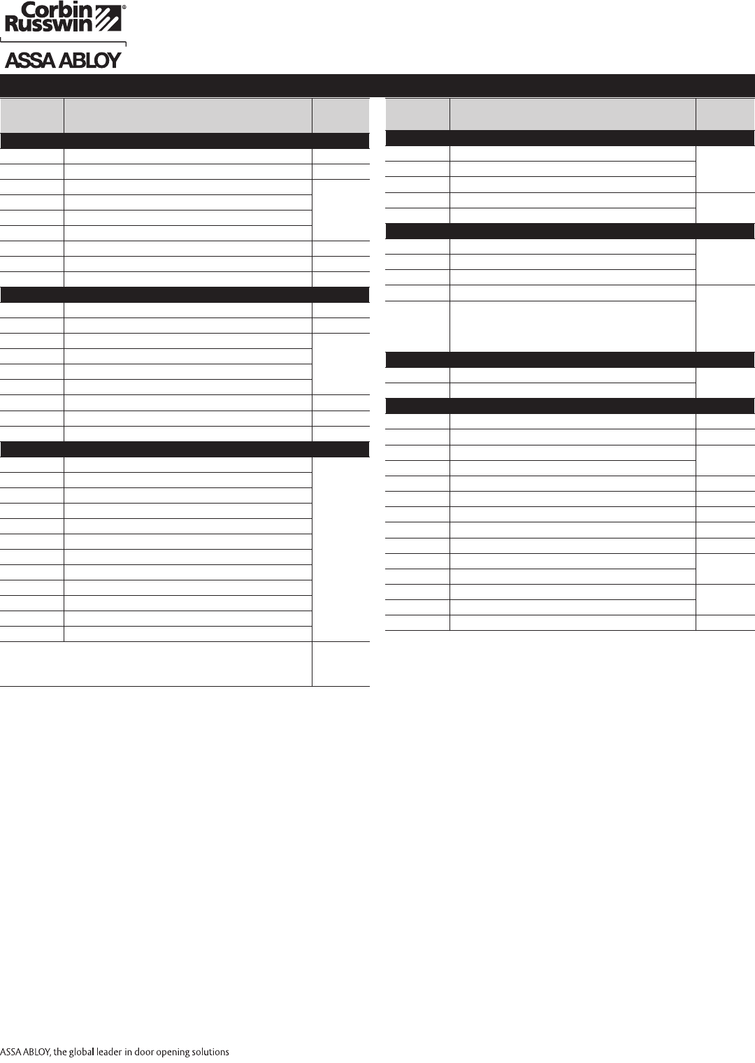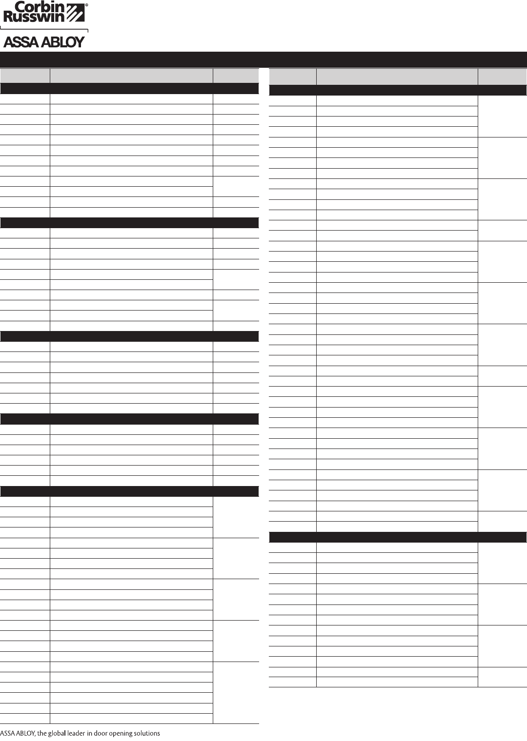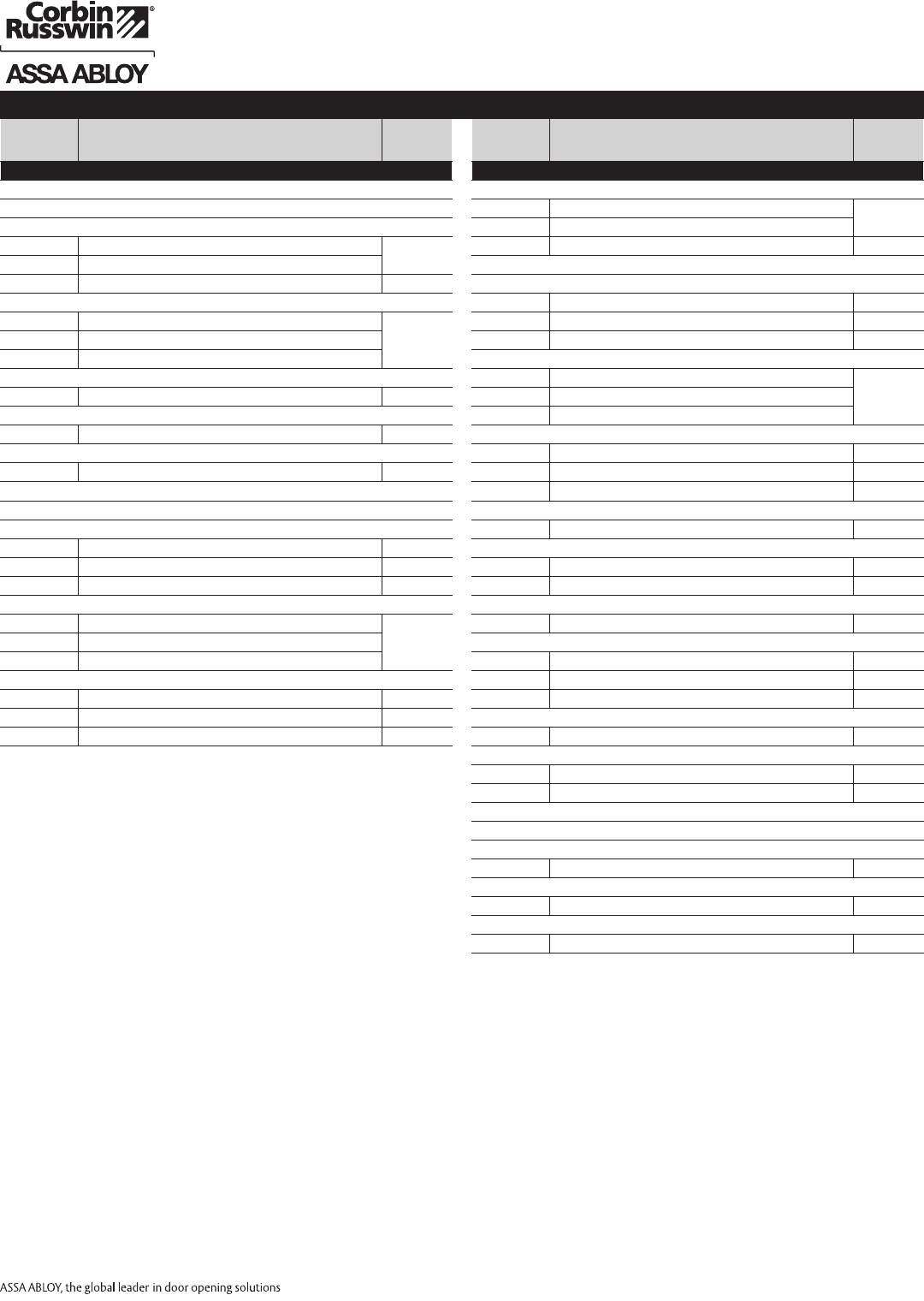 Corbin Russwin Inc., an ASSA ABLOY Group company reserves the right to change availability of any item in this catalog, its design, construction, and/or its materials.