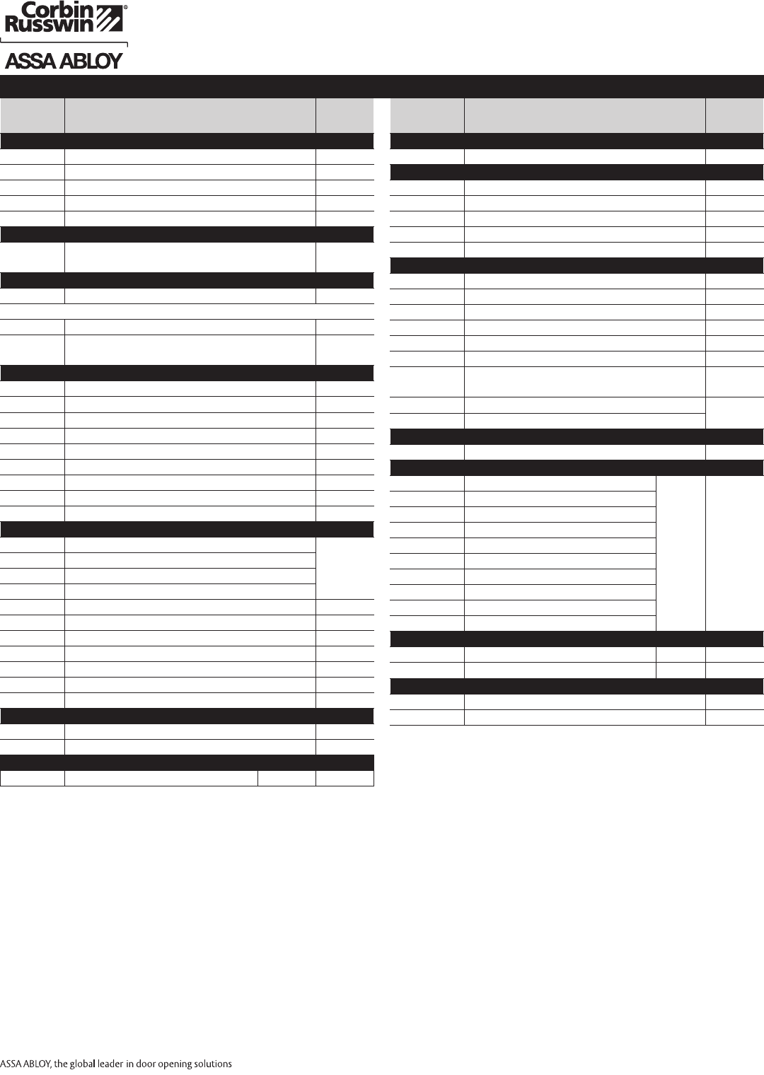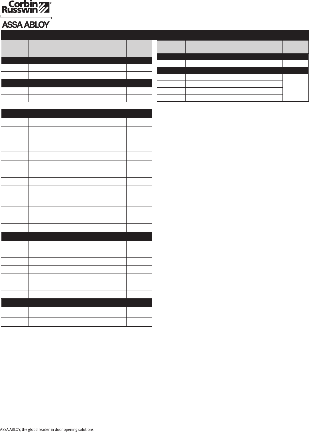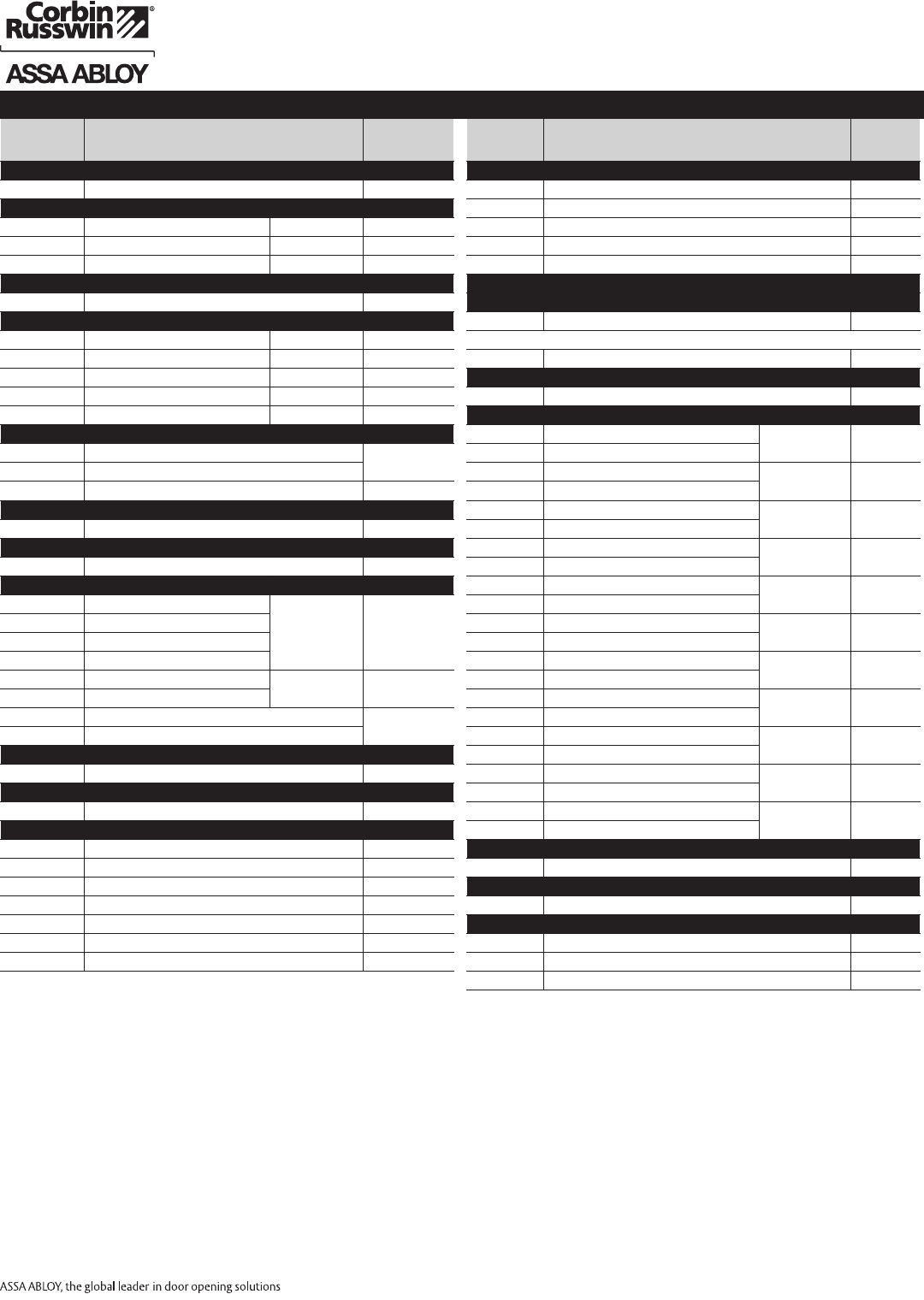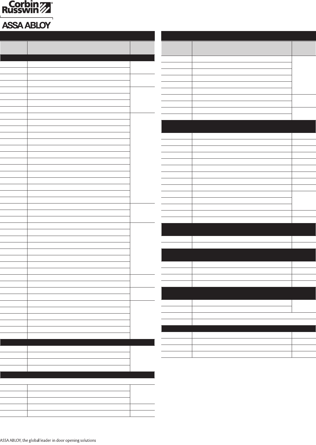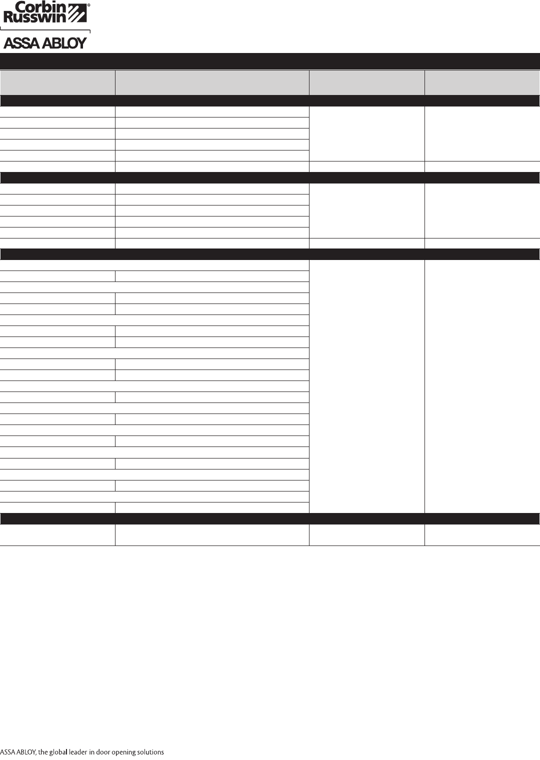 Corbin Russwin Inc., an ASSA ABLOY Group company reserves the right to change availability of any item in this catalog, its design, construction, and/or its materials.
