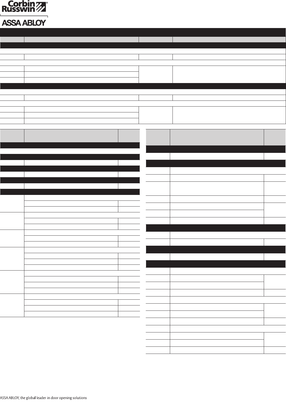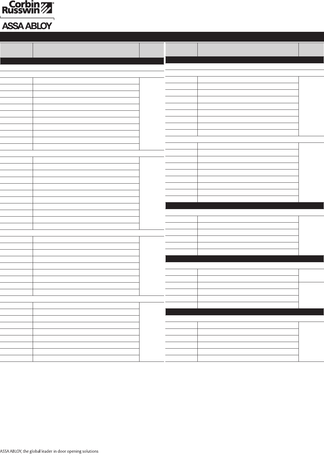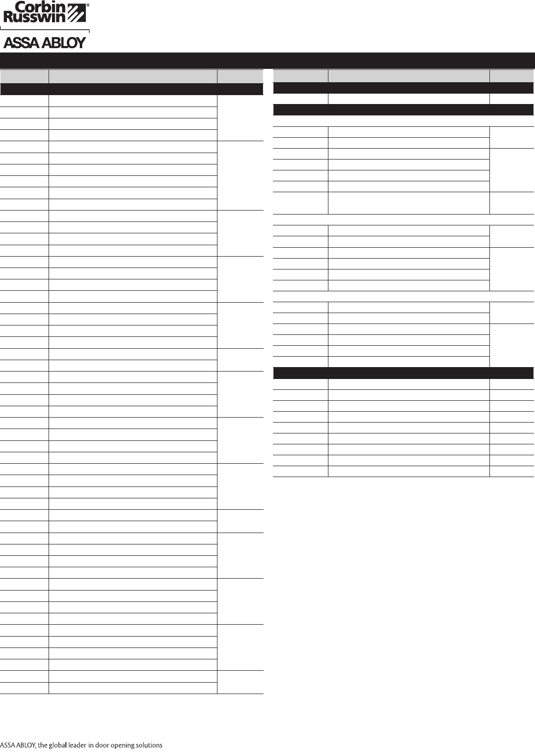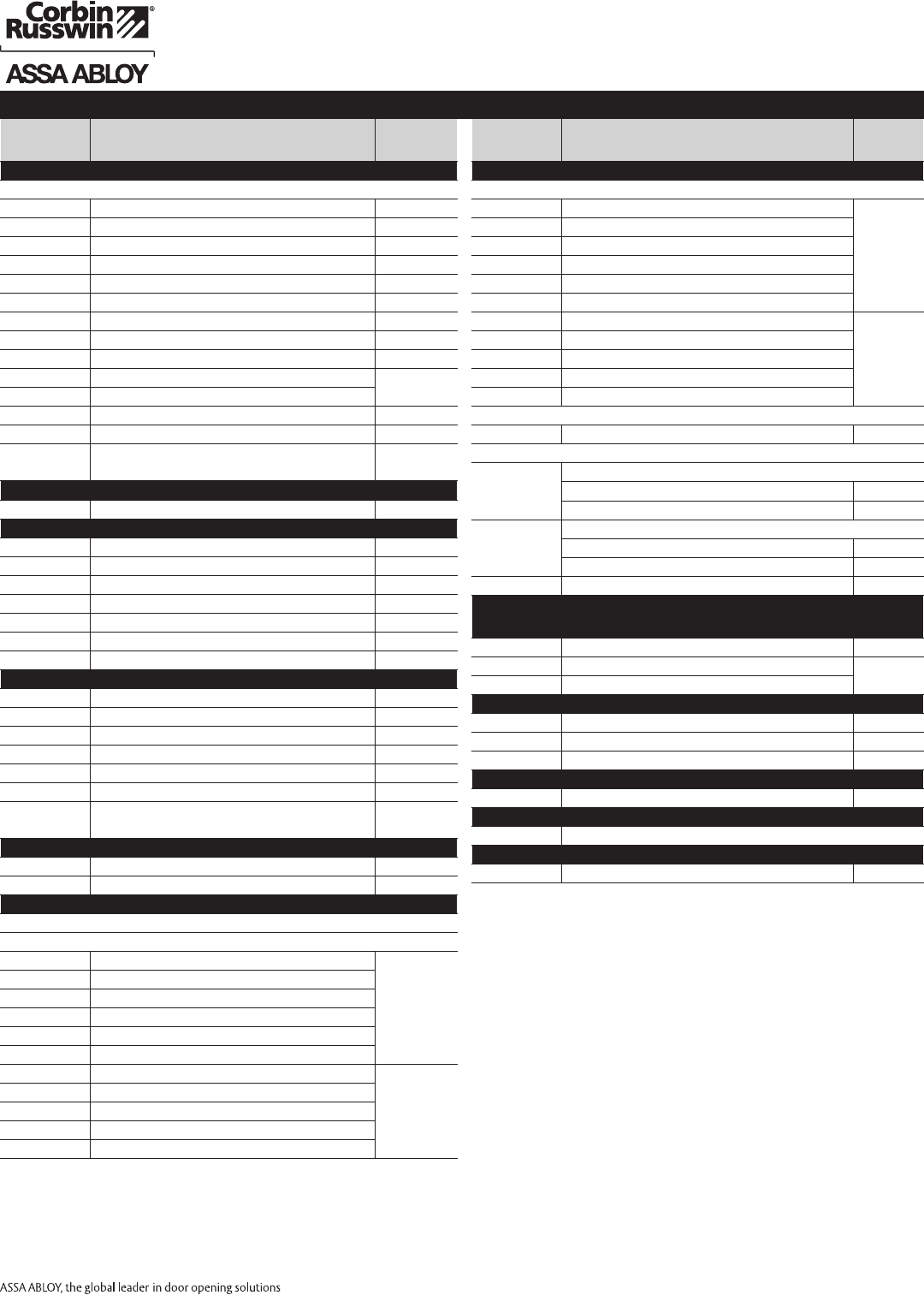 Corbin Russwin Inc., an ASSA ABLOY Group company reserves the right to change availability of any item in this catalog, its design, construction, and/or its materials.