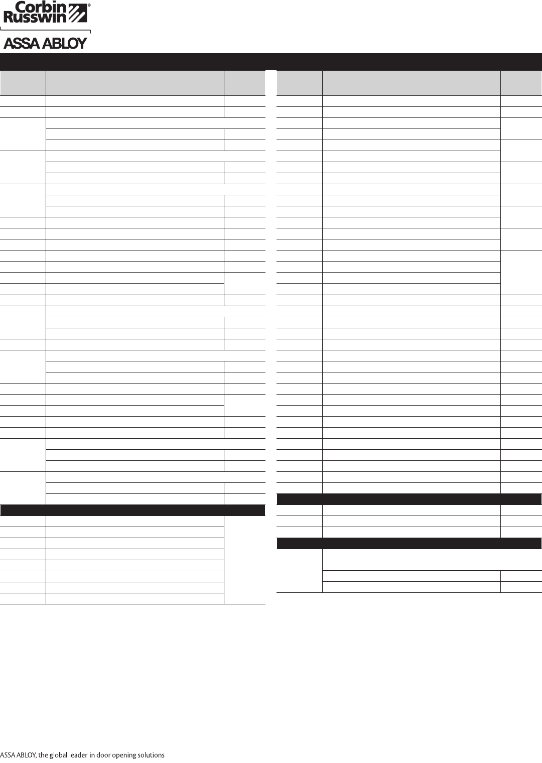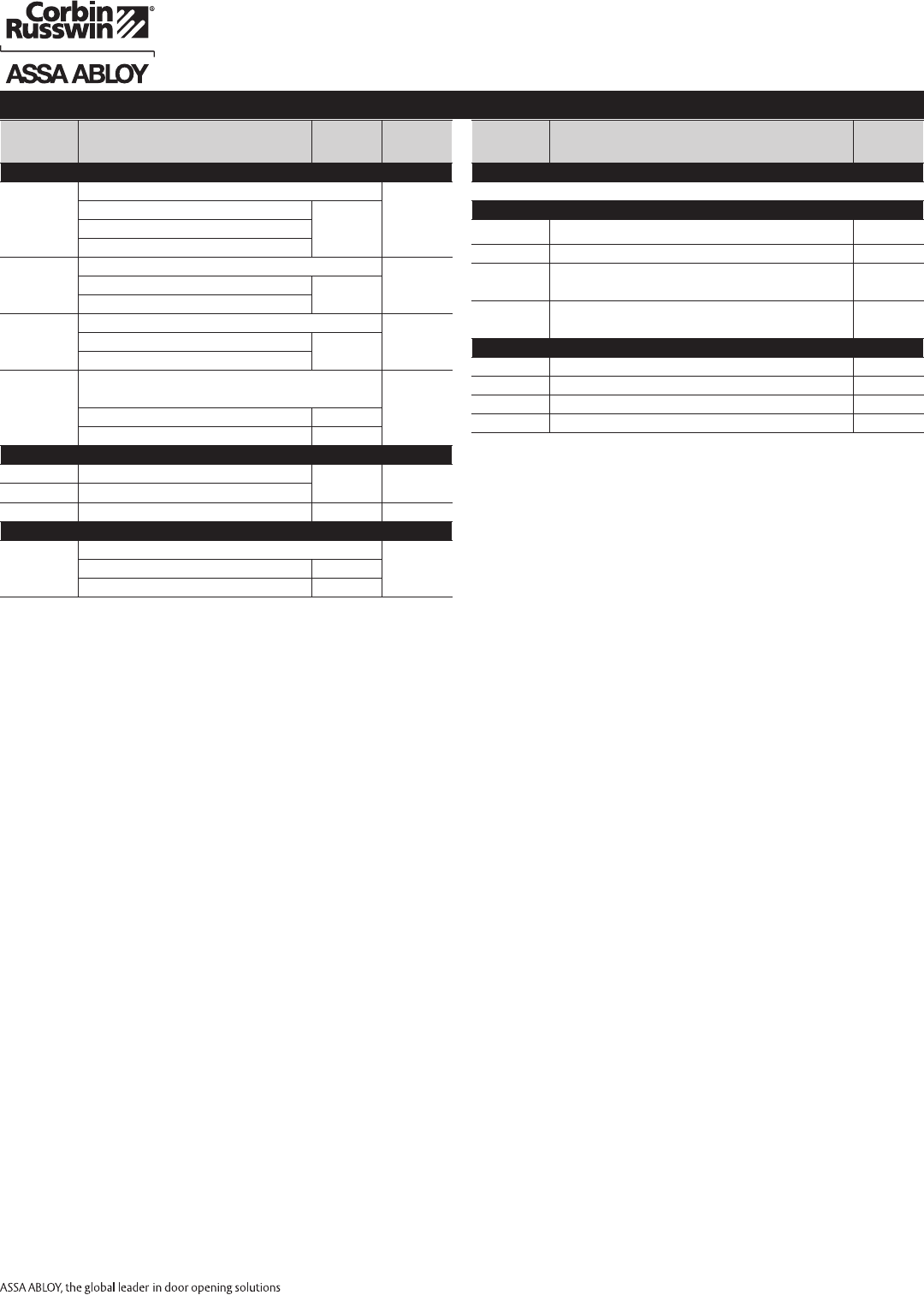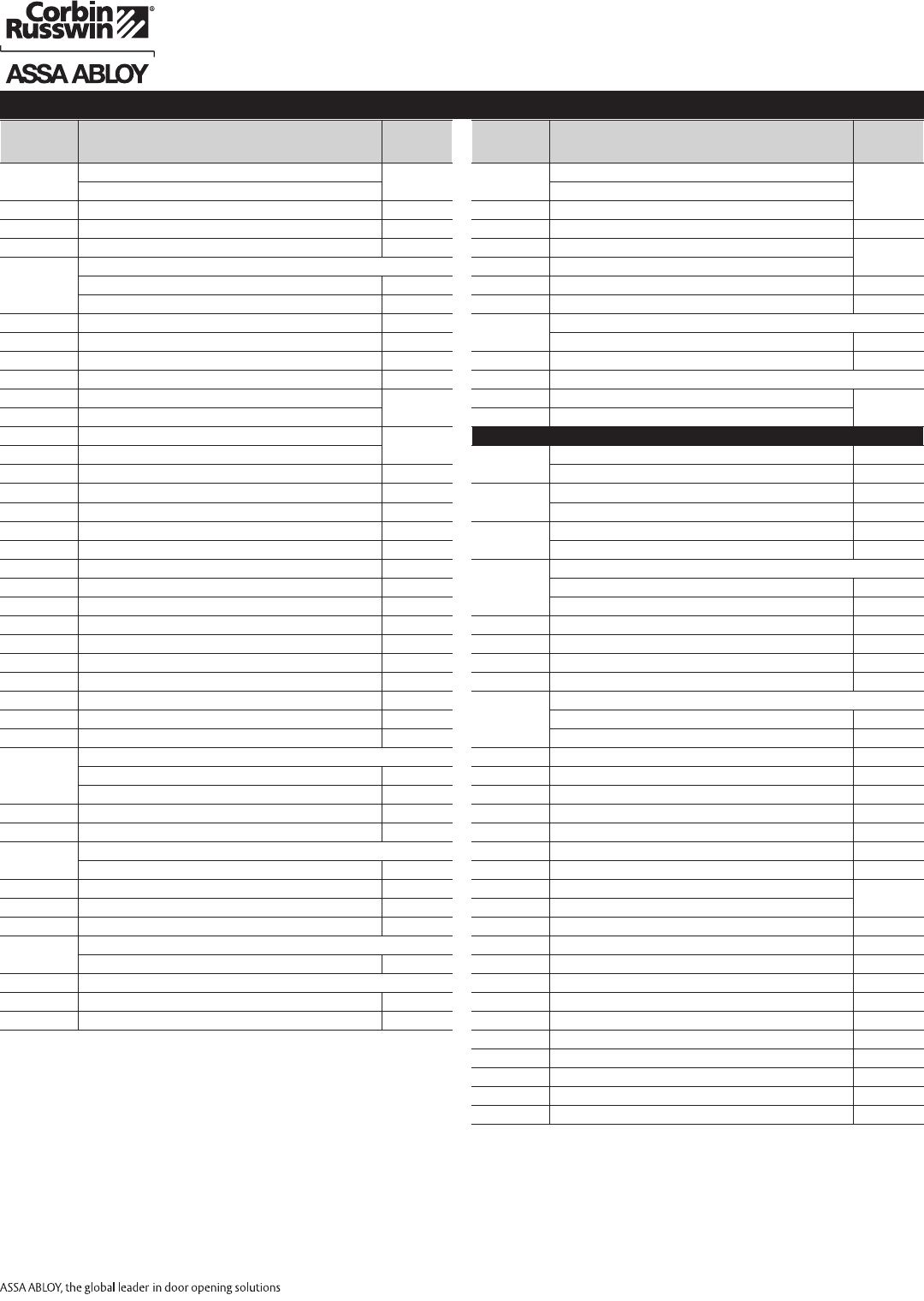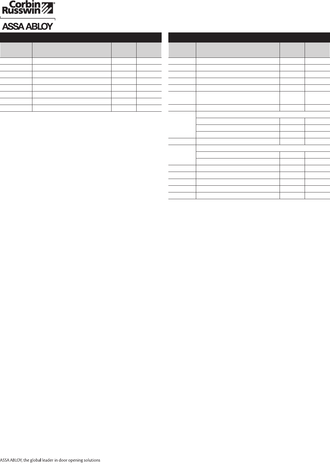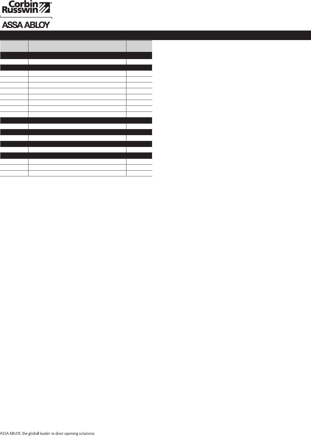 Corbin Russwin Inc., an ASSA ABLOY Group company reserves the right to change availability of any item in this catalog, its design, construction, and/or its materials.