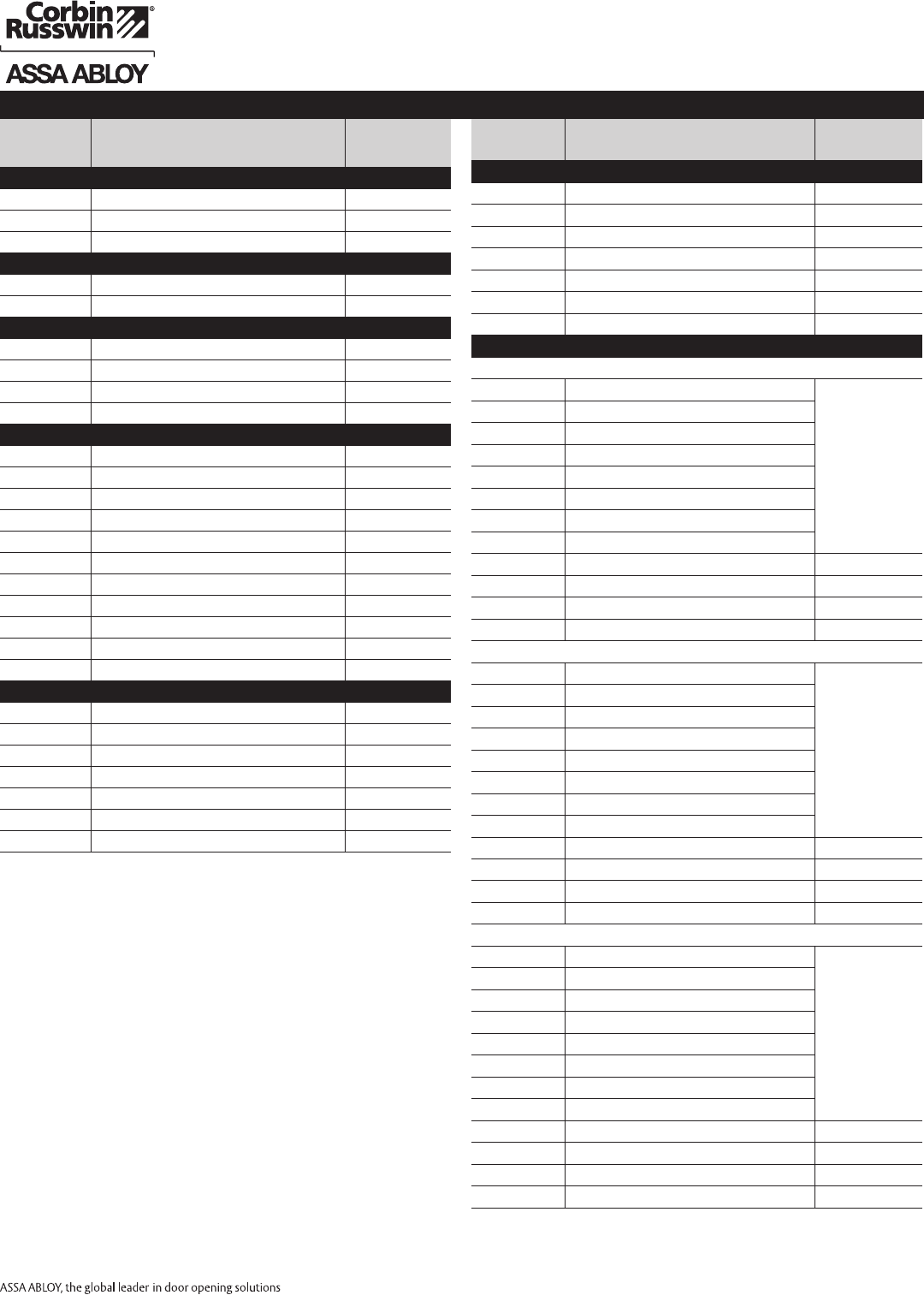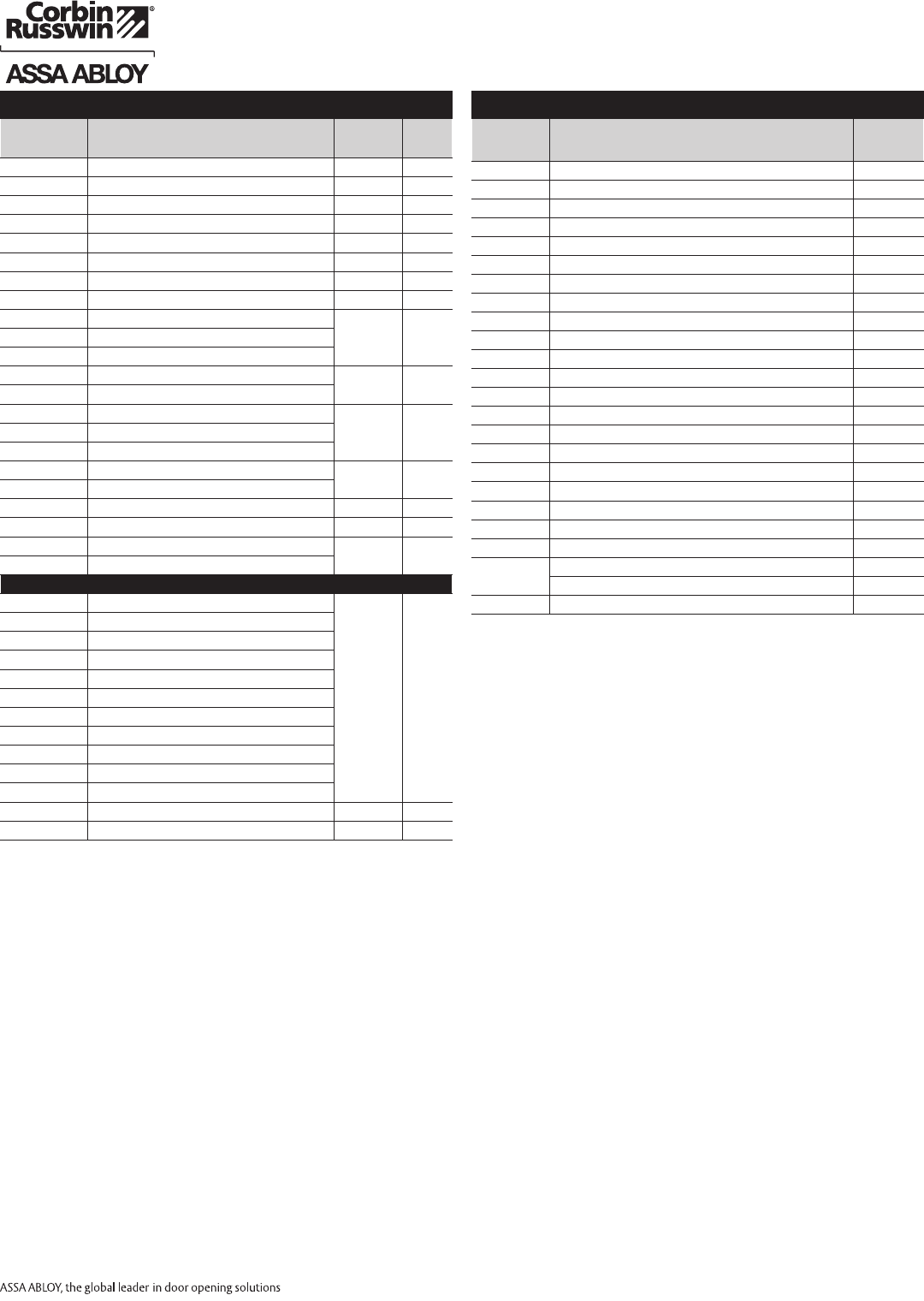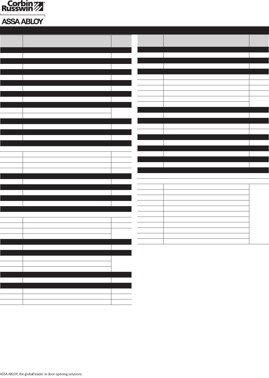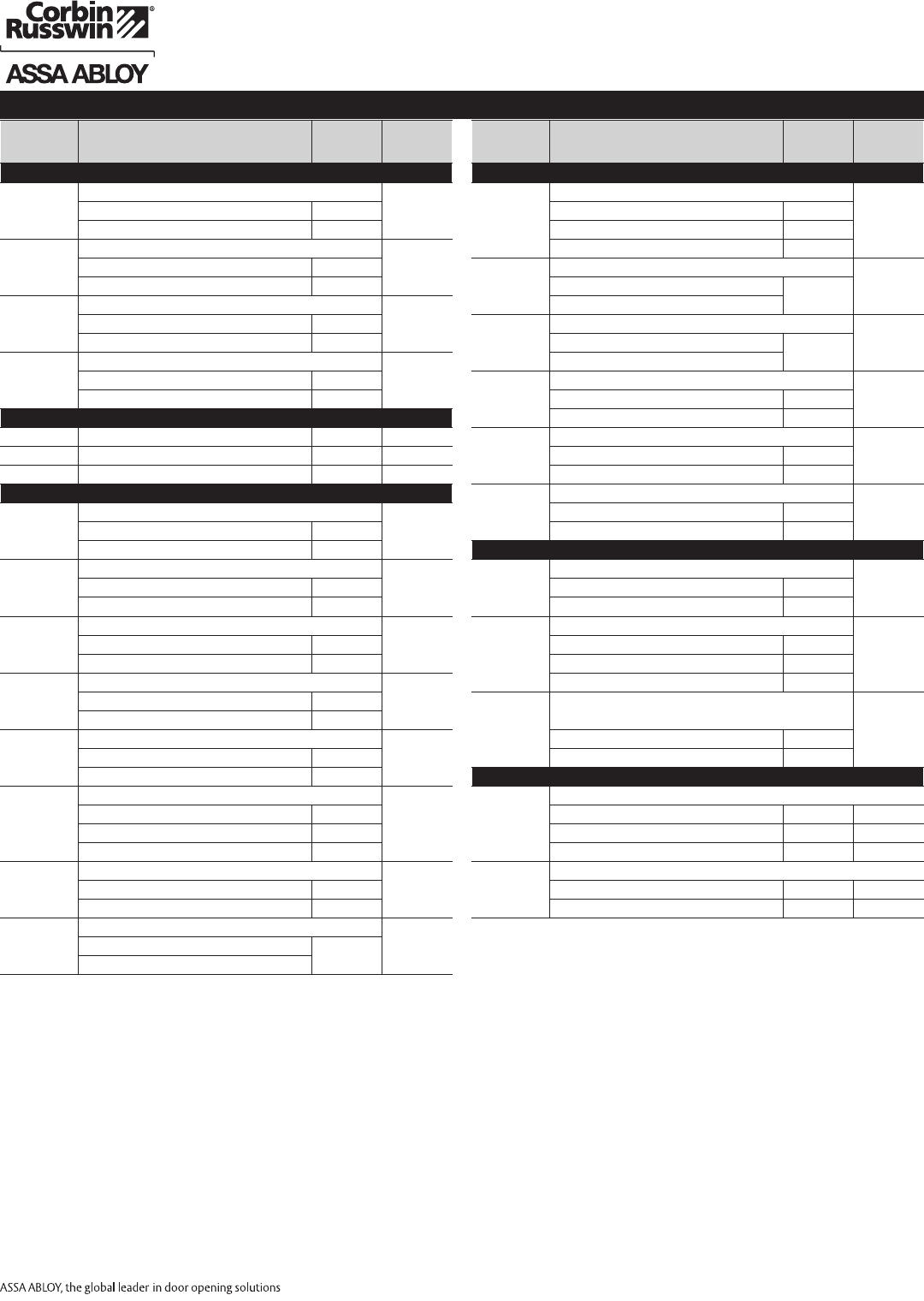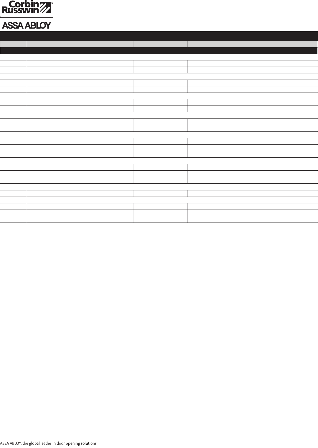 Corbin Russwin Inc., an ASSA ABLOY Group company reserves the right to change availability of any item in this catalog, its design, construction, and/or its materials.