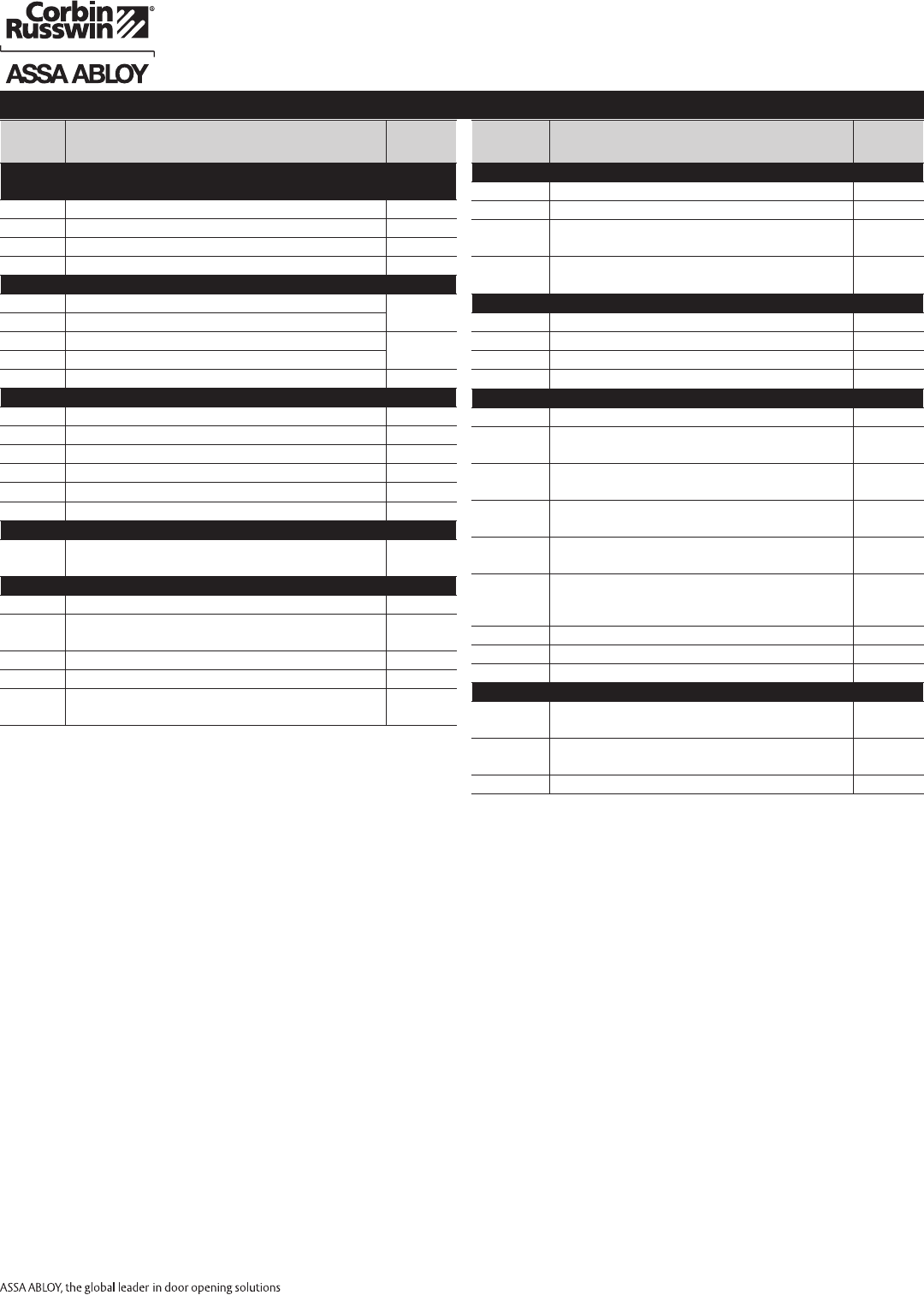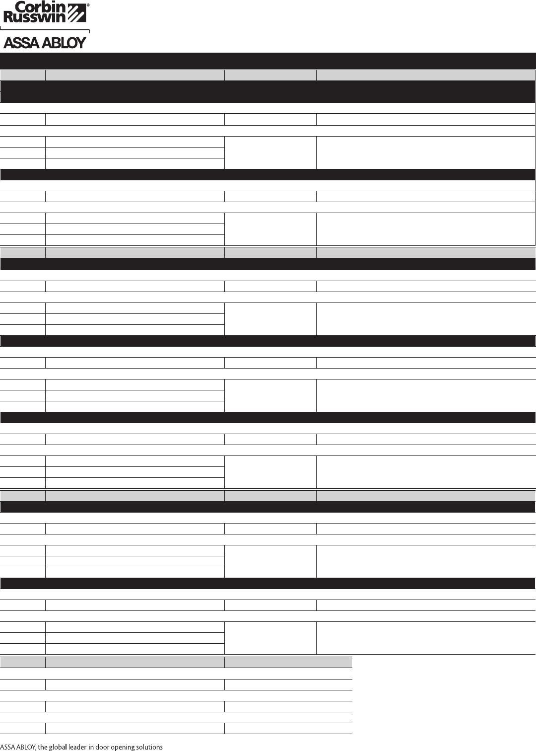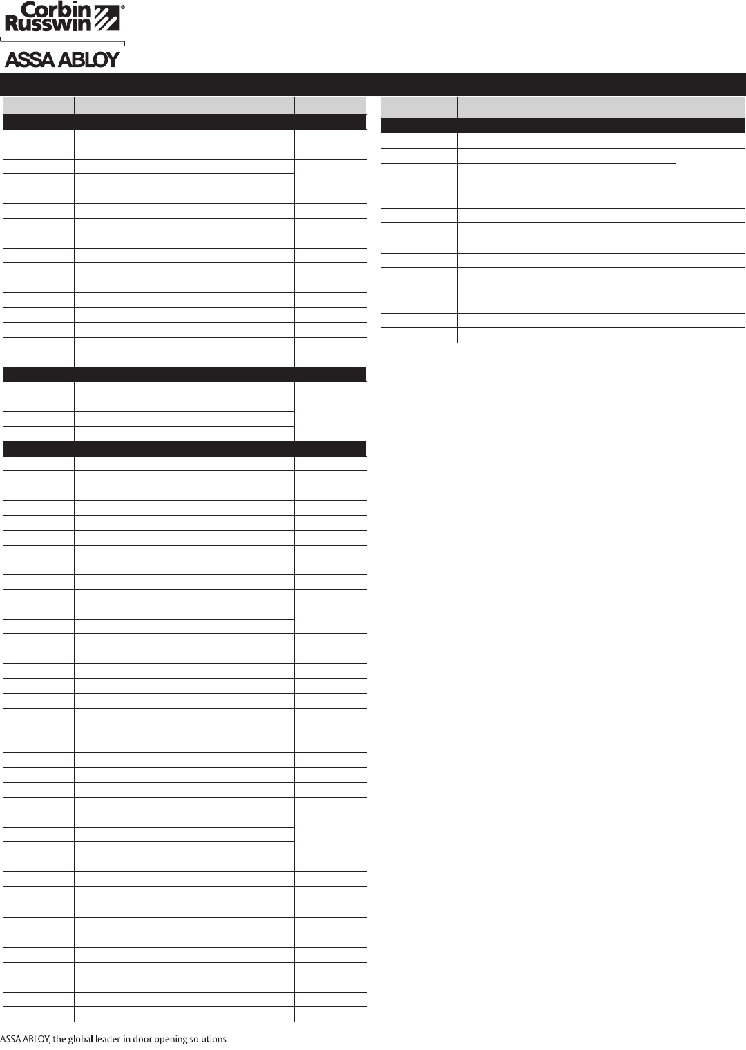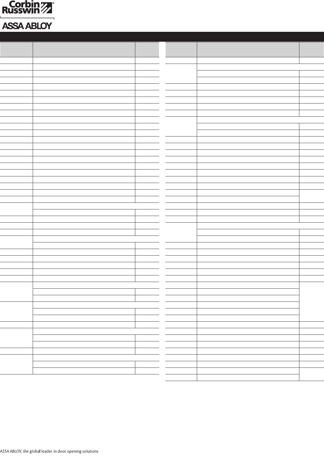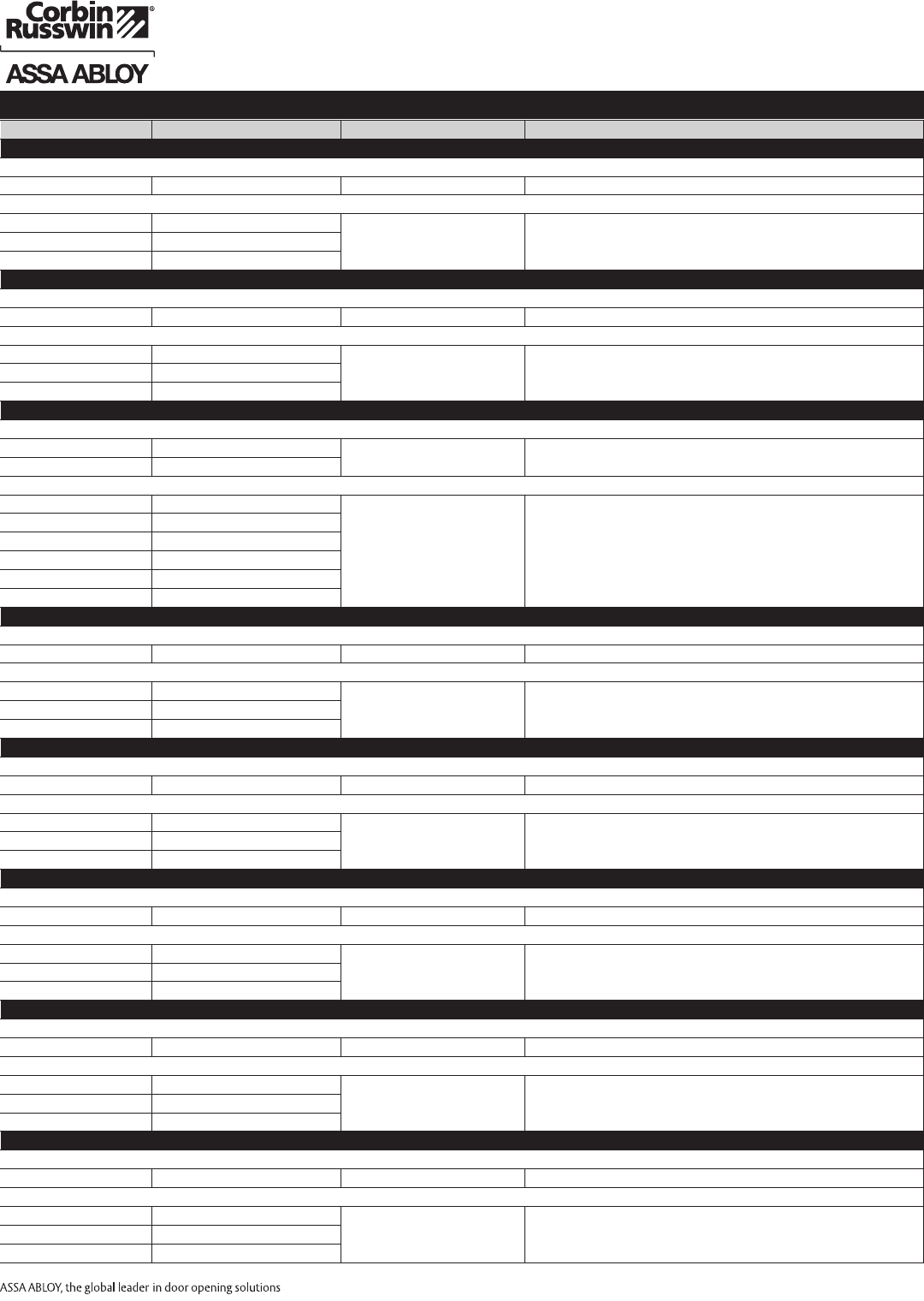 Corbin Russwin Inc., an ASSA ABLOY Group company reserves the right to change availability of any item in this catalog, its design, construction, and/or its materials.