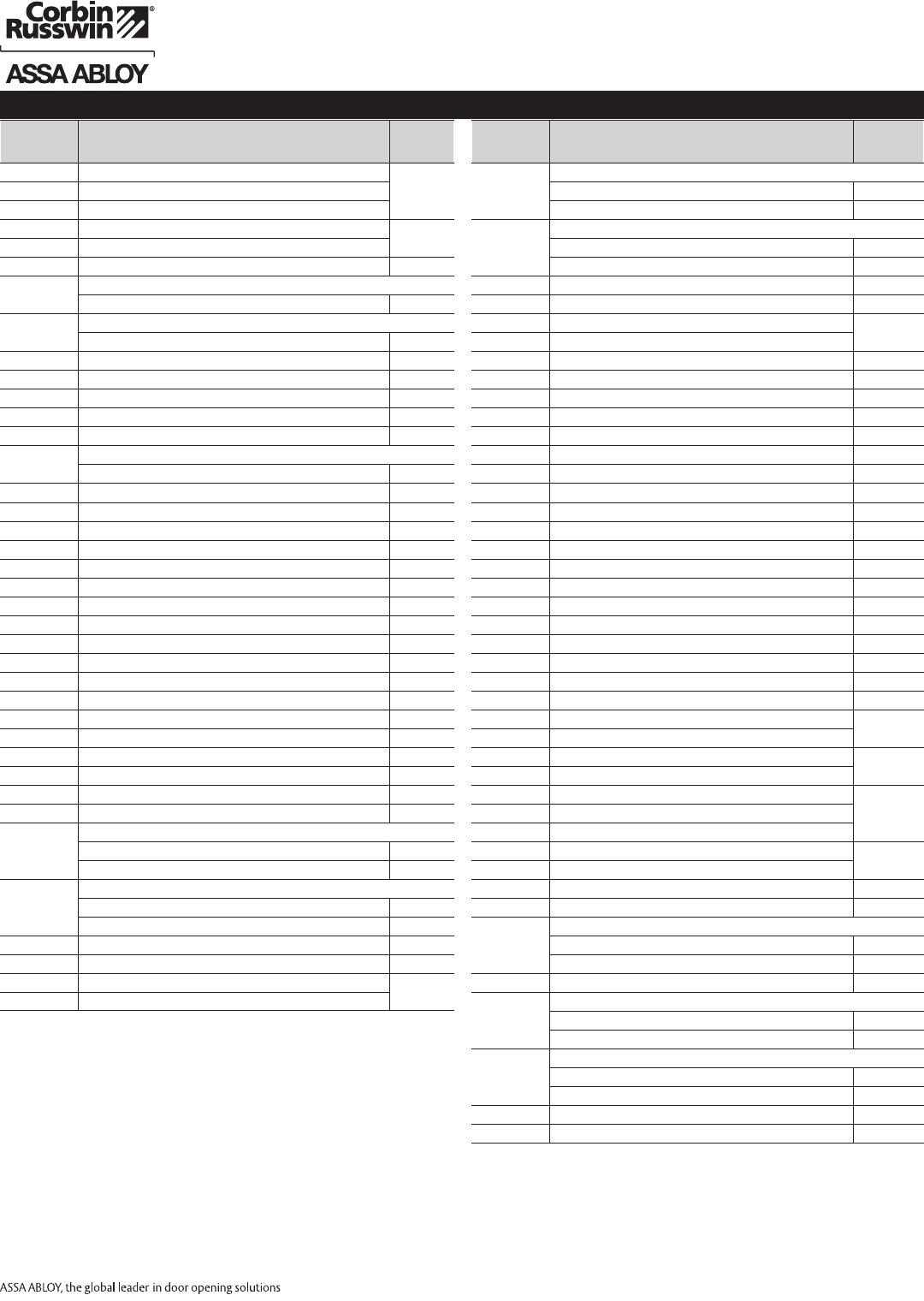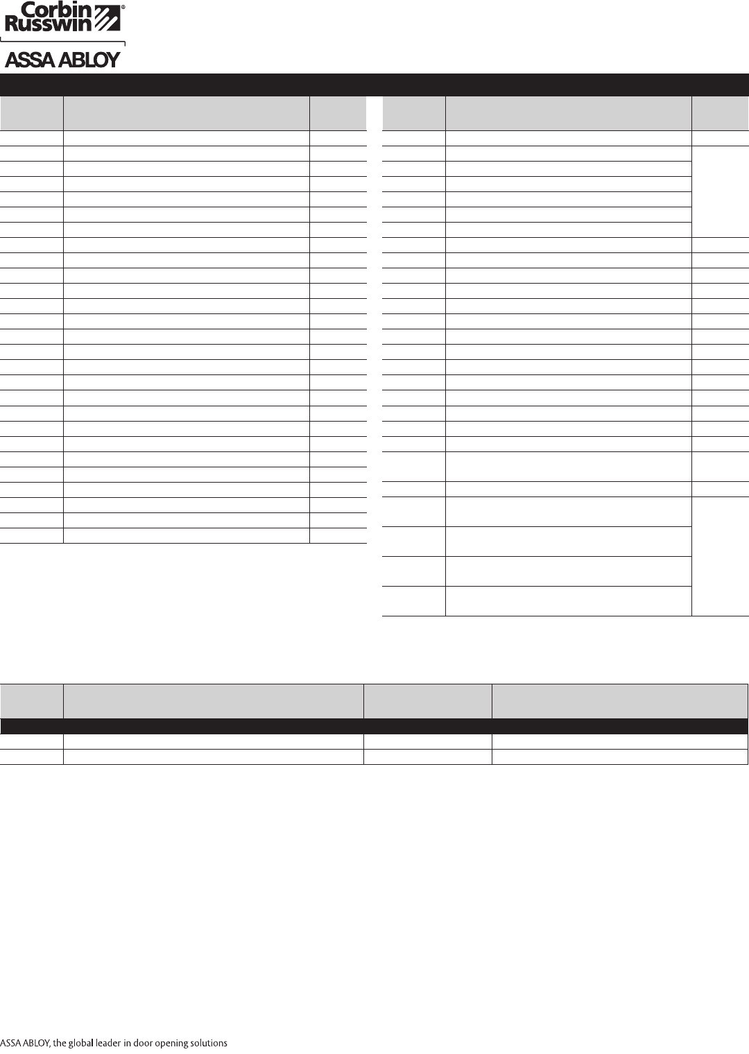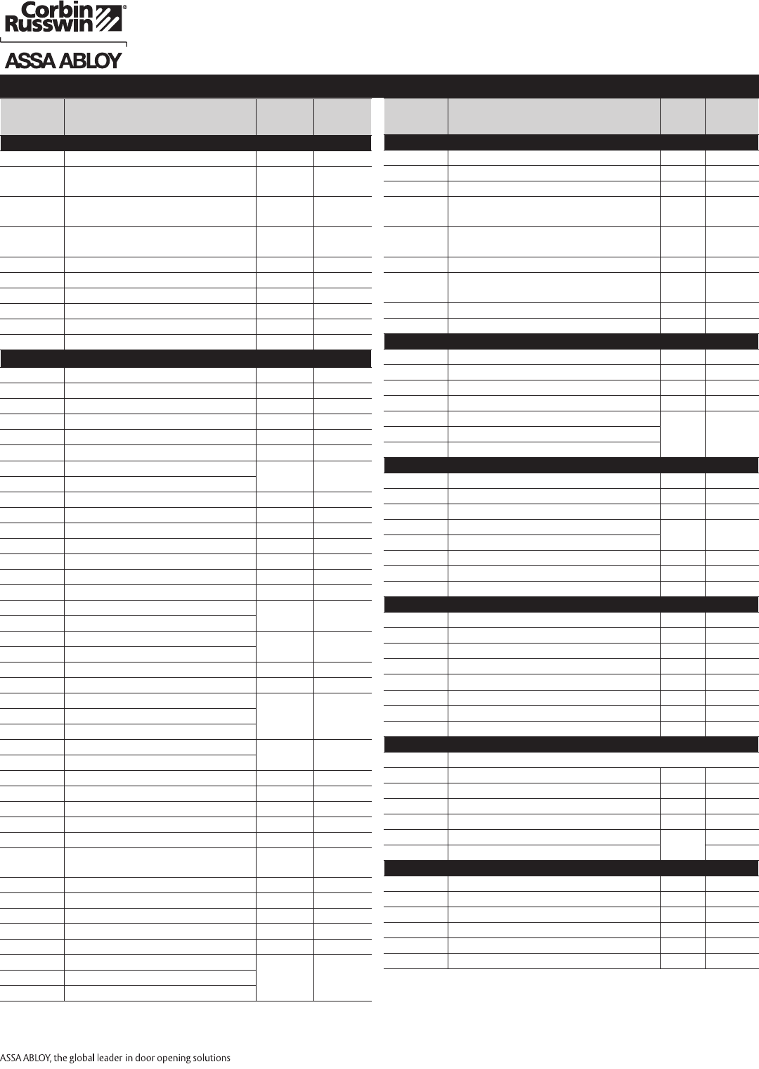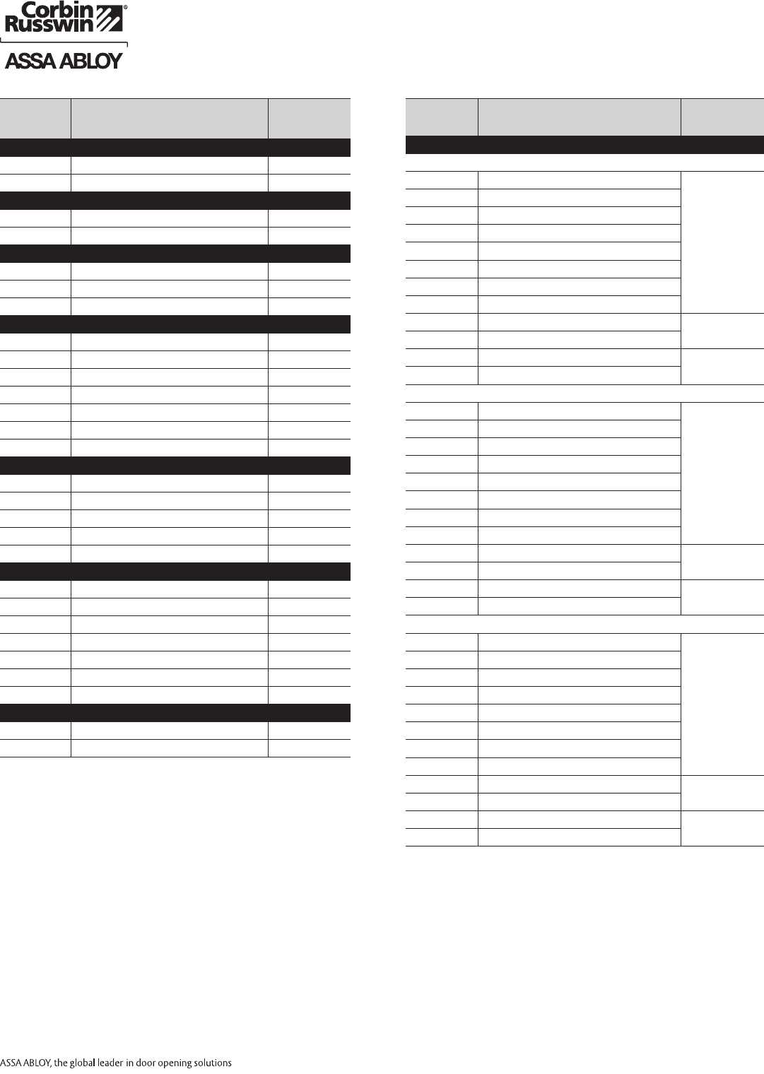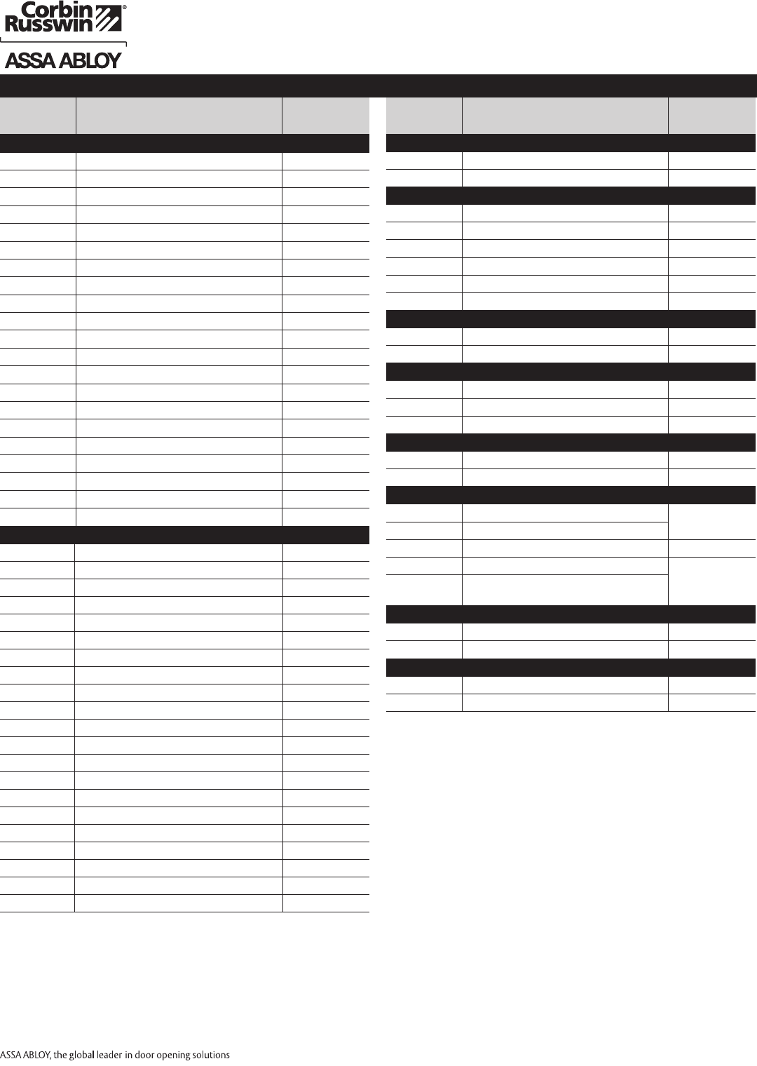 Corbin Russwin Inc., an ASSA ABLOY Group company reserves the right to change availability of any item in this catalog, its design, construction, and/or its materials.