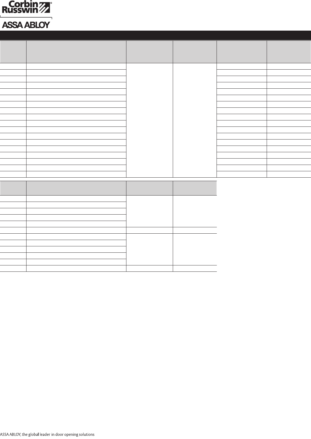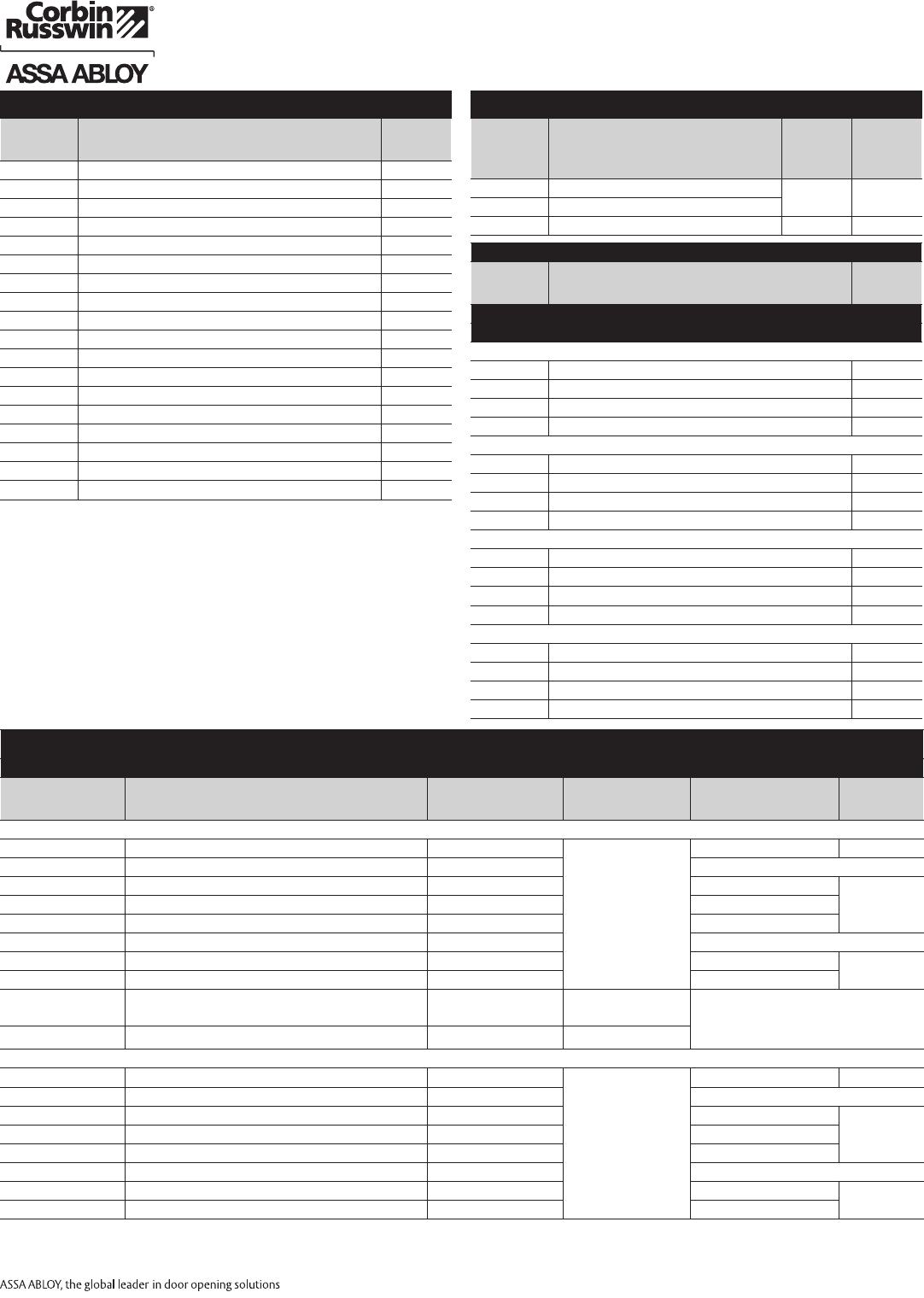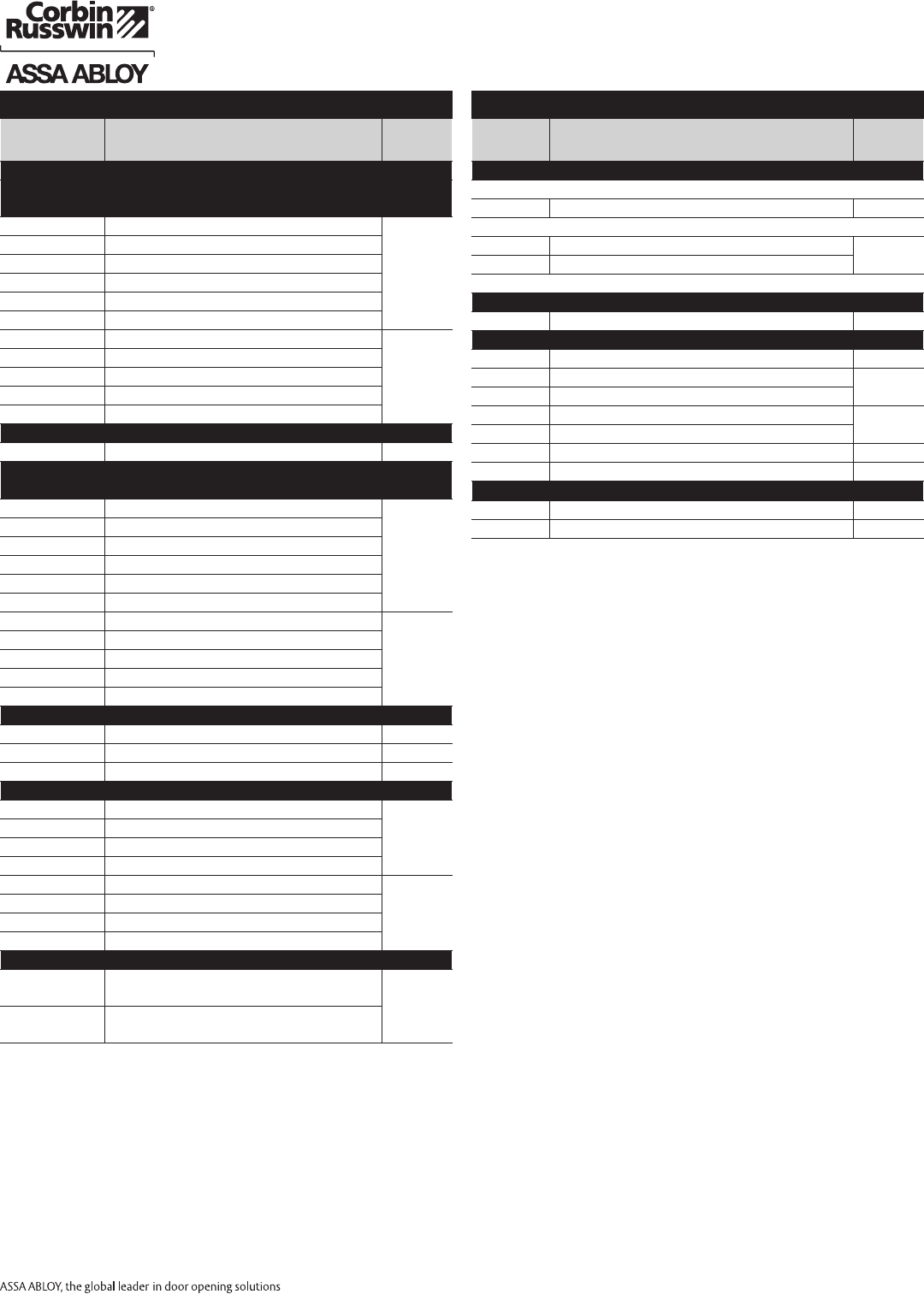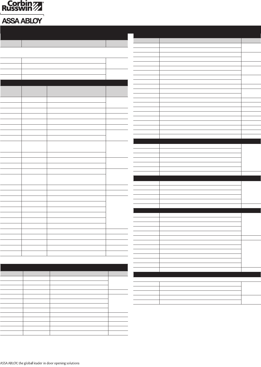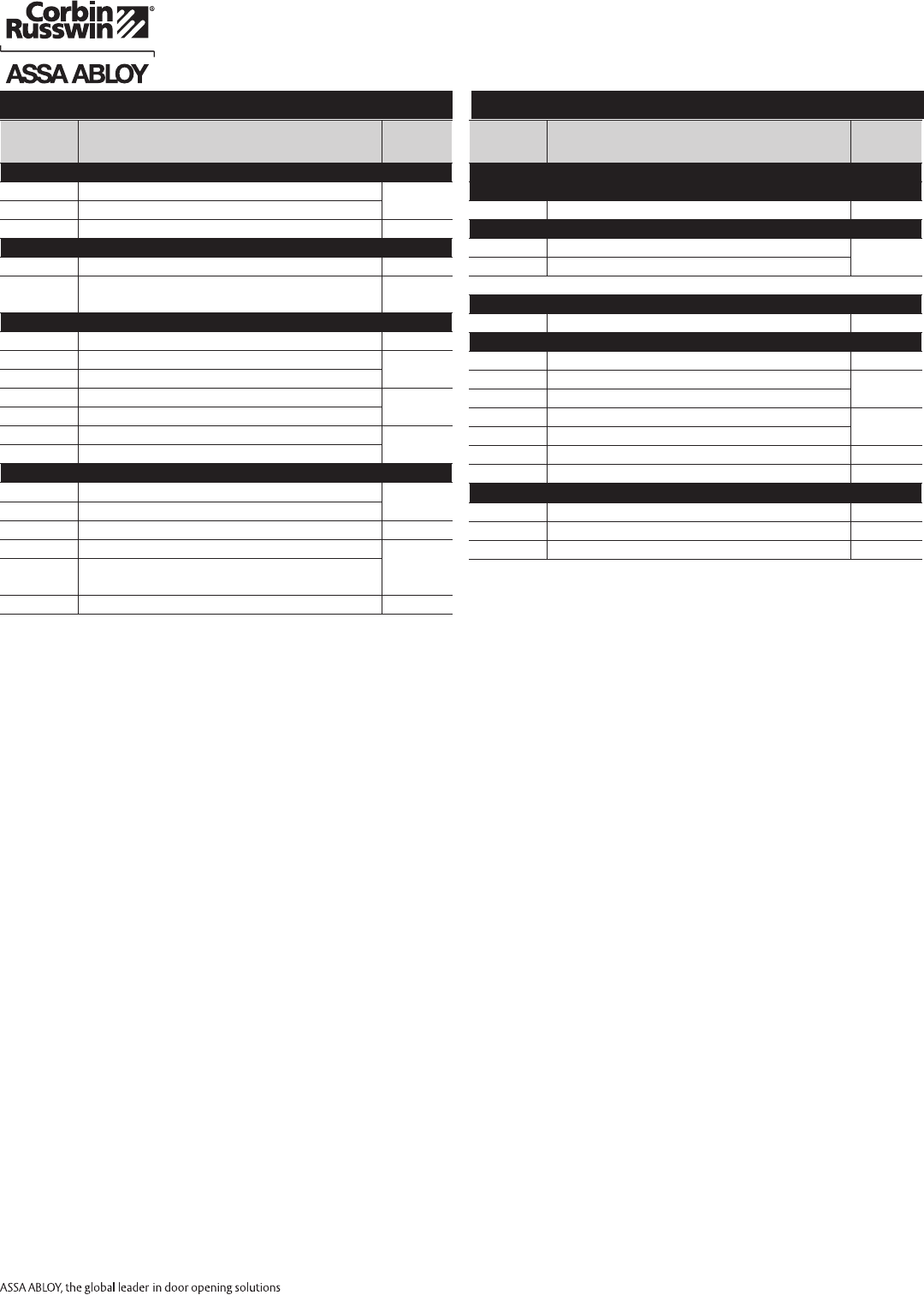 Corbin Russwin Inc., an ASSA ABLOY Group company reserves the right to change availability of any item in this catalog, its design, construction, and/or its materials.