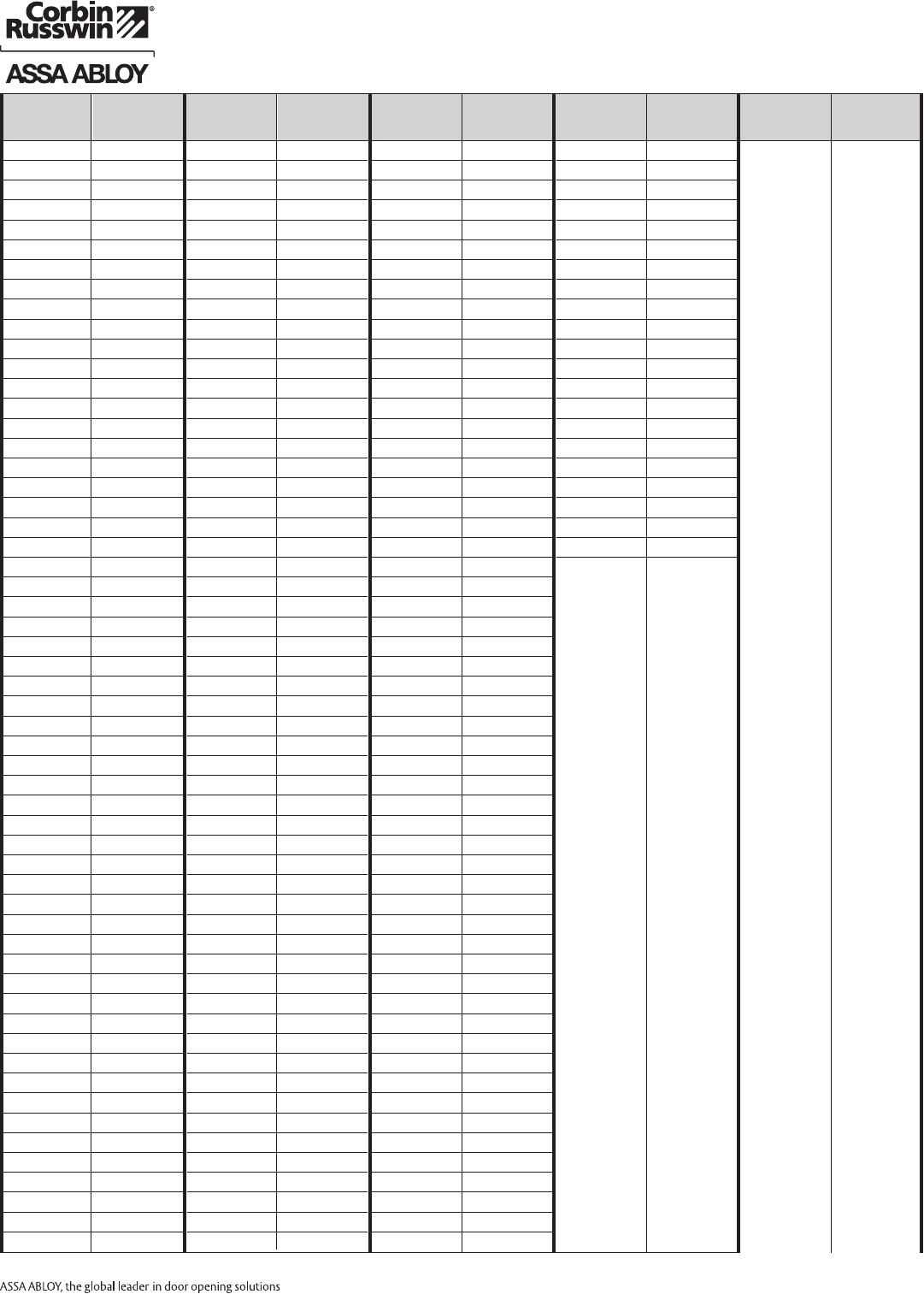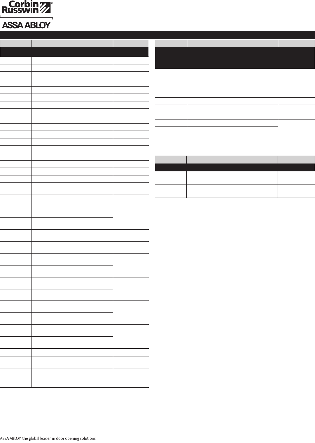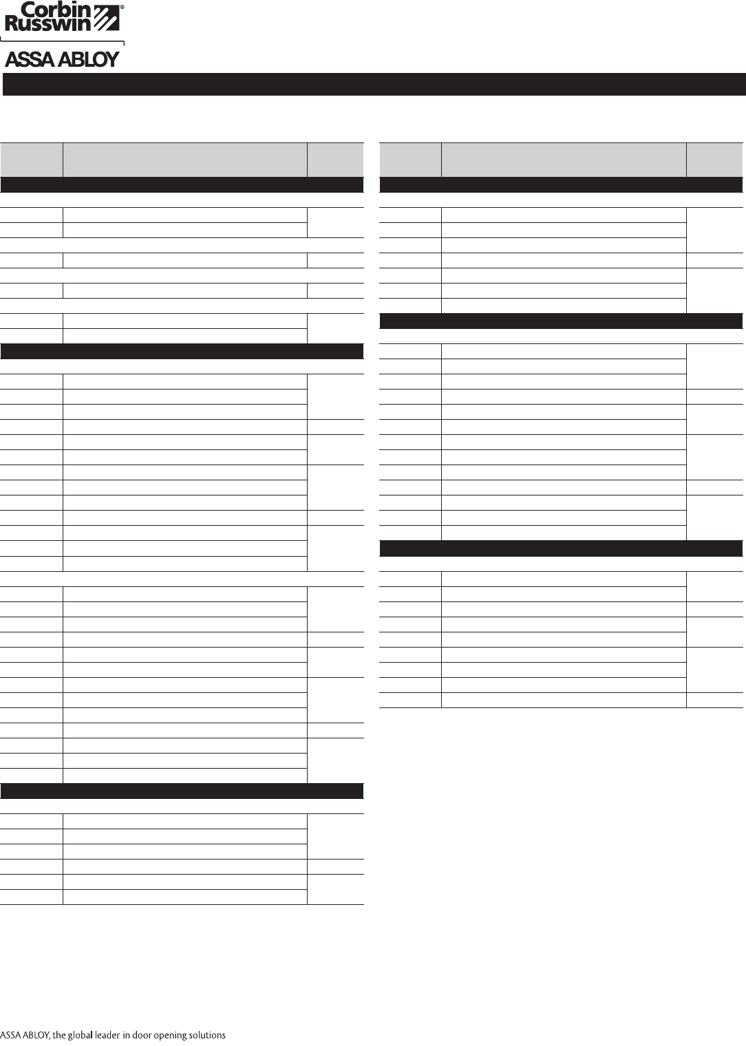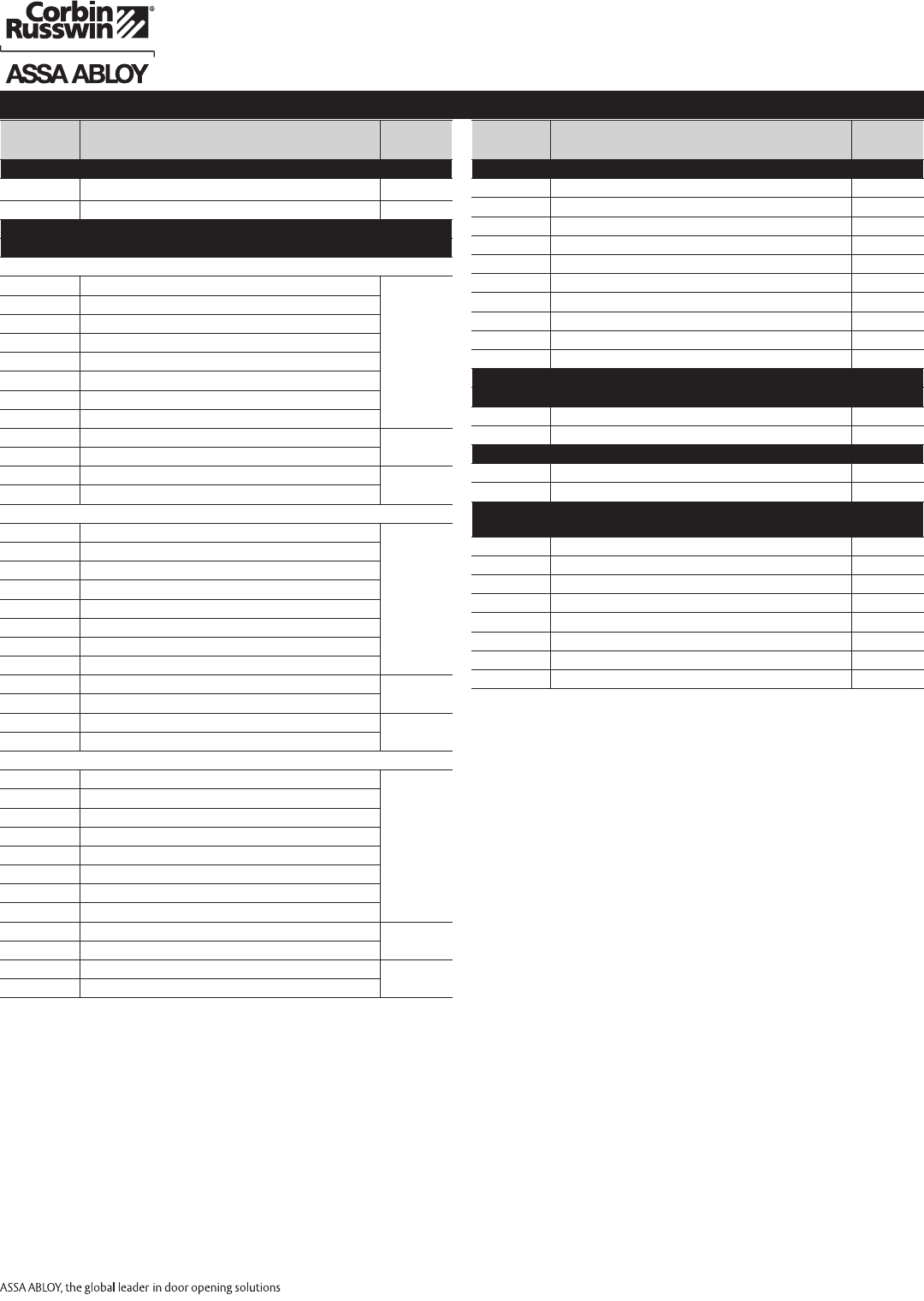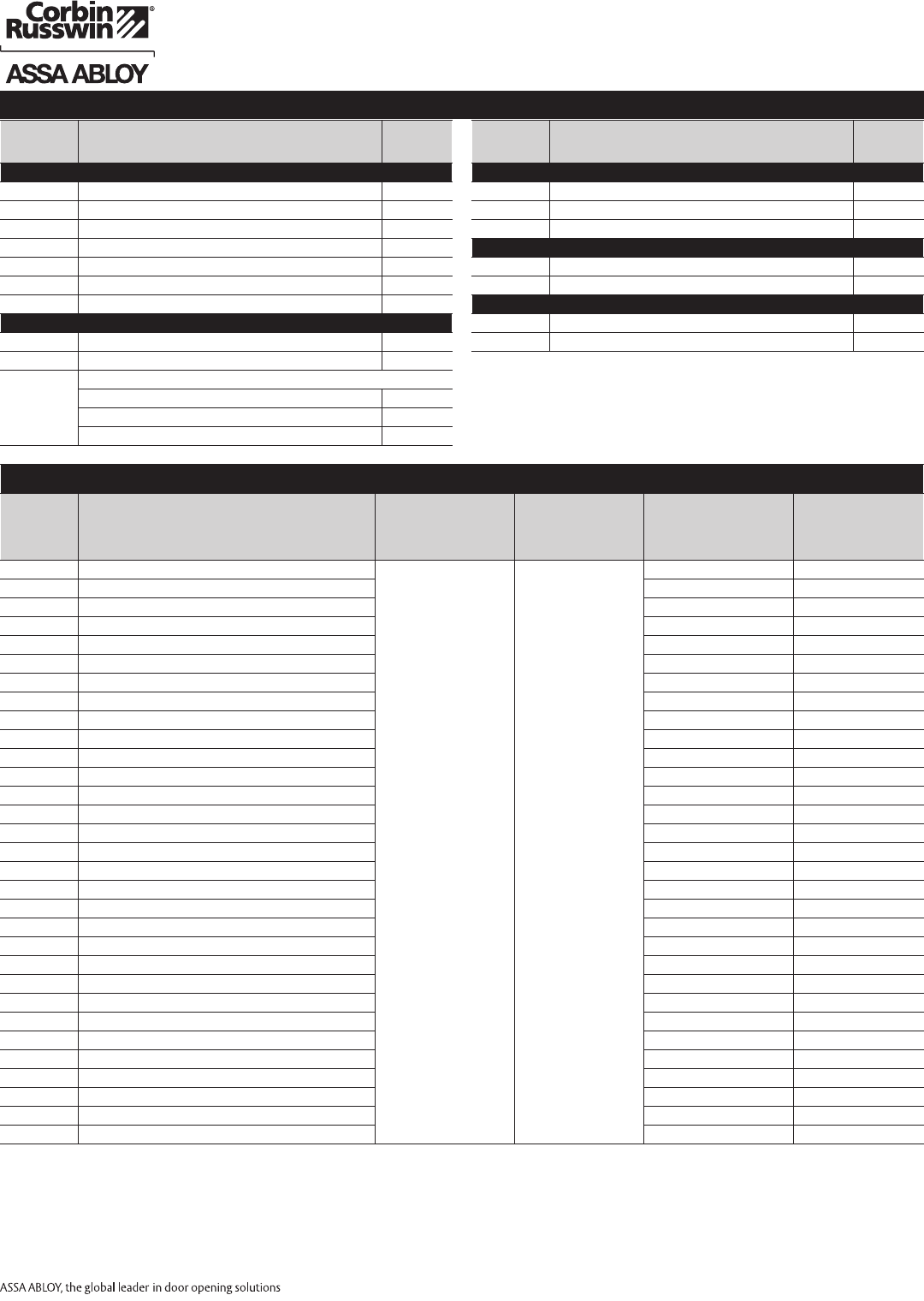 Corbin Russwin Inc., an ASSA ABLOY Group company reserves the right to change availability of any item in this catalog, its design, construction, and/or its materials.