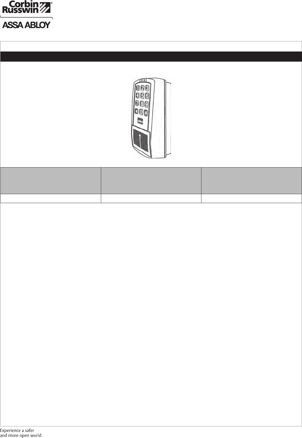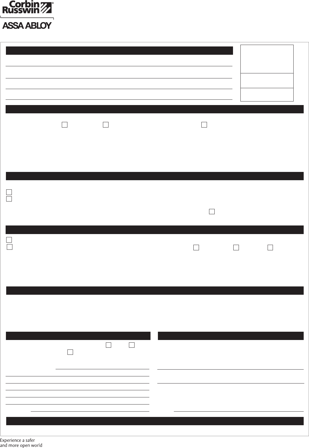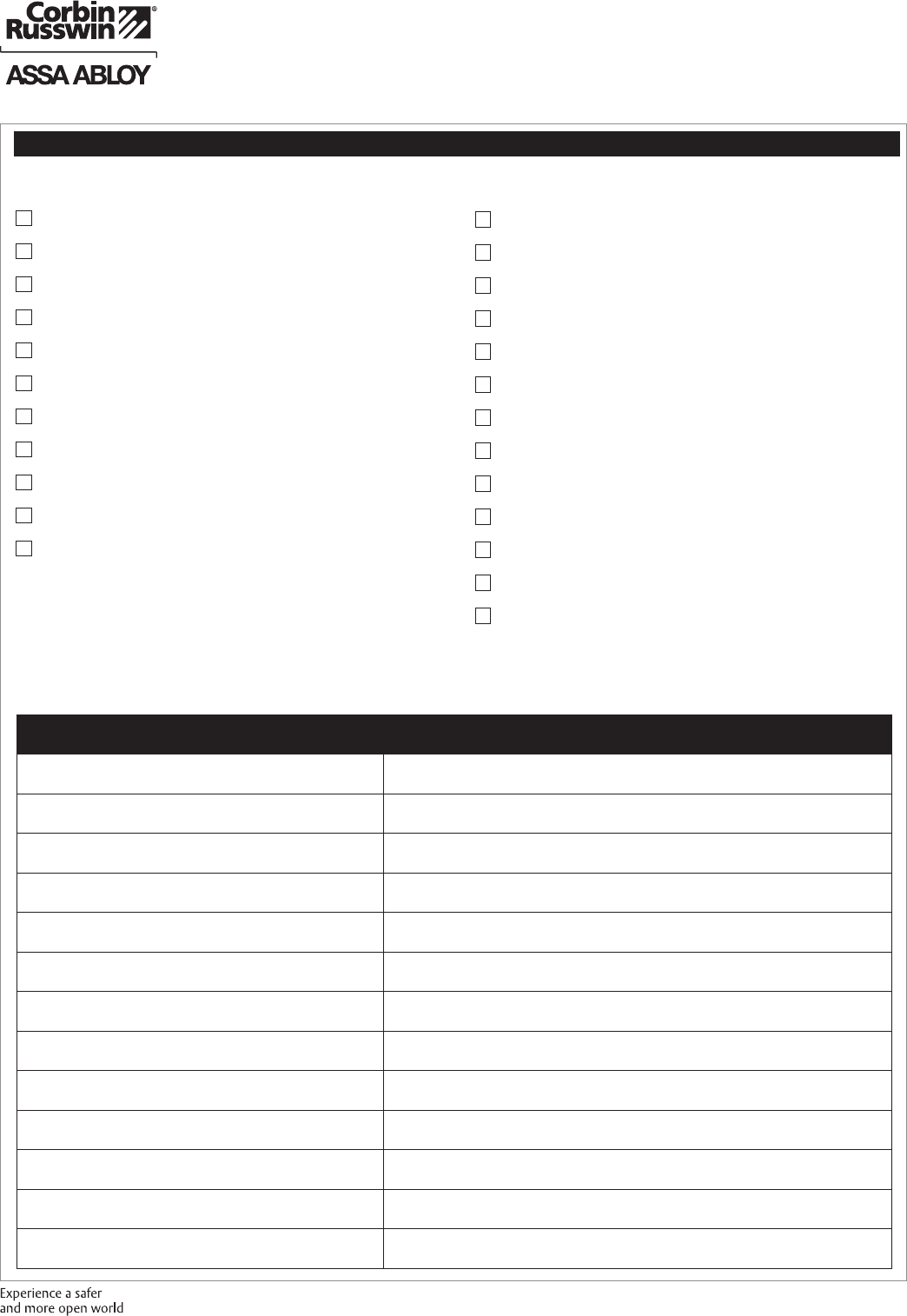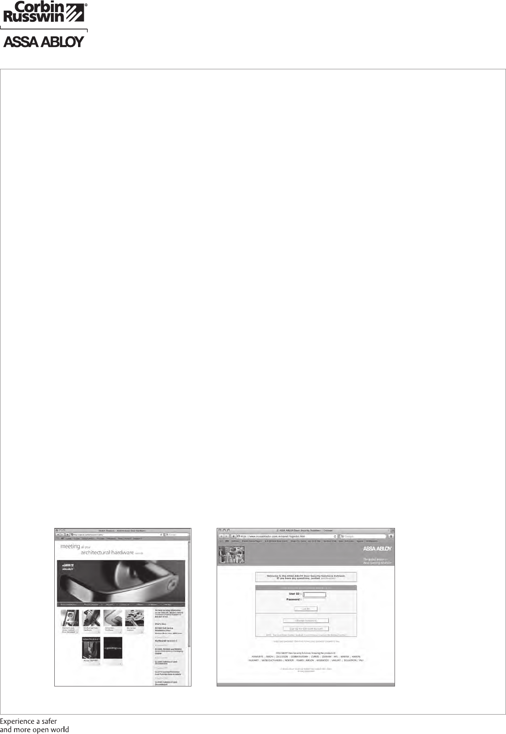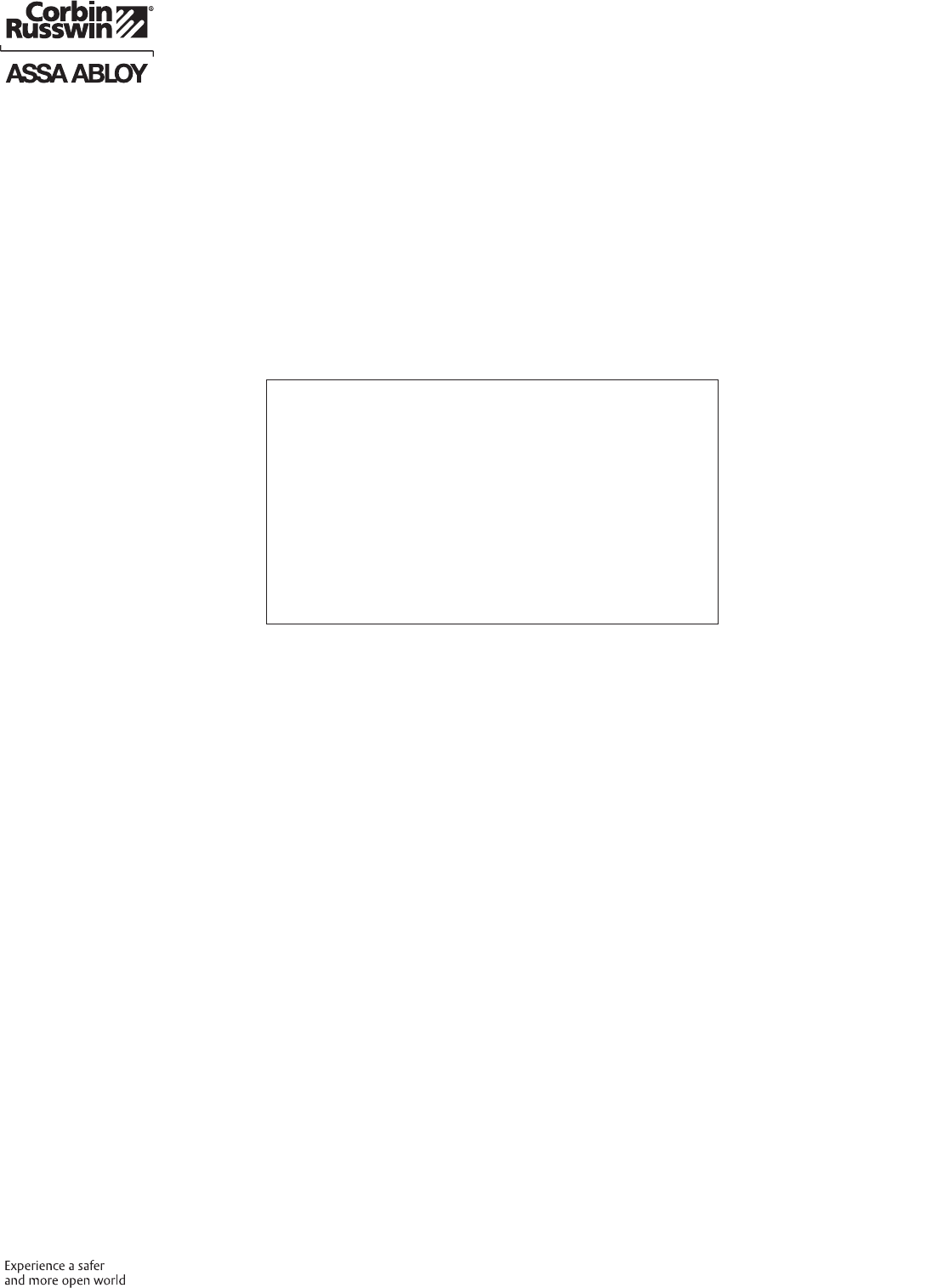 Contact us at: 800-543-3658 or visit www.corbinrusswin.com. In Canada contact us at: 800-461-3007 or visit www.assaabloydss.ca