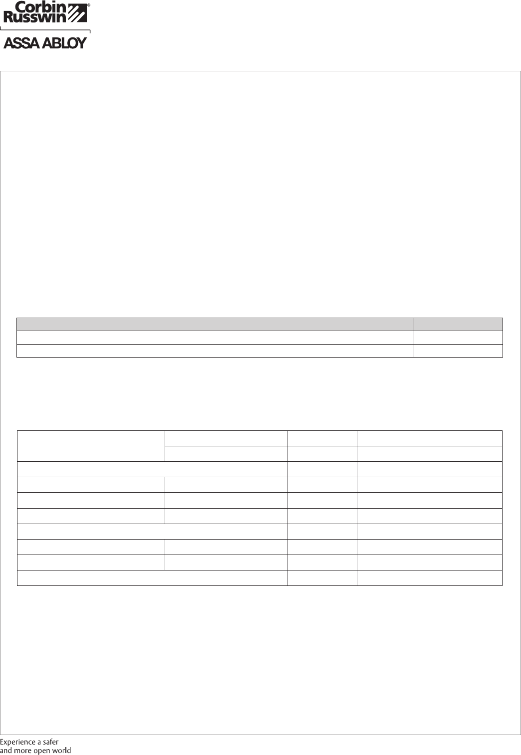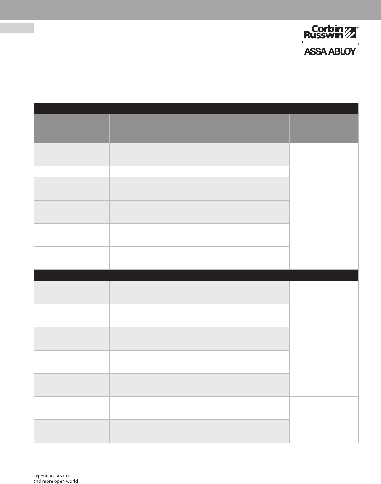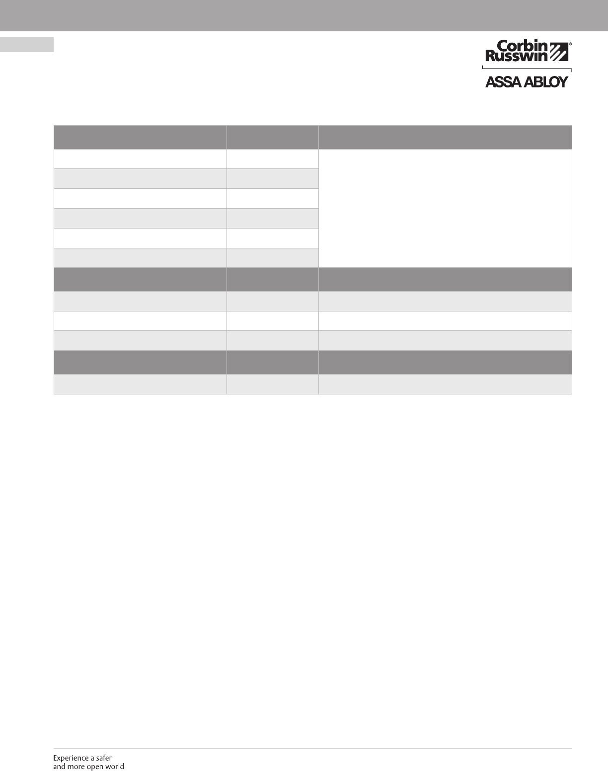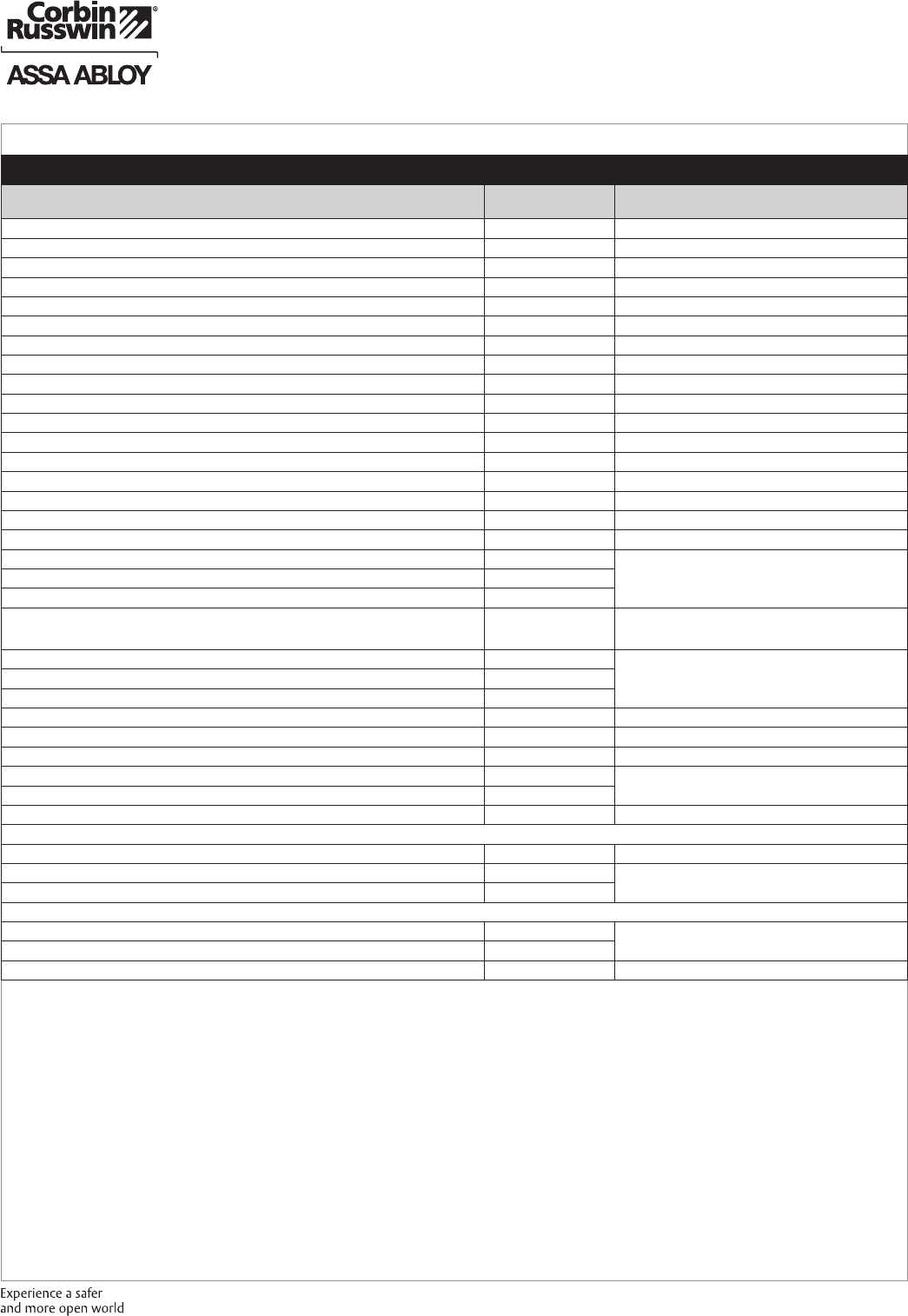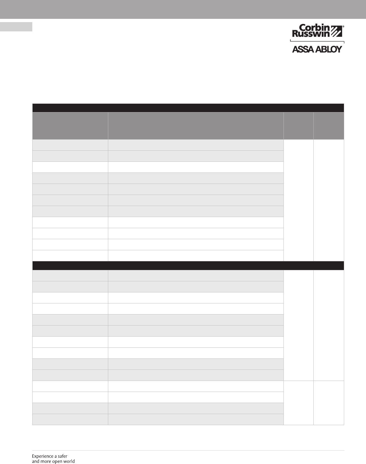 These materials are protected under US copyright laws. All contents current at time of publication. Corbin Russwin Inc., an ASSA ABLOY Group company reserves the right to change availability of any item in this
