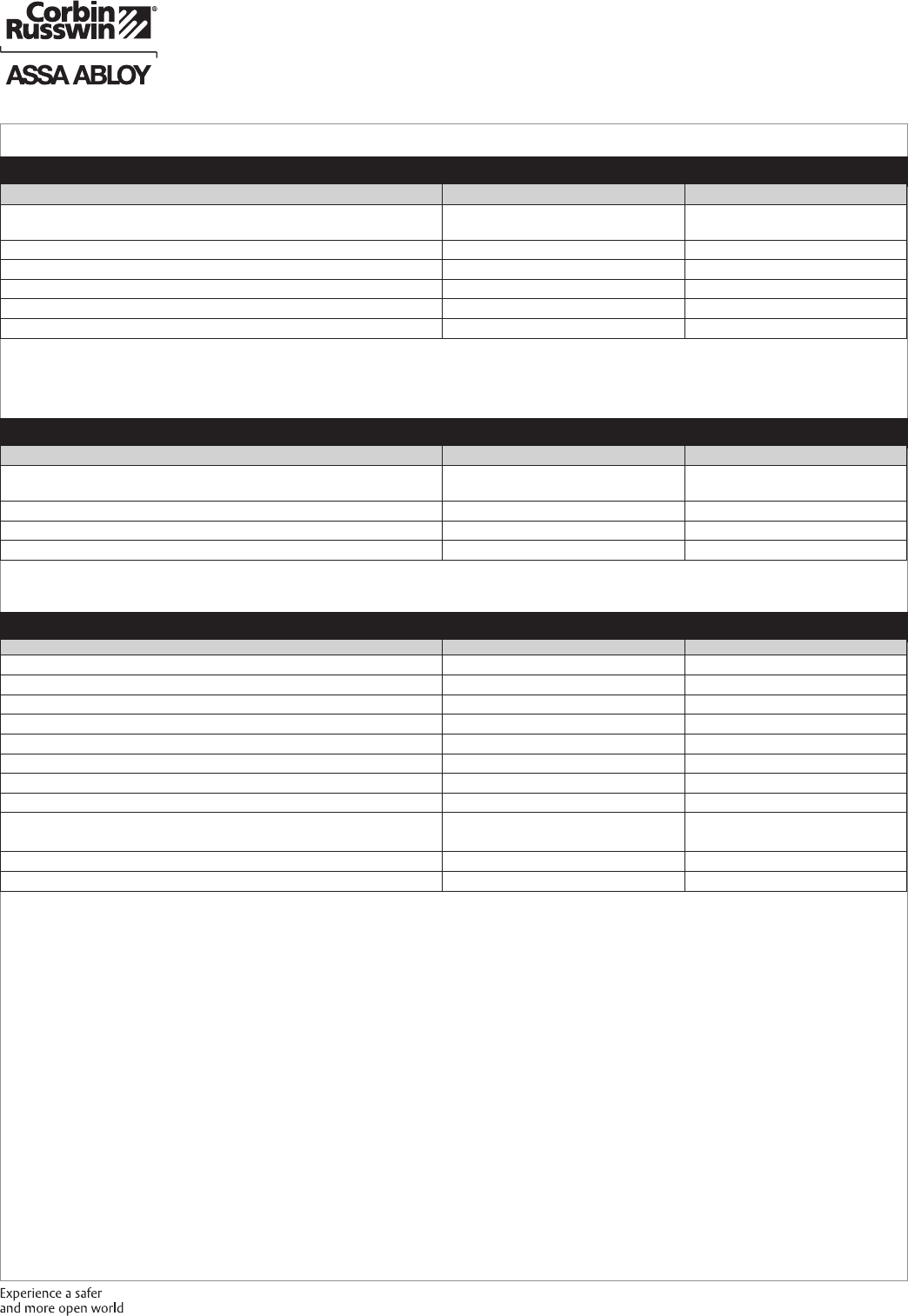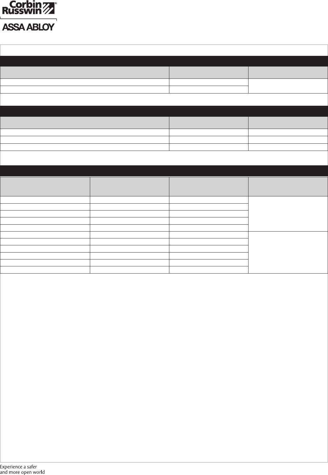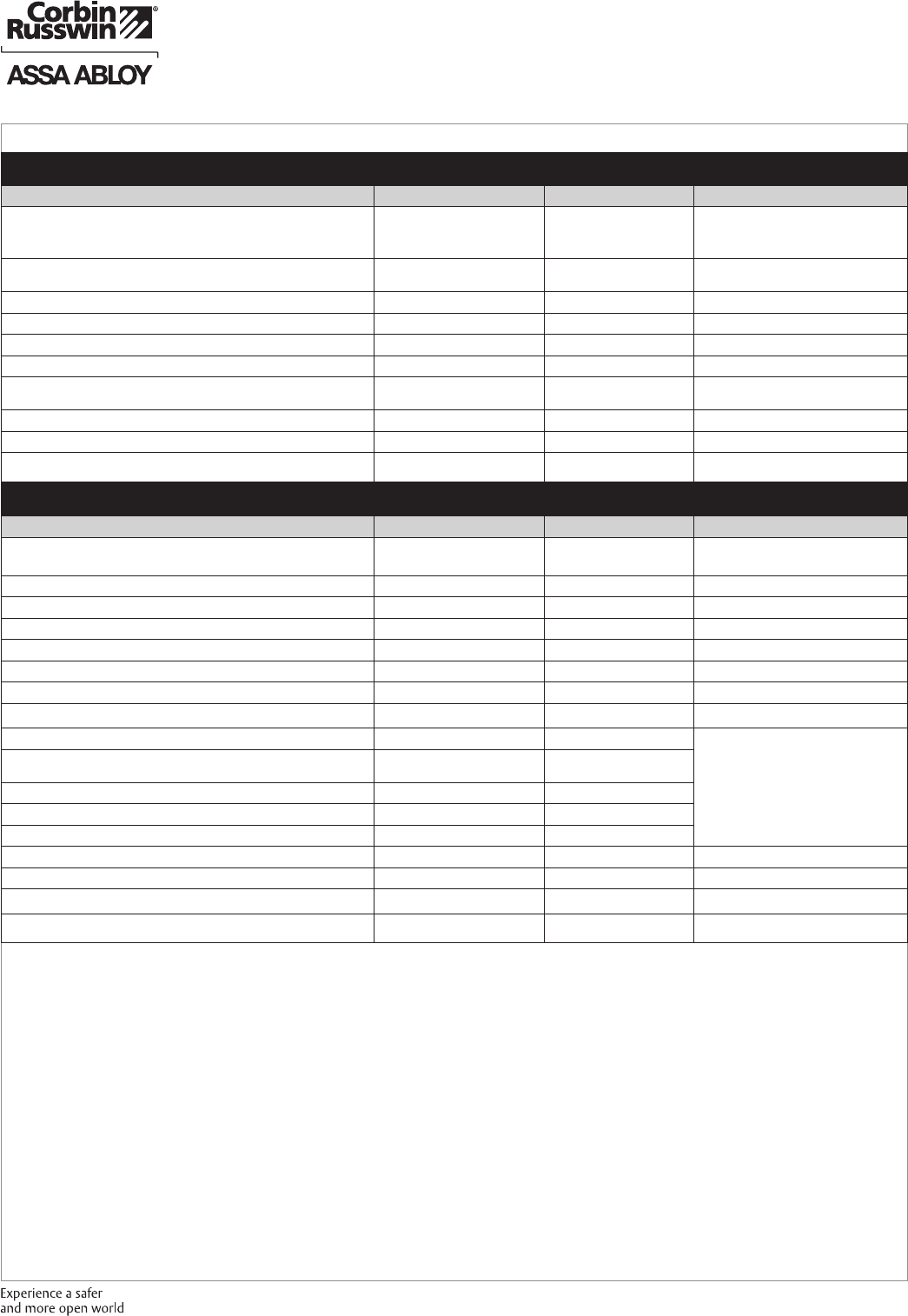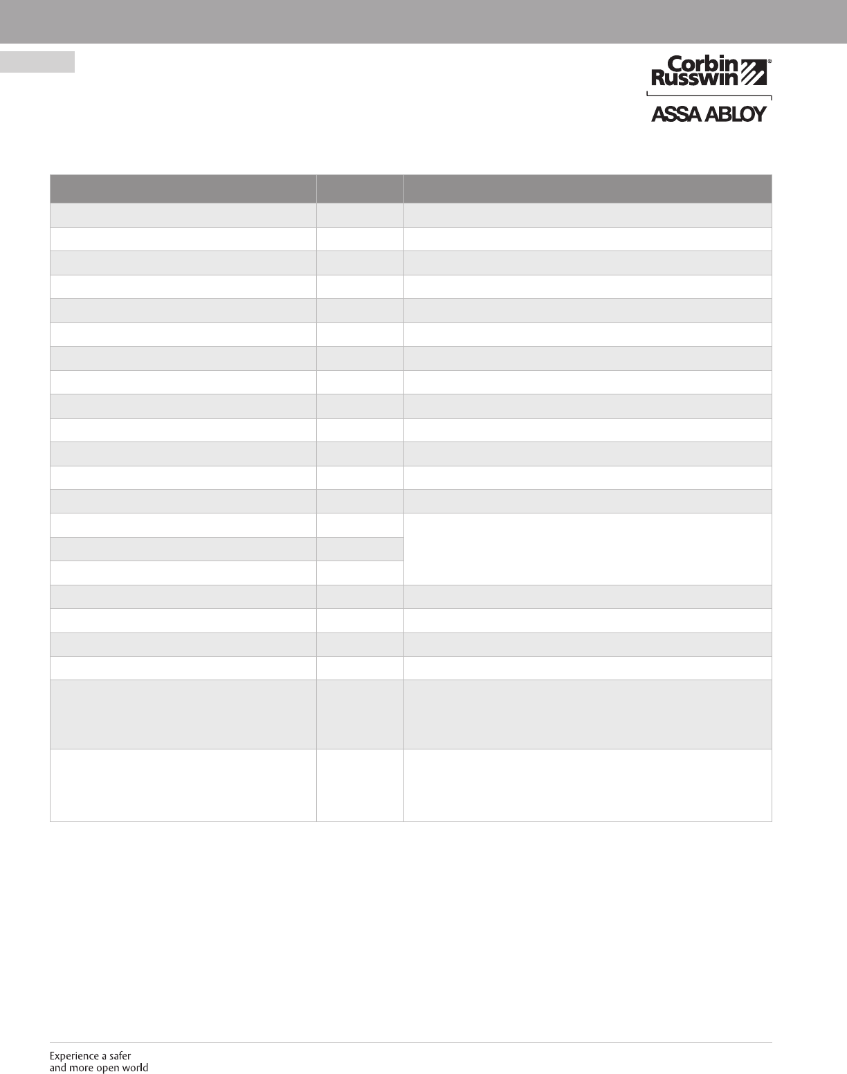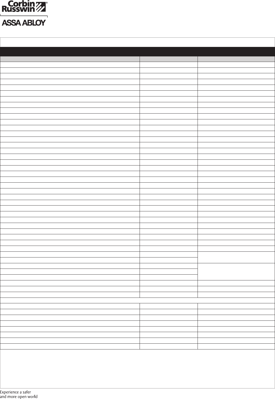 These materials are protected under US copyright laws. All contents current at time of publication. Corbin Russwin Inc., an ASSA ABLOY Group company reserves the right to change availability of any item in this
