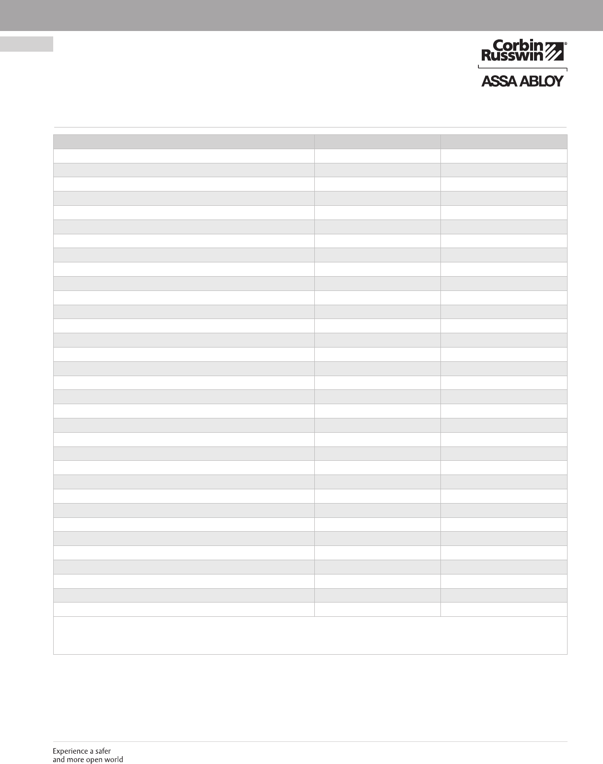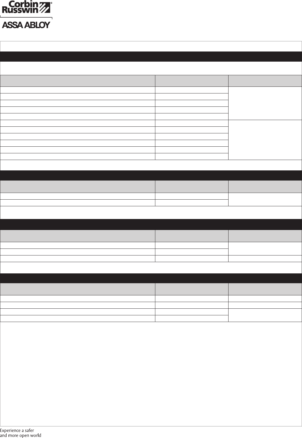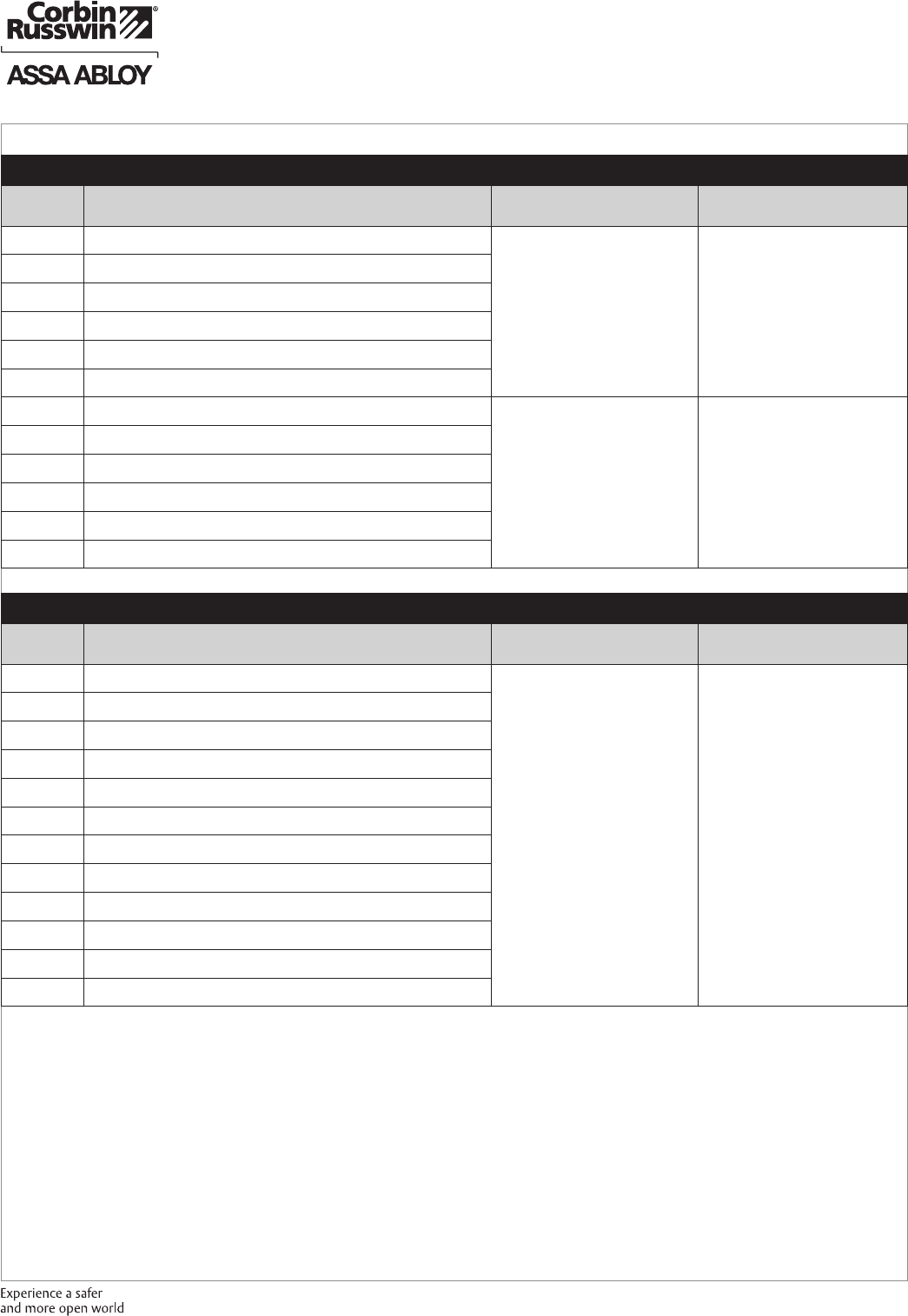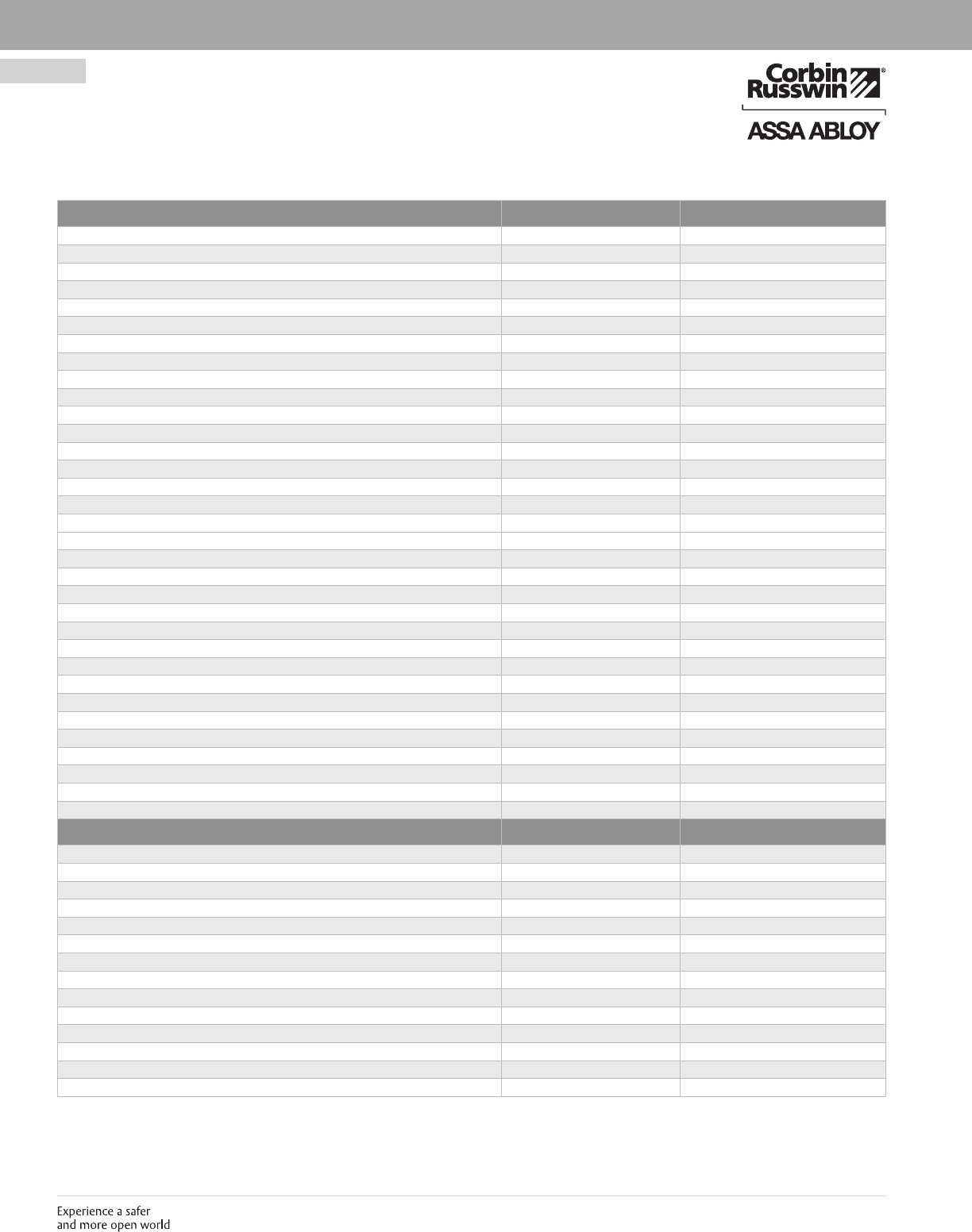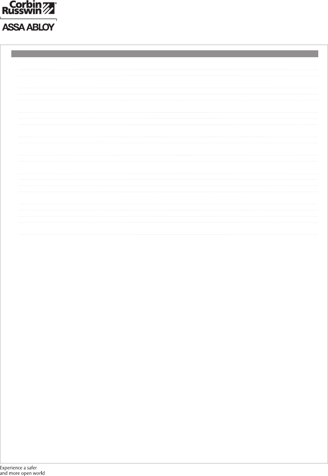 These materials are protected under US copyright laws. All contents current at time of publication. Corbin Russwin Inc., an ASSA ABLOY Group company reserves the right to change availability of any item in this