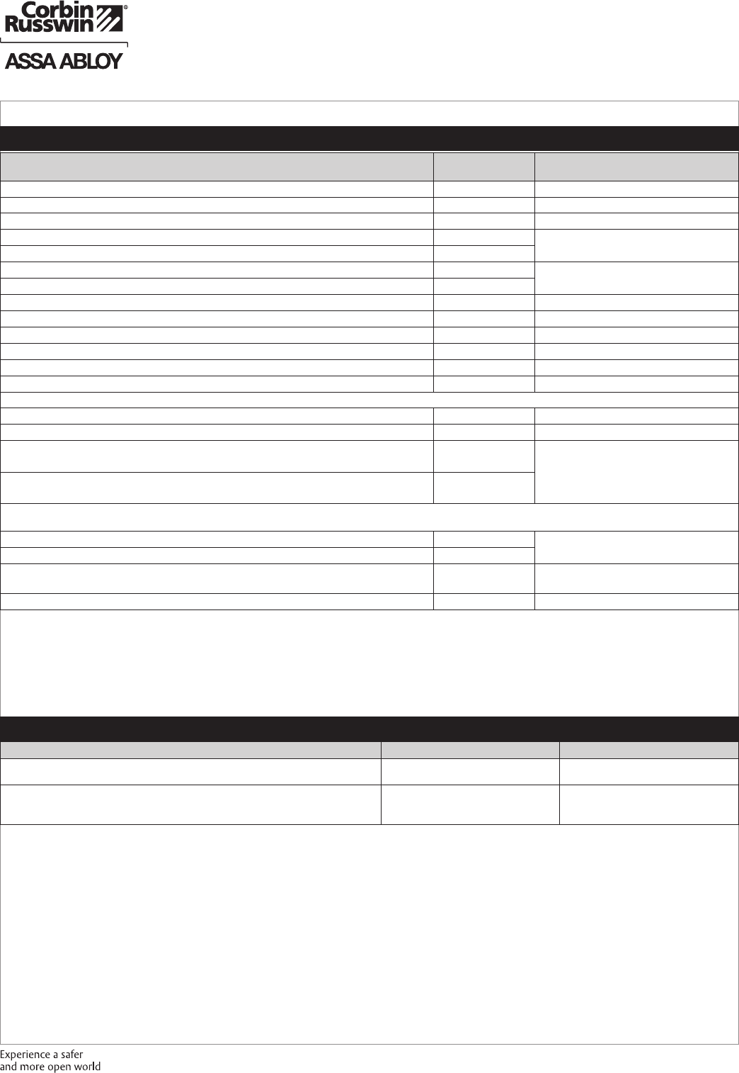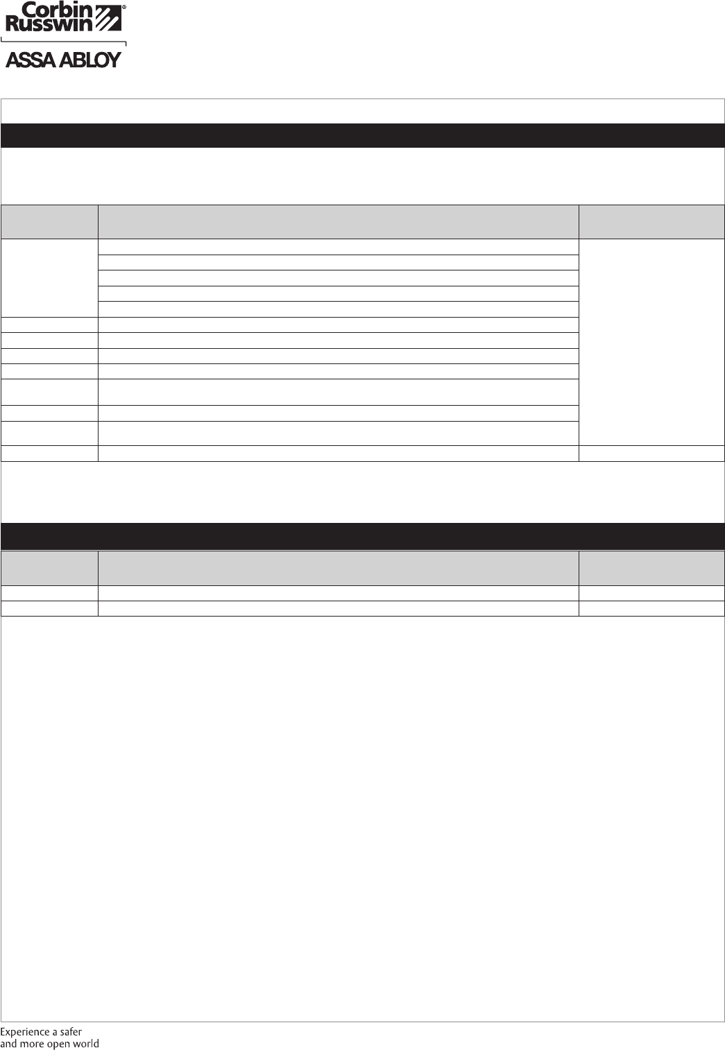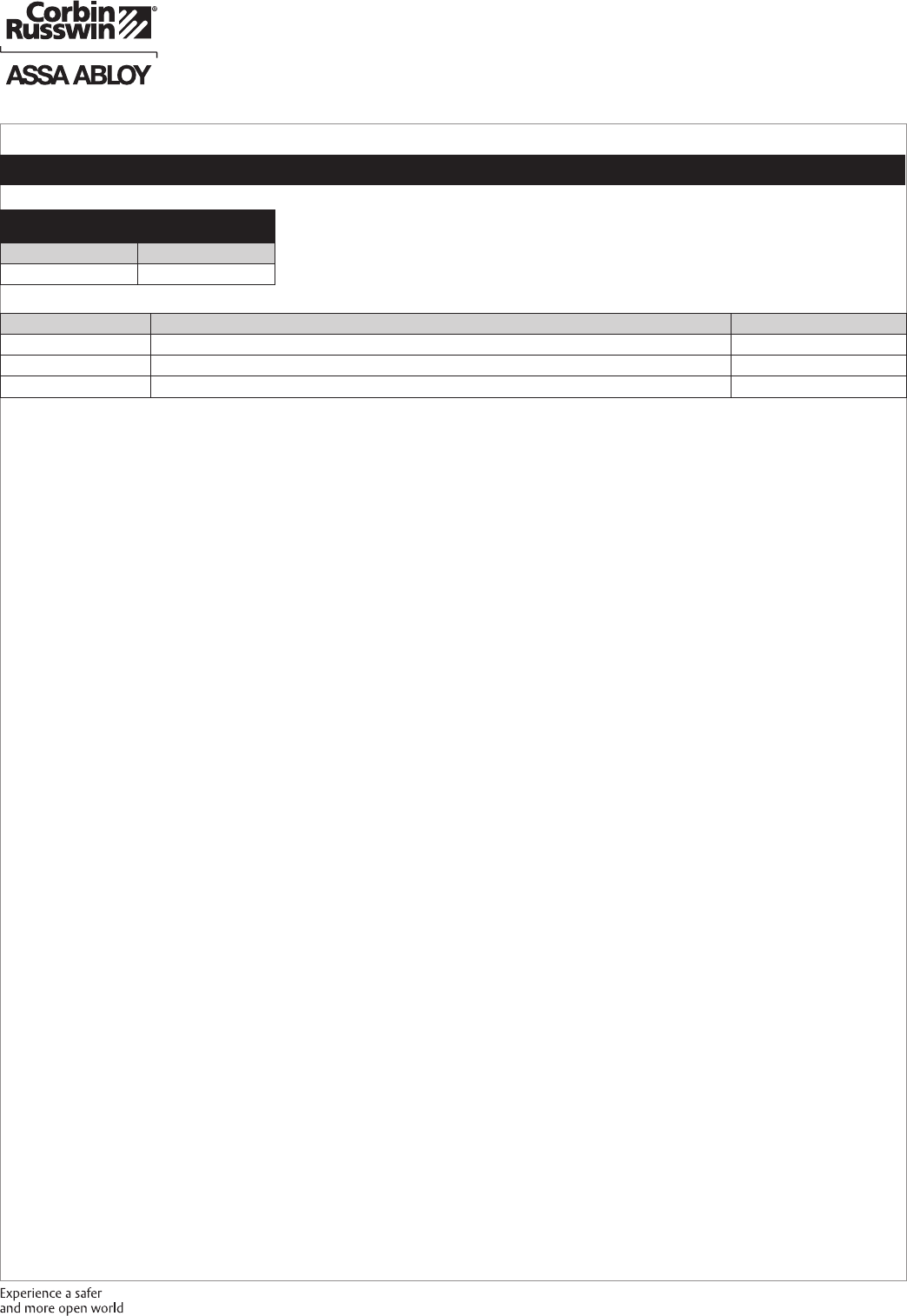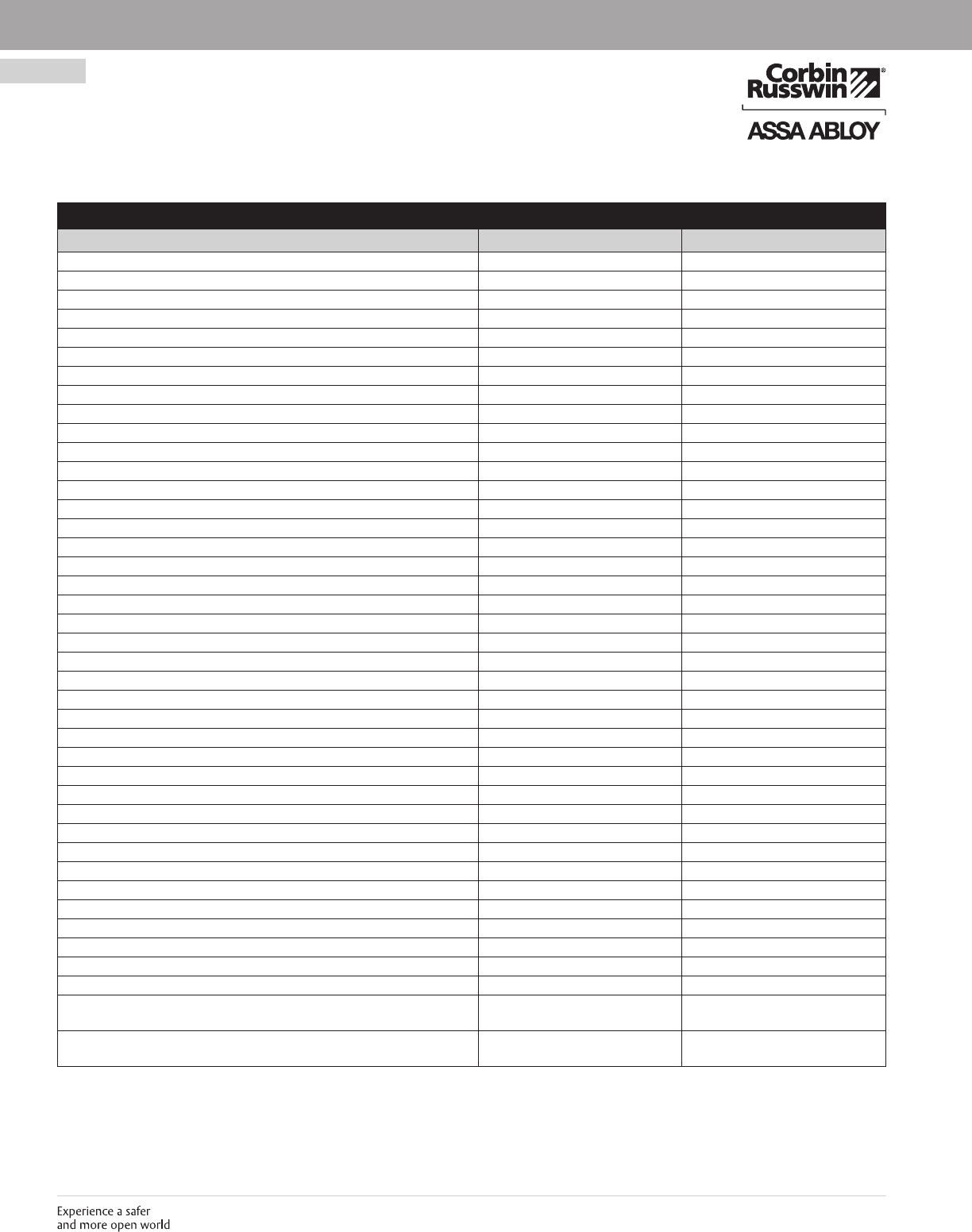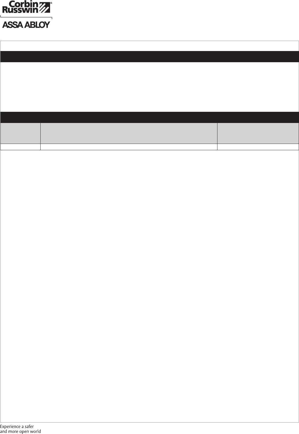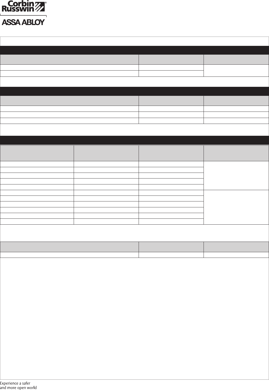 These materials are protected under US copyright laws. All contents current at time of publication. Corbin Russwin Inc., an ASSA ABLOY Group company reserves the right to change availability of any item in this