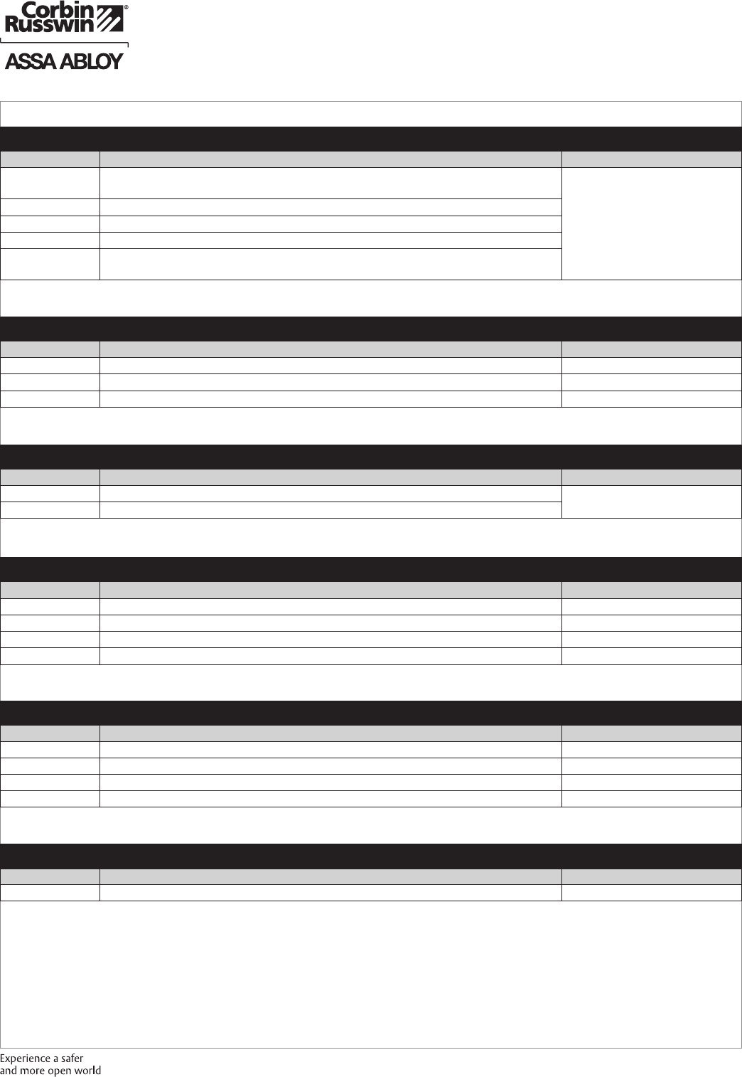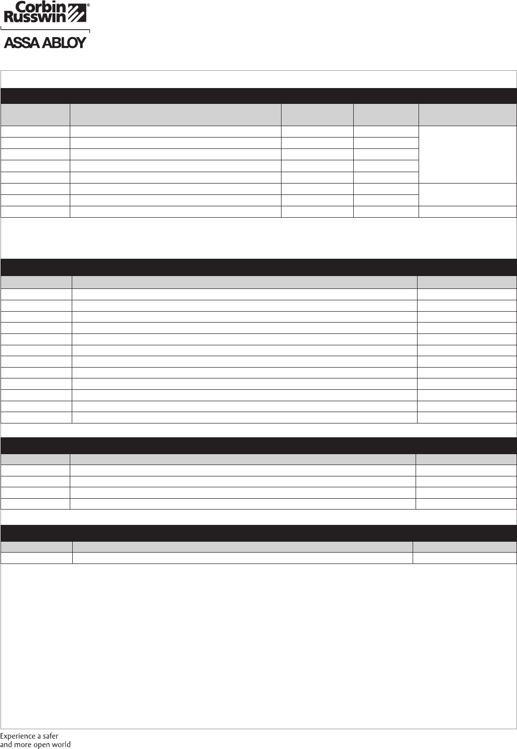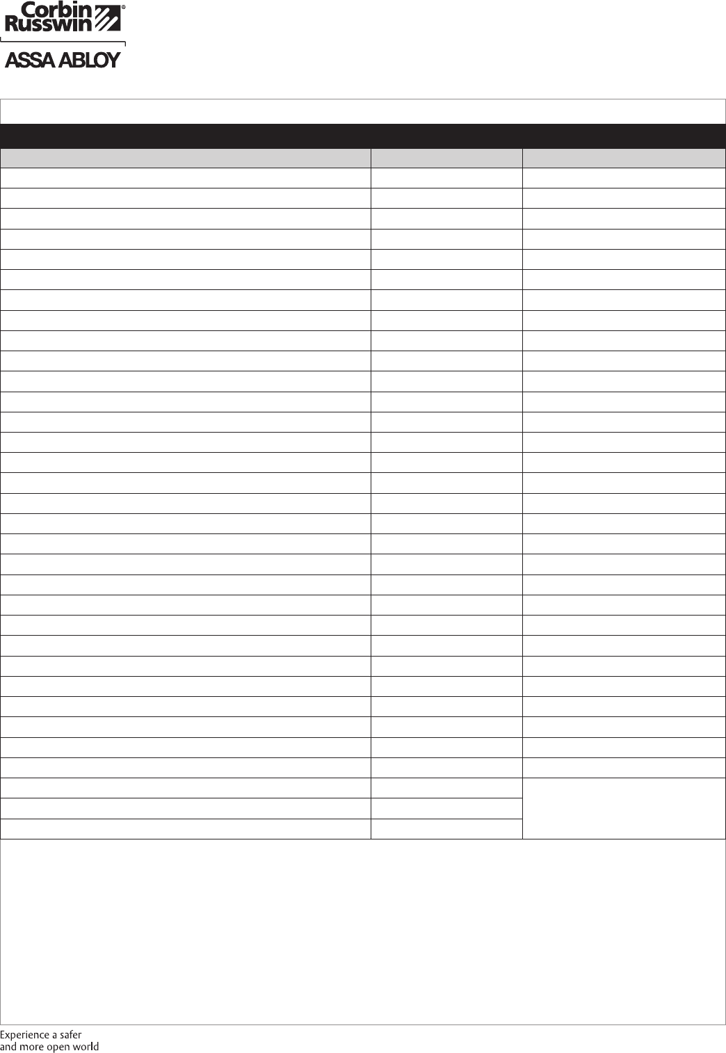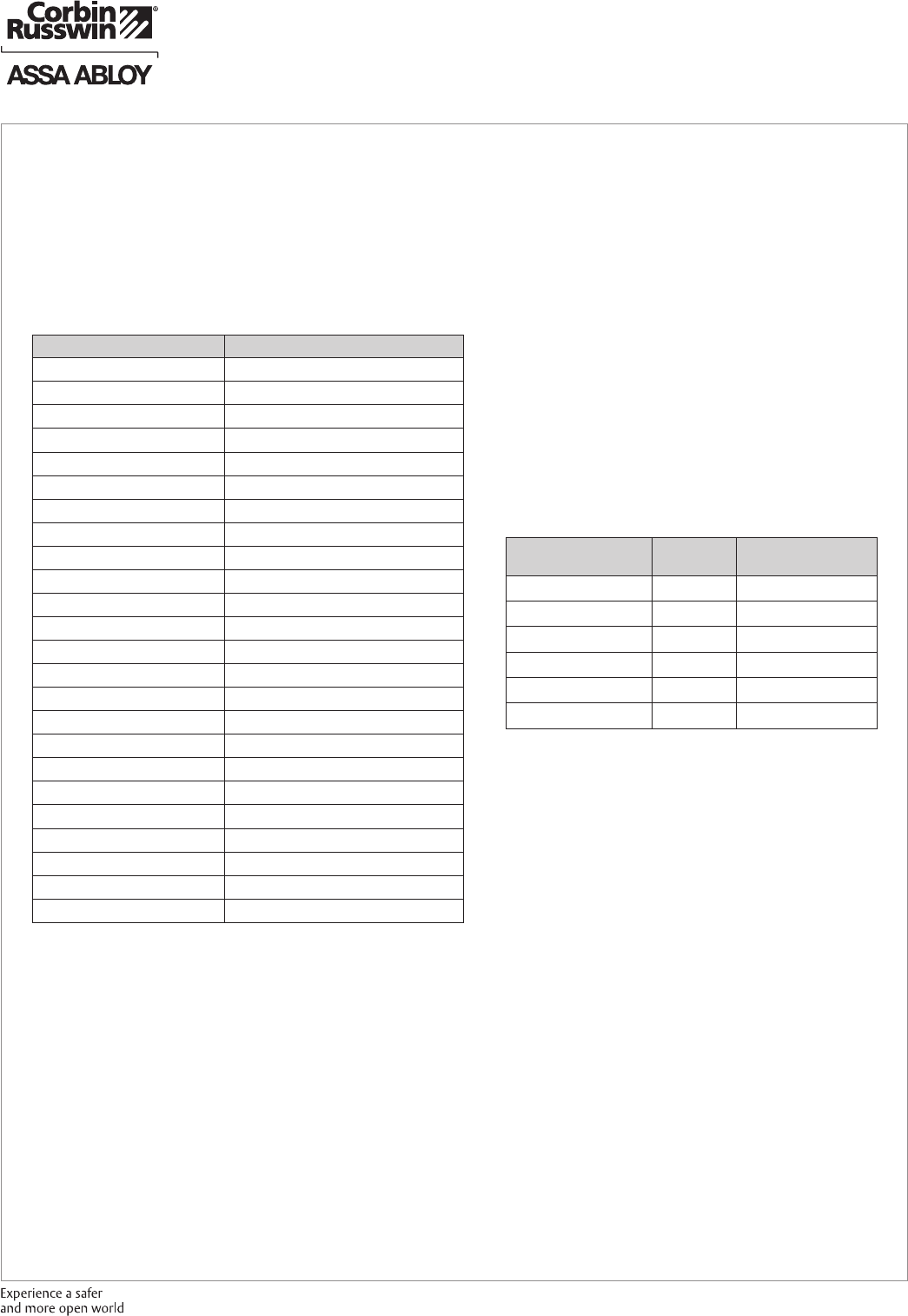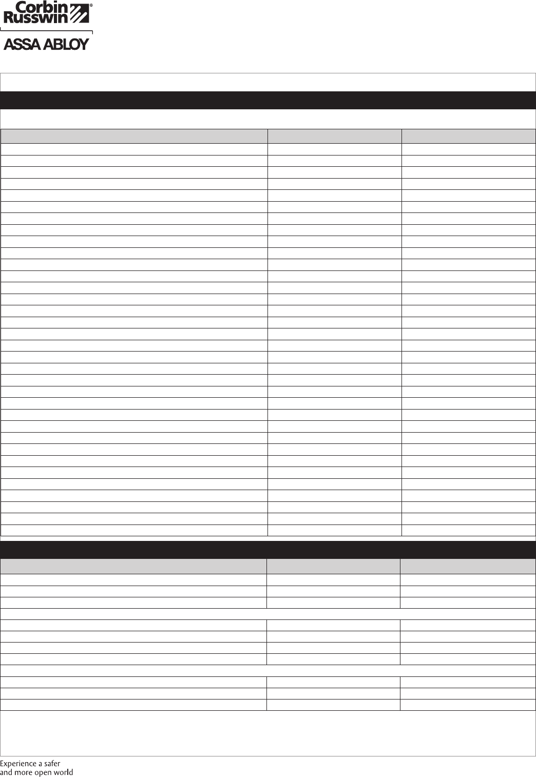 These materials are protected under US copyright laws. All contents current at time of publication. Corbin Russwin Inc., an ASSA ABLOY Group company reserves the right to change availability of any item in this