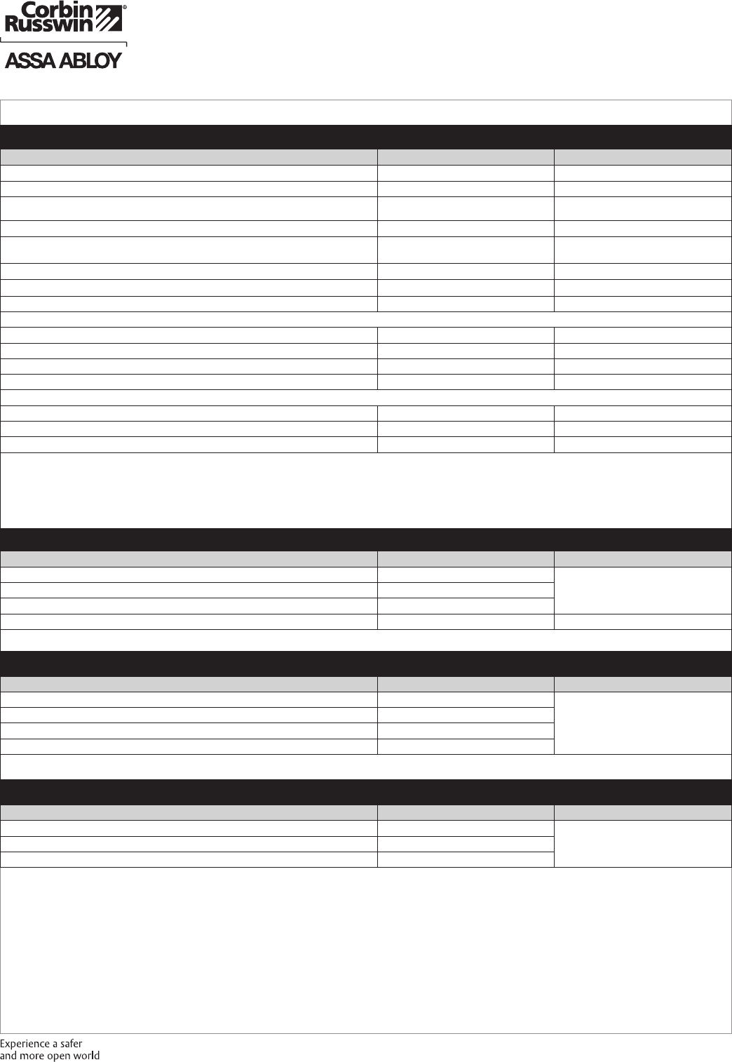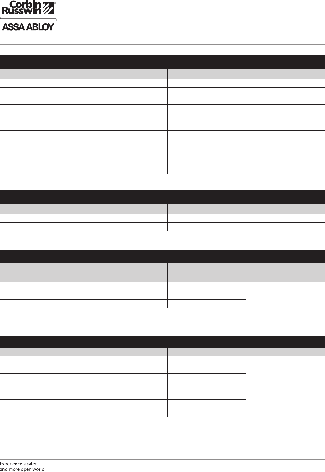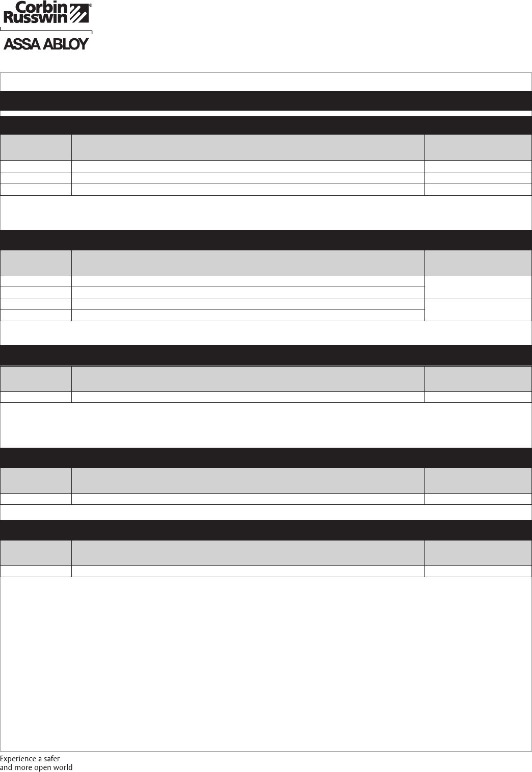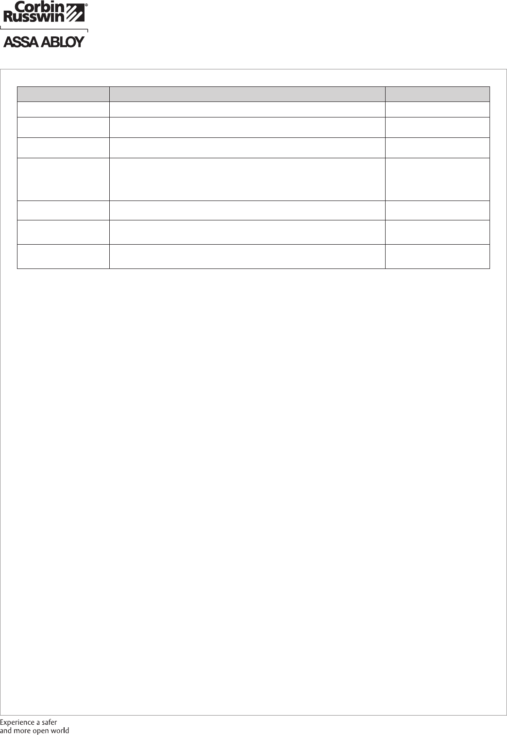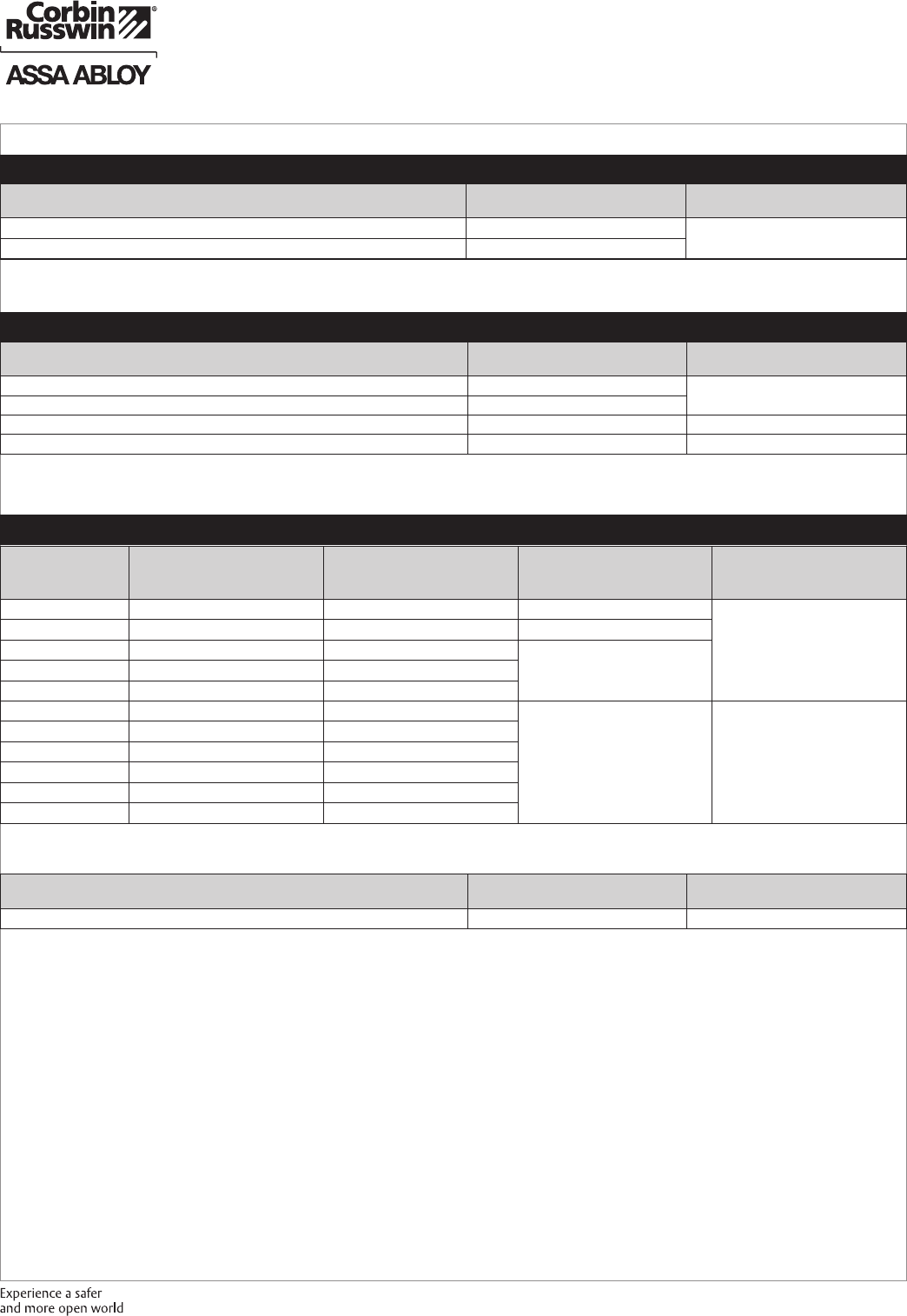 These materials are protected under US copyright laws. All contents current at time of publication. Corbin Russwin Inc., an ASSA ABLOY Group company reserves the right to change availability of any item in this