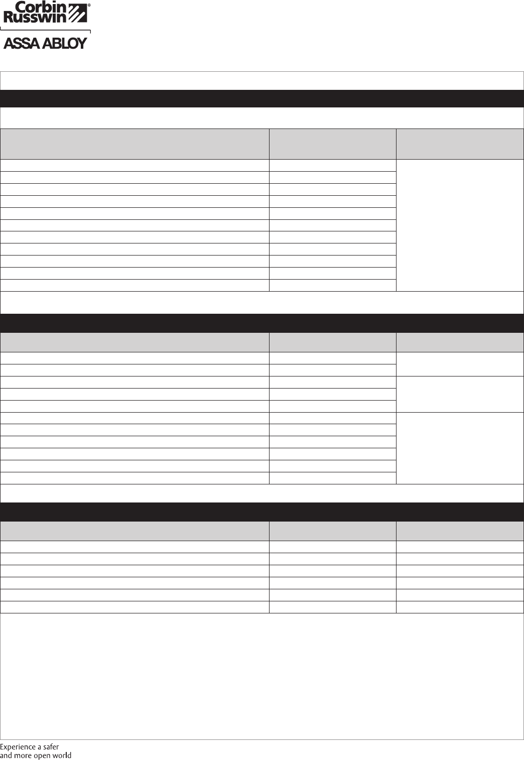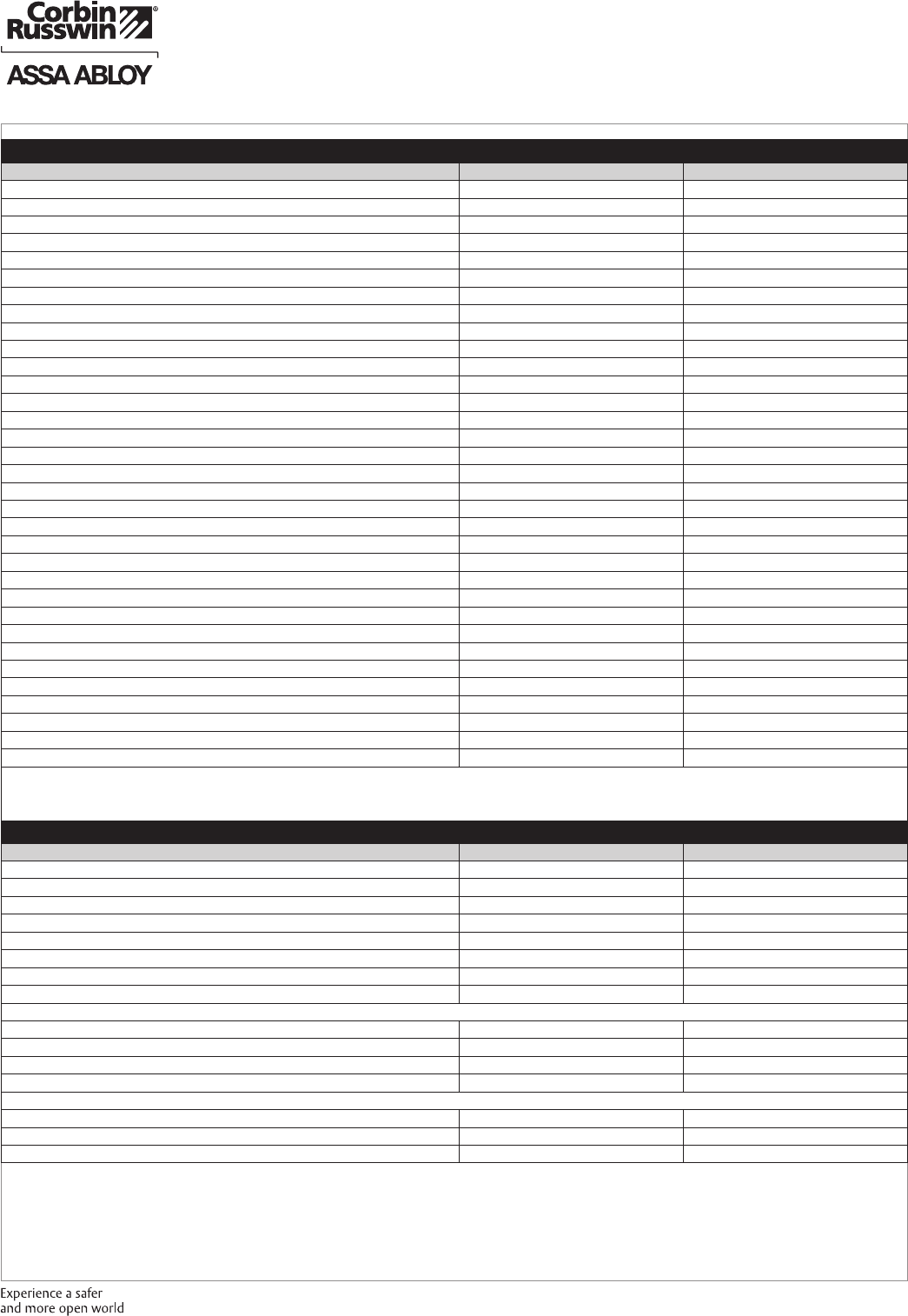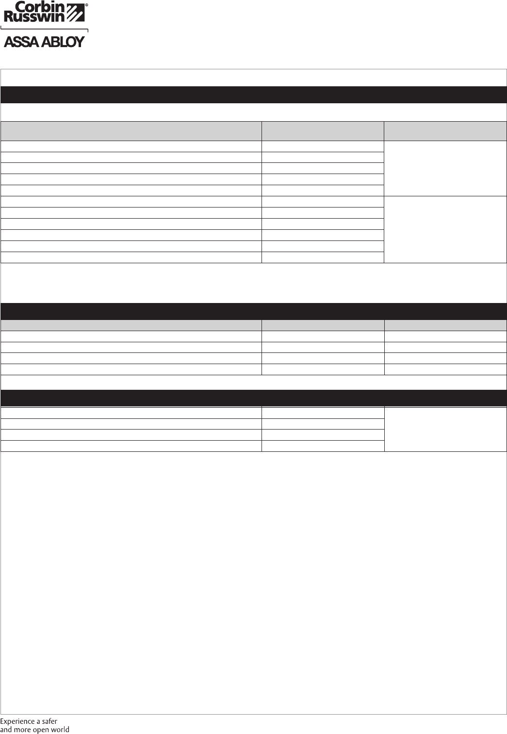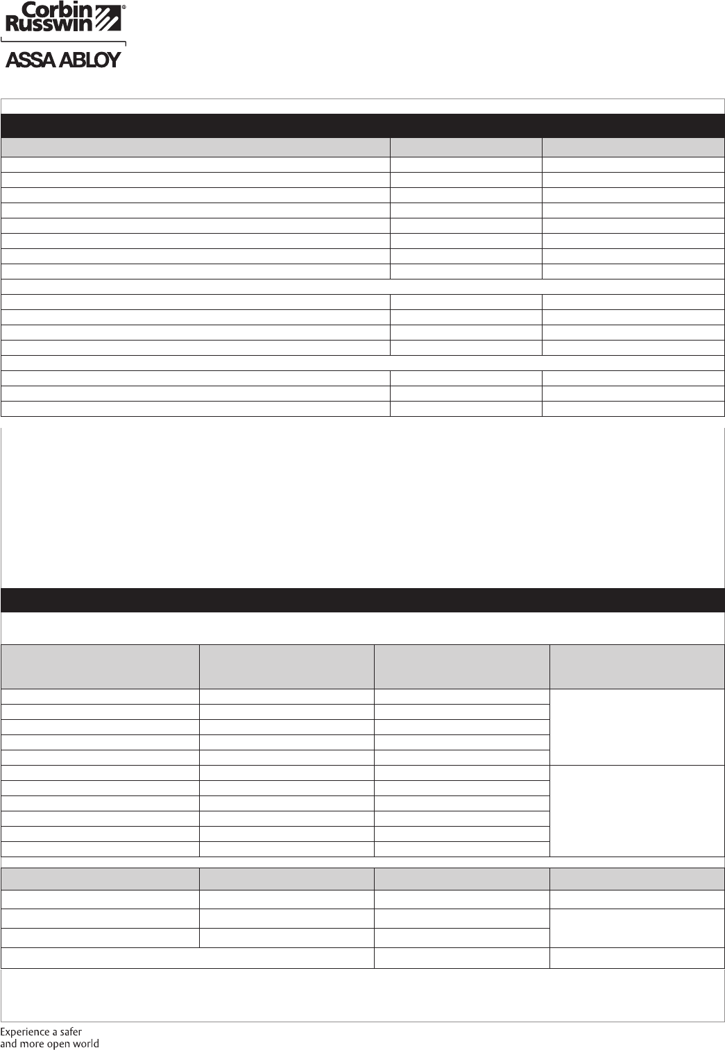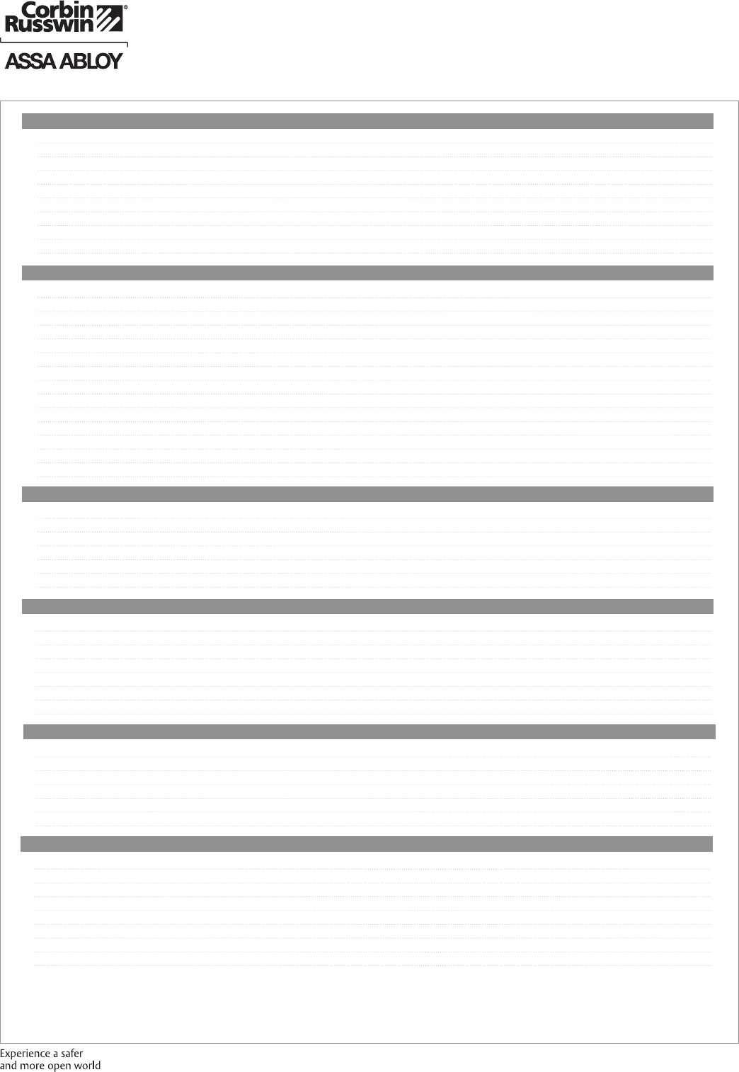 These materials are protected under US copyright laws. All contents current at time of publication. Corbin Russwin Inc., an ASSA ABLOY Group company reserves the right to change availability of any item in this