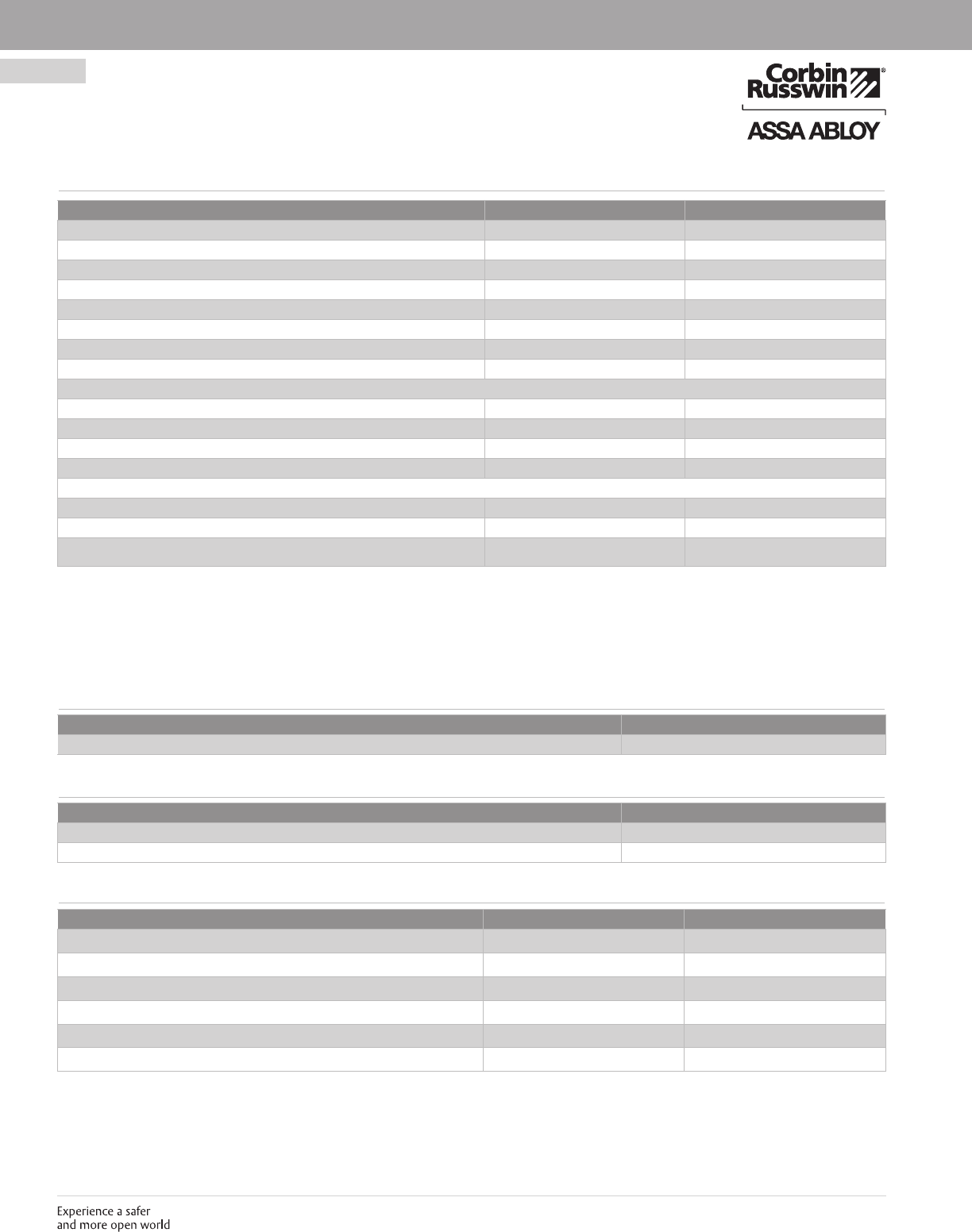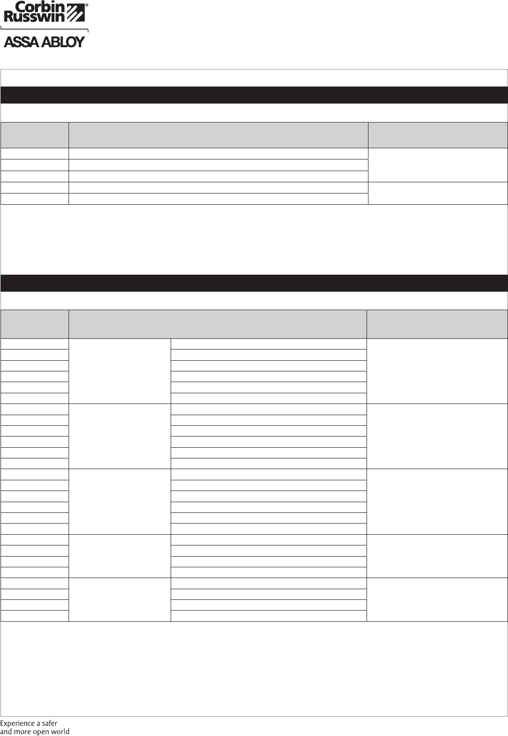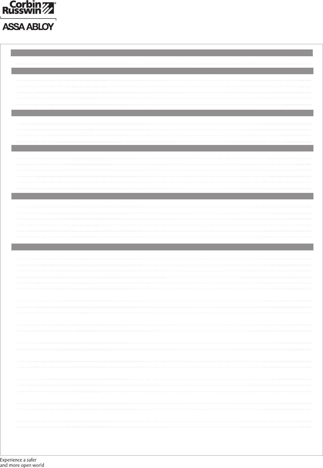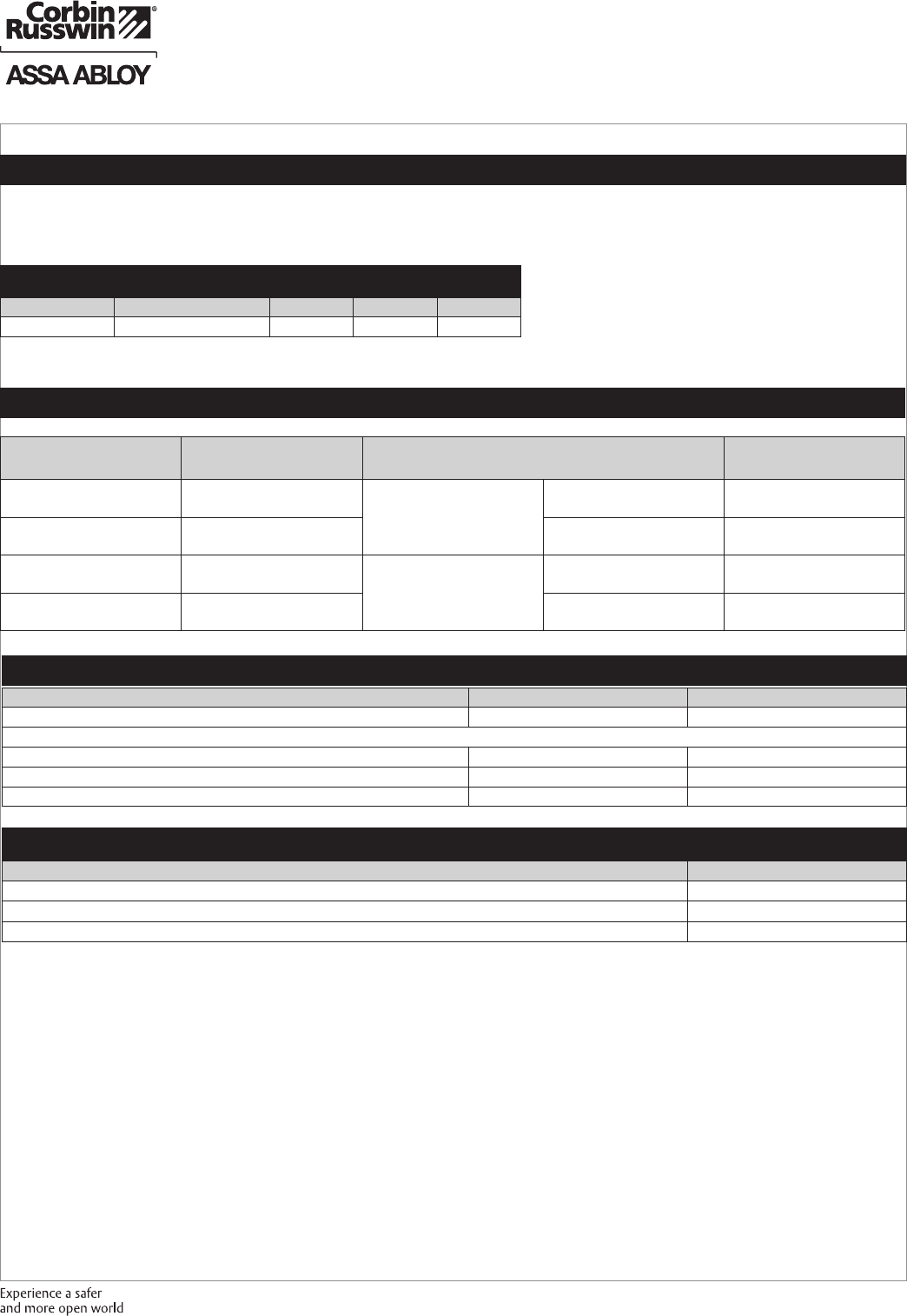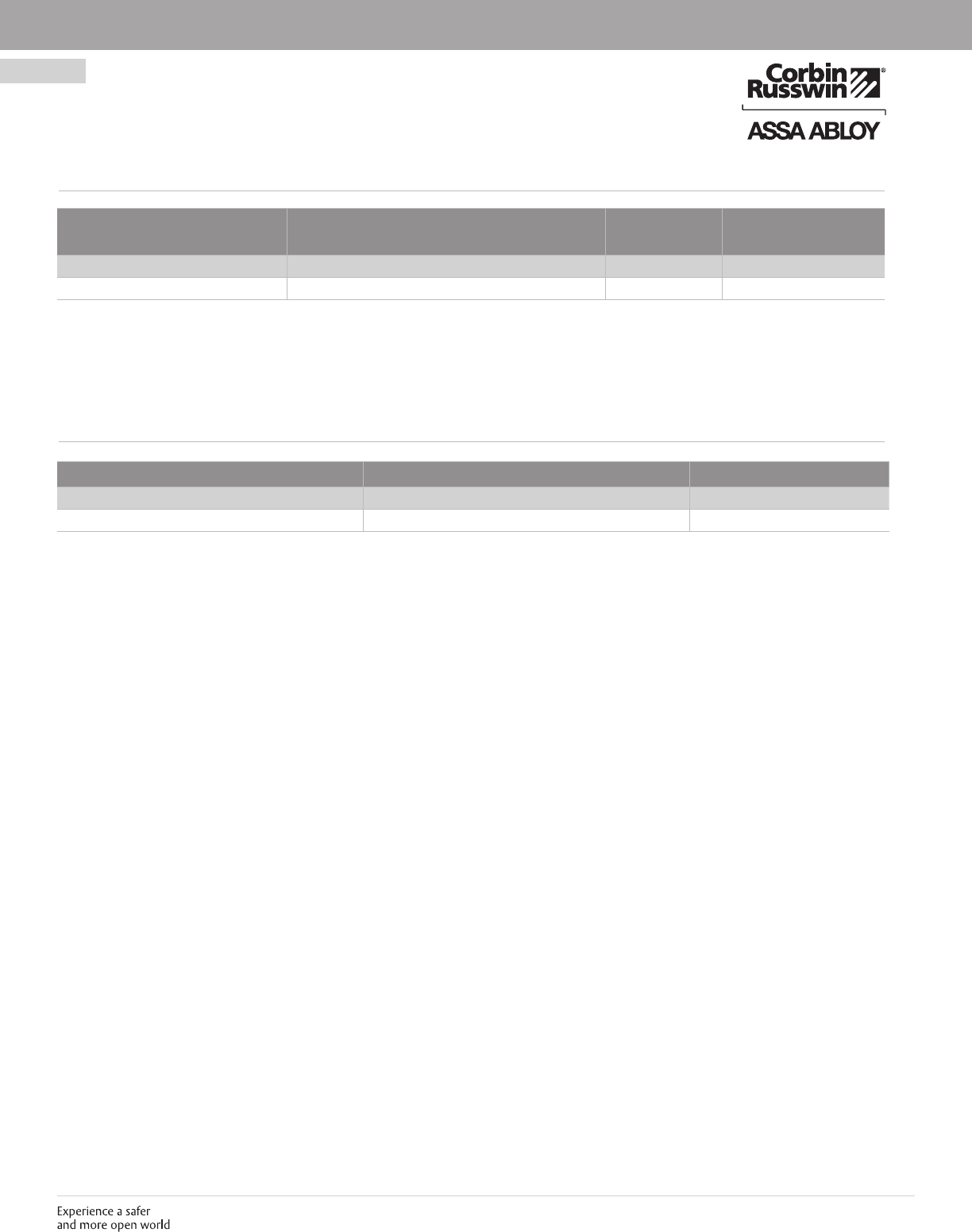These materials are protected under US copyright laws. All contents current at time of publication. Corbin Russwin Inc., an ASSA ABLOY Group company reserves the right to change availability of any item in this