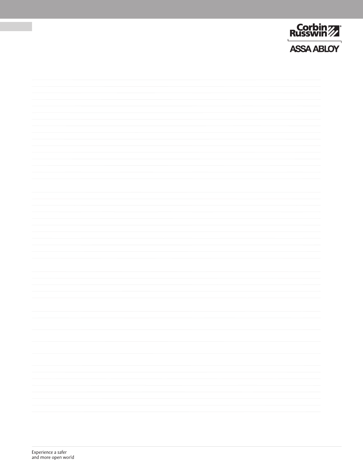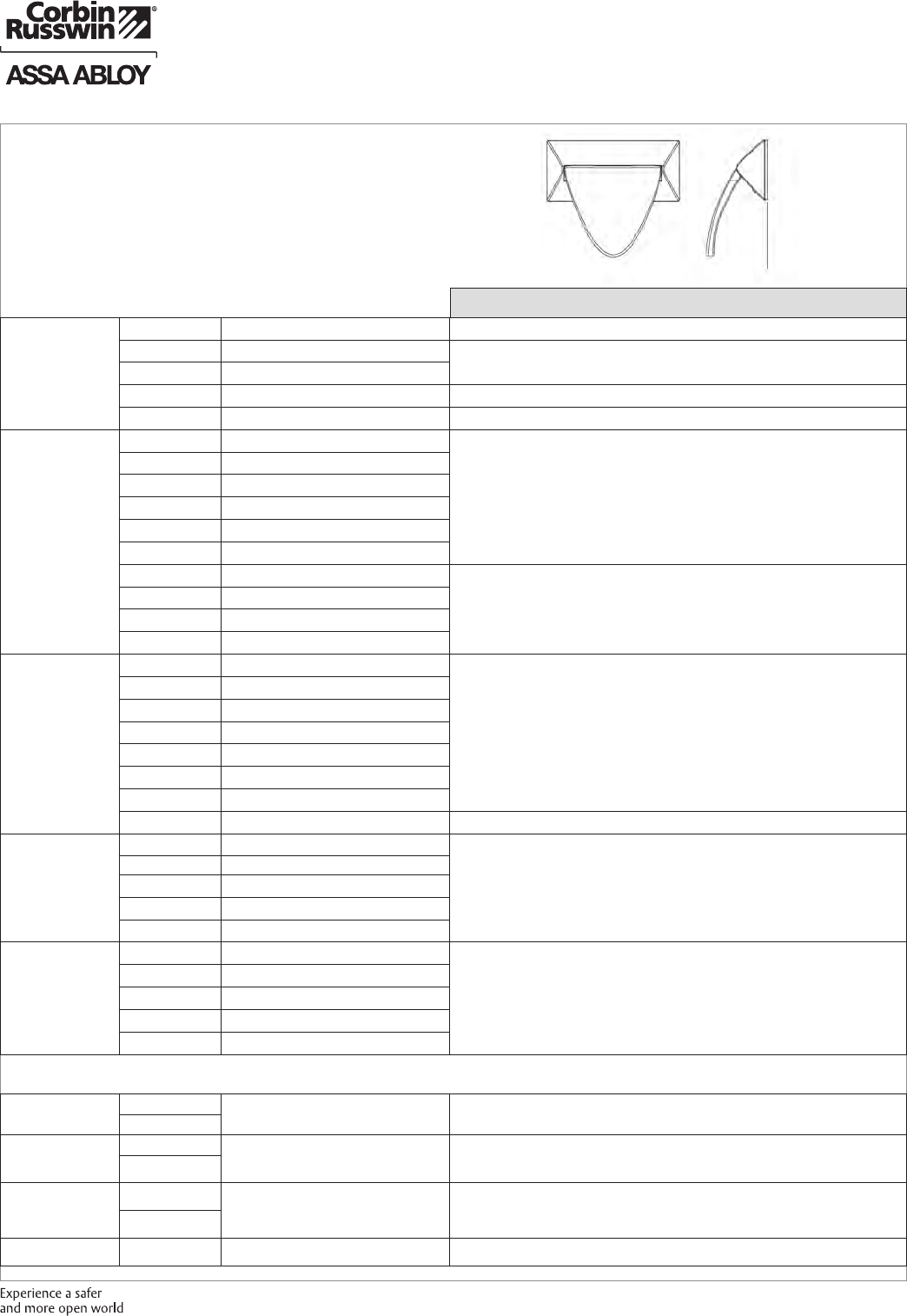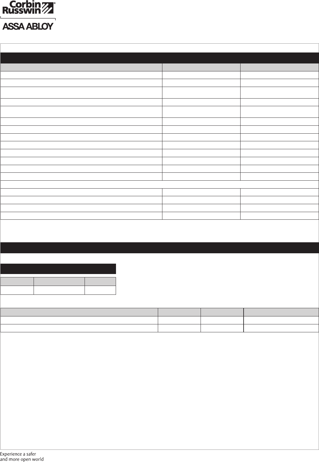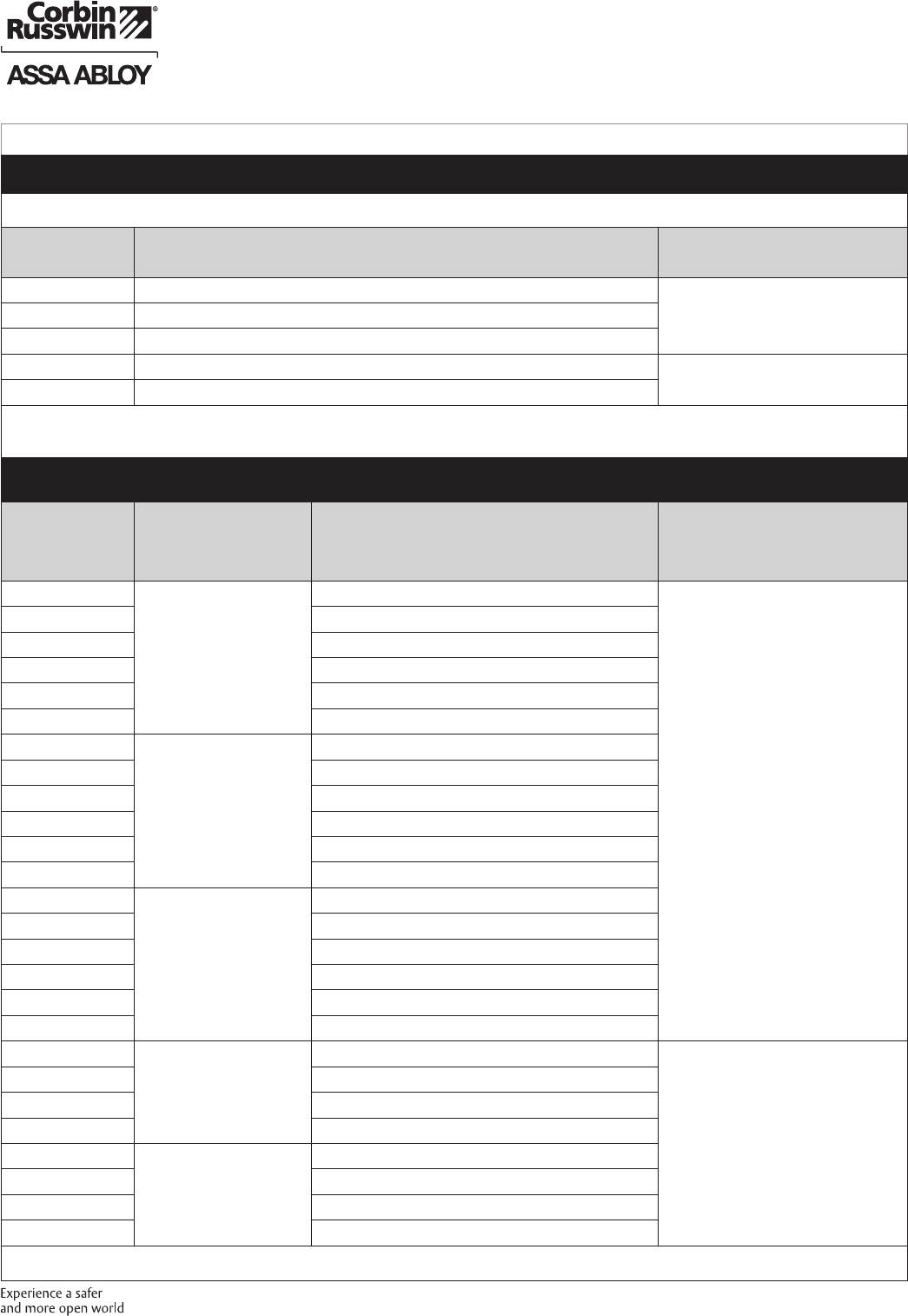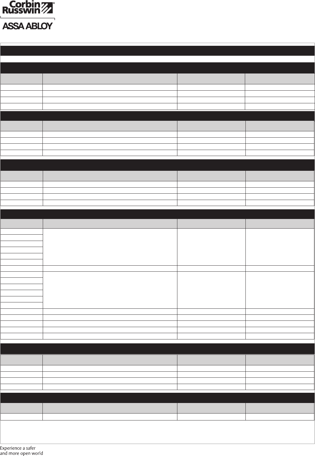 These materials are protected under US copyright laws. All contents current at time of publication. Corbin Russwin Inc., an ASSA ABLOY Group company reserves the right to change availability of any item in this