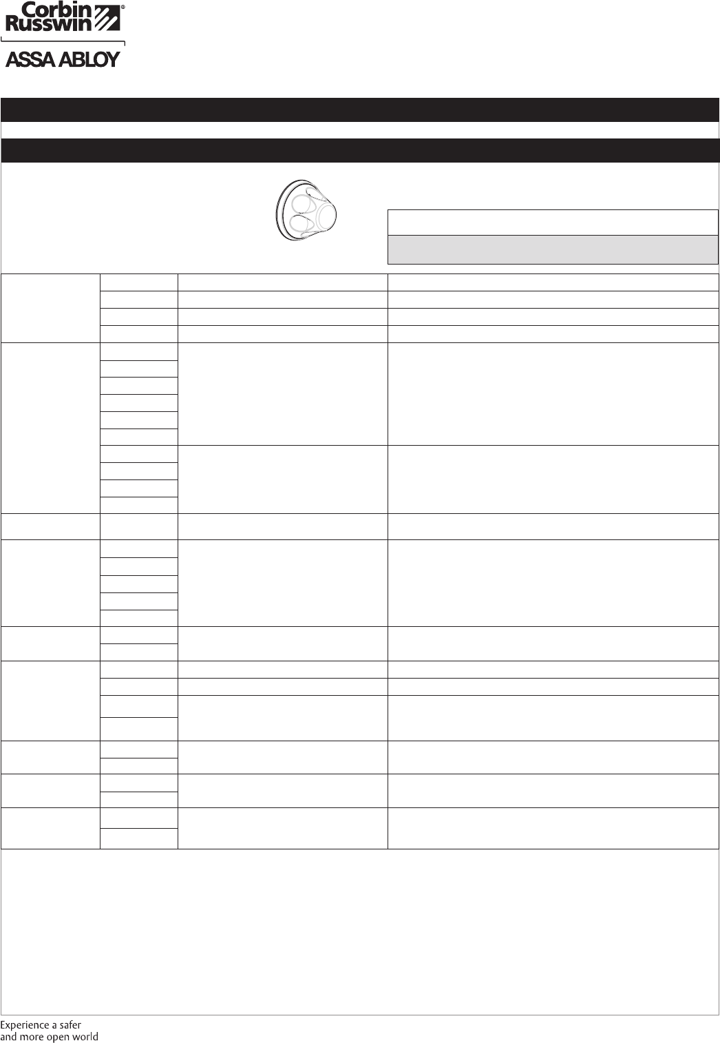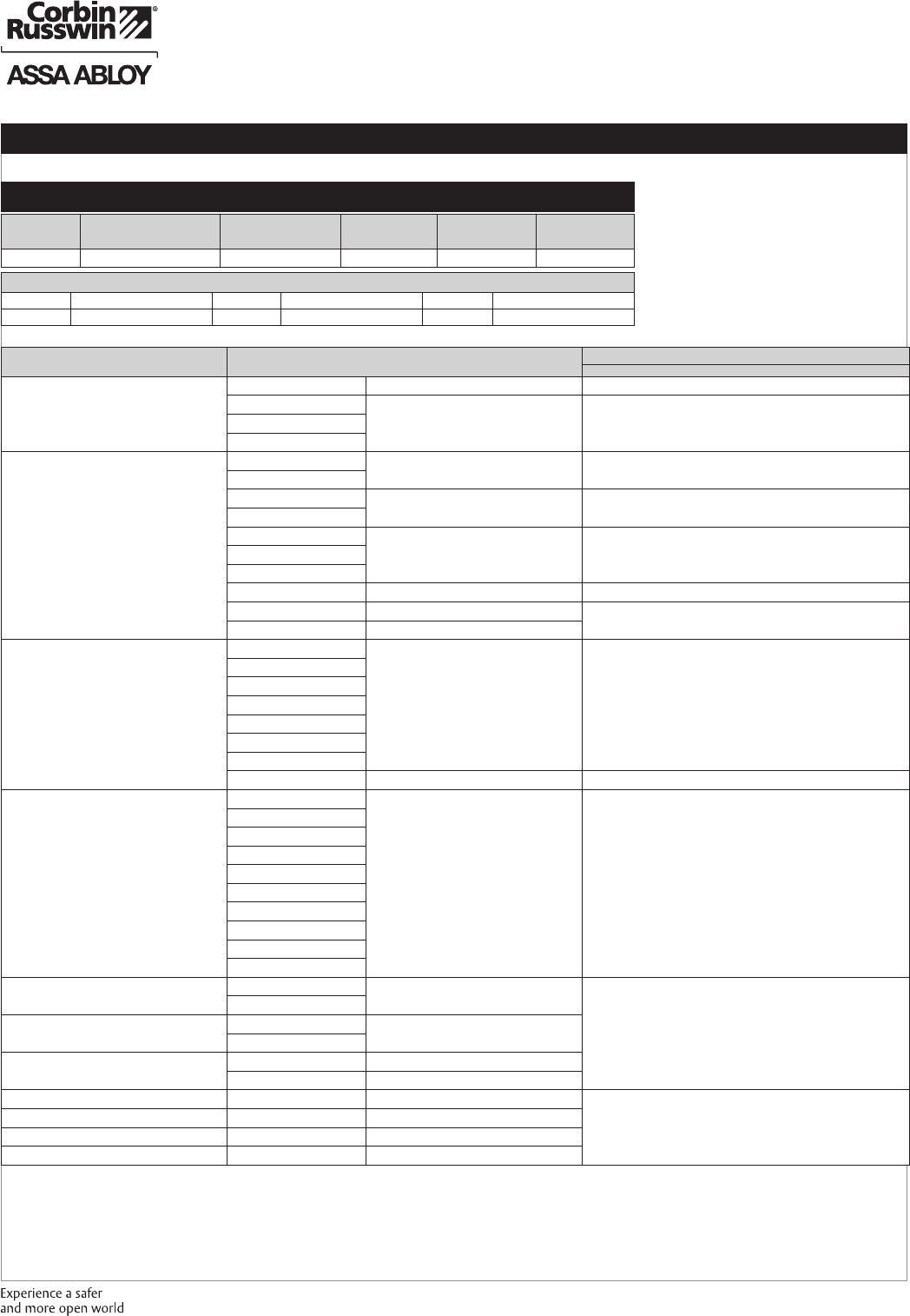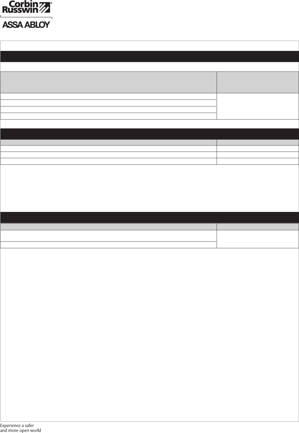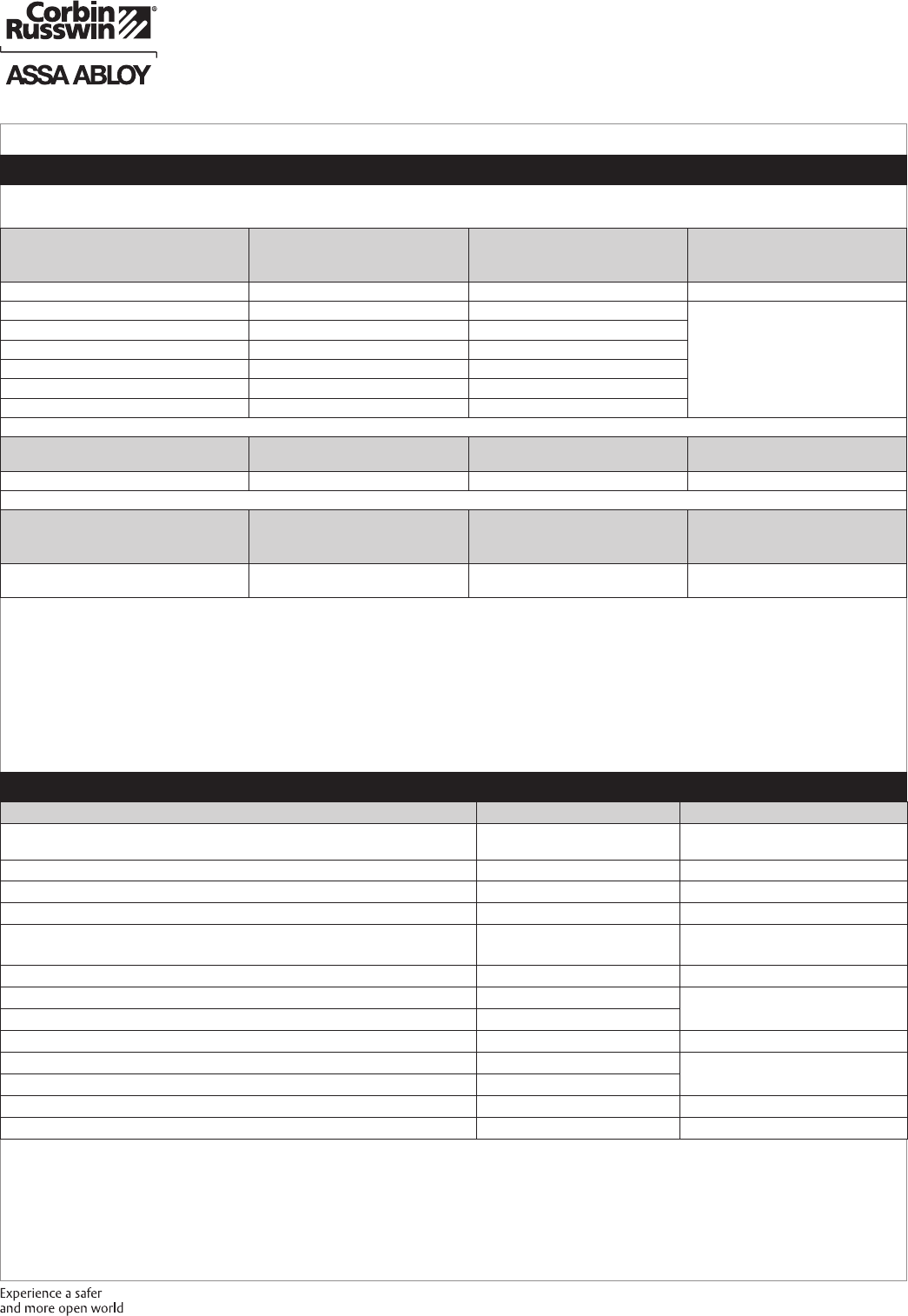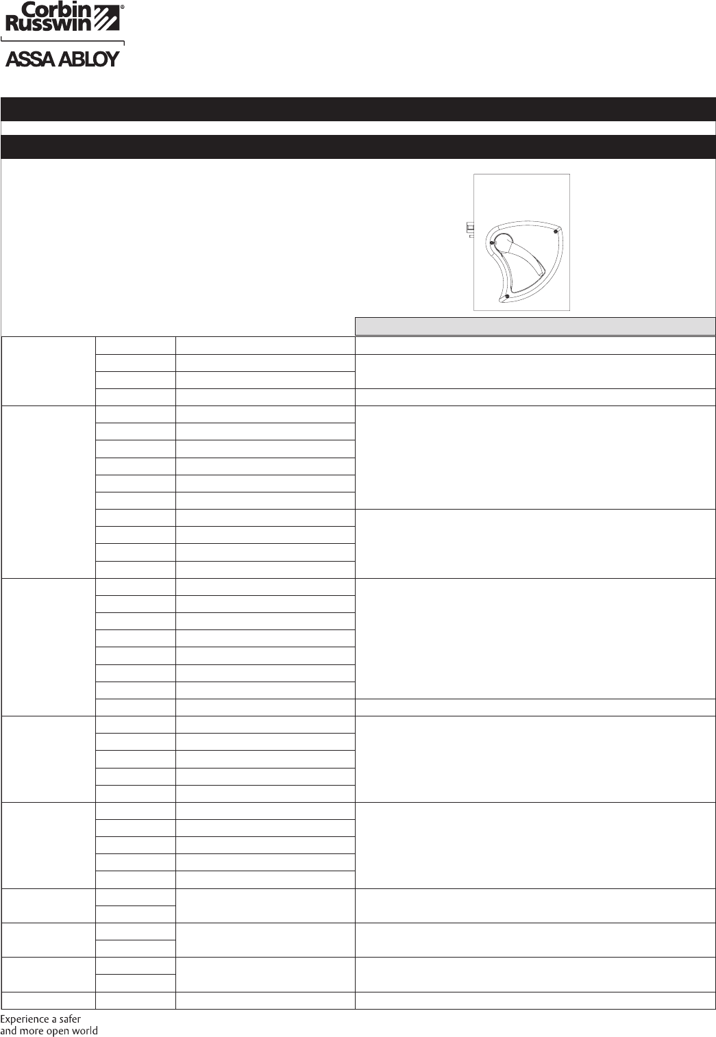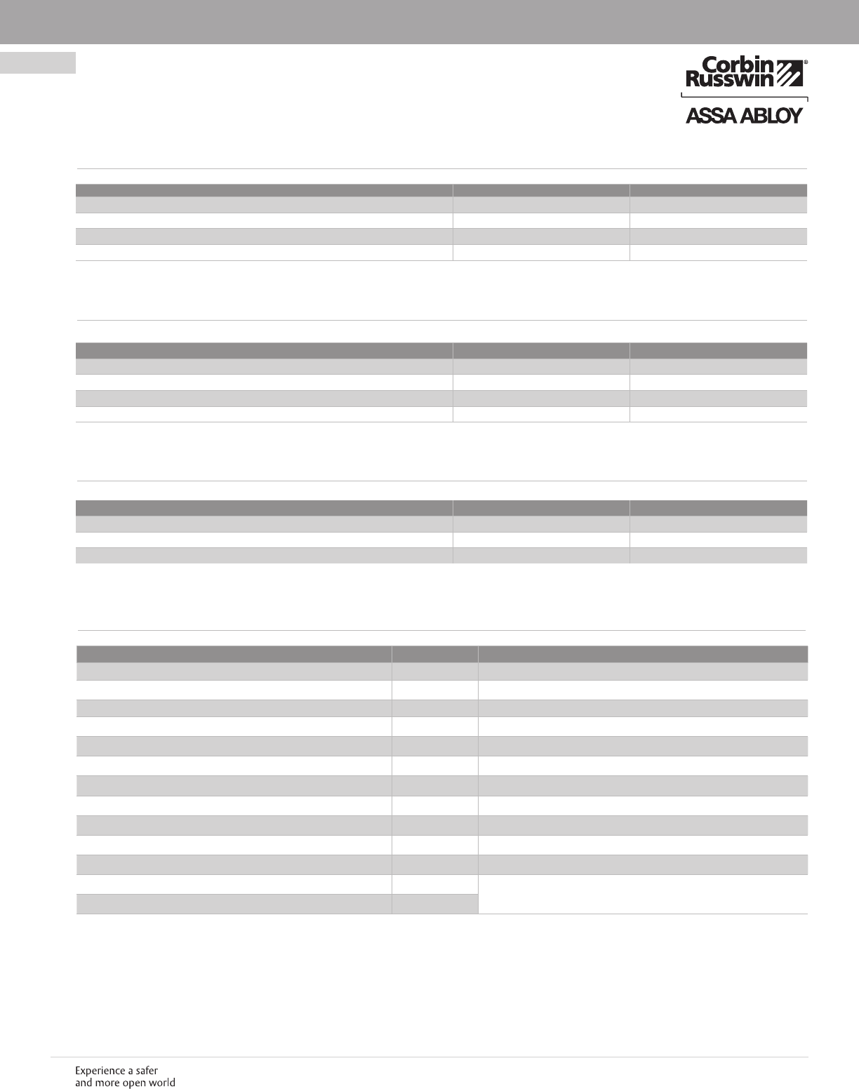 These materials are protected under US copyright laws. All contents current at time of publication. Corbin Russwin Inc., an ASSA ABLOY Group company reserves the right to change availability of any item in this