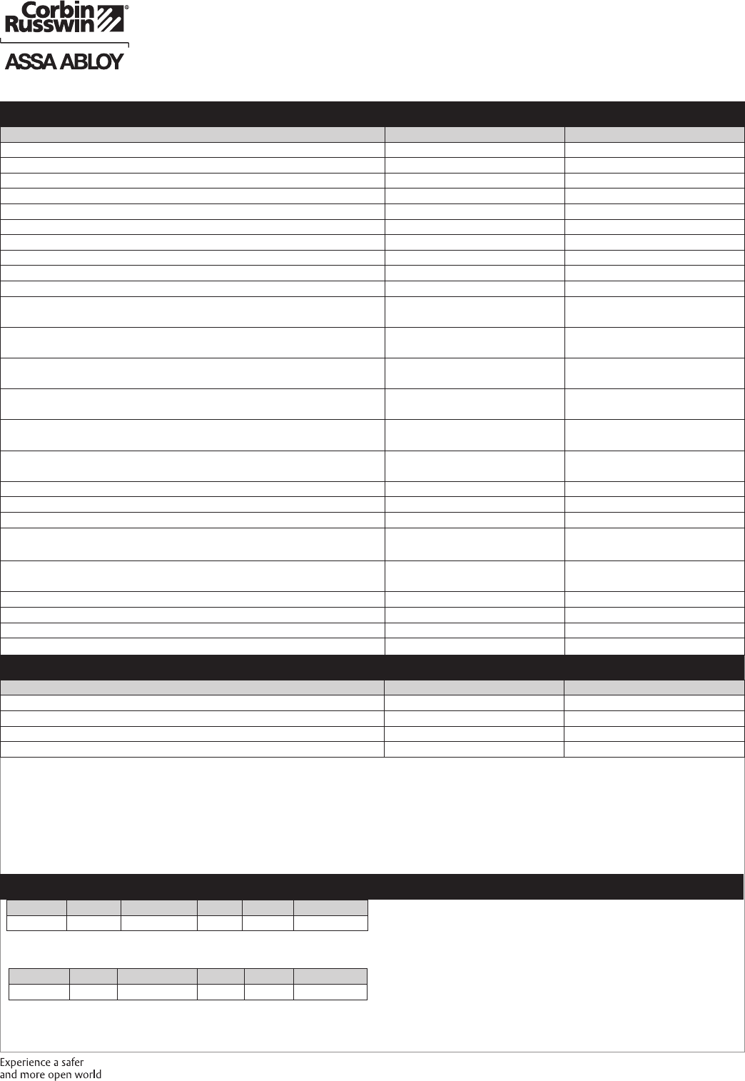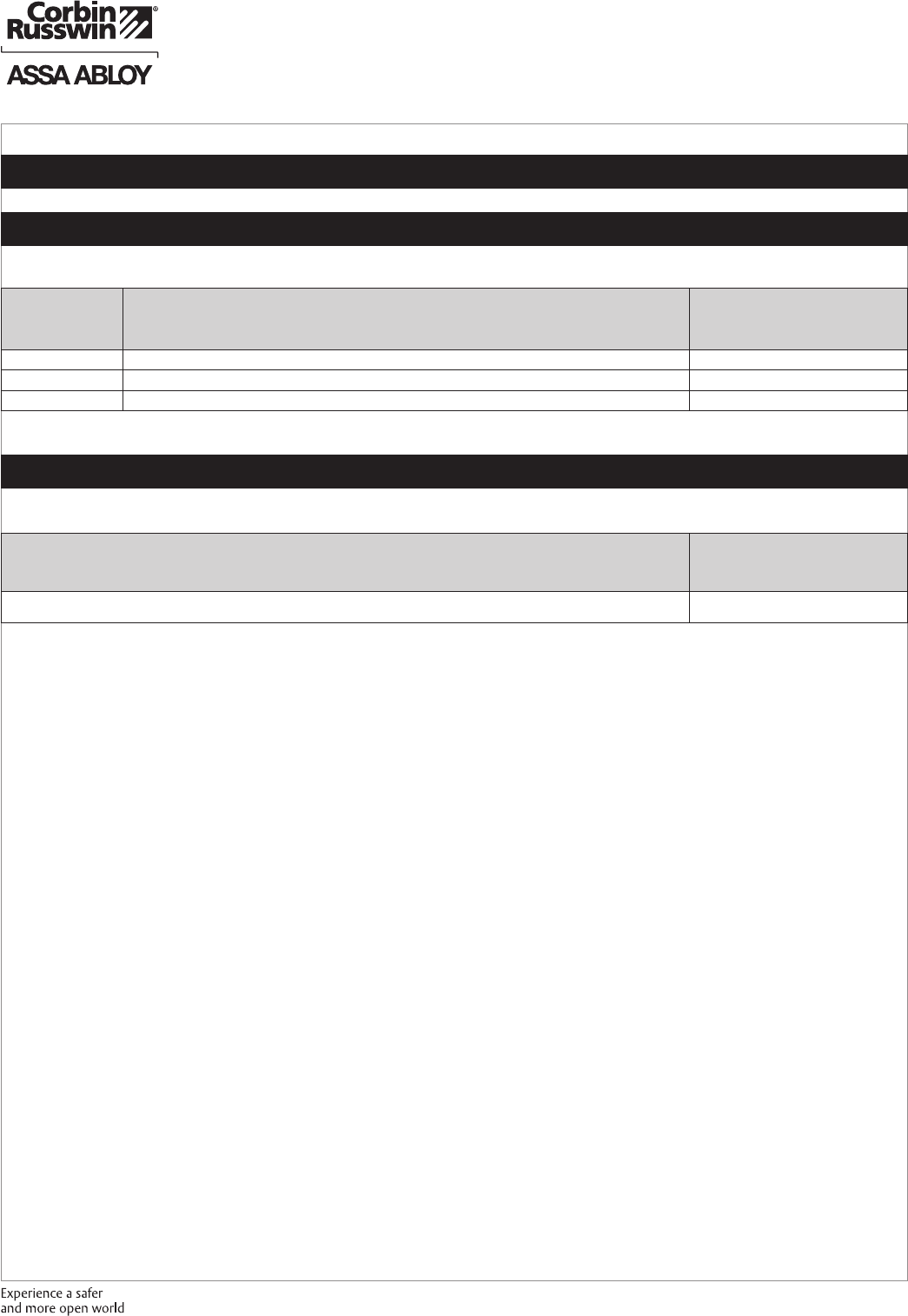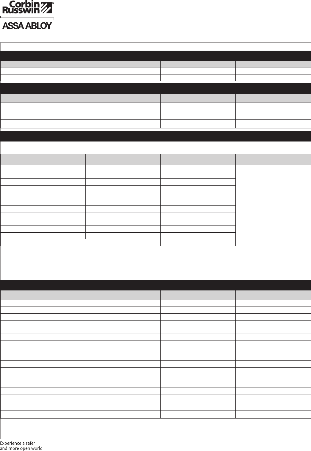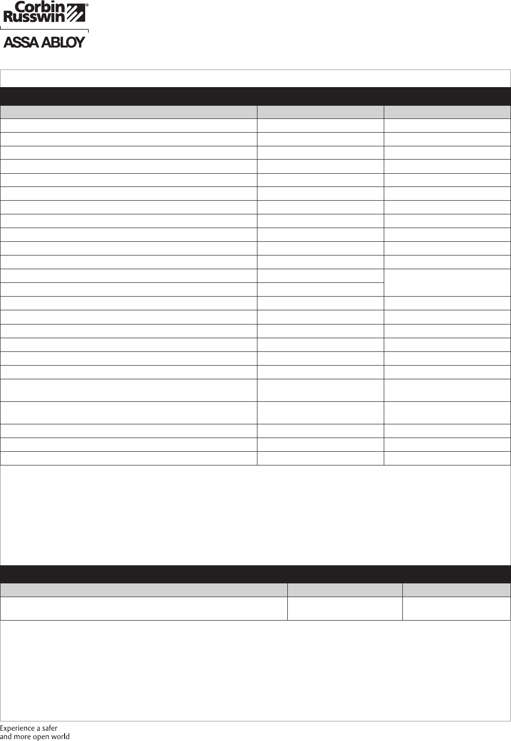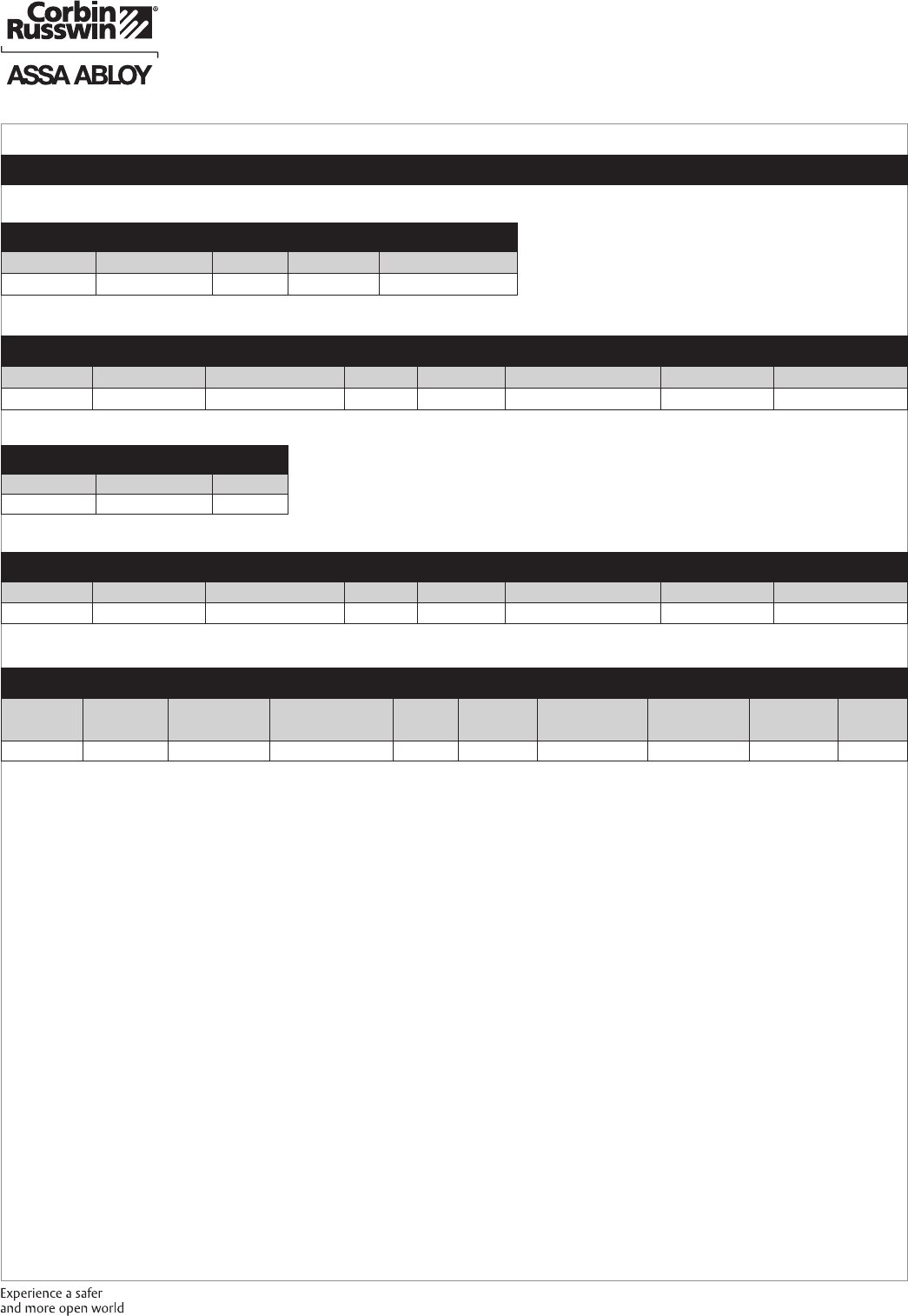 These materials are protected under US copyright laws. All contents current at time of publication. Corbin Russwin Inc., an ASSA ABLOY Group company reserves the right to change availability of any item in this