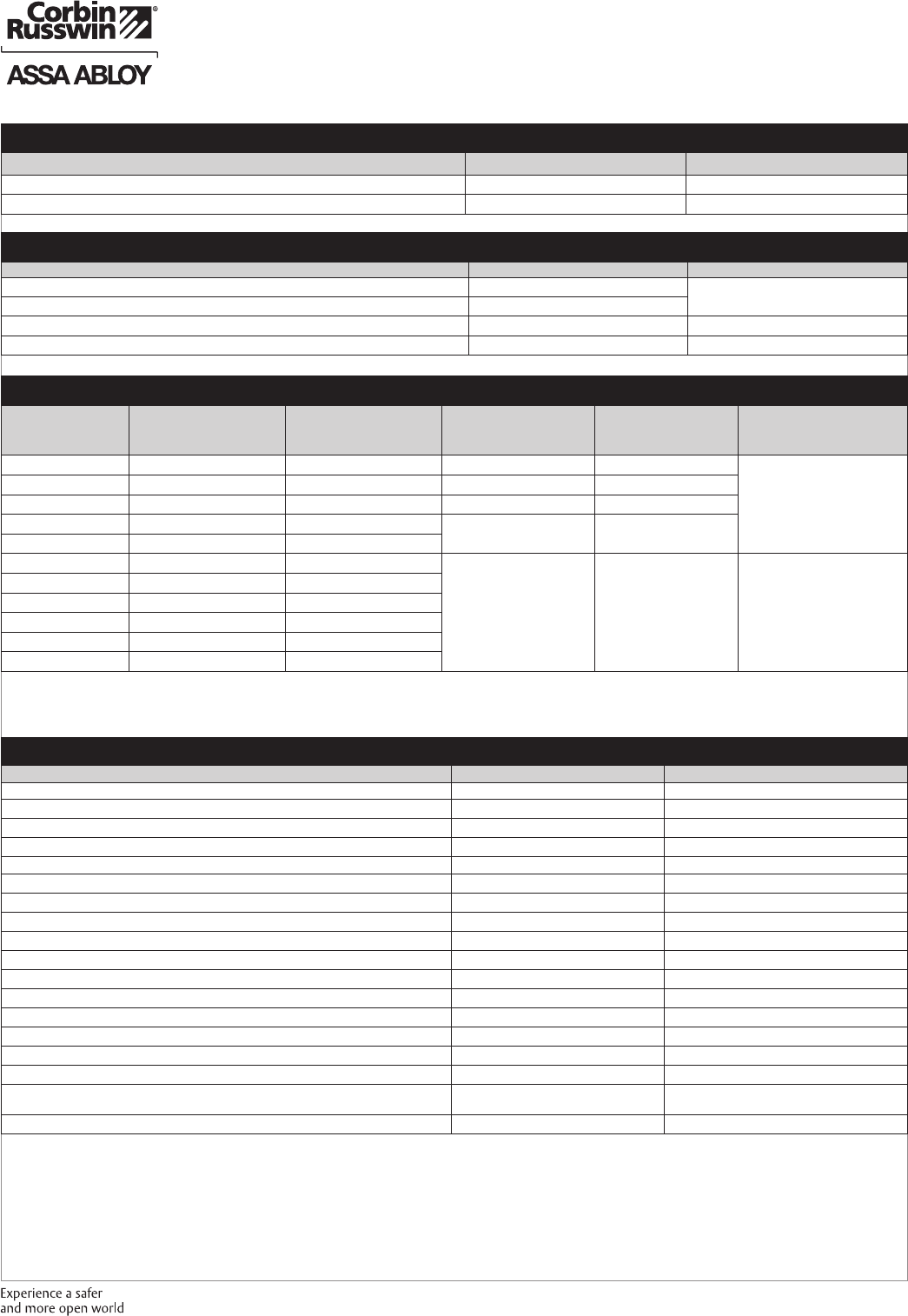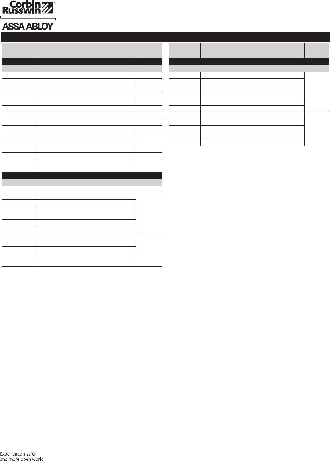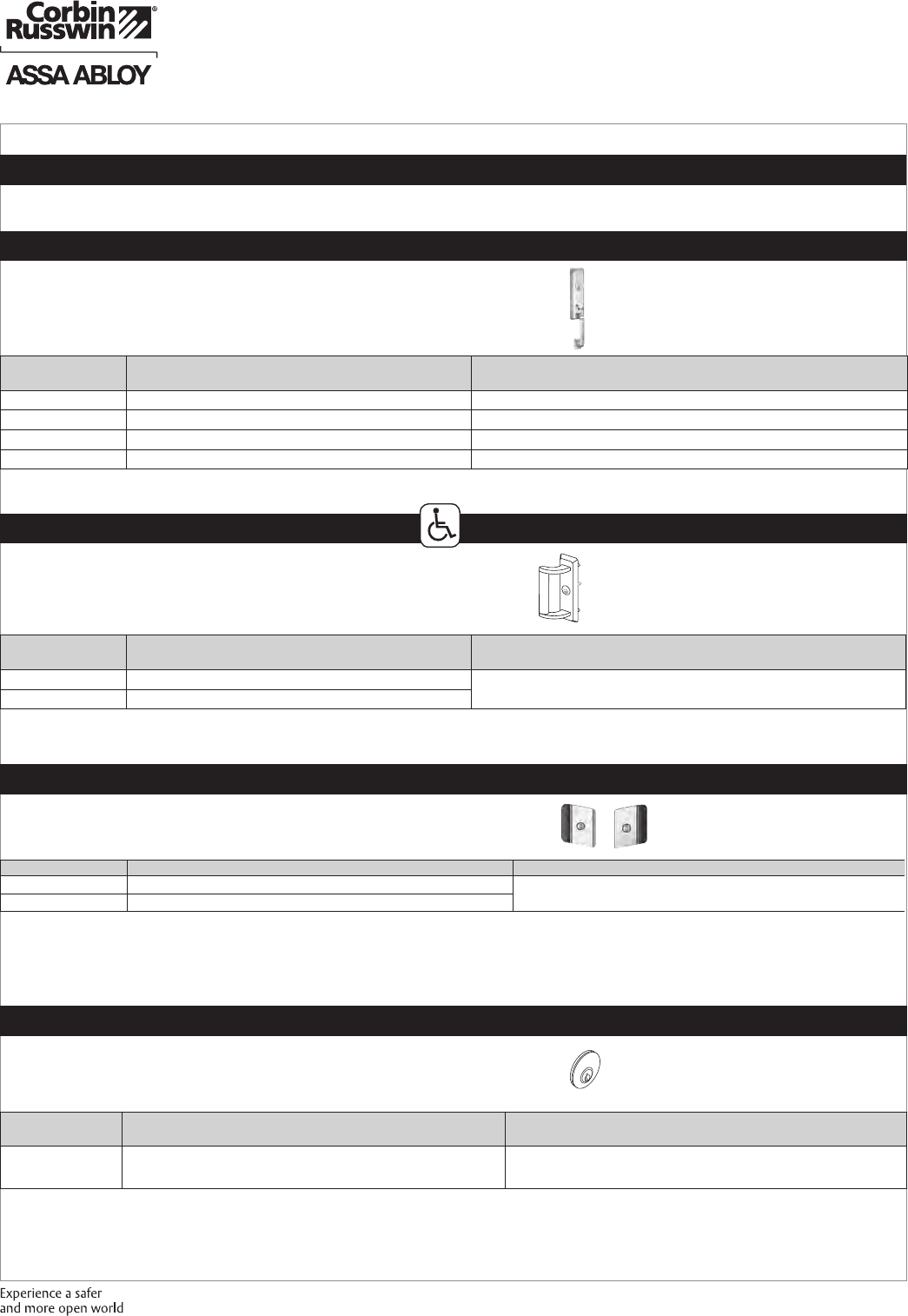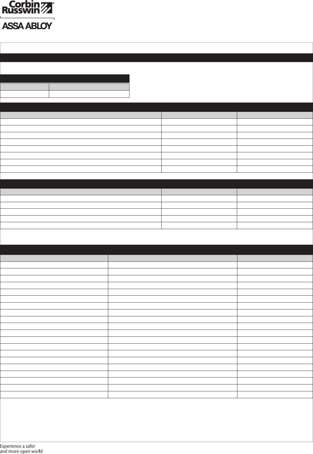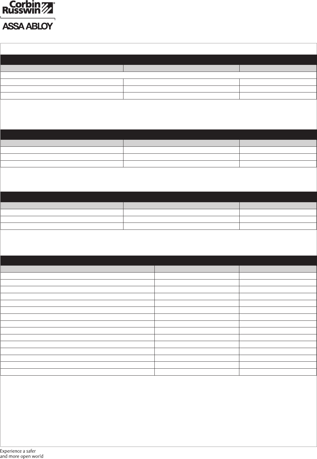 These materials are protected under US copyright laws. All contents current at time of publication. Corbin Russwin Inc., an ASSA ABLOY Group company reserves the right to change availability of any item in this