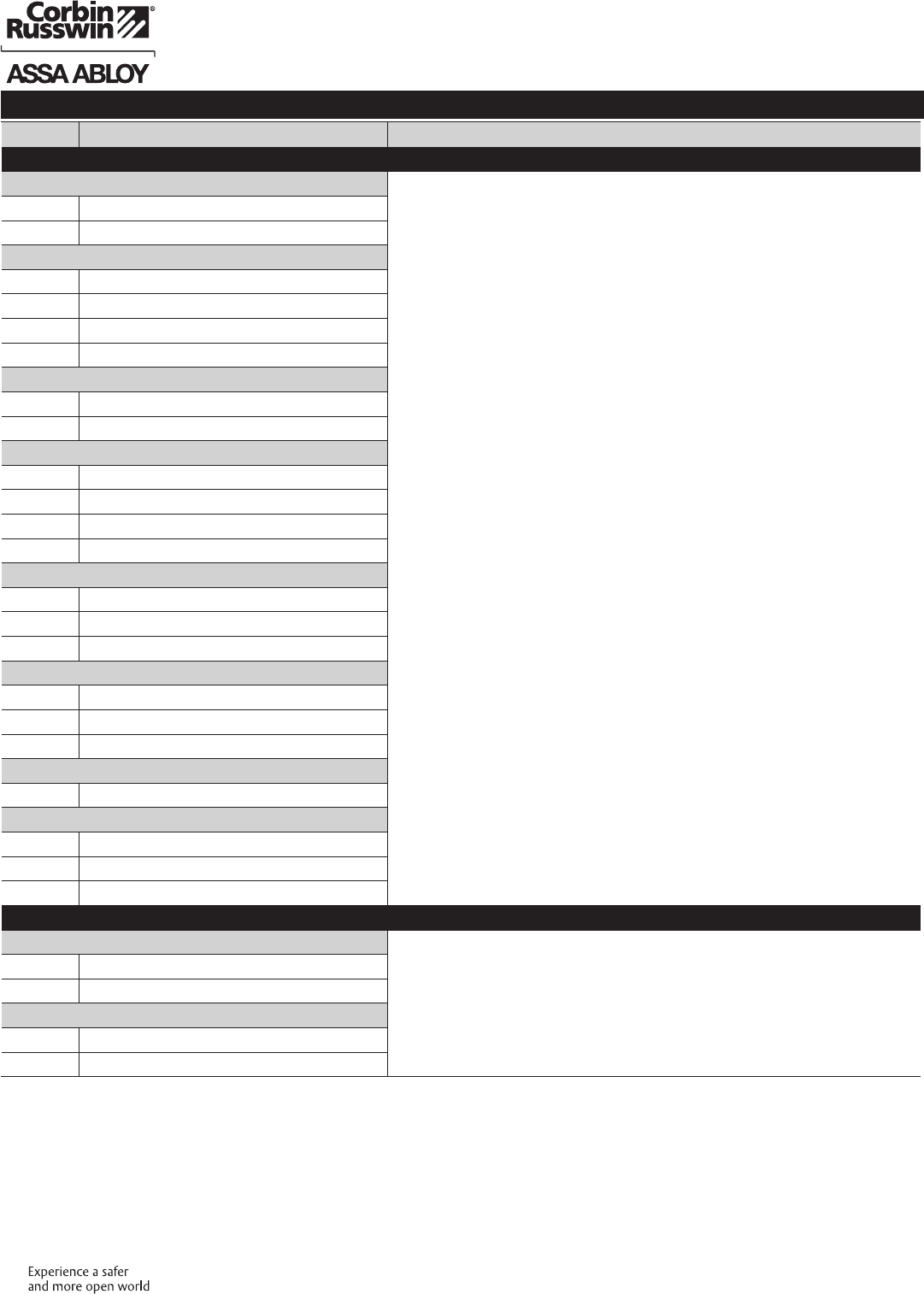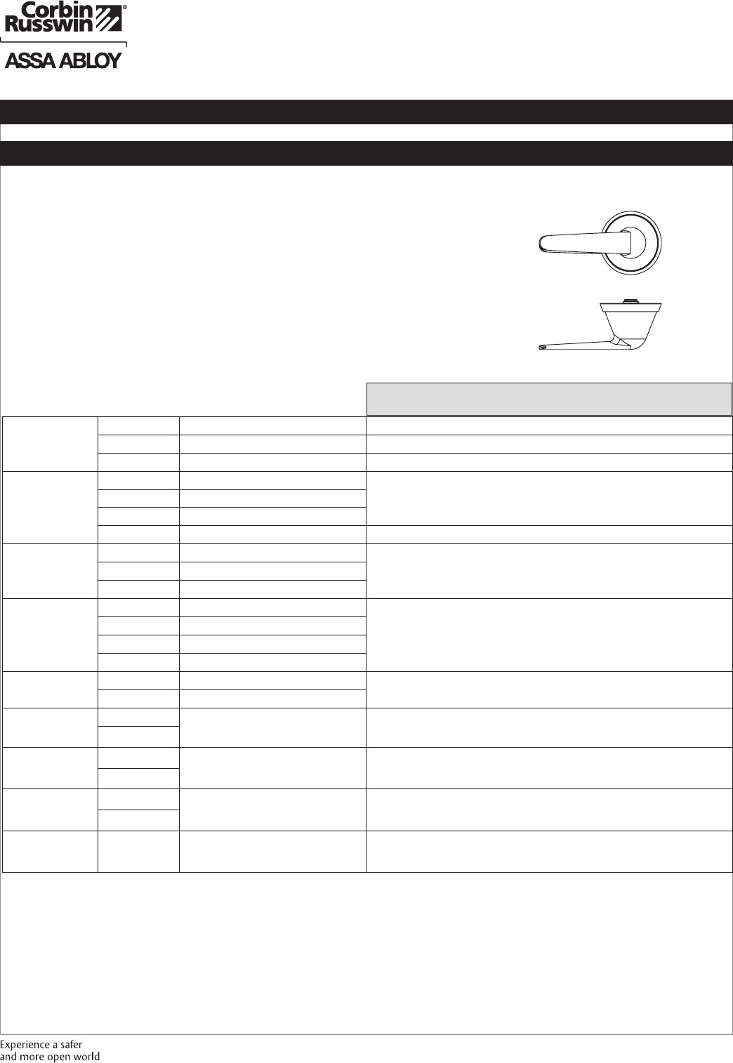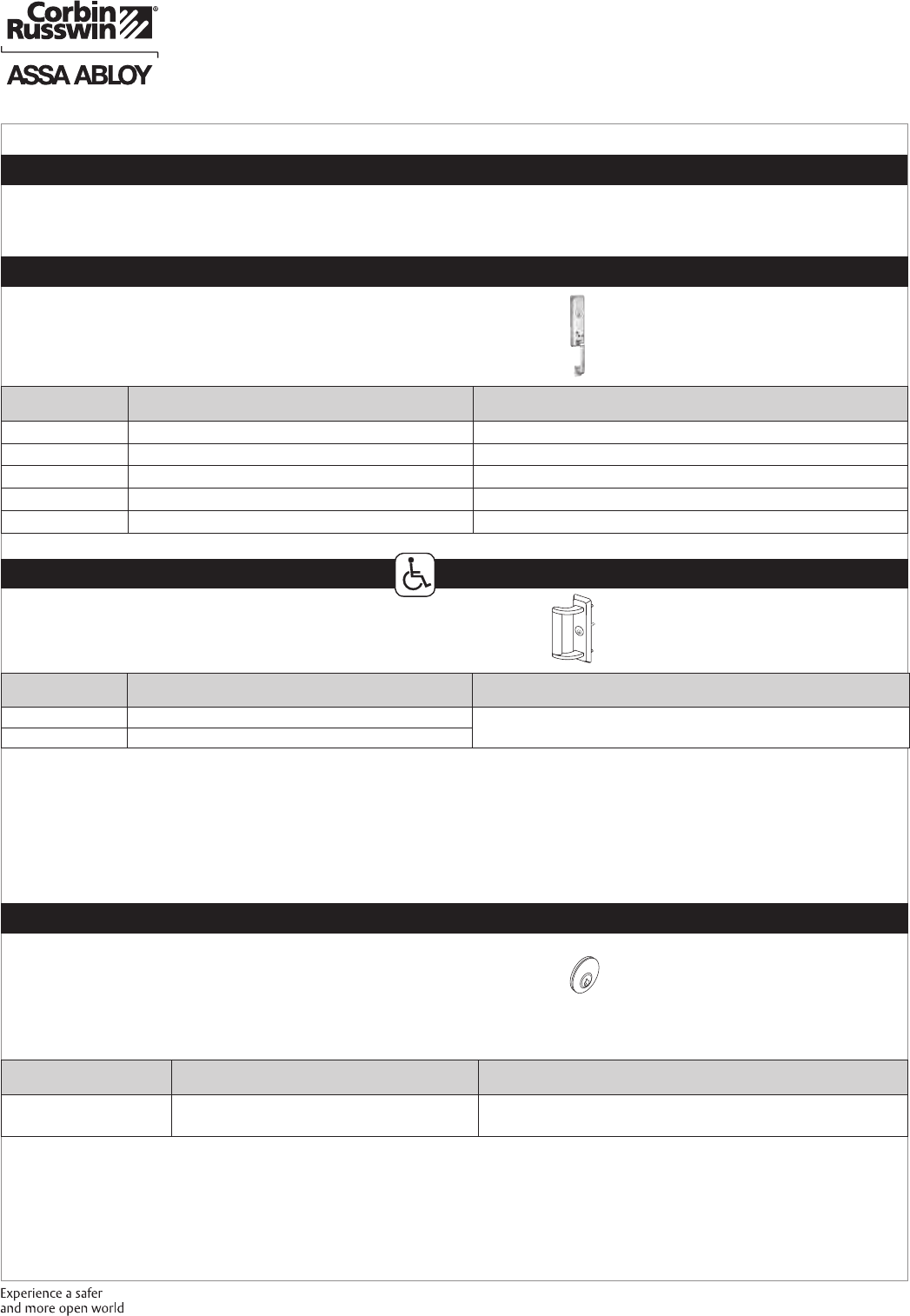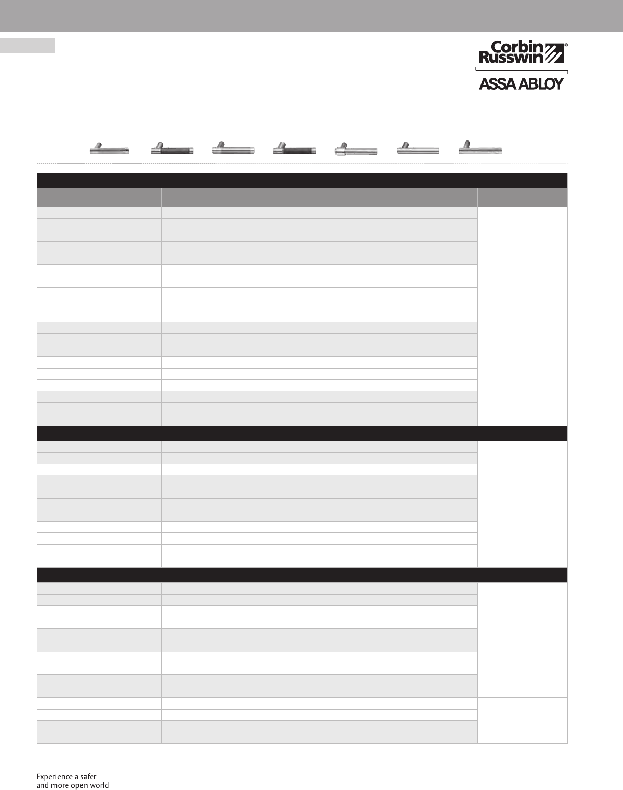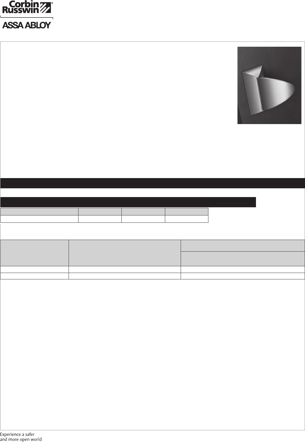 These materials are protected under US copyright laws. All contents current at time of publication. Corbin Russwin Inc., an ASSA ABLOY Group company reserves the right to change availability of any item in this