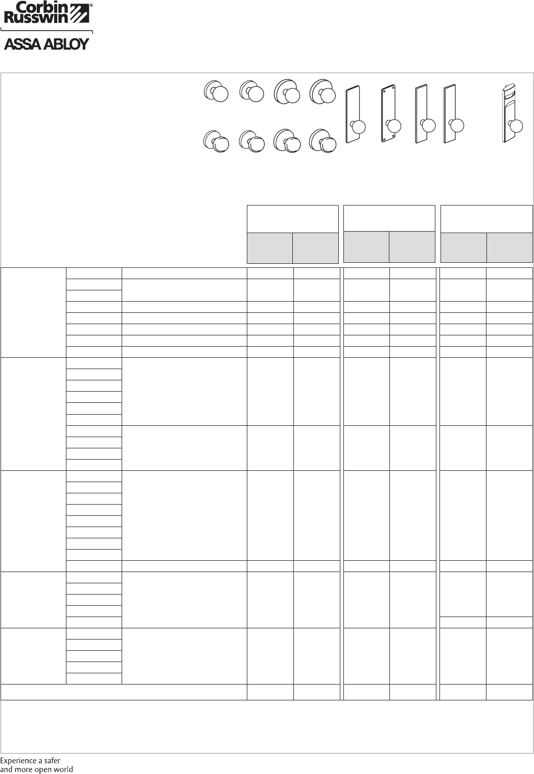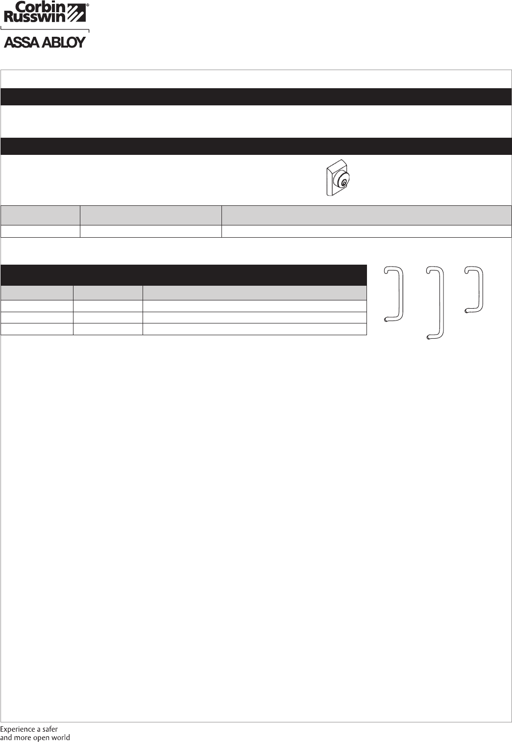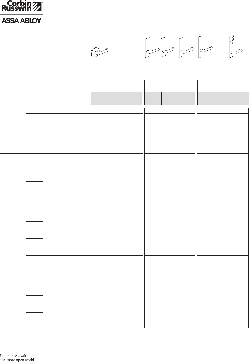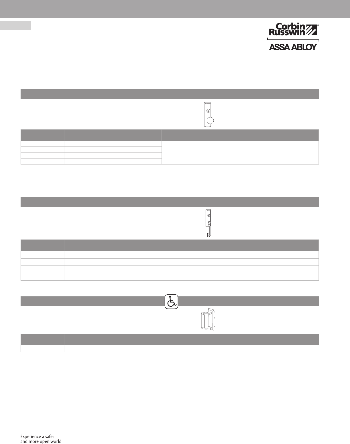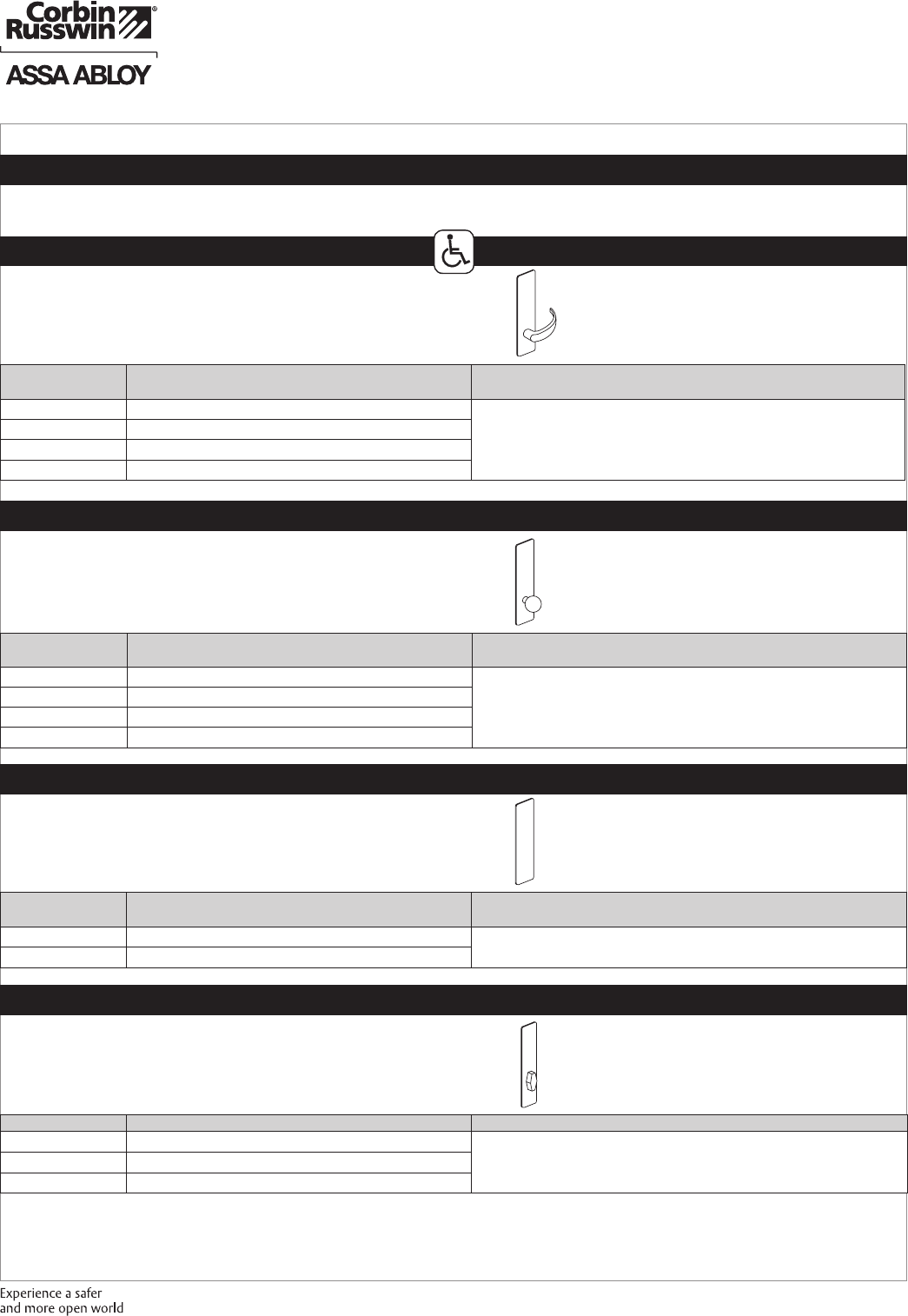 These materials are protected under US copyright laws. All contents current at time of publication. Corbin Russwin Inc., an ASSA ABLOY Group company reserves the right to change availability of any item in this