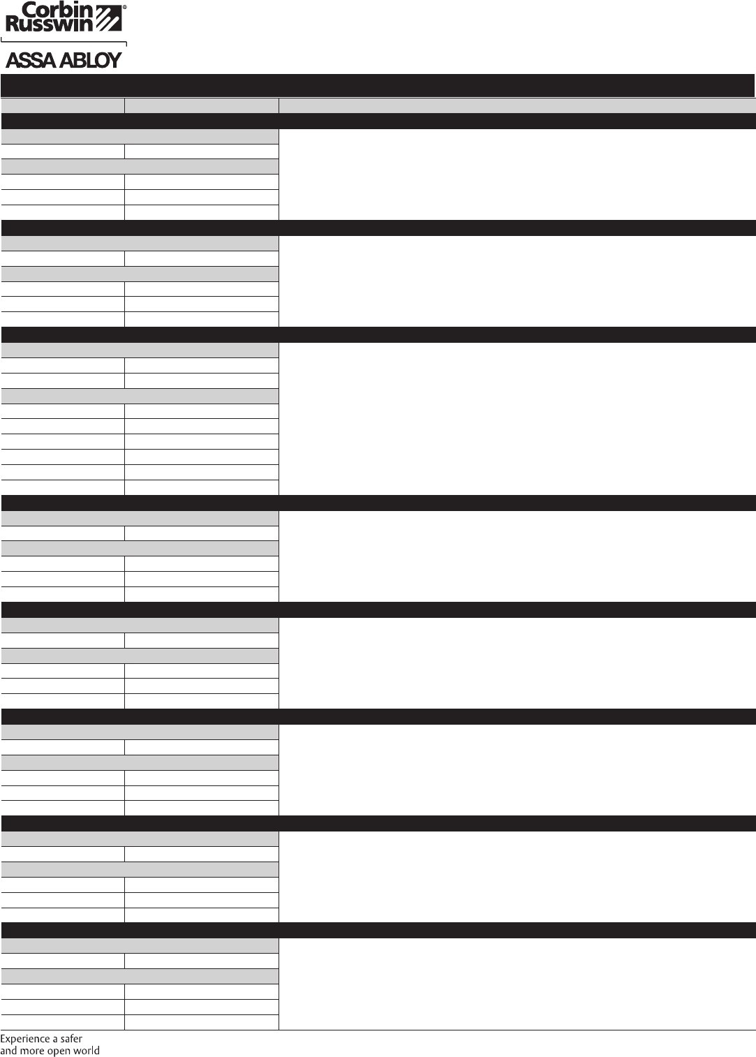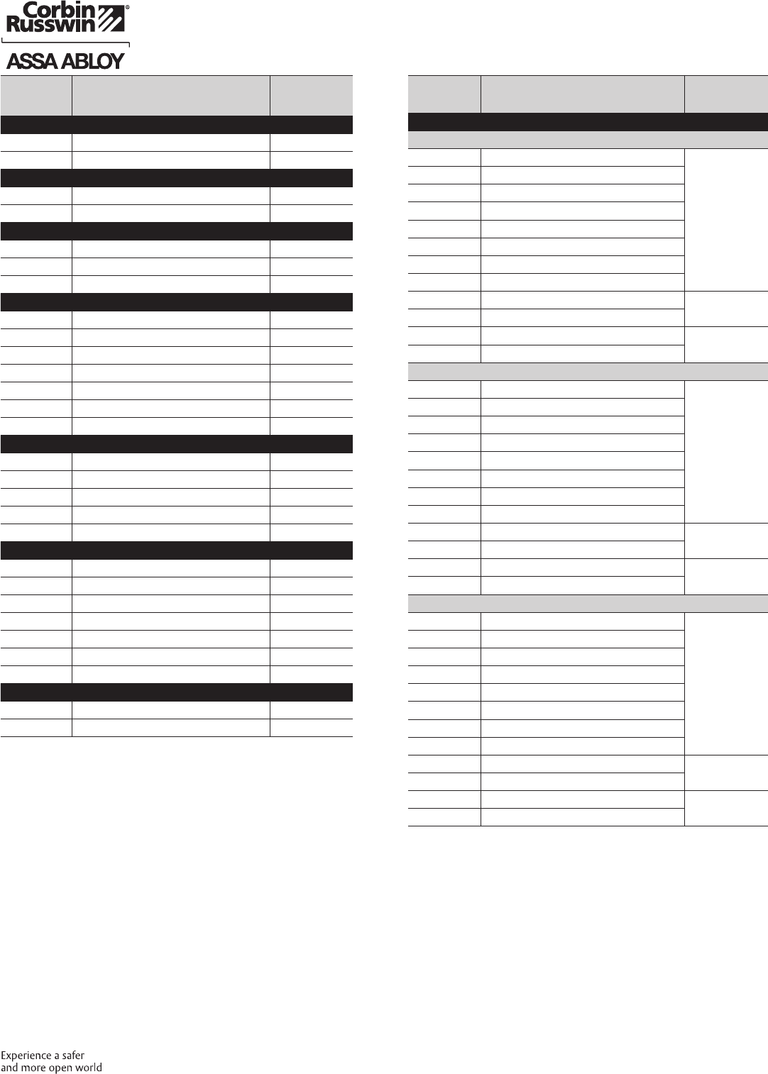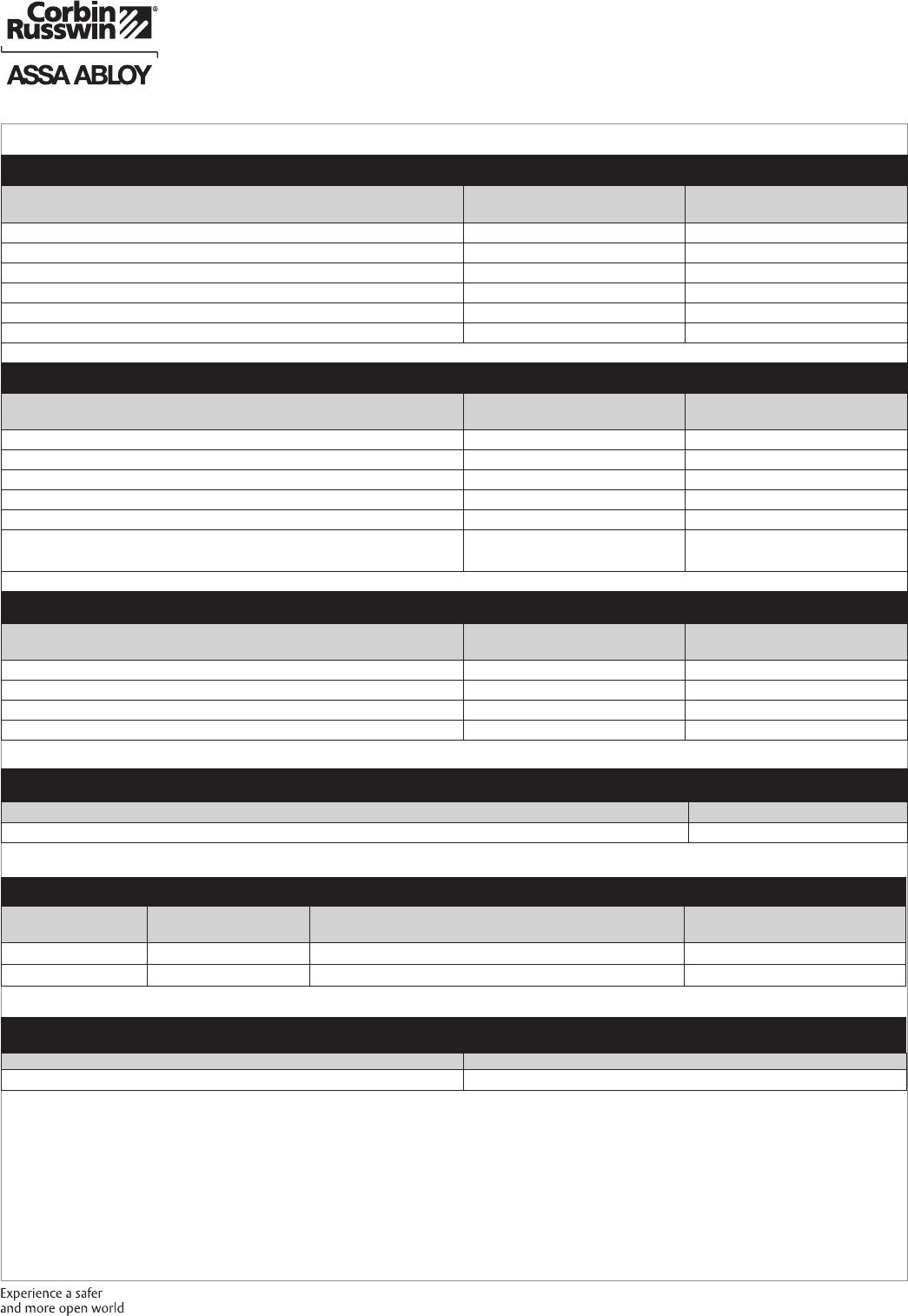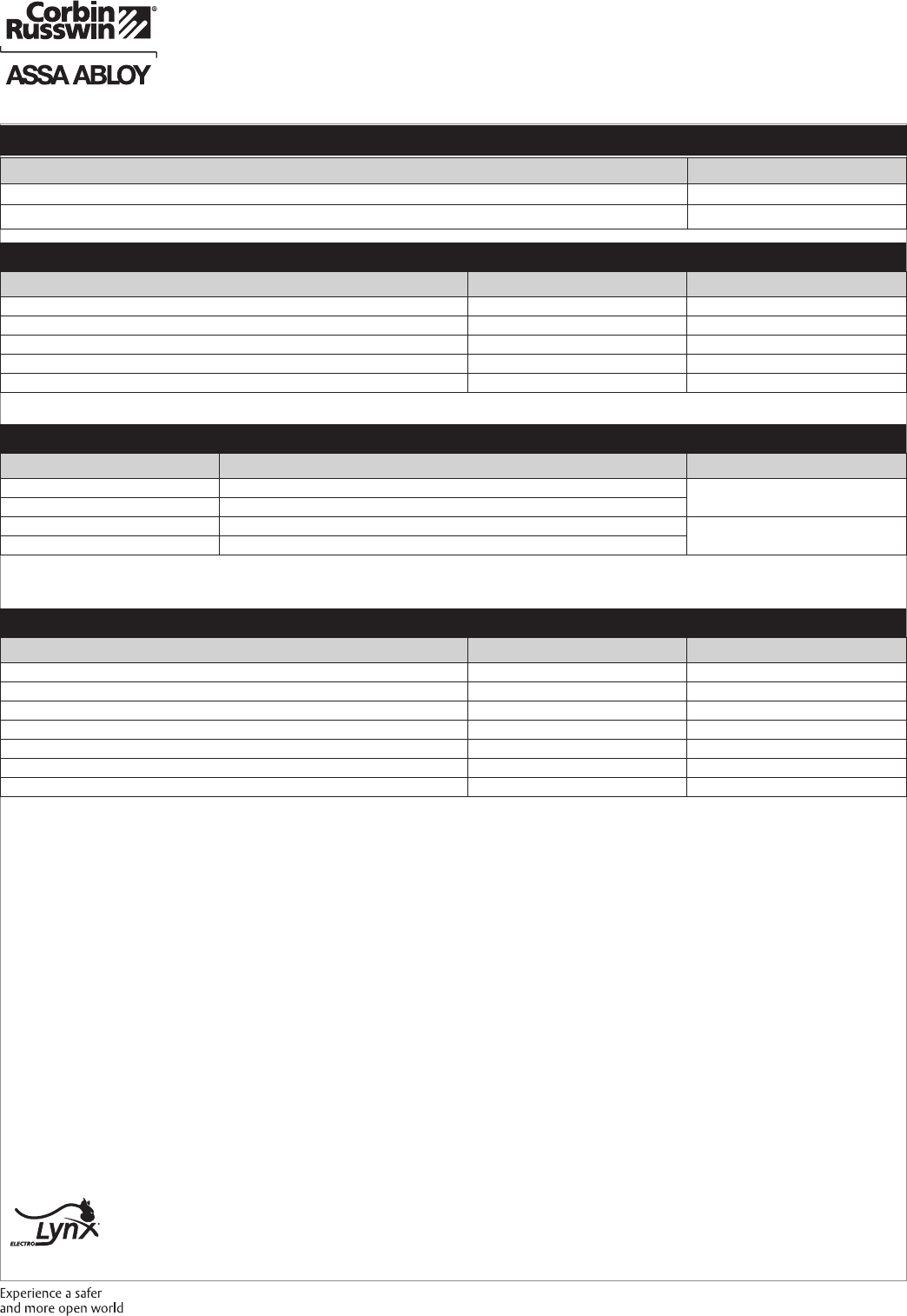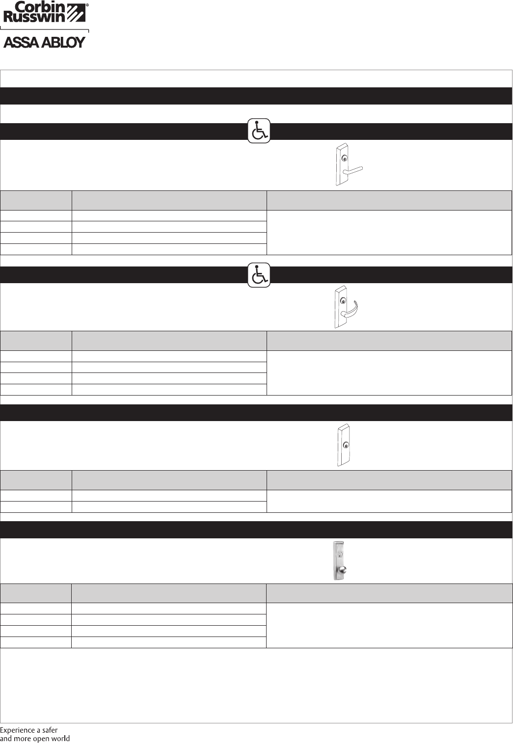 These materials are protected under US copyright laws. All contents current at time of publication. Corbin Russwin Inc., an ASSA ABLOY Group company reserves the right to change availability of any item in this