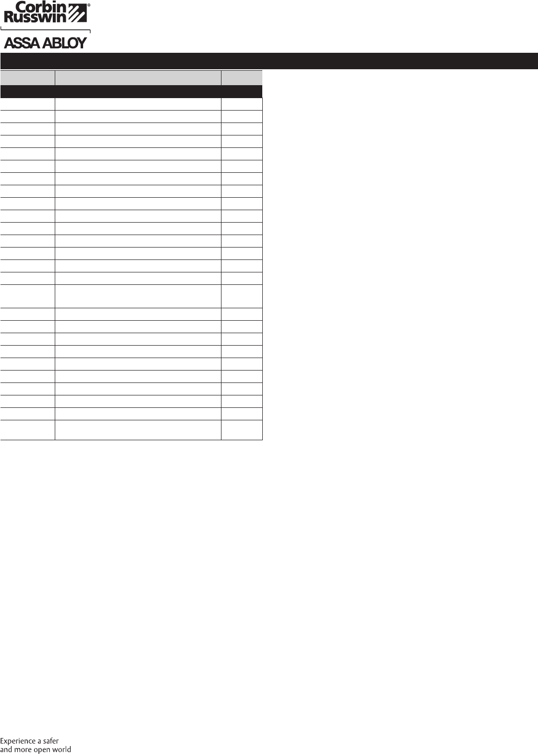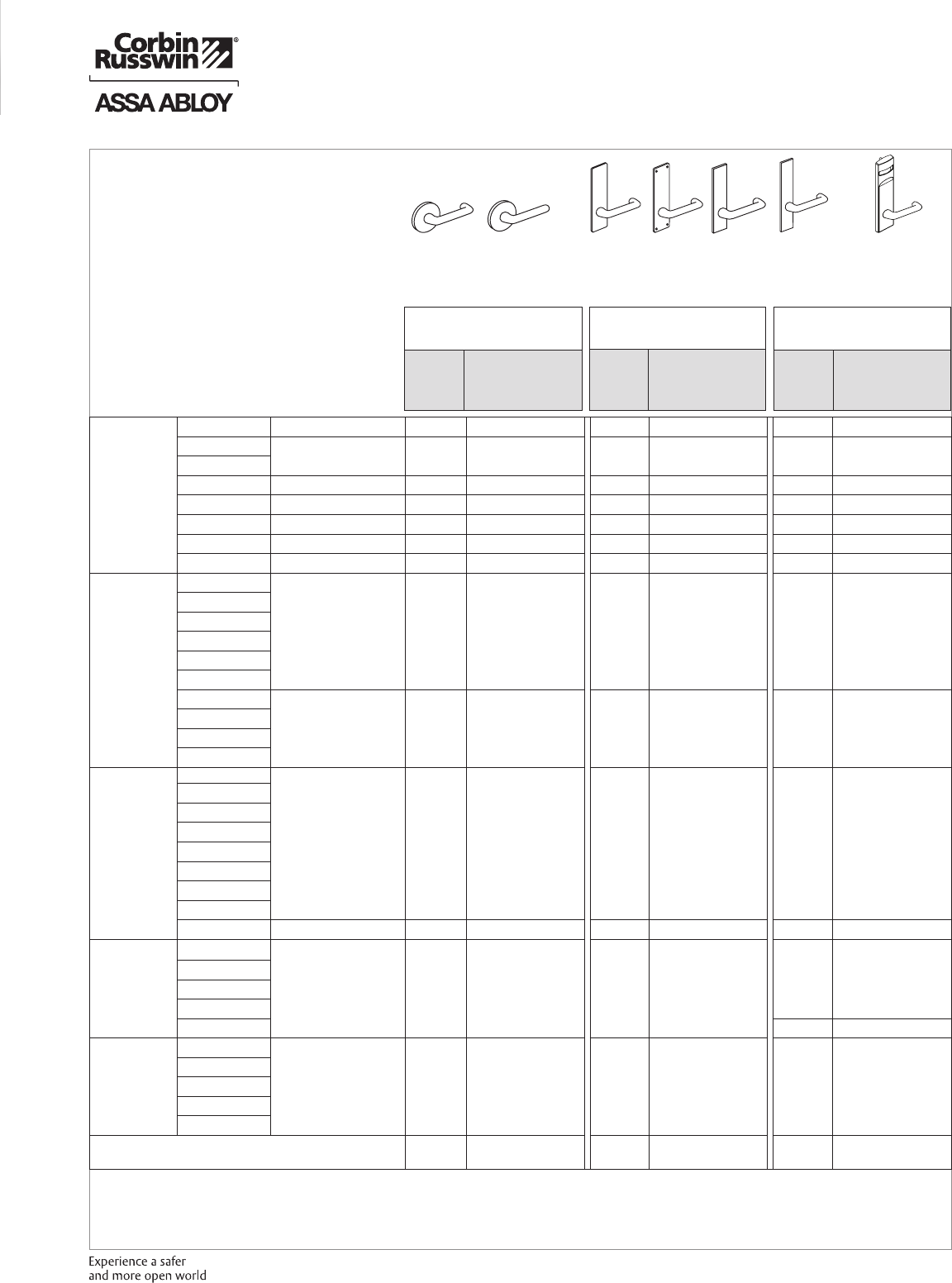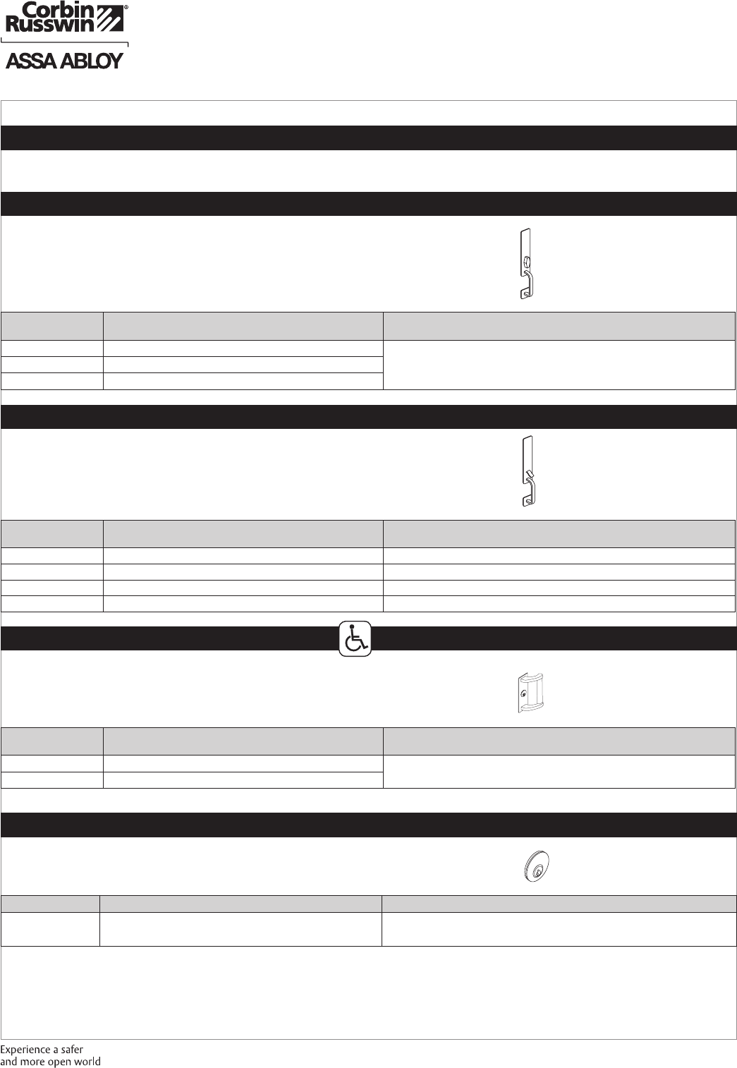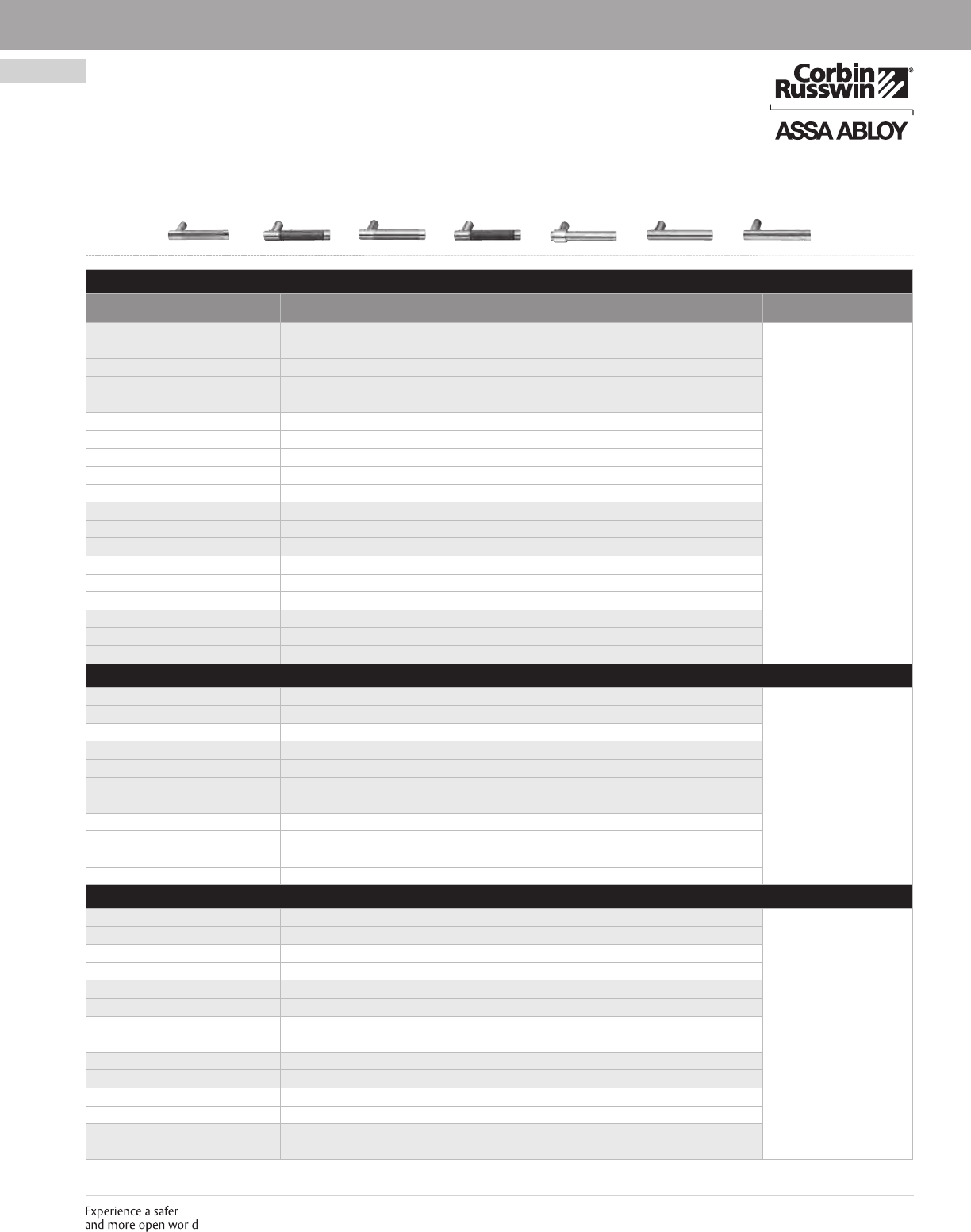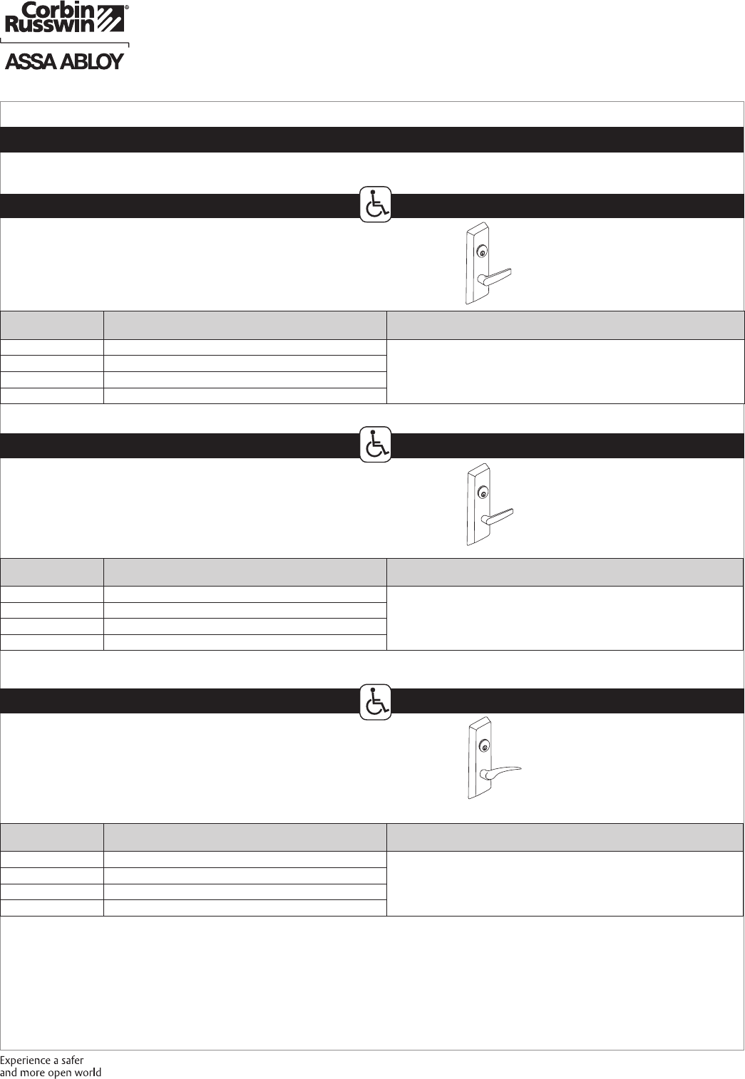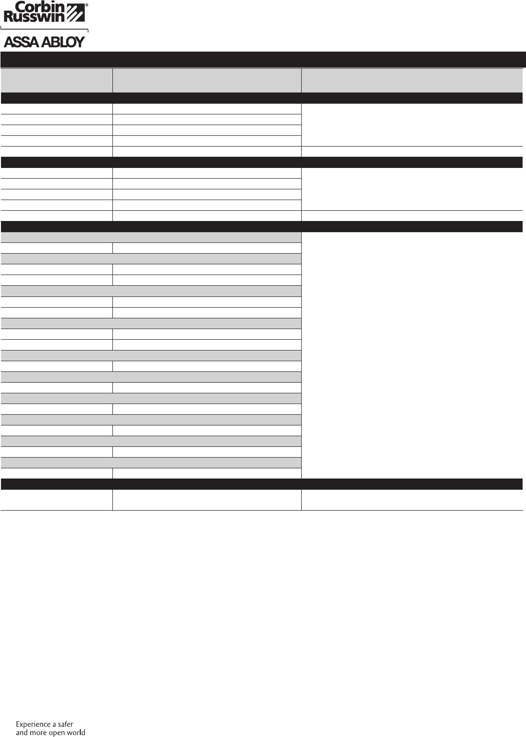 These materials are protected under US copyright laws. All contents current at time of publication. Corbin Russwin Inc., an ASSA ABLOY Group company reserves the right to change availability of any item in this