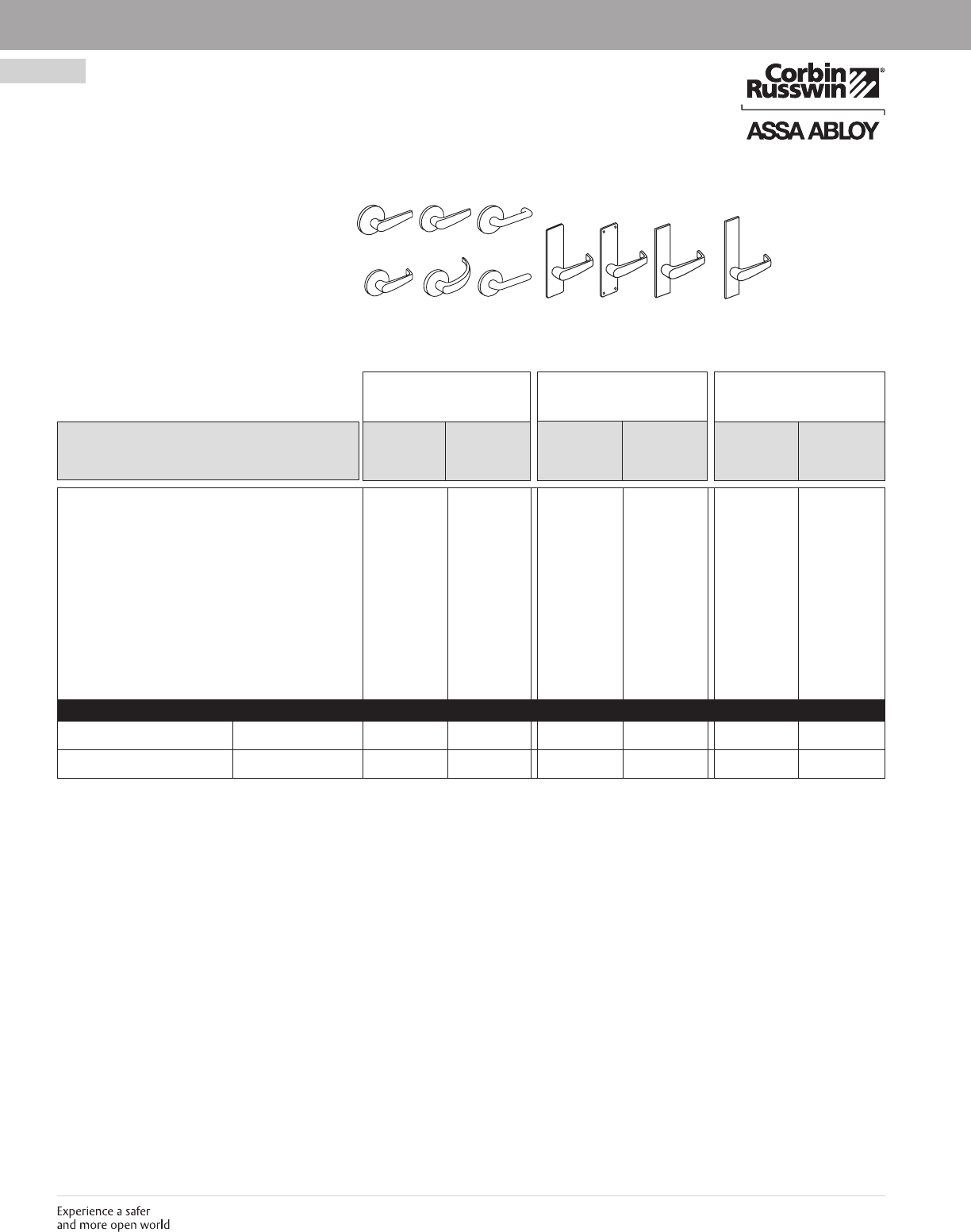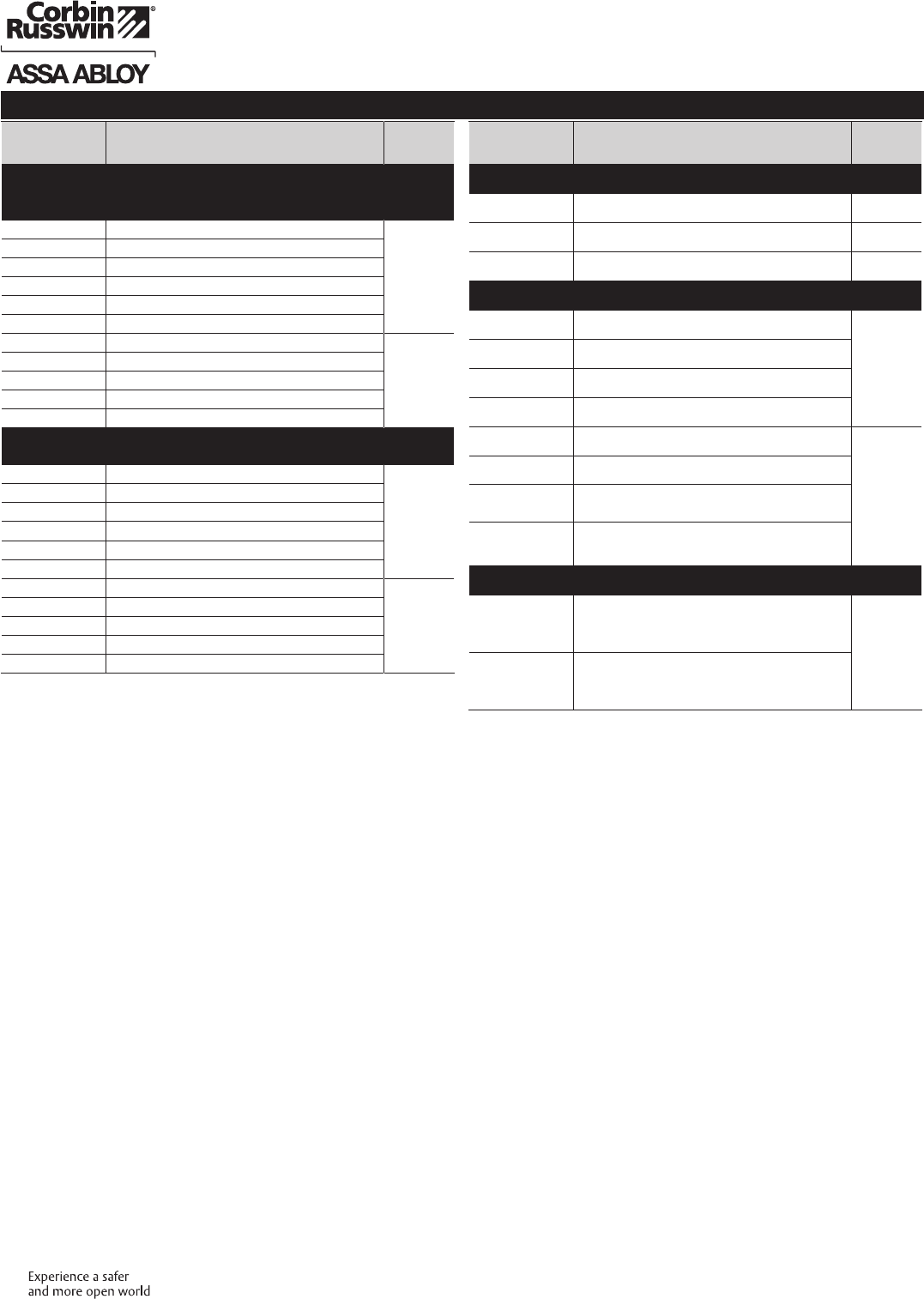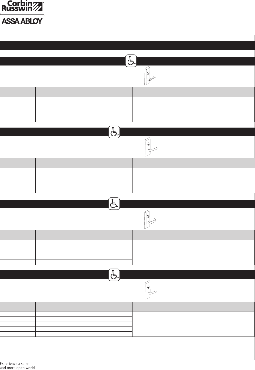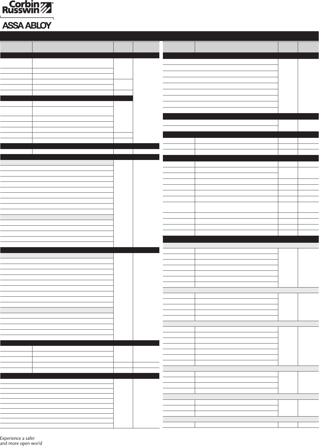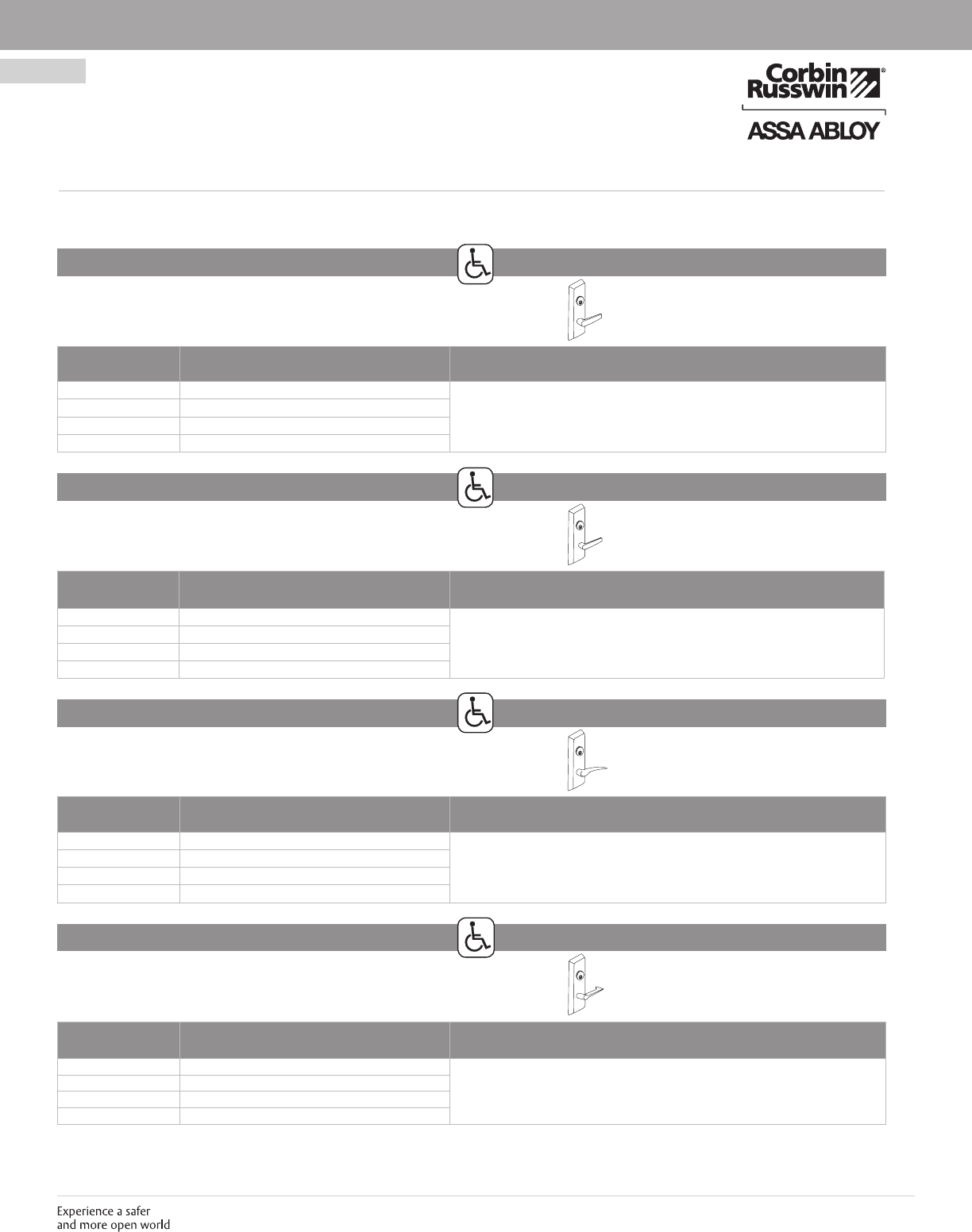 These materials are protected under US copyright laws. All contents current at time of publication. Corbin Russwin Inc., an ASSA ABLOY Group company reserves the right to change availability of any item in this