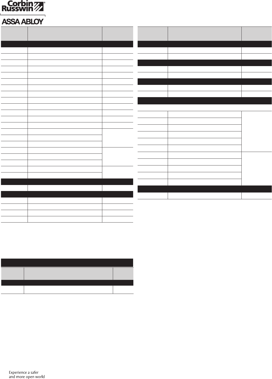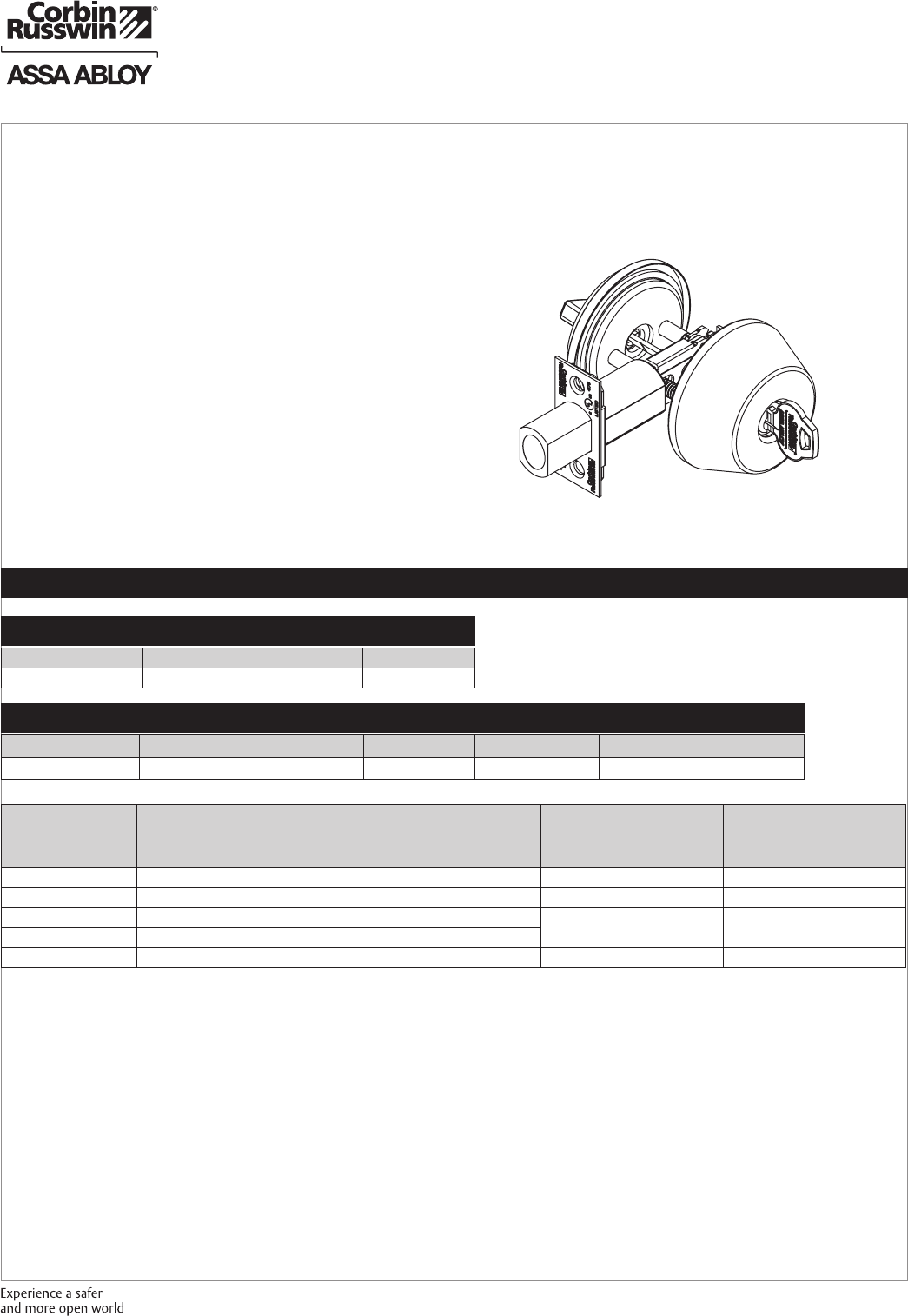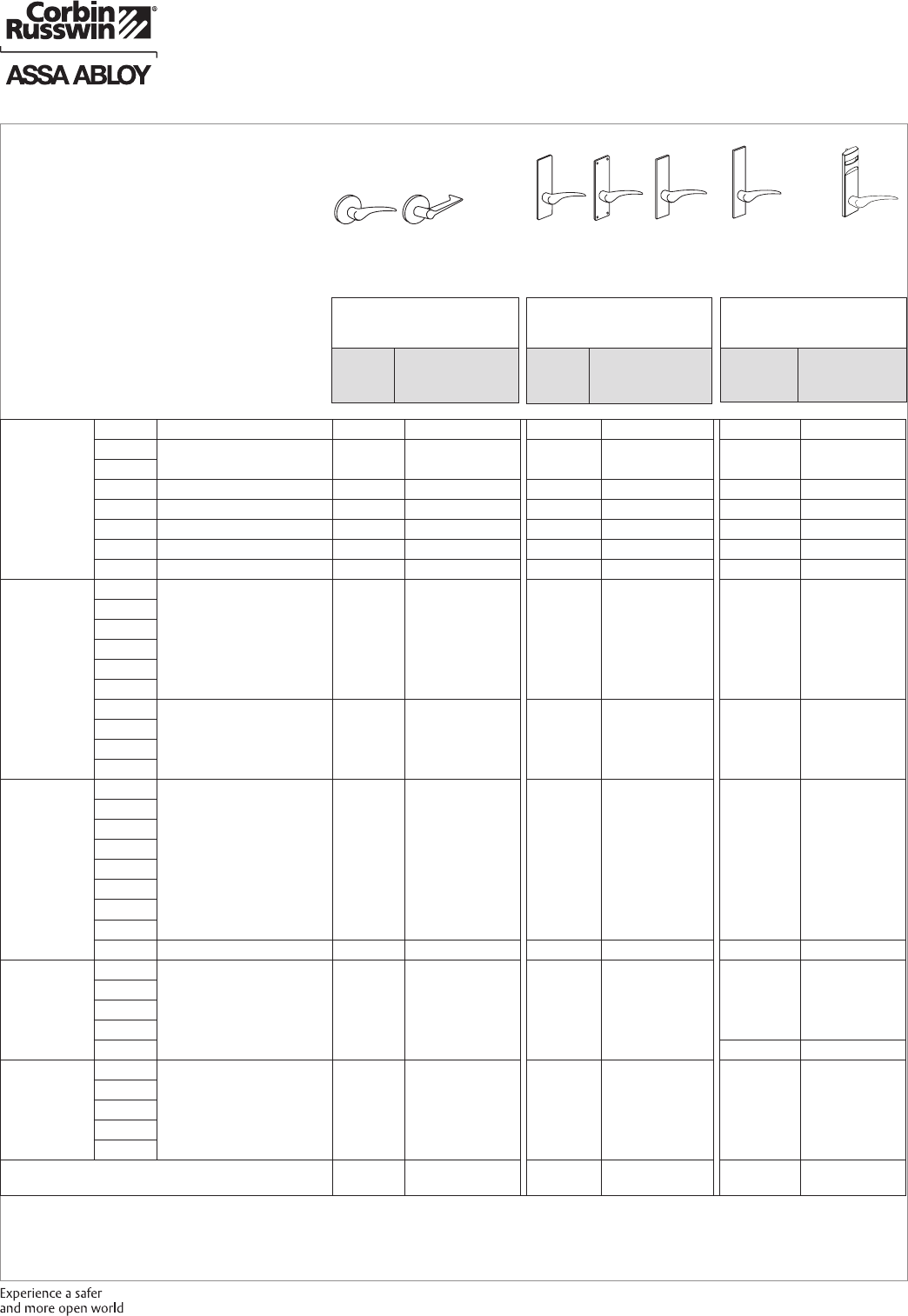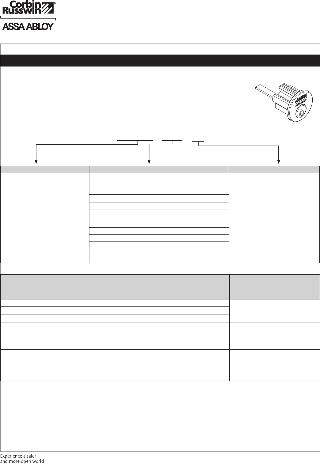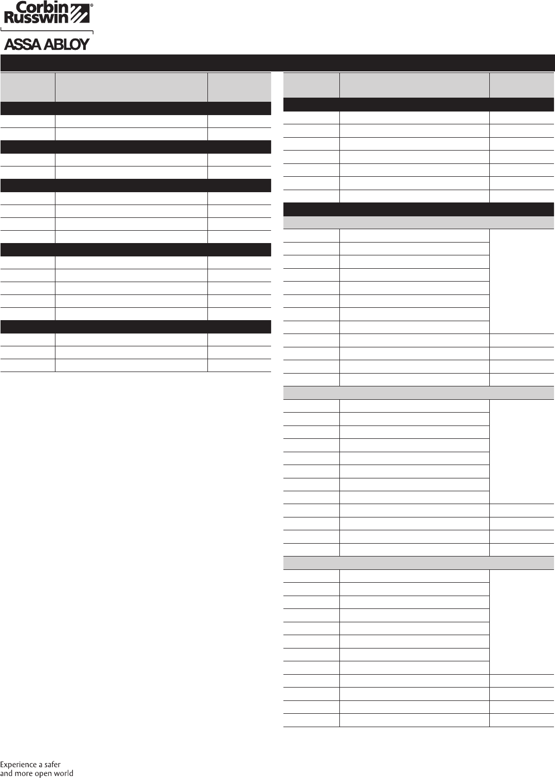 These materials are protected under US copyright laws. All contents current at time of publication. Corbin Russwin Inc., an ASSA ABLOY Group company reserves the right to change availability of any item in this