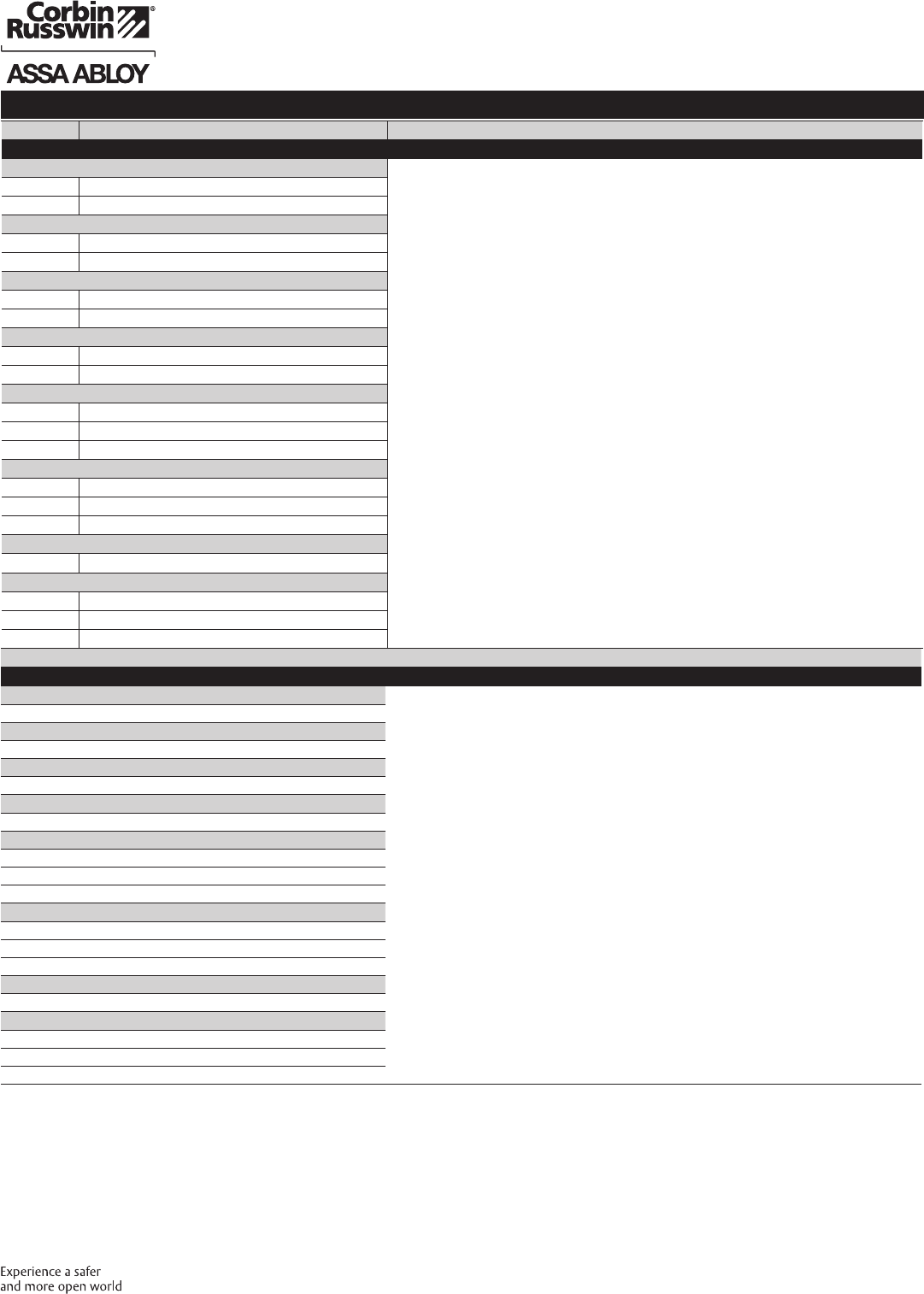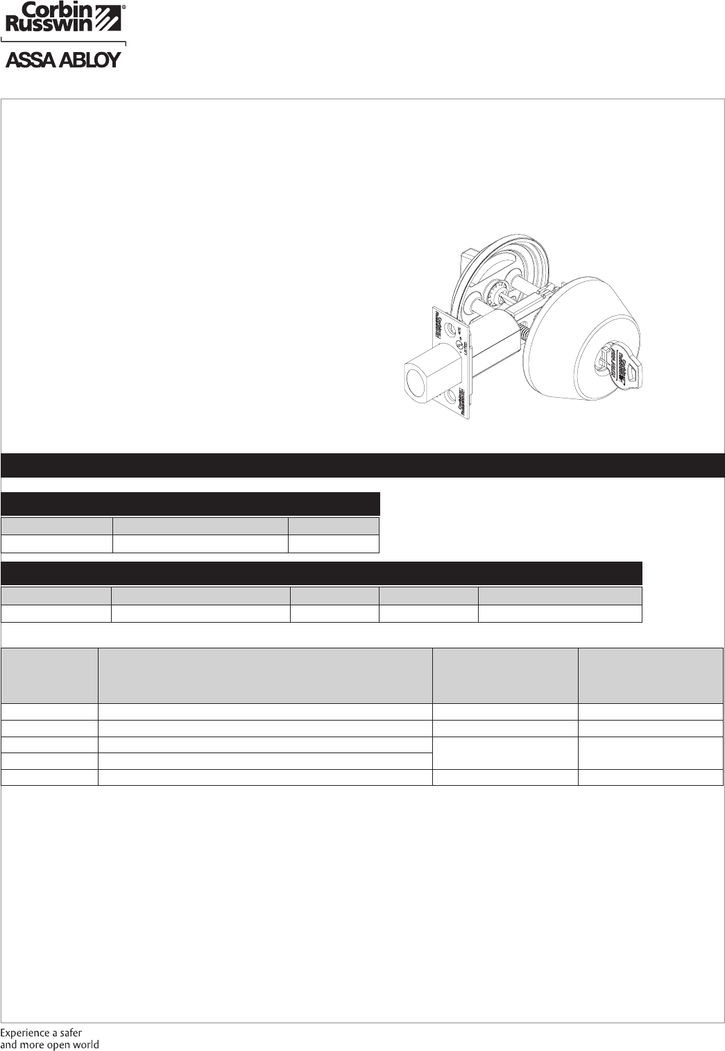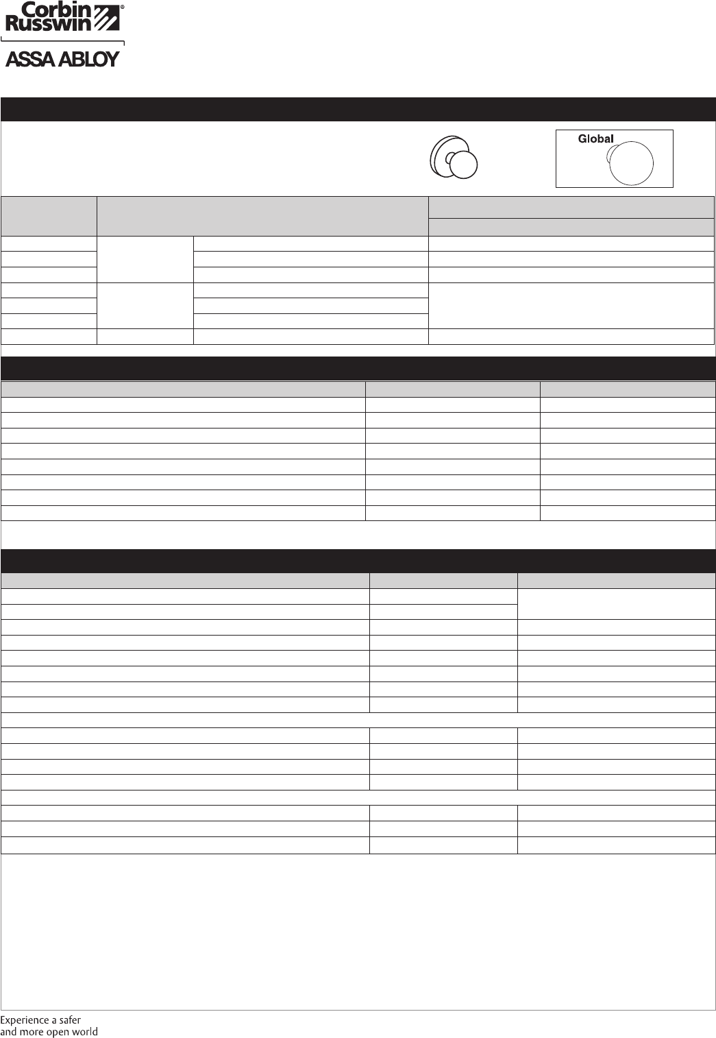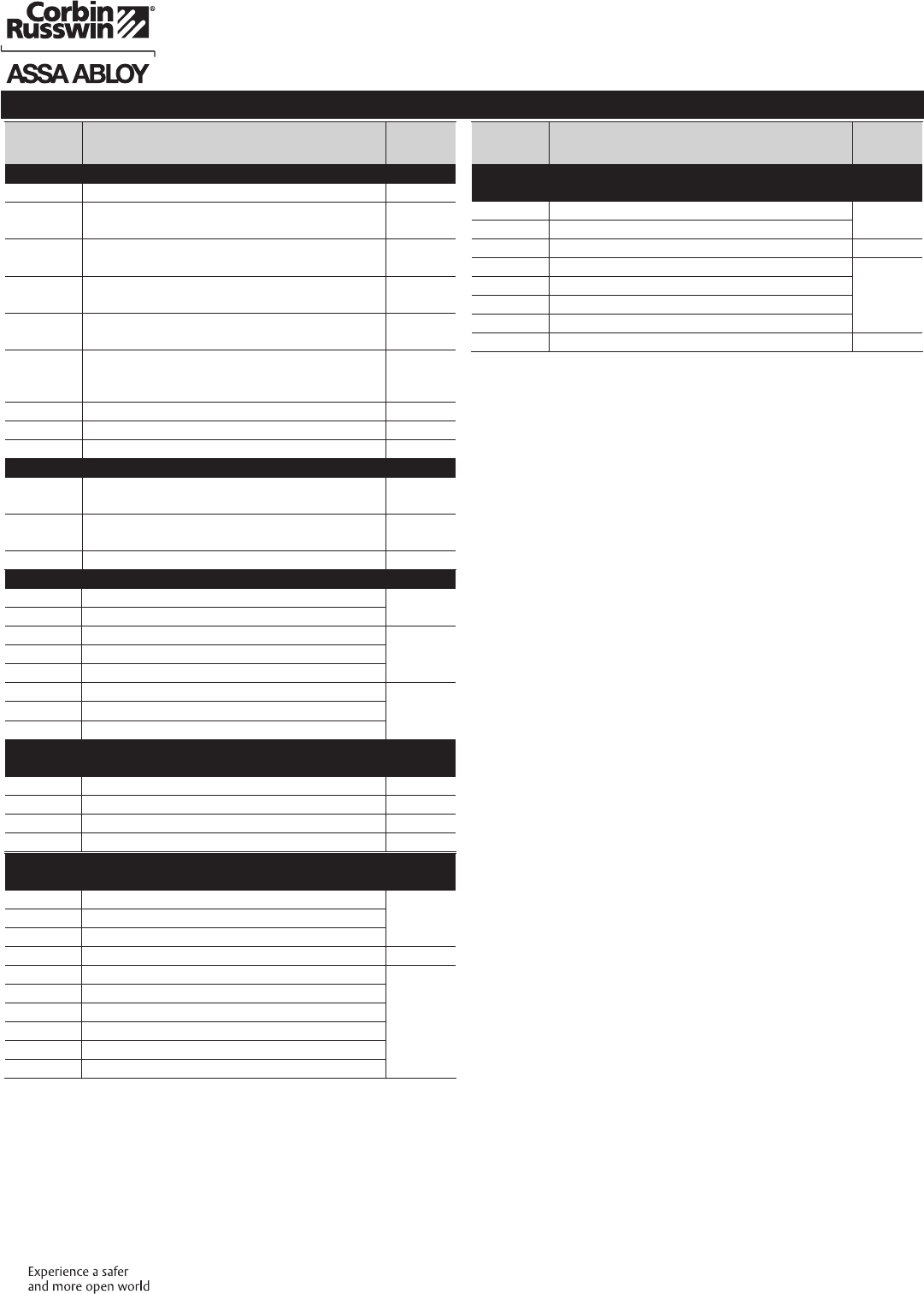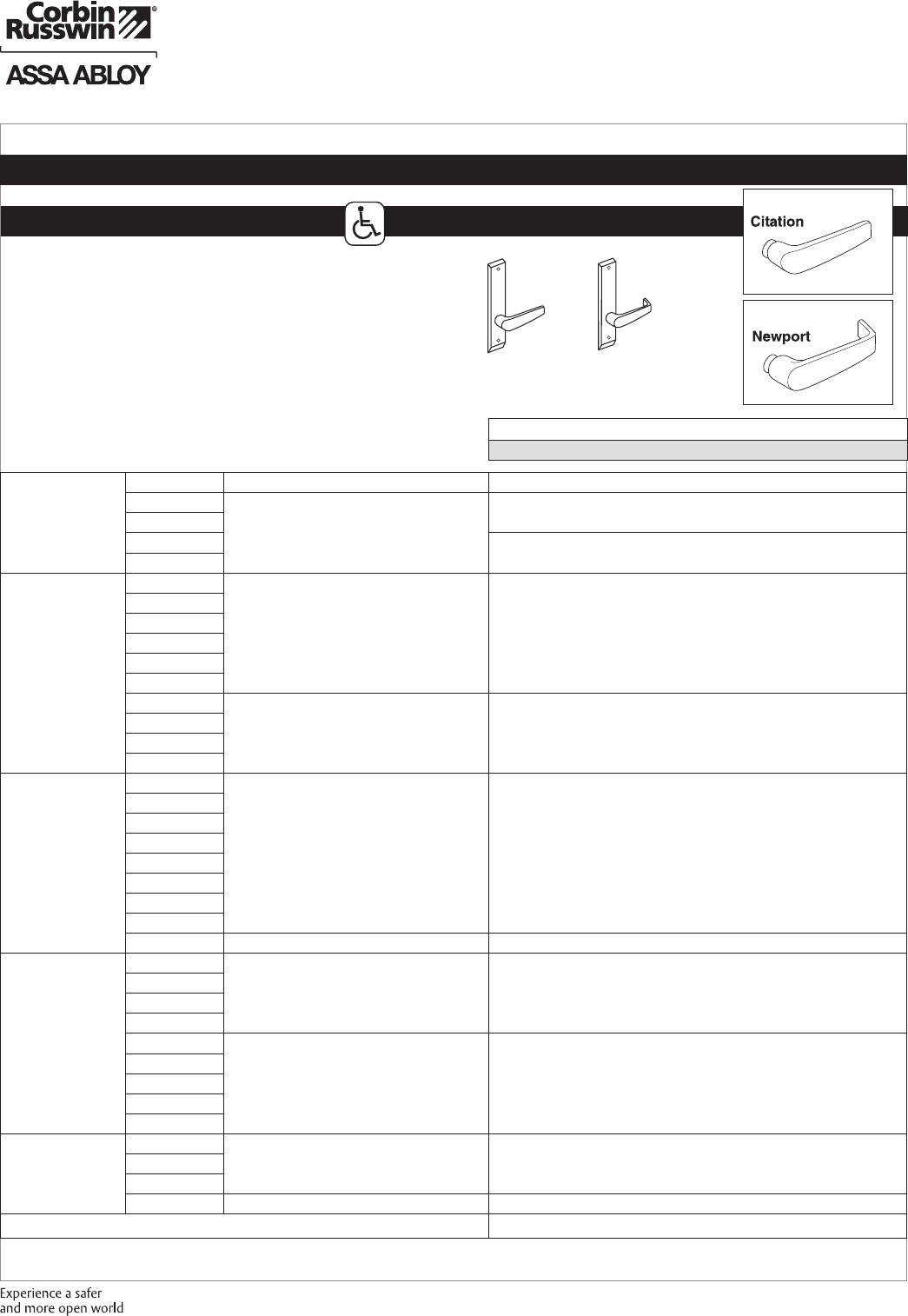 These materials are protected under US copyright laws. All contents current at time of publication. Corbin Russwin Inc., an ASSA ABLOY Group company reserves the right to change availability of any item in this
