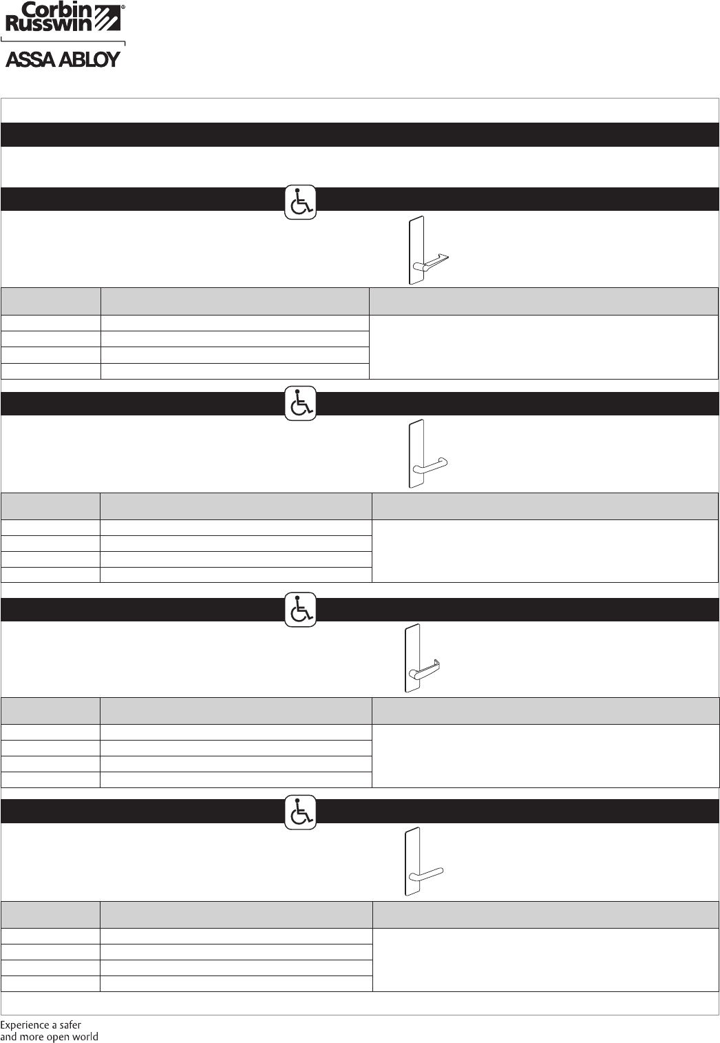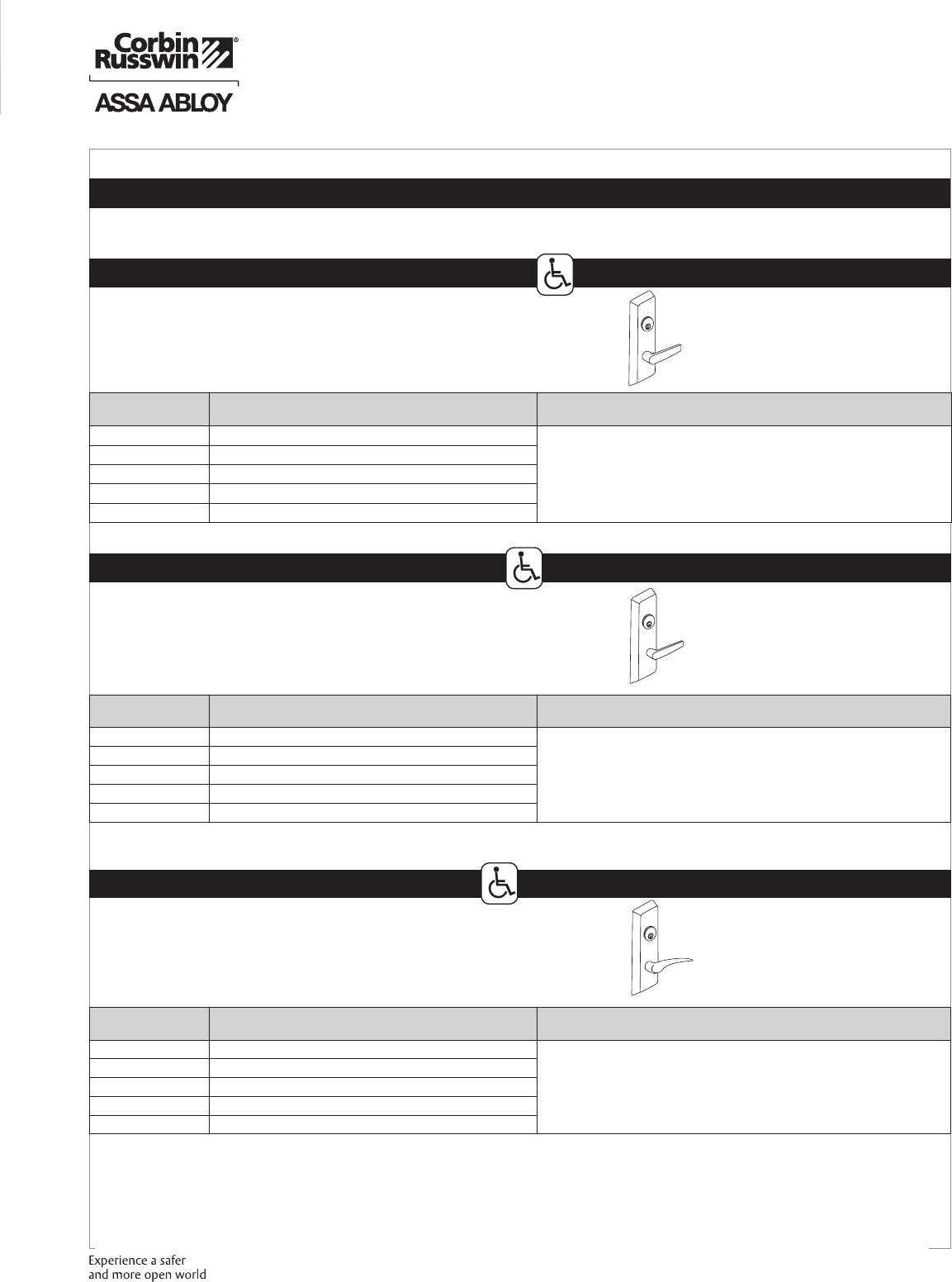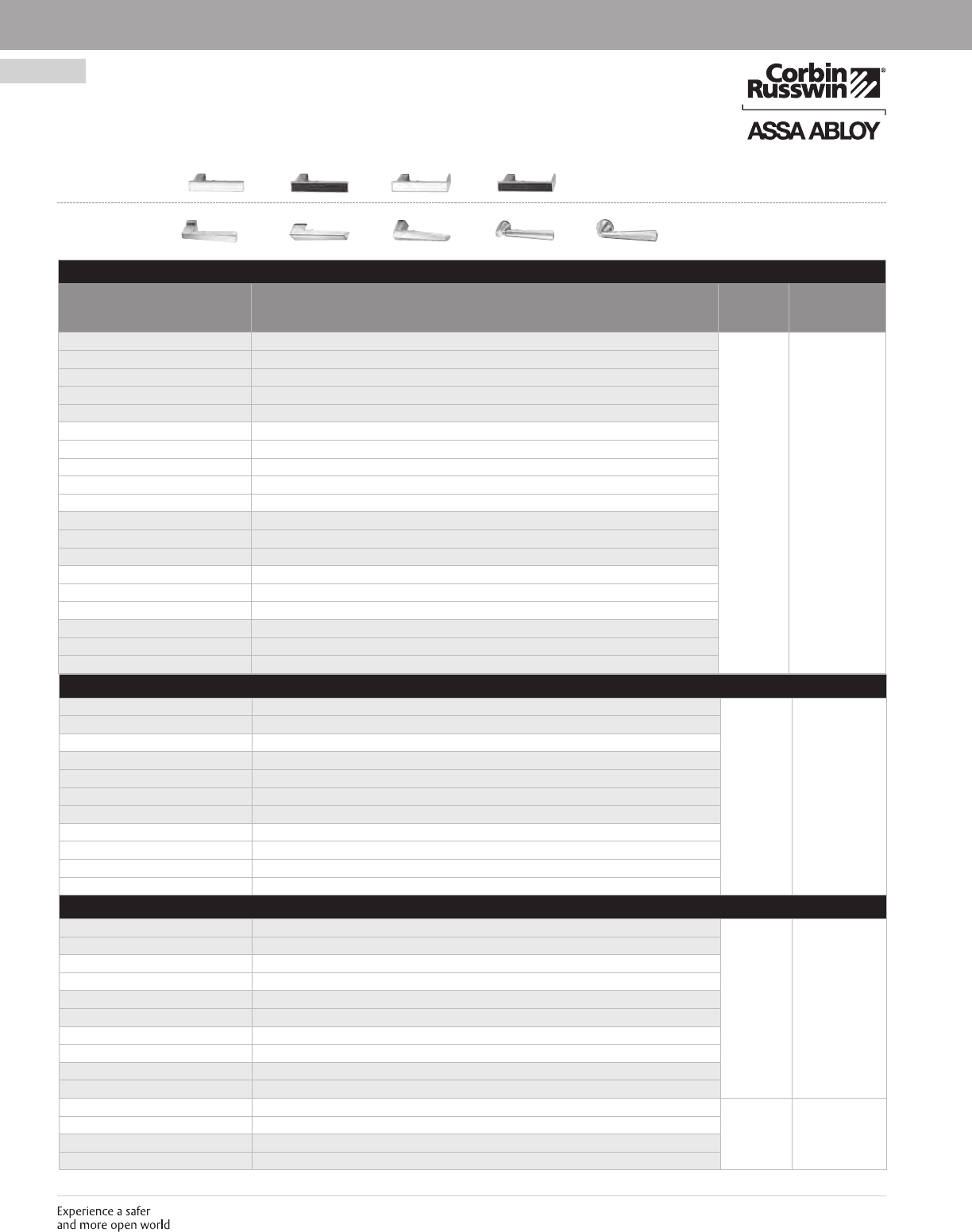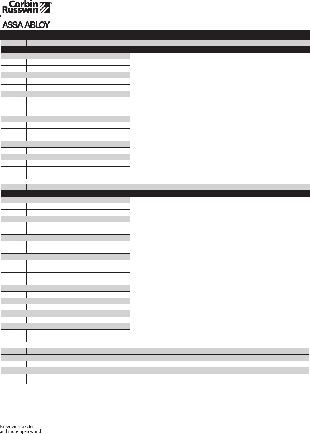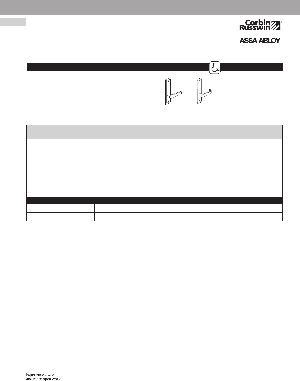 These materials are protected under US copyright laws. All contents current at time of publication. Corbin Russwin Inc., an ASSA ABLOY Group company reserves the right to change availability of any item in this