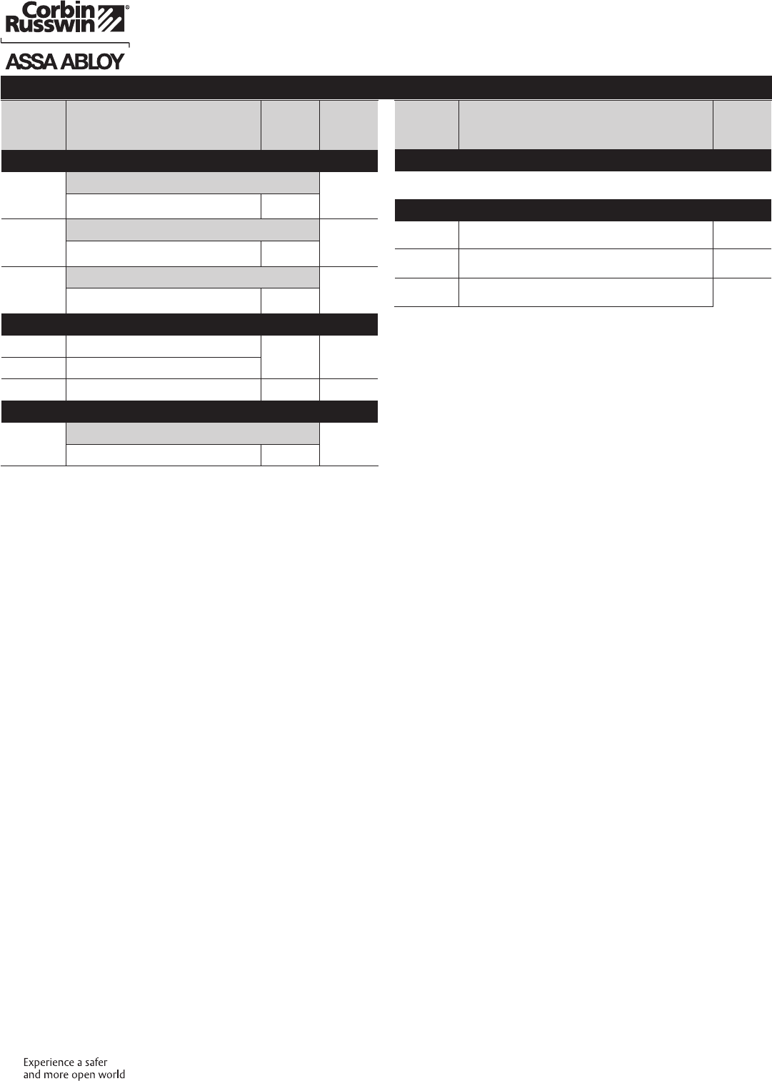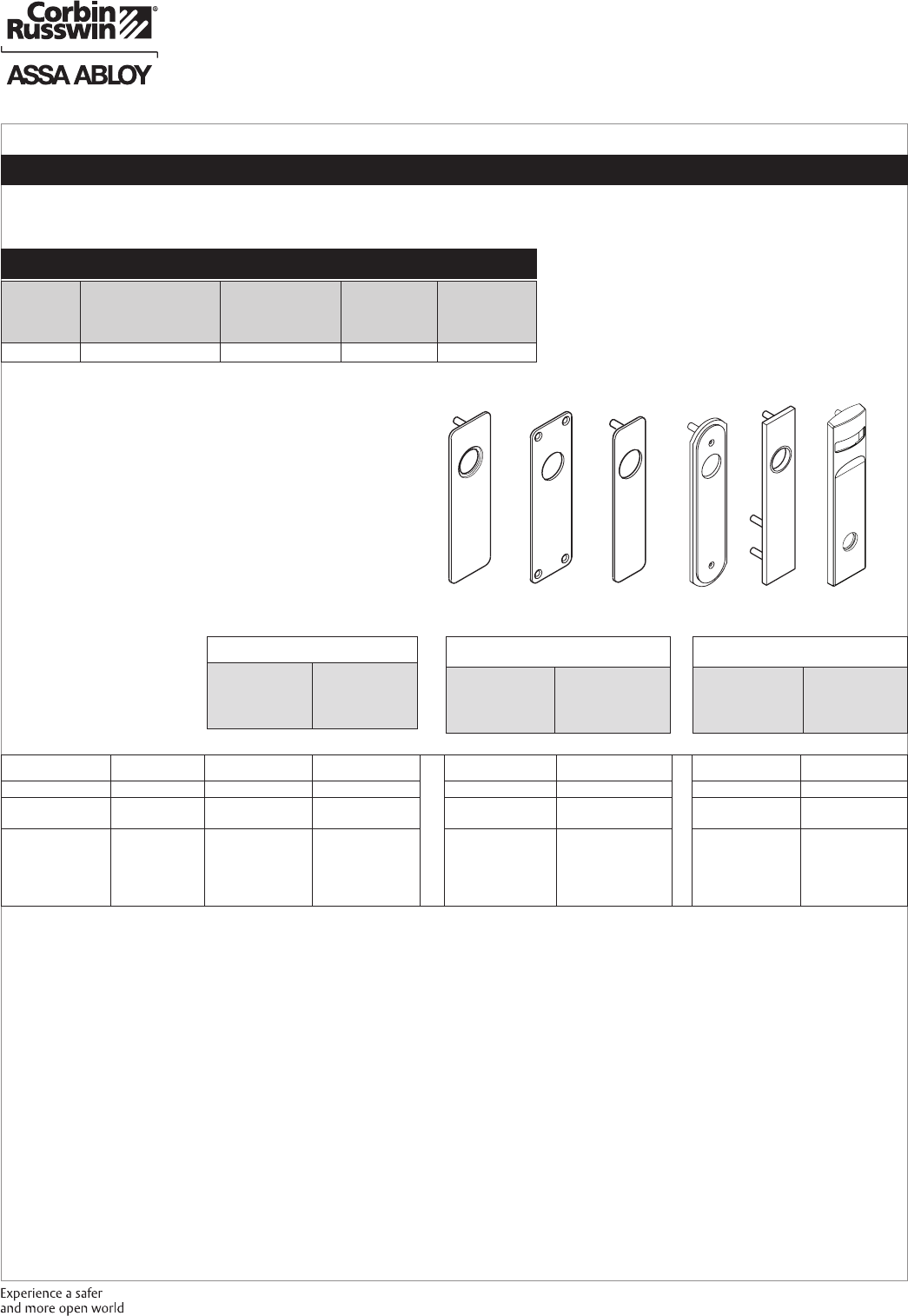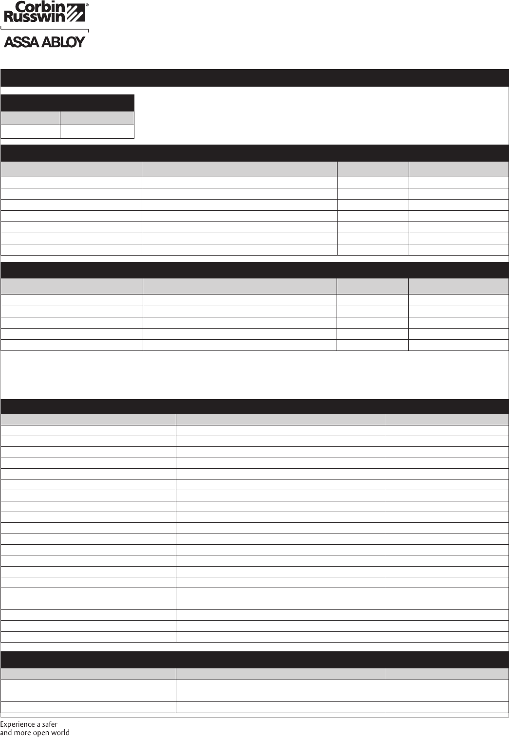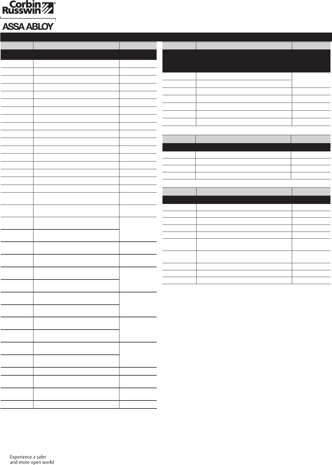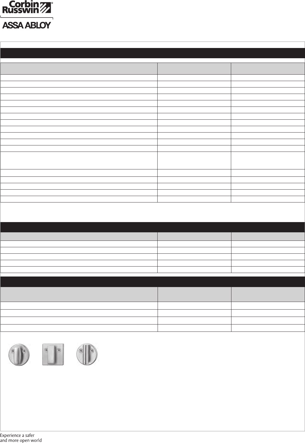 These materials are protected under US copyright laws. All contents current at time of publication. Corbin Russwin Inc., an ASSA ABLOY Group company reserves the right to change availability of any item in this