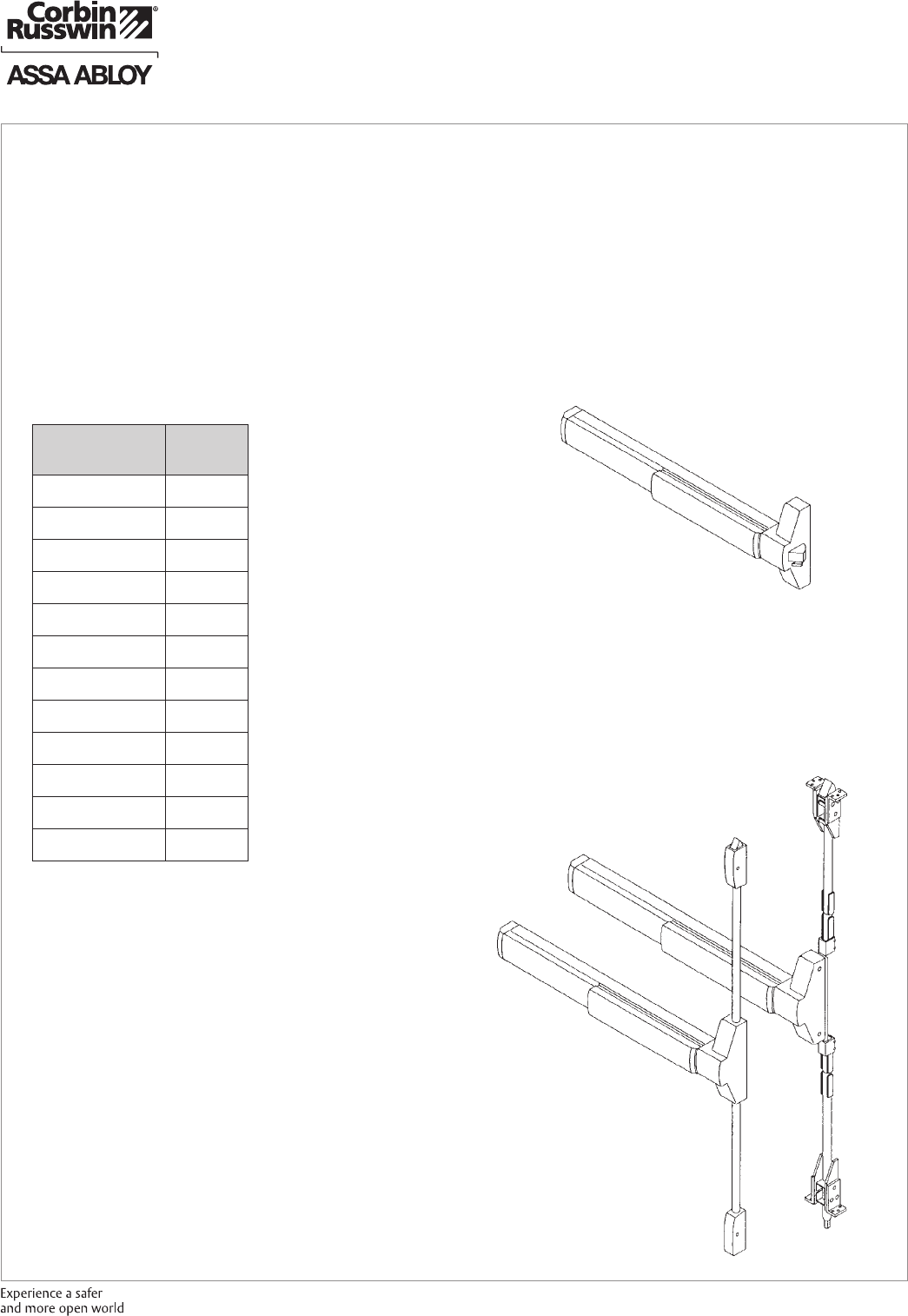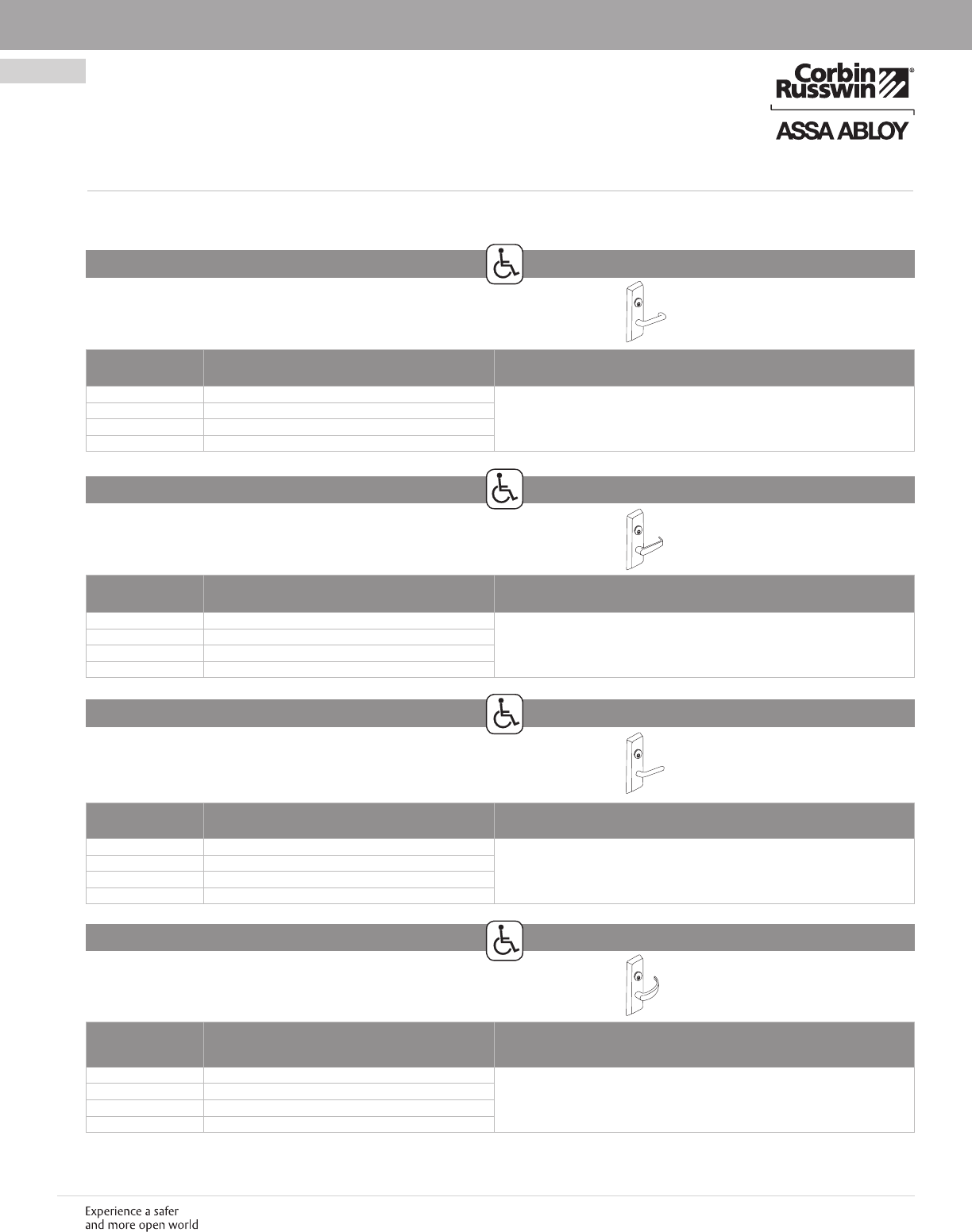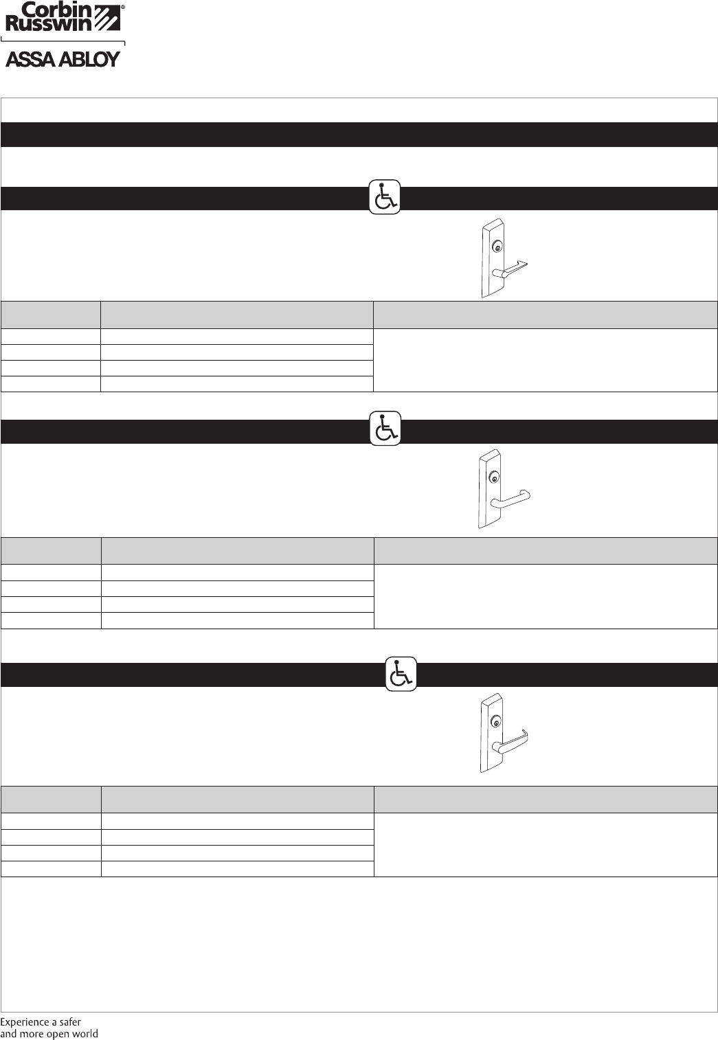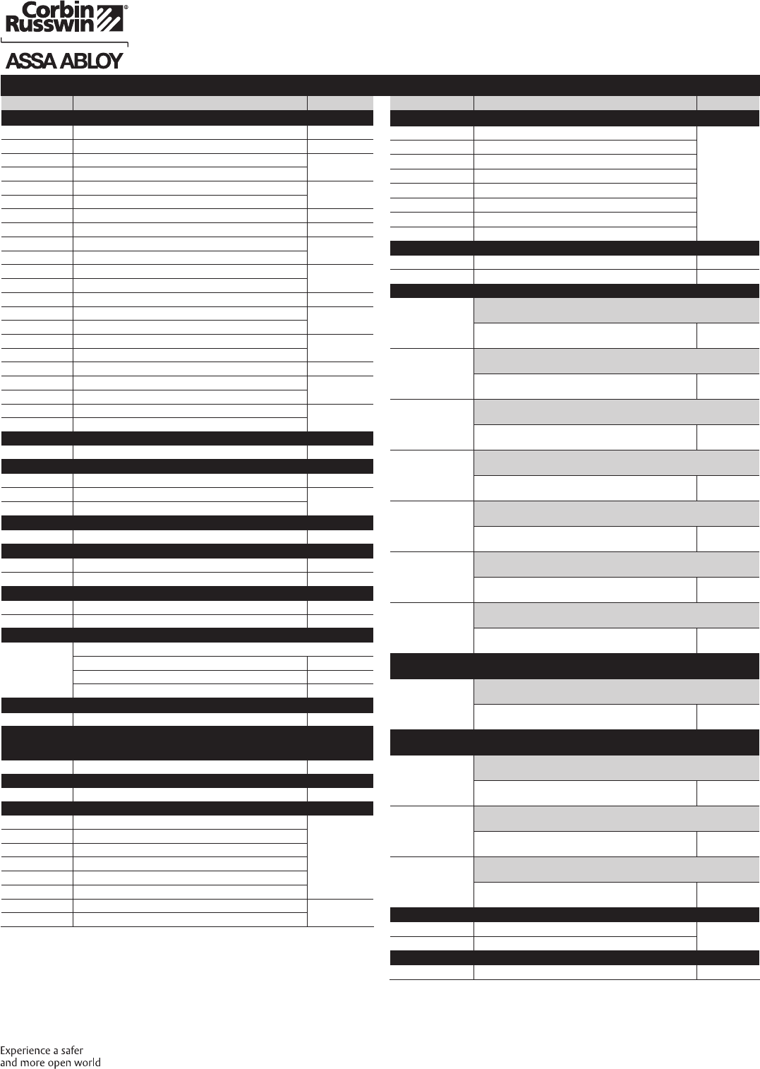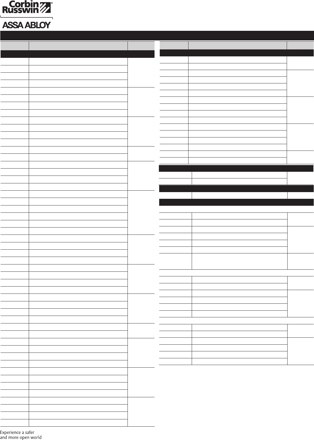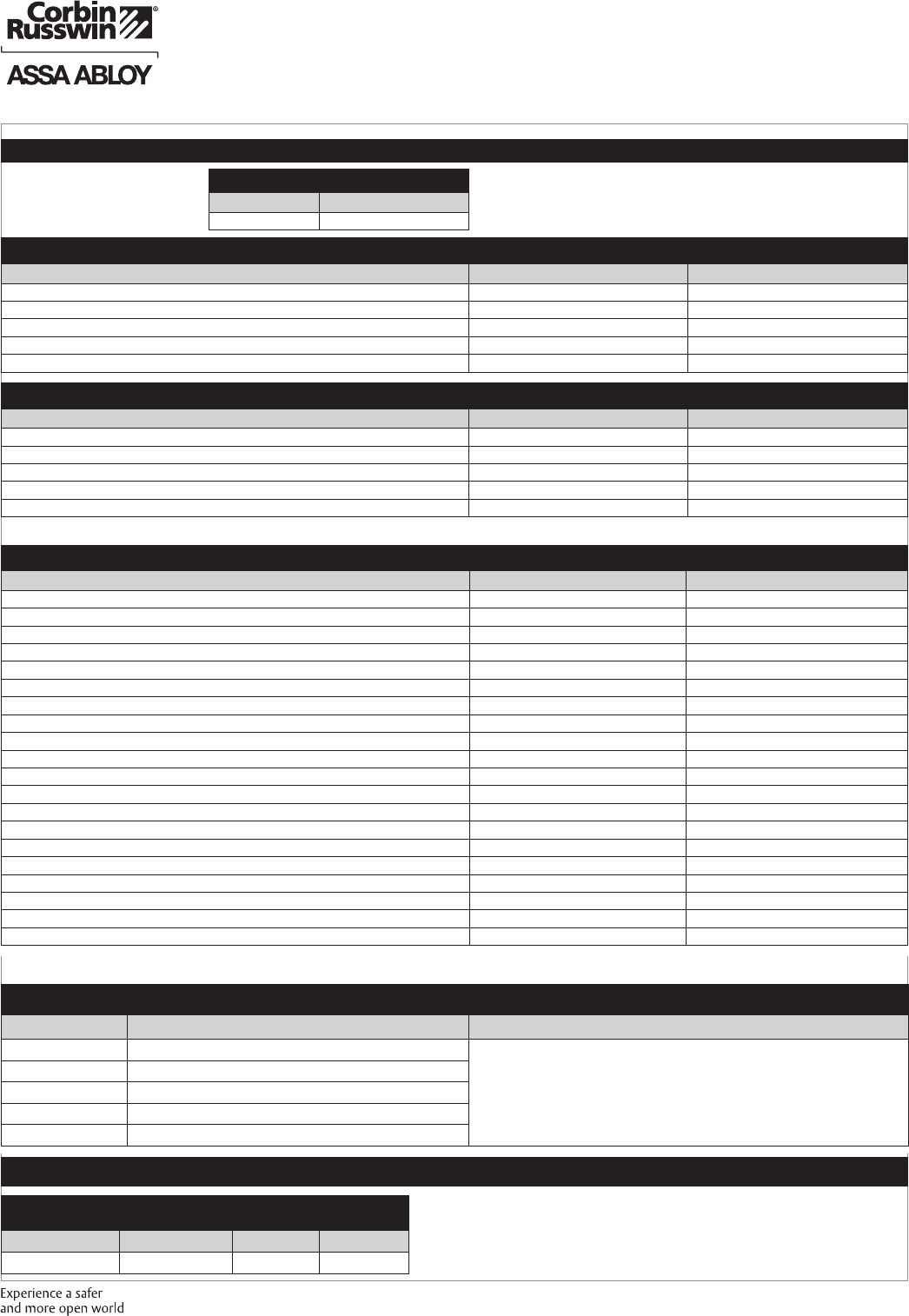 These materials are protected under US copyright laws. All contents current at time of publication. Corbin Russwin Inc., an ASSA ABLOY Group company reserves the right to change availability of any item in this