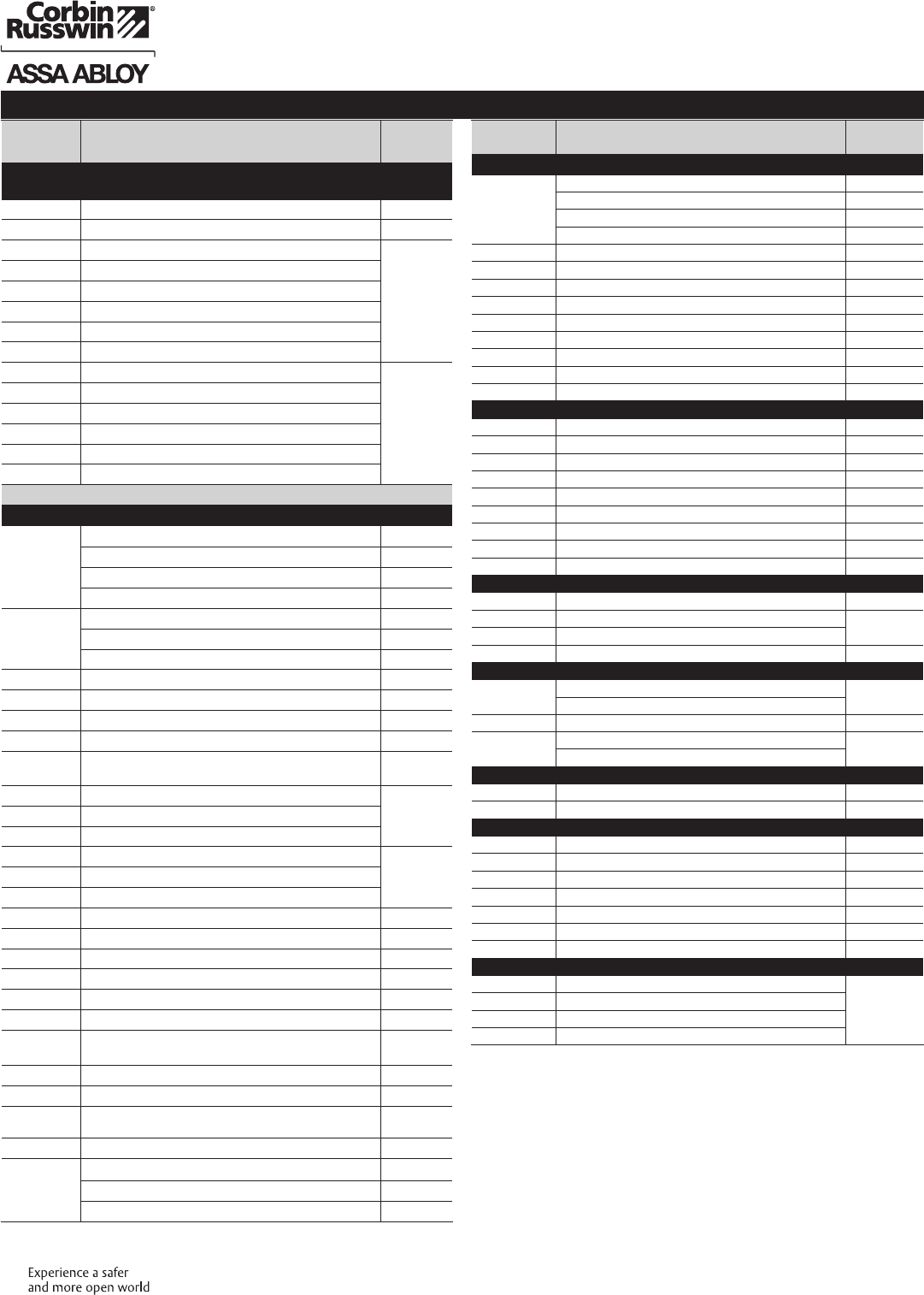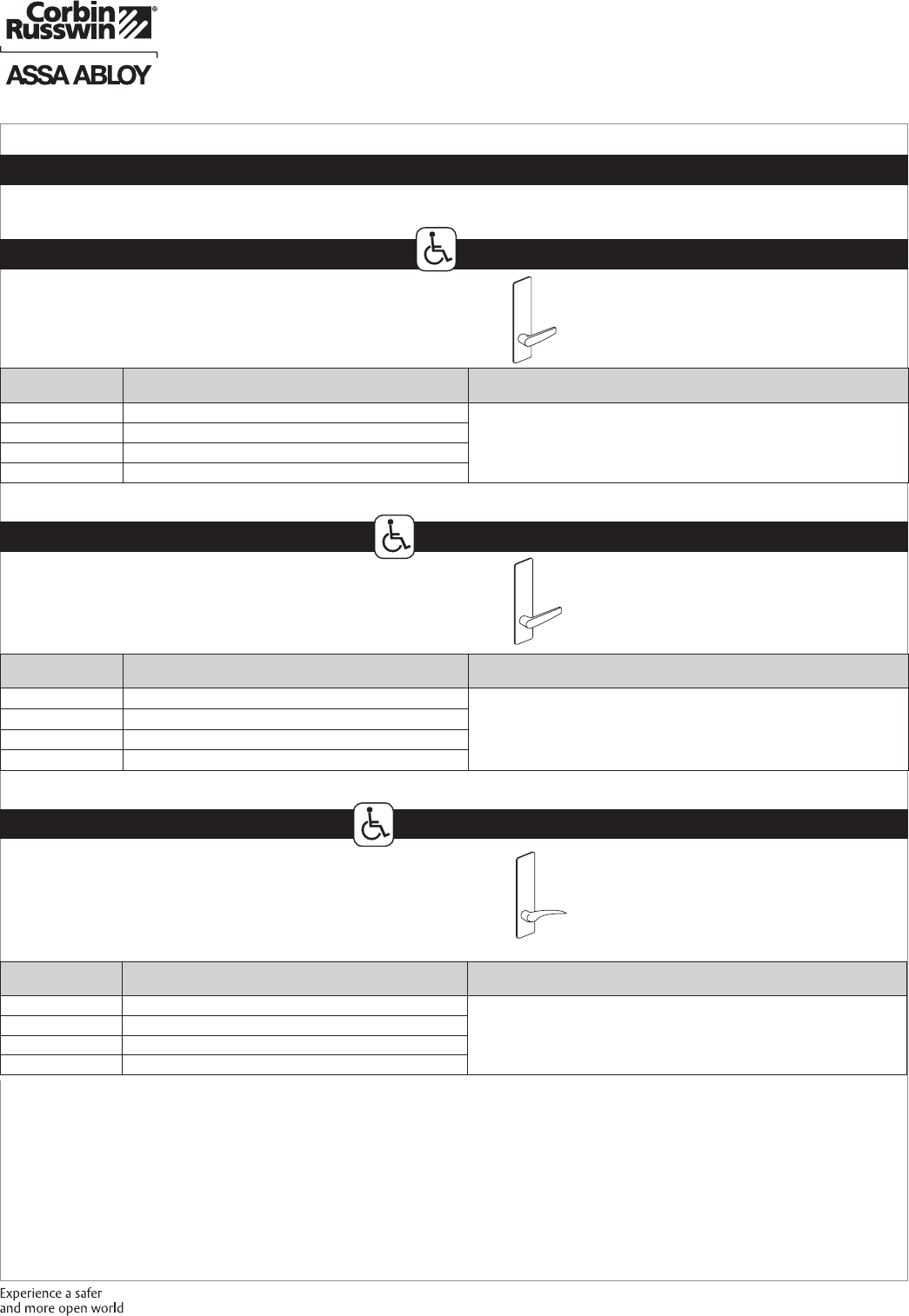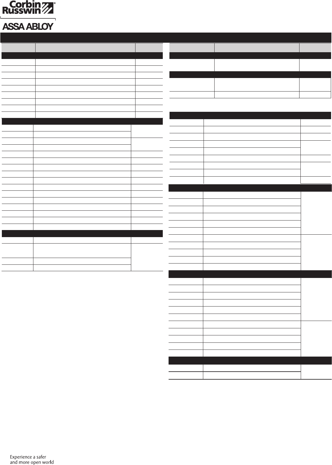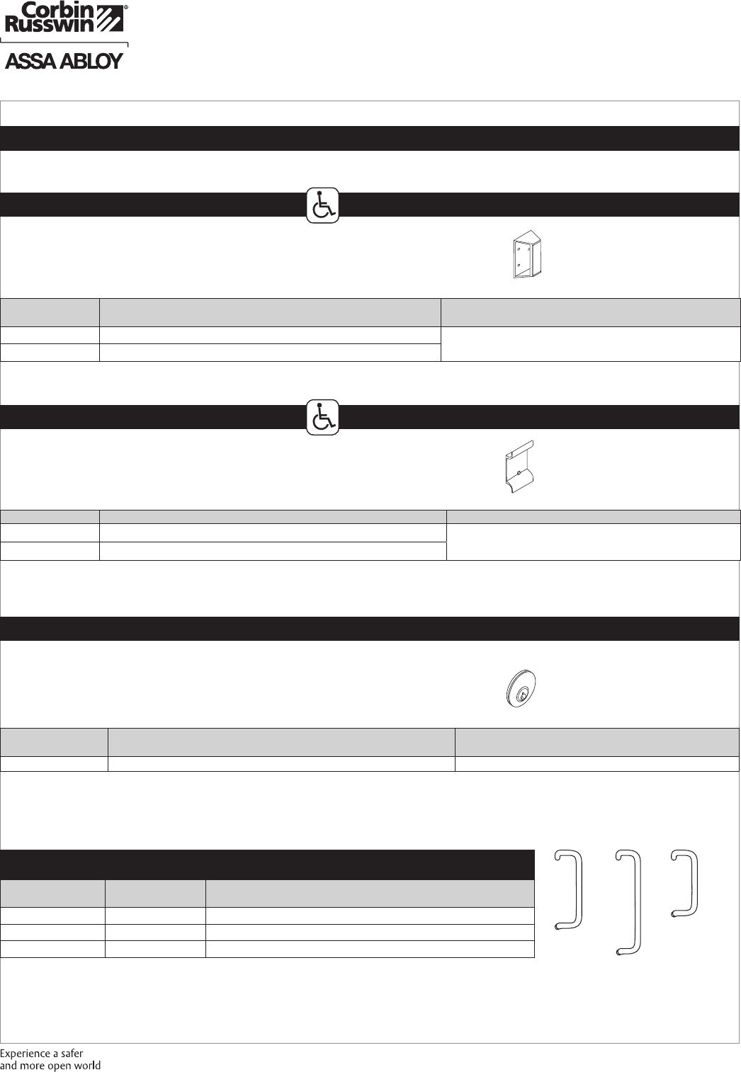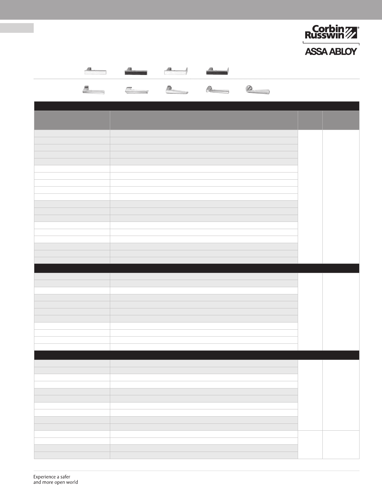 These materials are protected under US copyright laws. All contents current at time of publication. Corbin Russwin Inc., an ASSA ABLOY Group company reserves the right to change availability of any item in this