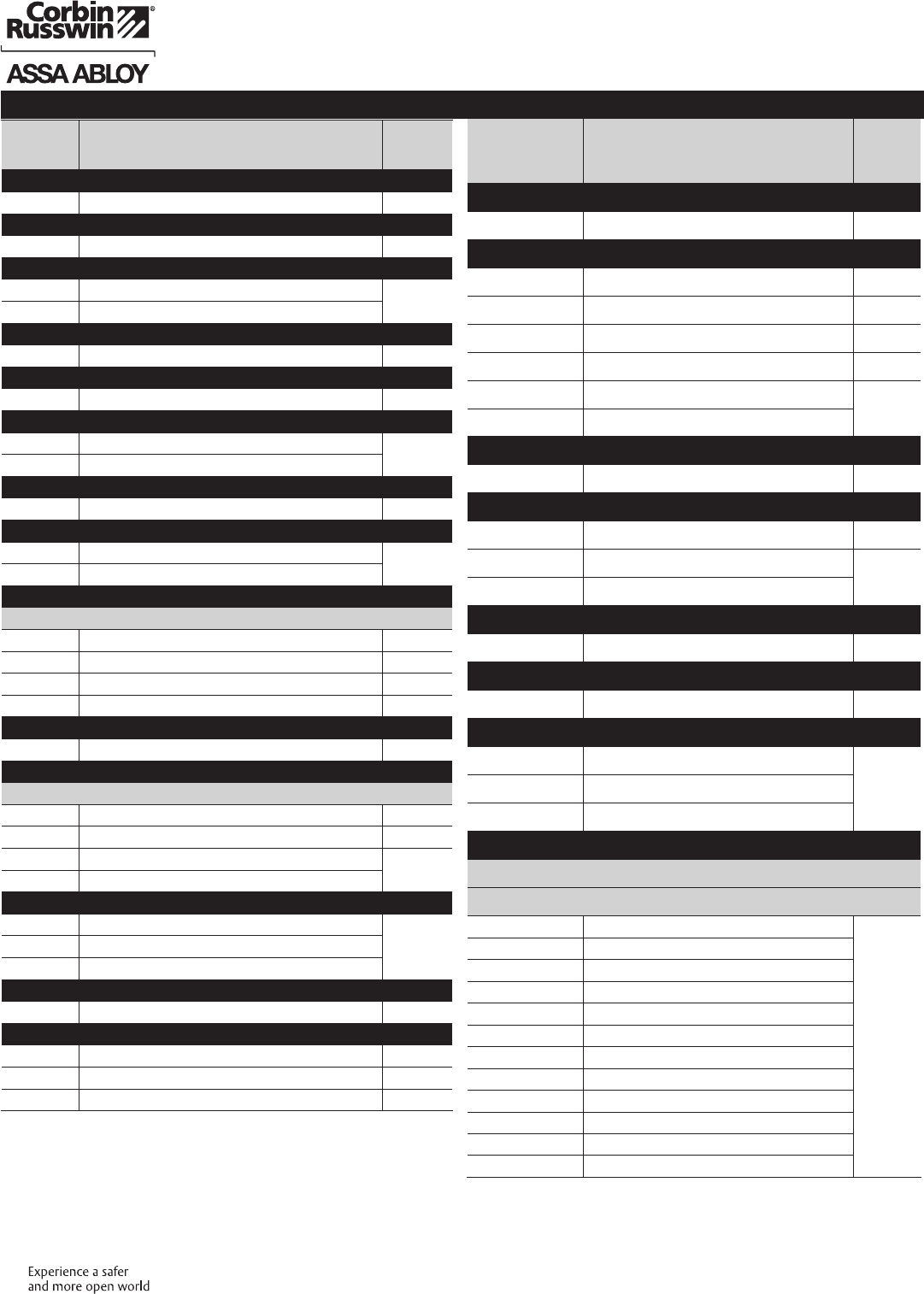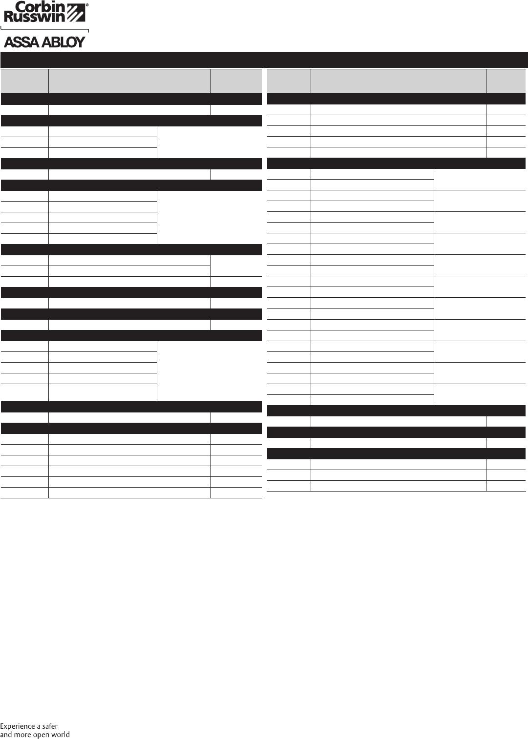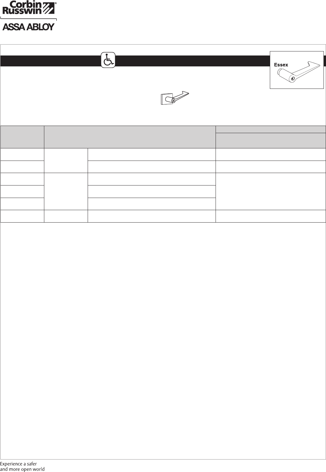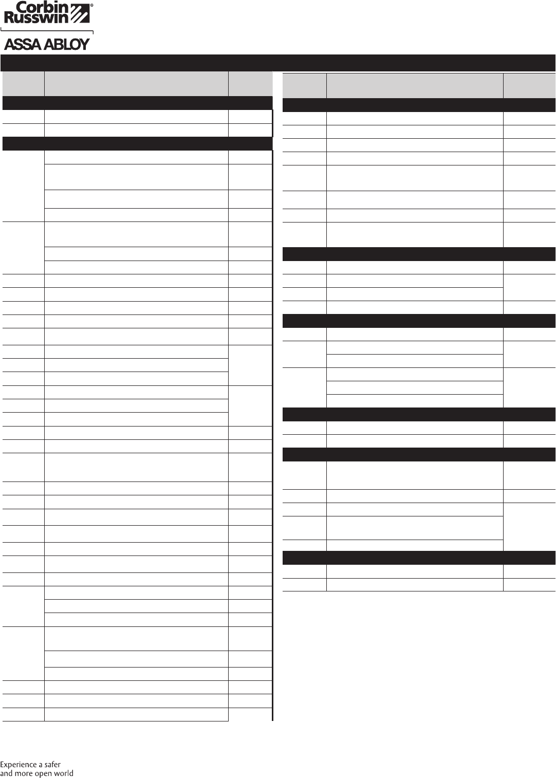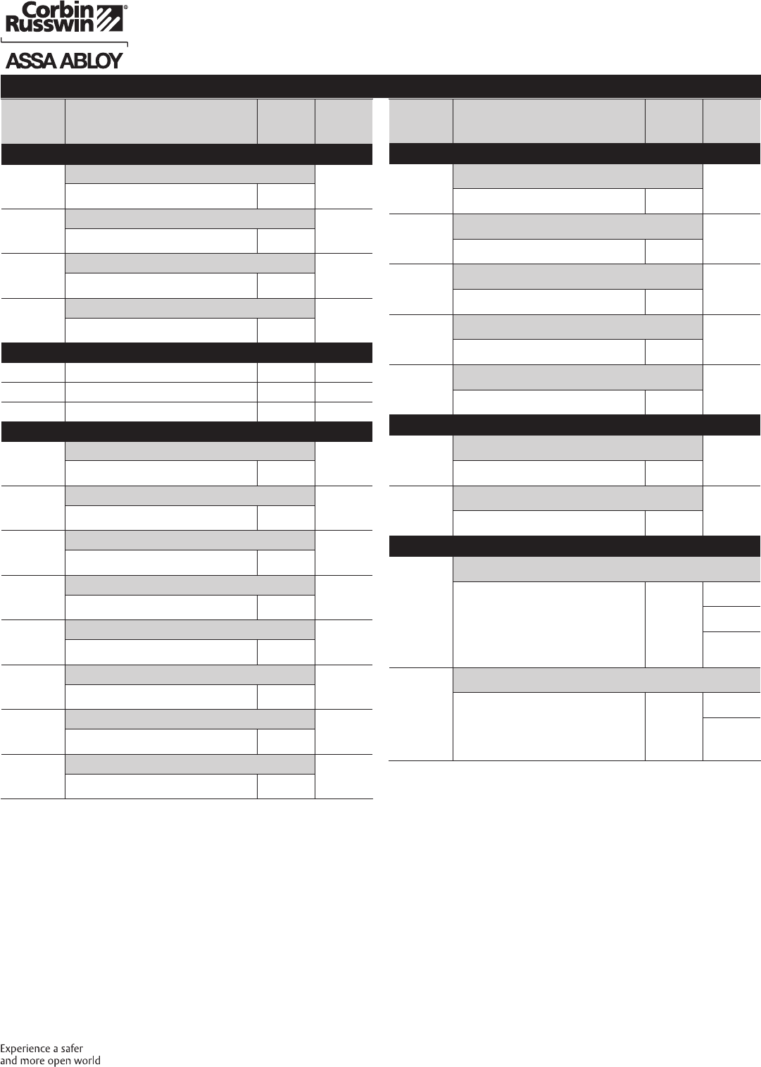These materials are protected under US copyright laws. All contents current at time of publication. Corbin Russwin Inc., an ASSA ABLOY Group company reserves the right to change availability of any item in this