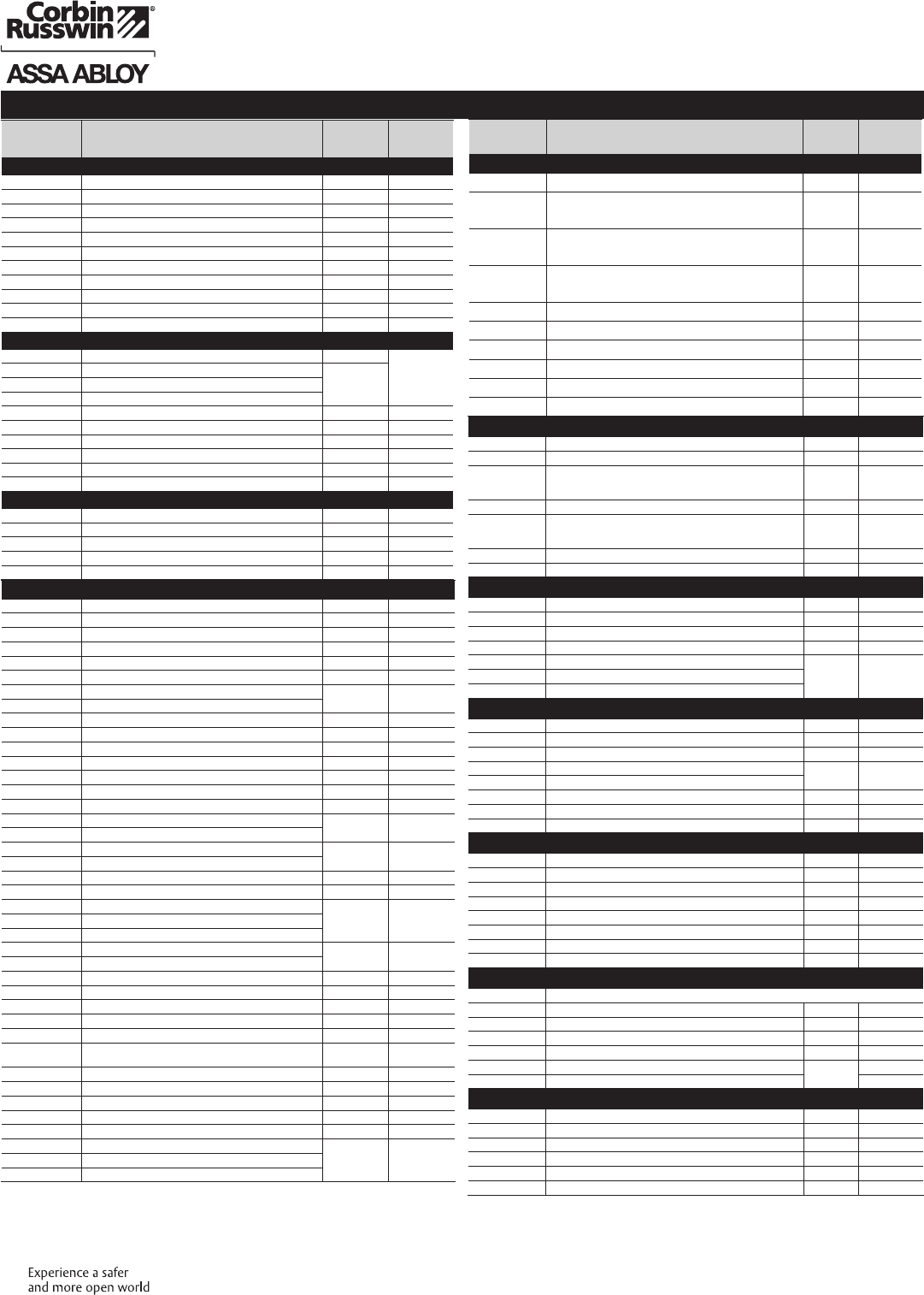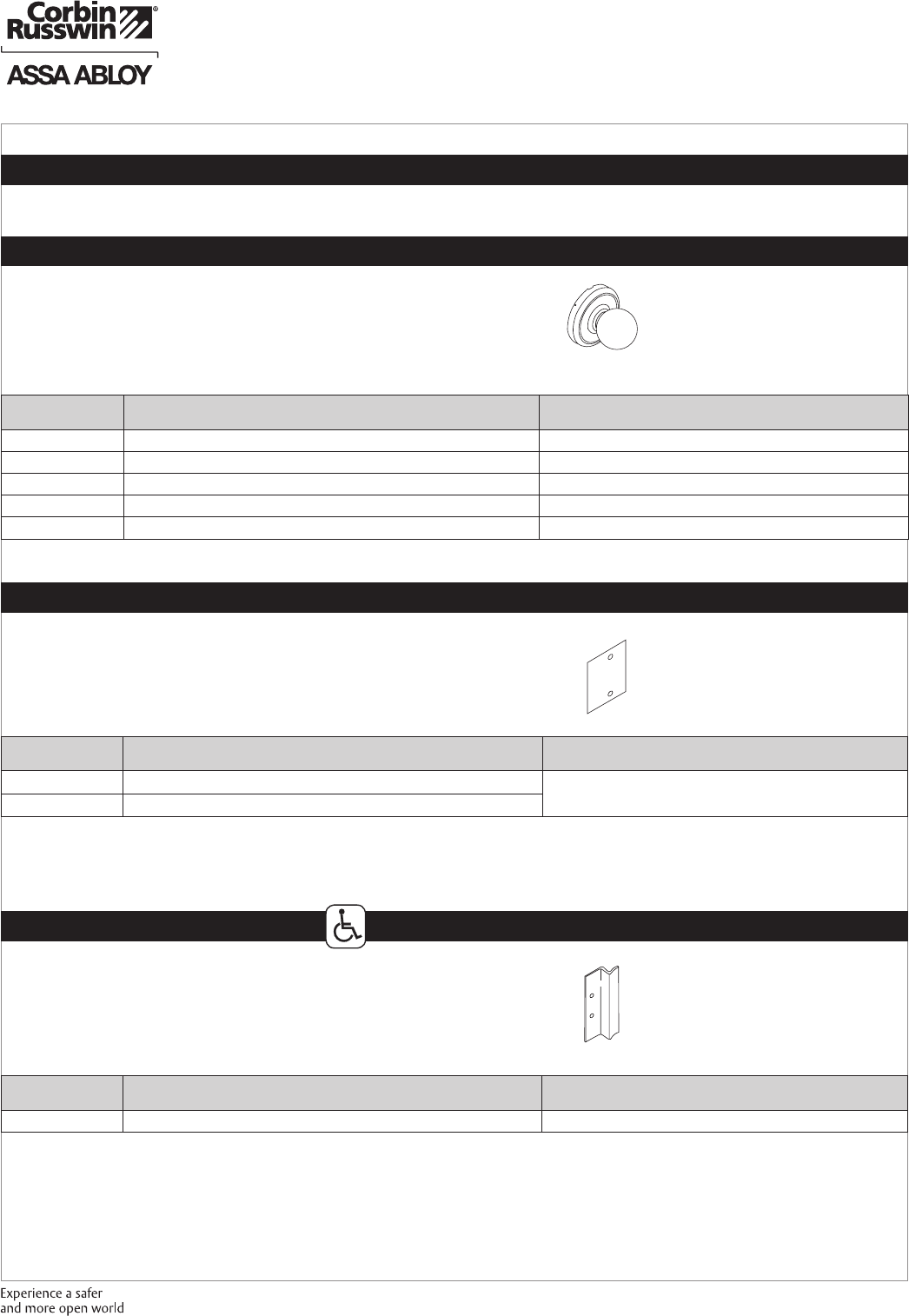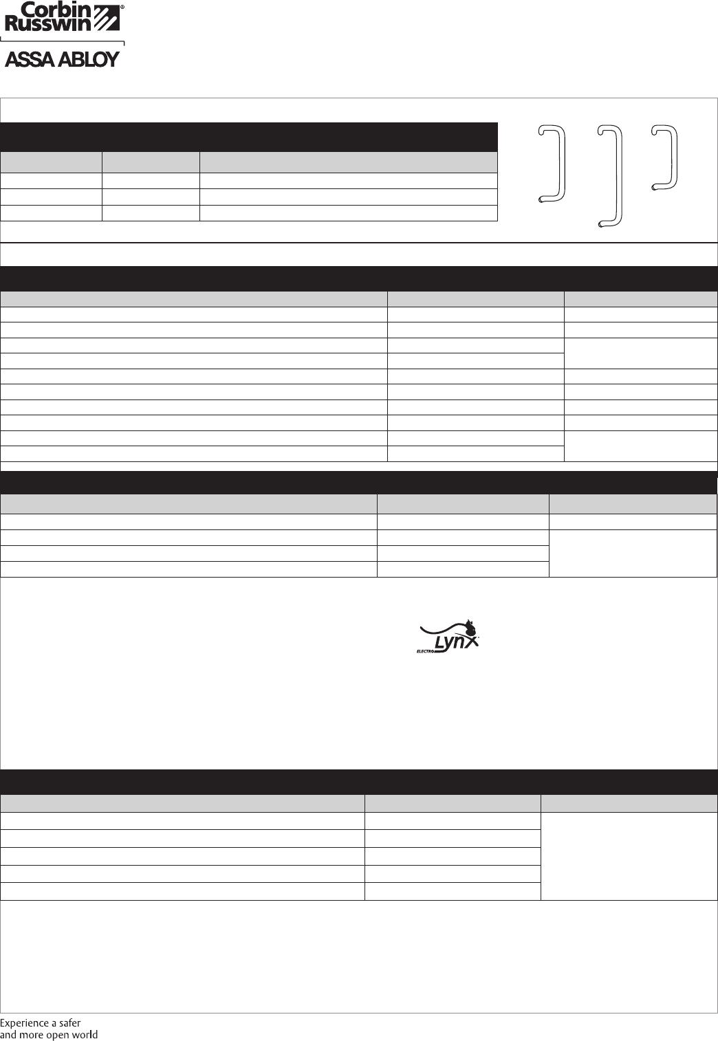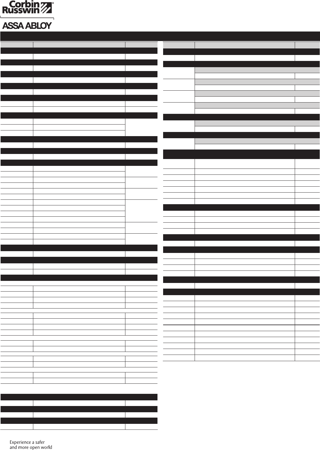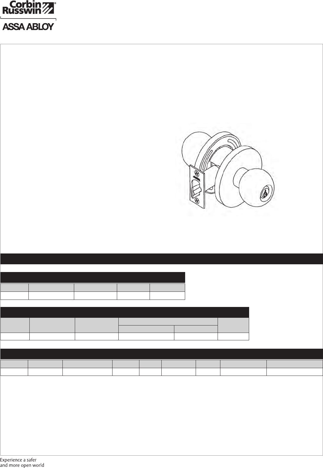 These materials are protected under US copyright laws. All contents current at time of publication. Corbin Russwin Inc., an ASSA ABLOY Group company reserves the right to change availability of any item in this