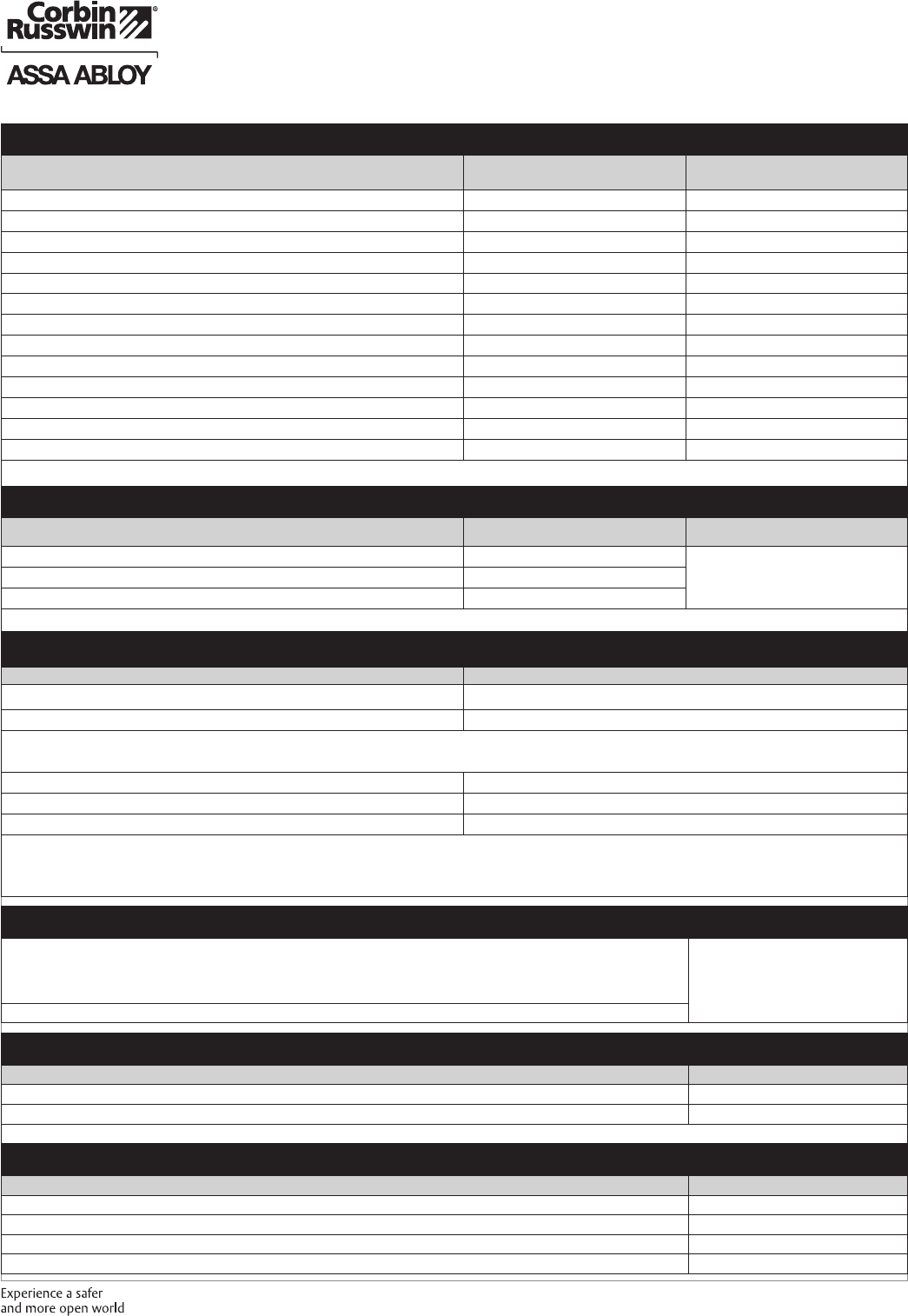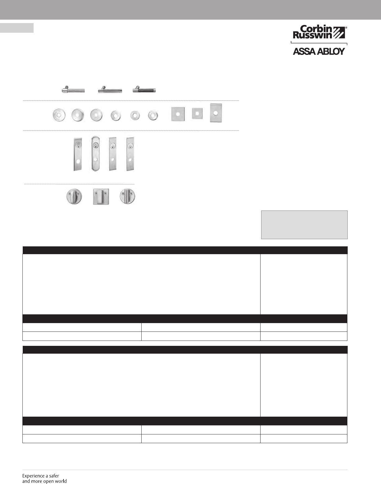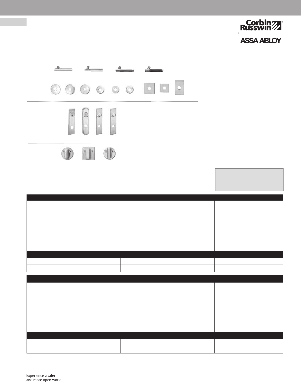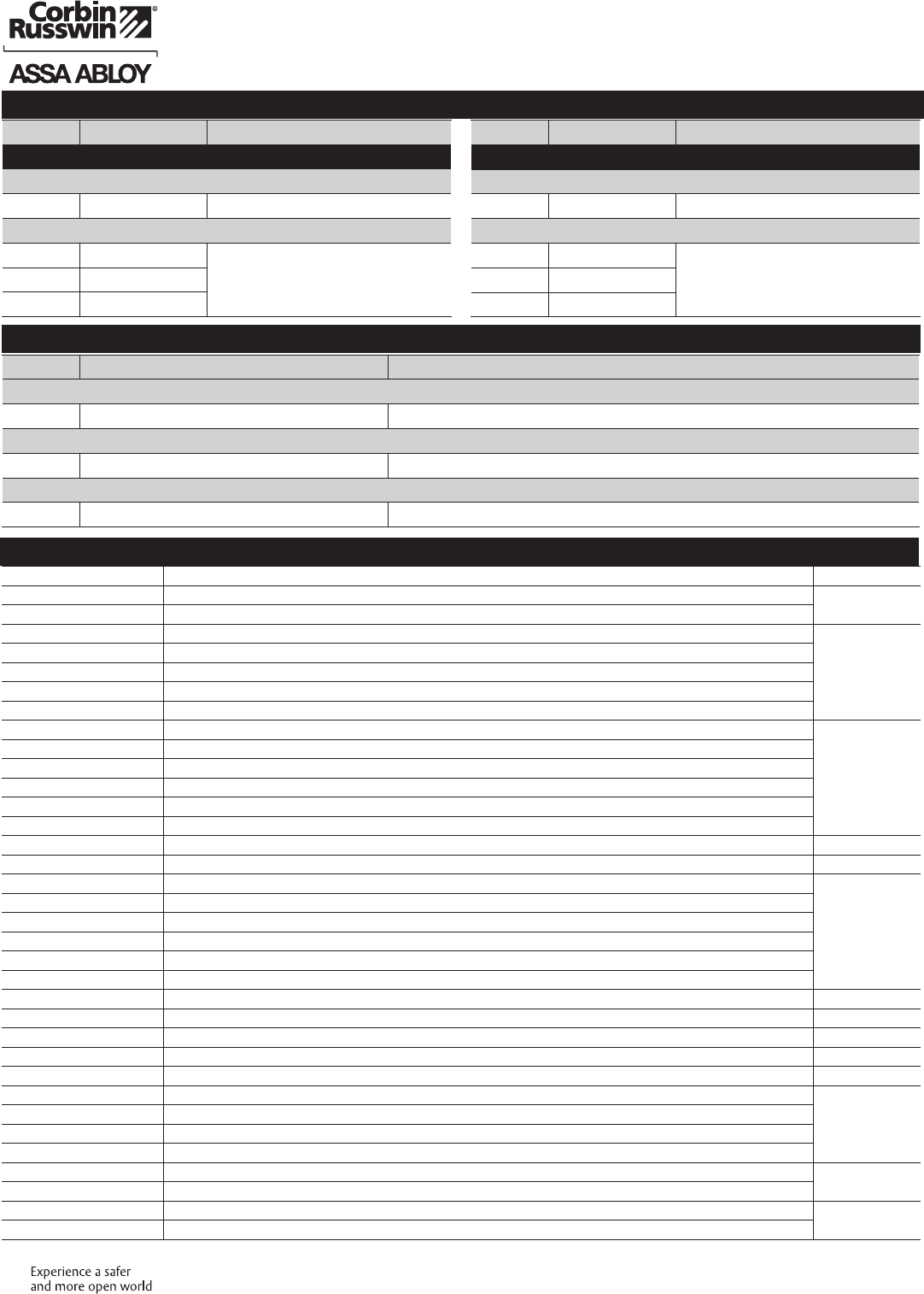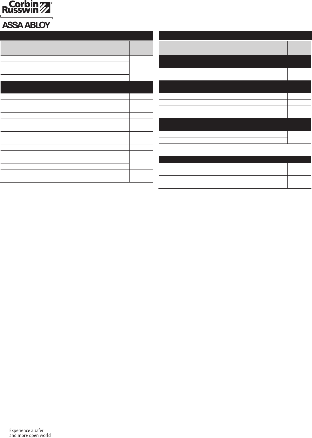These materials are protected under US copyright laws. All contents current at time of publication. Corbin Russwin Inc., an ASSA ABLOY Group company reserves the right to change availability of any item in this