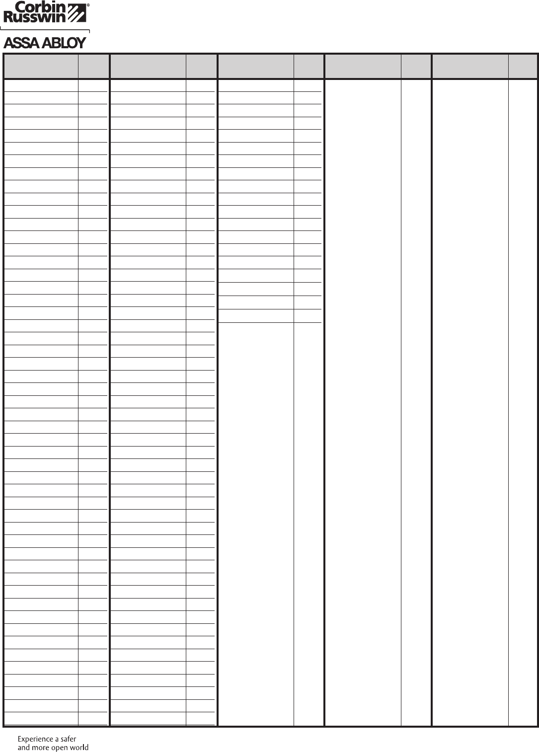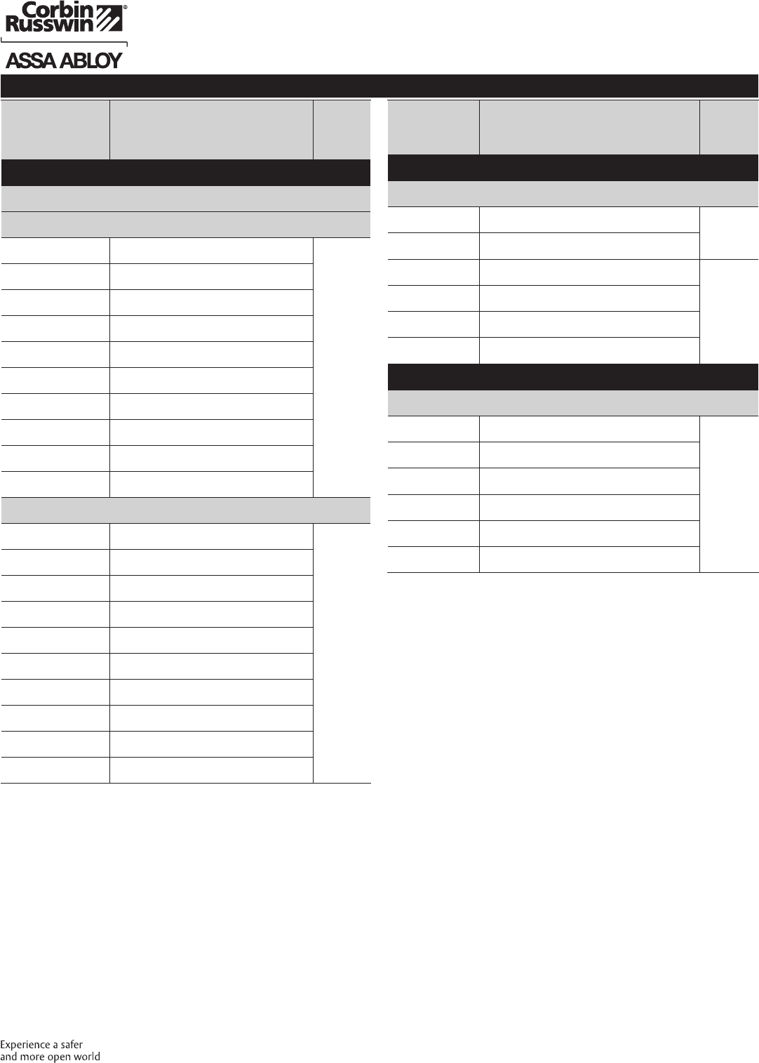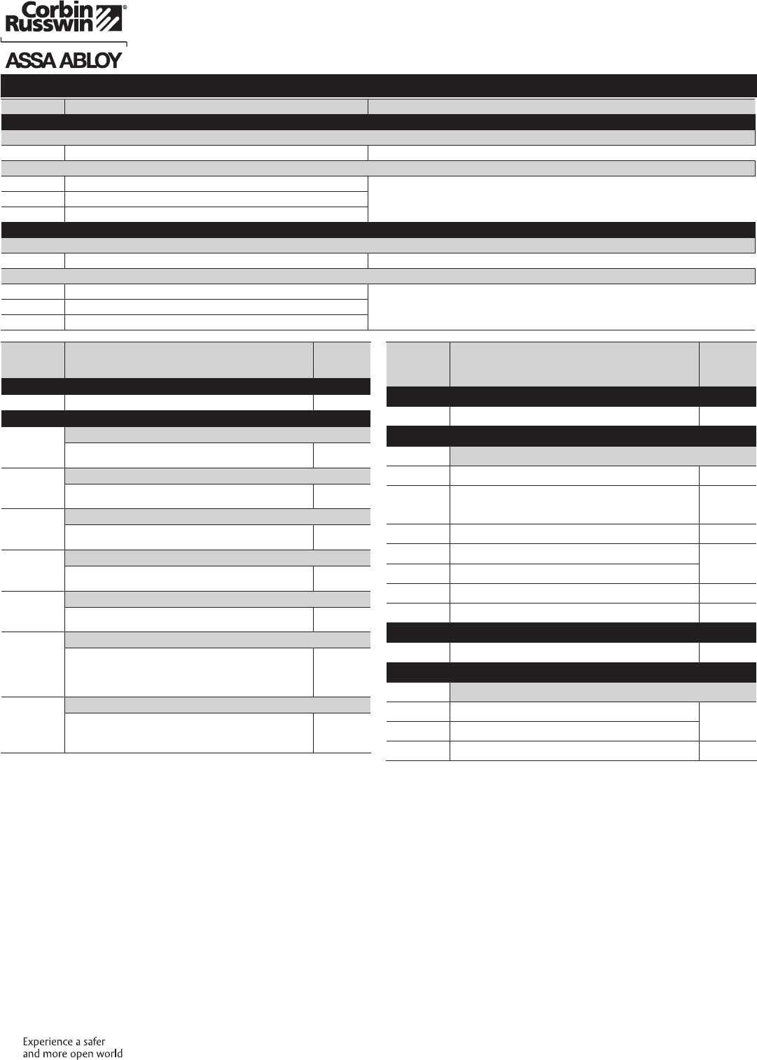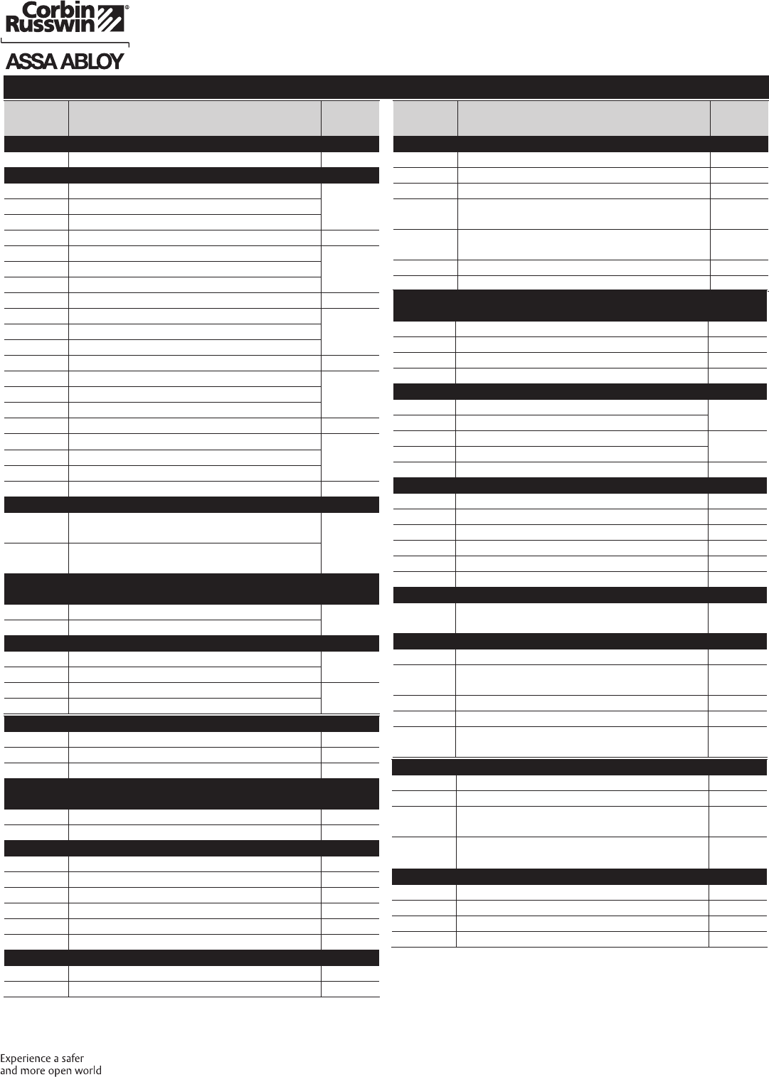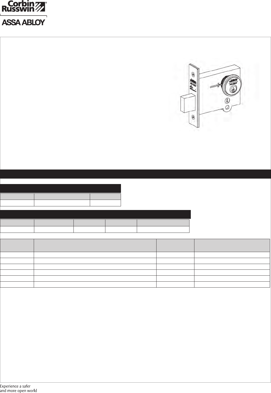 These materials are protected under US copyright laws. All contents current at time of publication. Corbin Russwin Inc., an ASSA ABLOY Group company reserves the right to change availability of any item in this