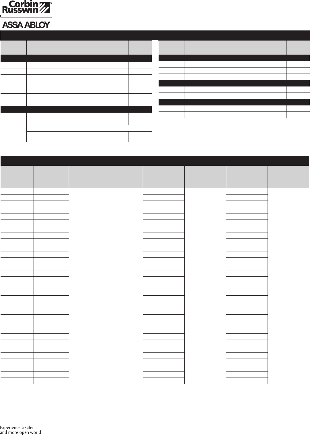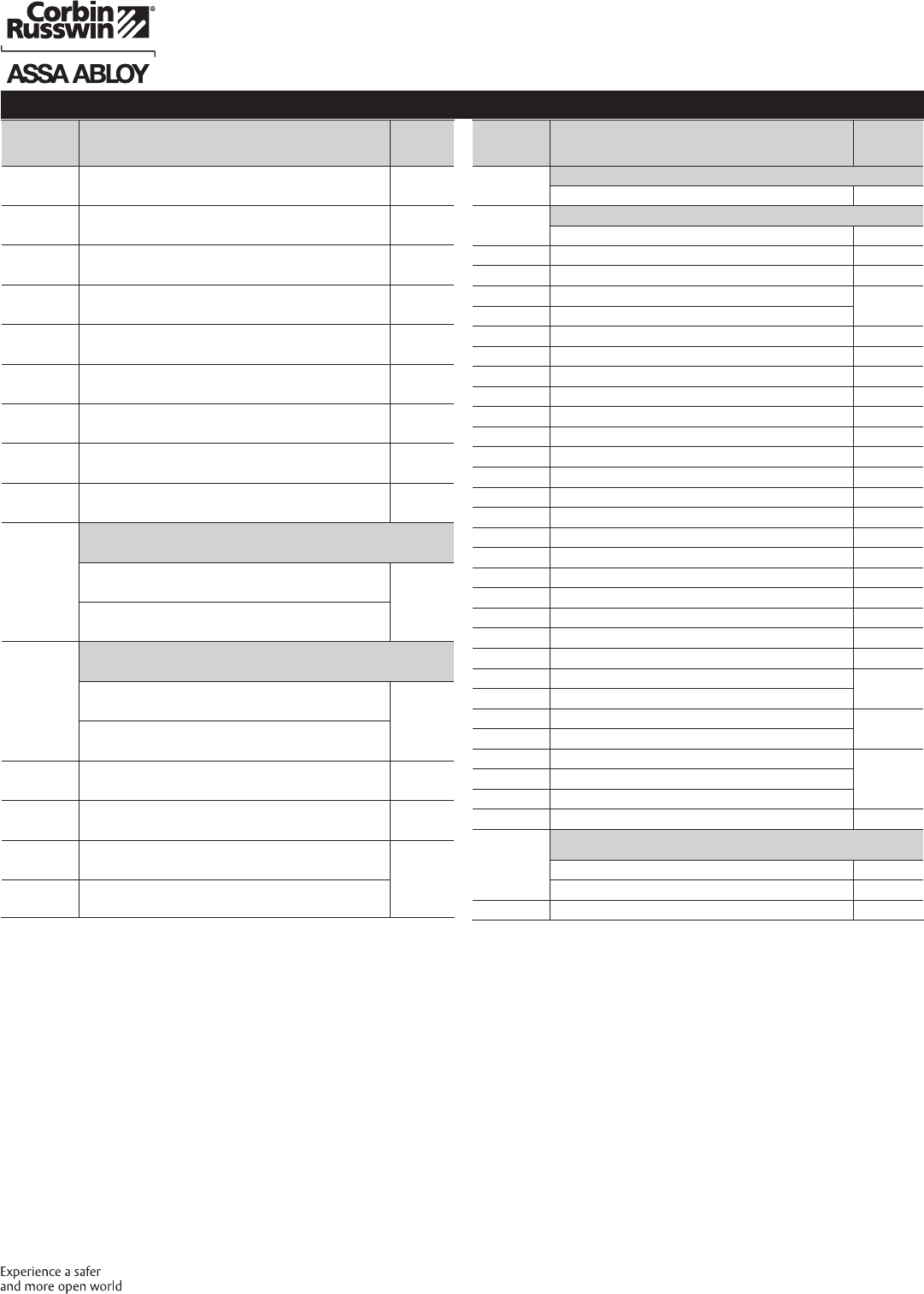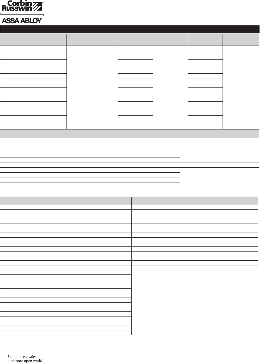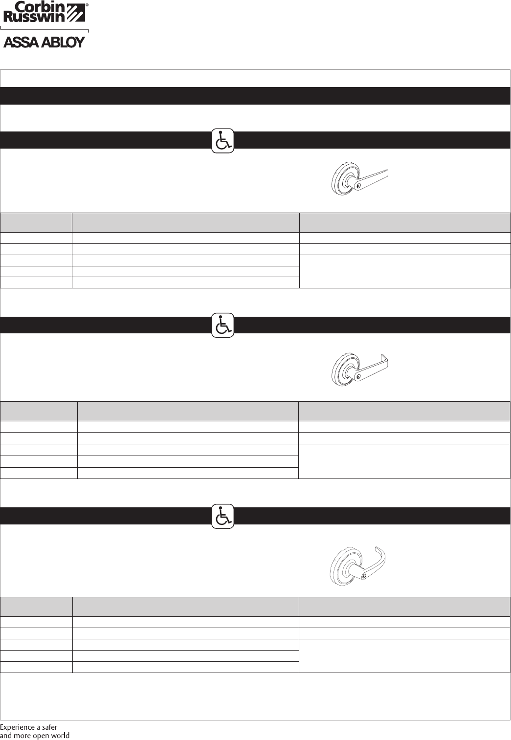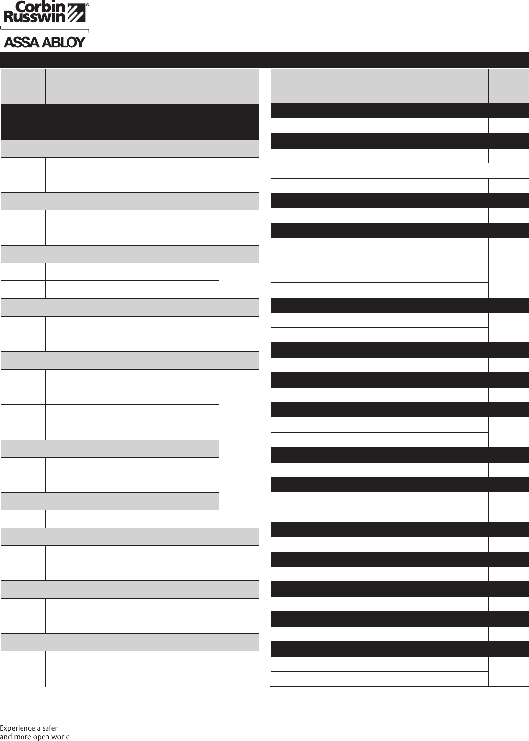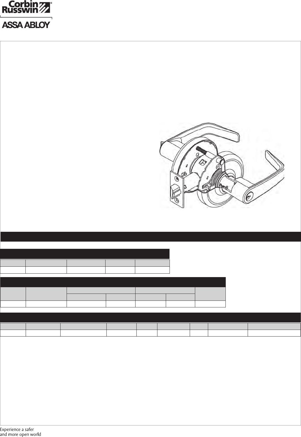 These materials are protected under US copyright laws. All contents current at time of publication. Corbin Russwin Inc., an ASSA ABLOY Group company reserves the right to change availability of any item in this