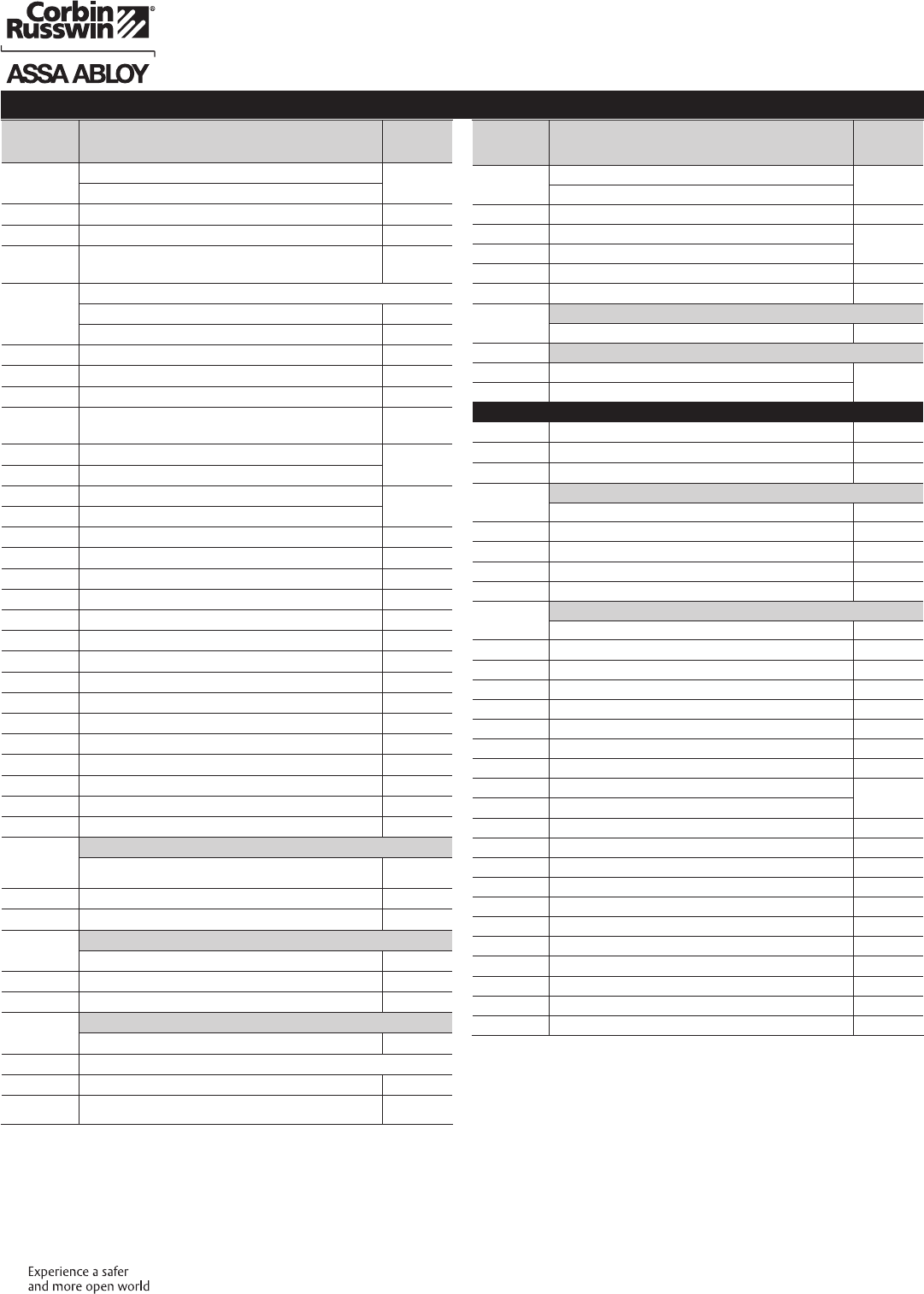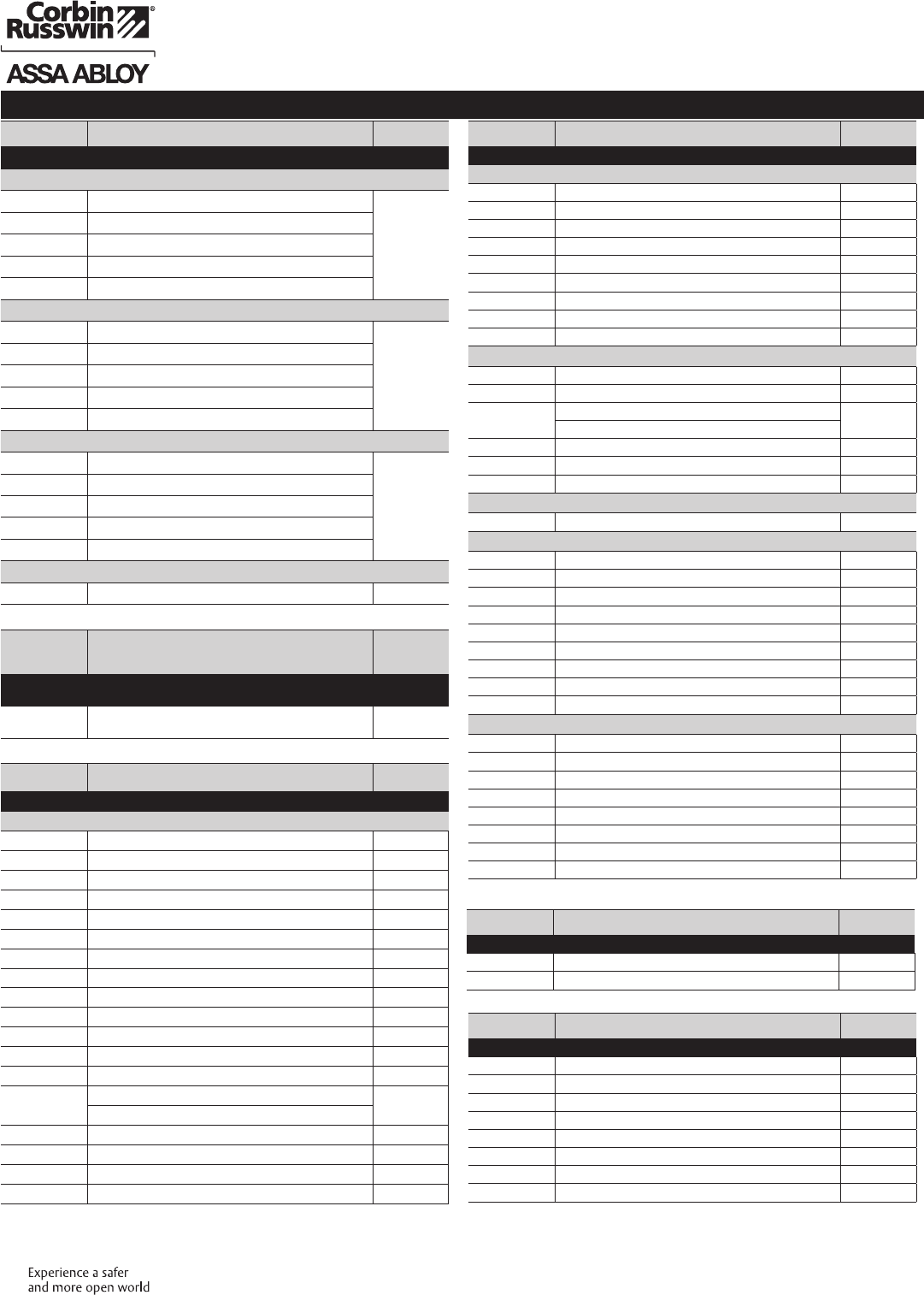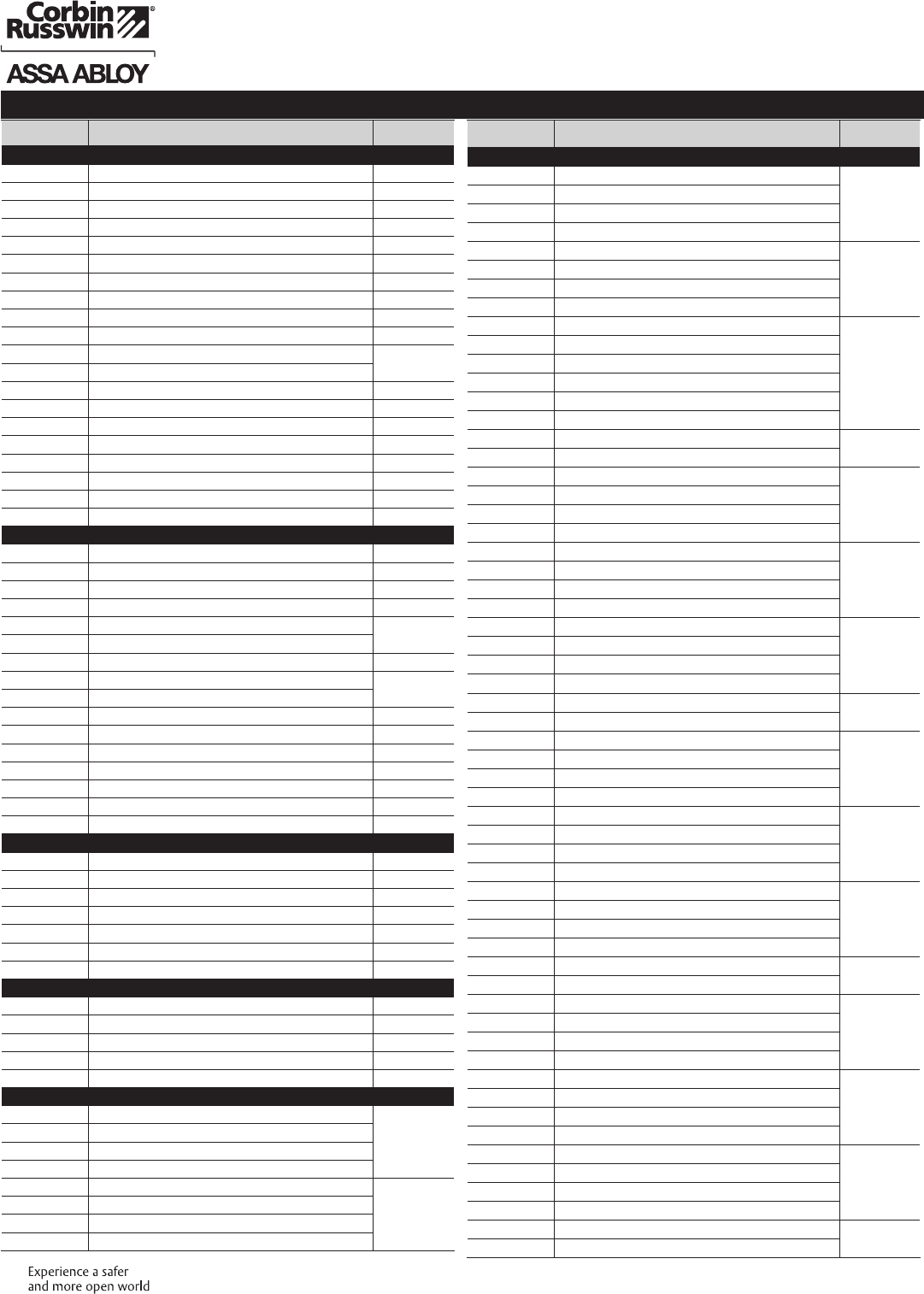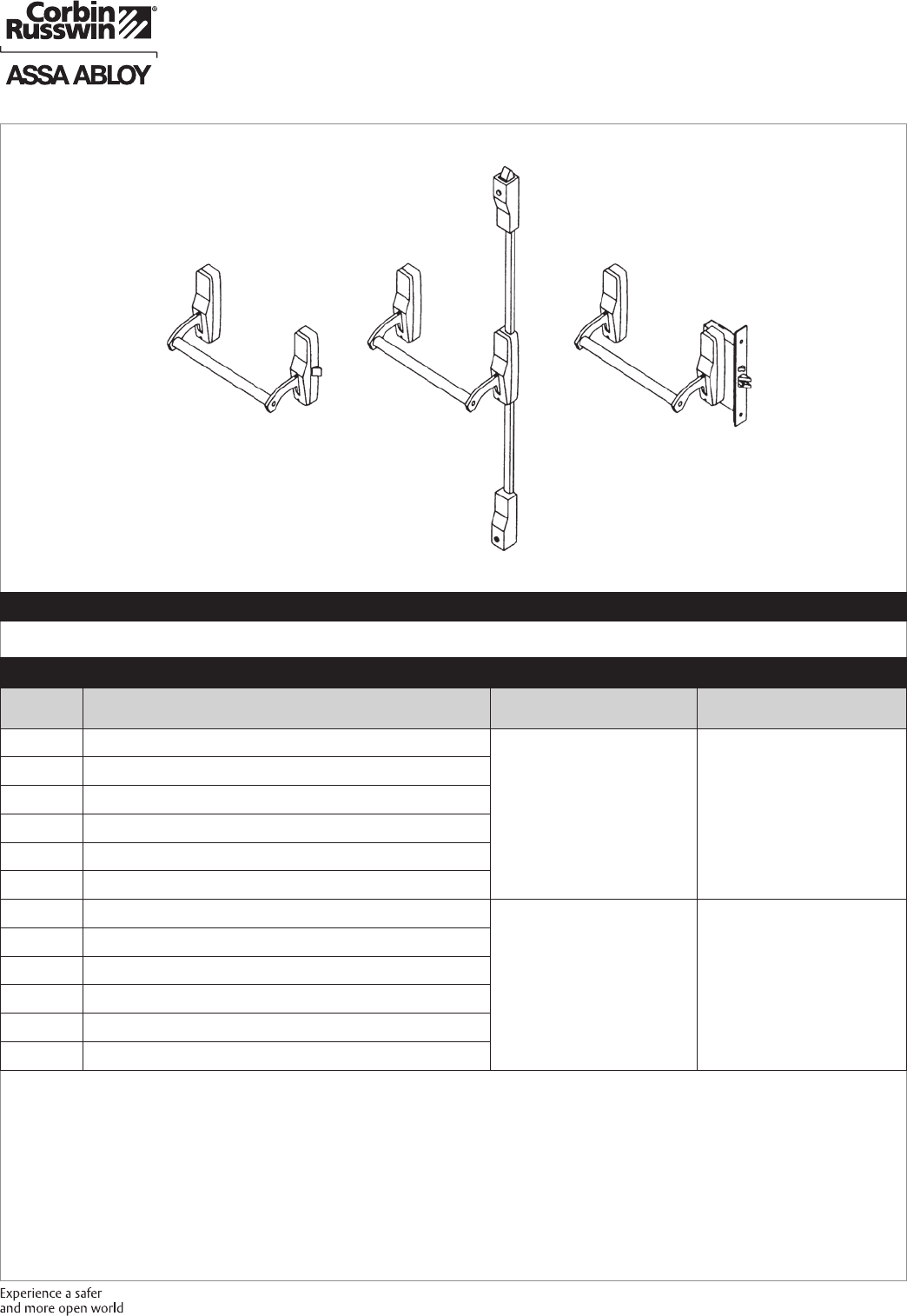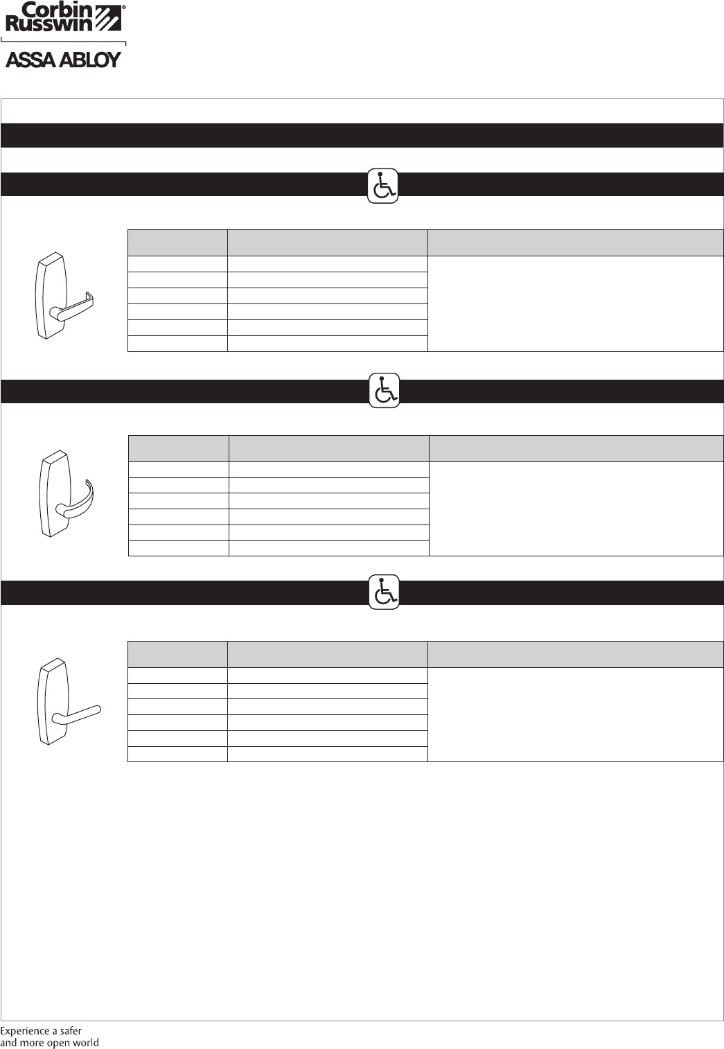 These materials are protected under US copyright laws. All contents current at time of publication. Corbin Russwin Inc., an ASSA ABLOY Group company reserves the right to change availability of any item in this