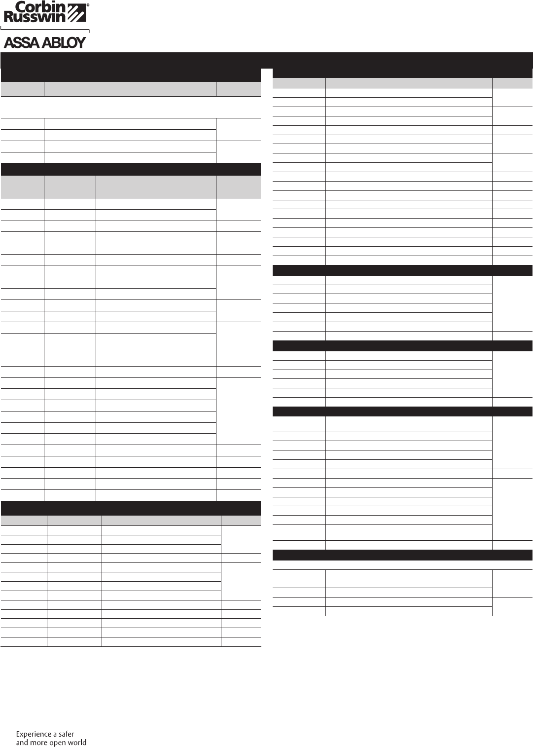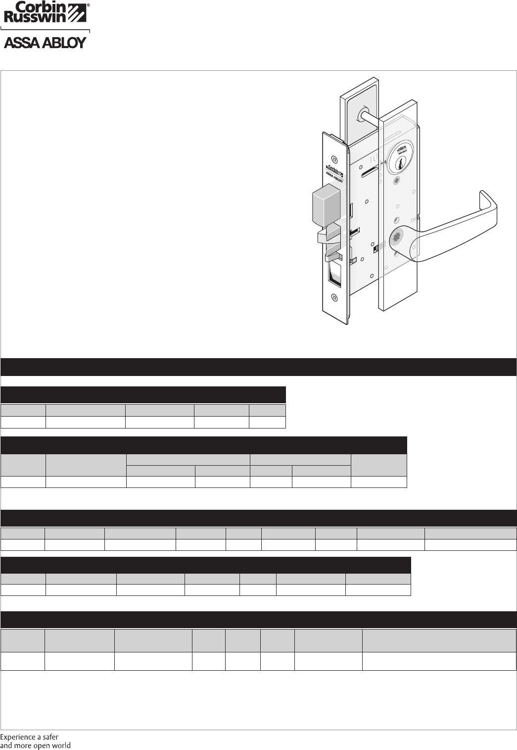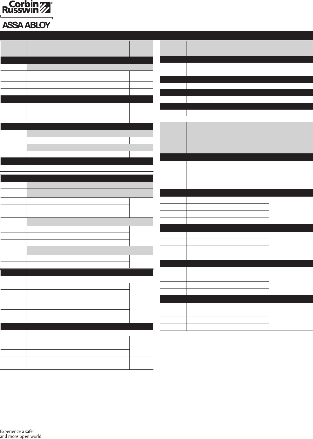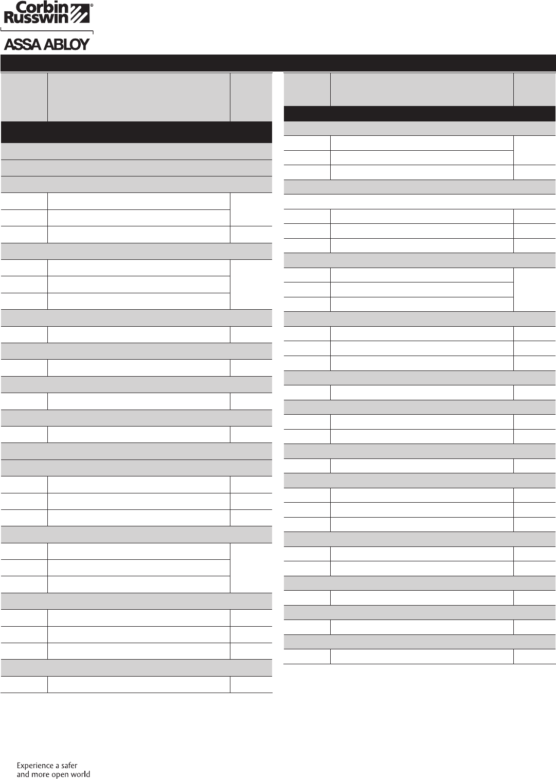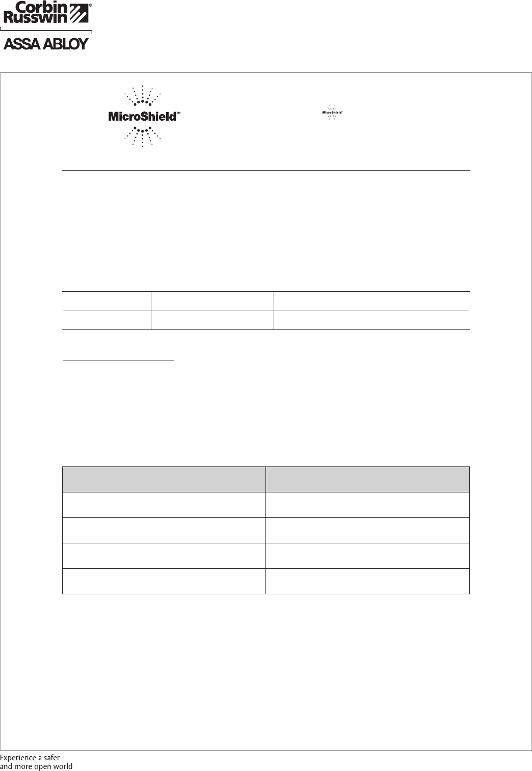 These materials are protected under US copyright laws. All contents current at time of publication. Corbin Russwin Inc., an ASSA ABLOY Group company reserves the right to change availability of any item in this