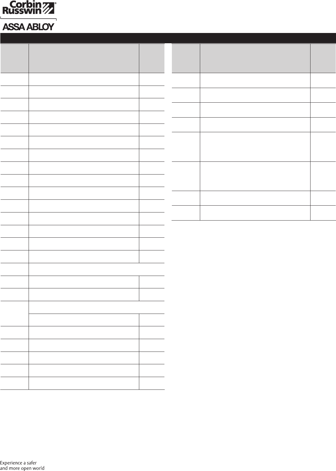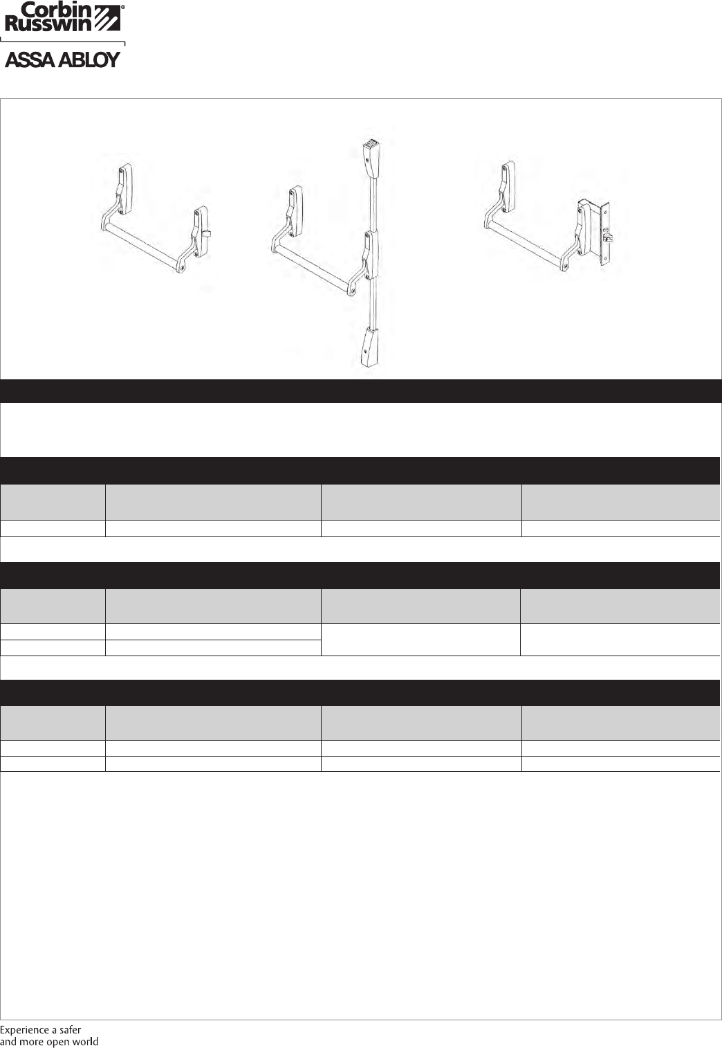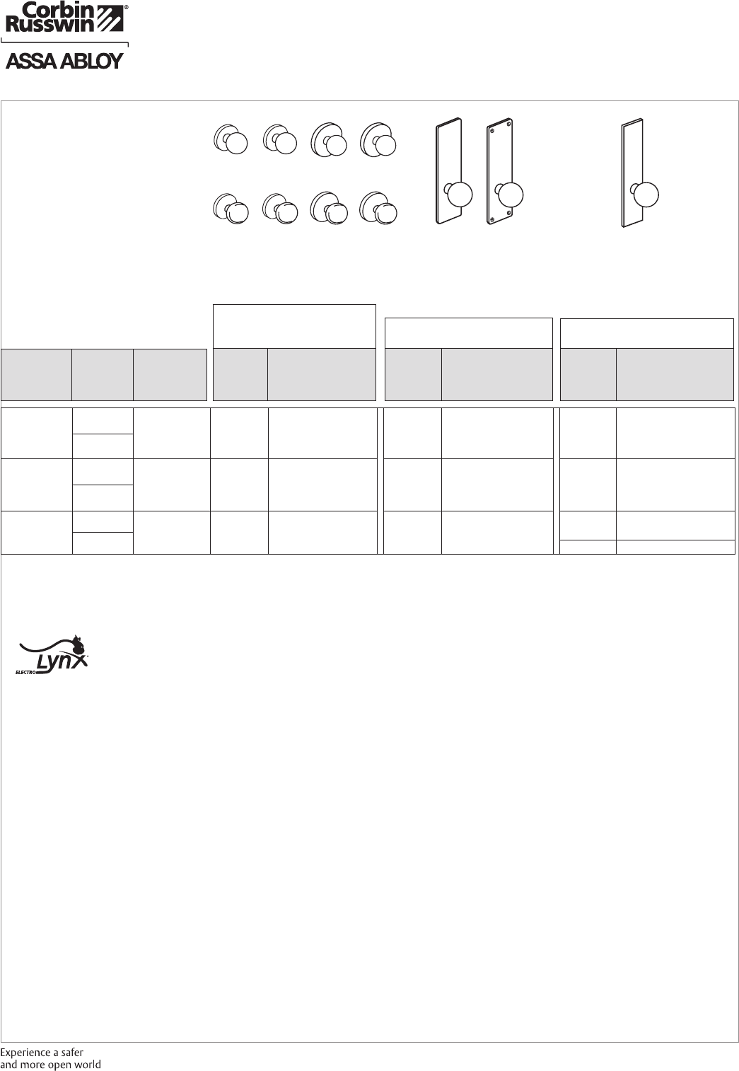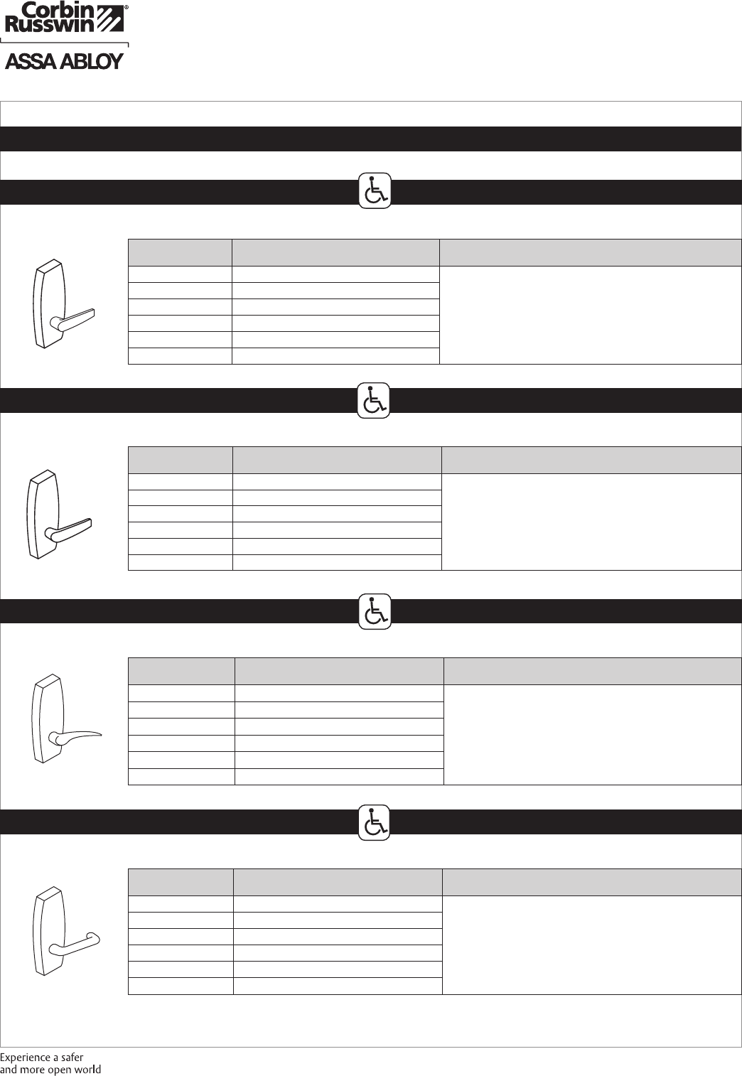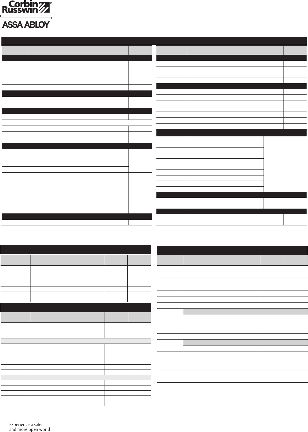 These materials are protected under US copyright laws. All contents current at time of publication. Corbin Russwin Inc., an ASSA ABLOY Group company reserves the right to change availability of any item in this