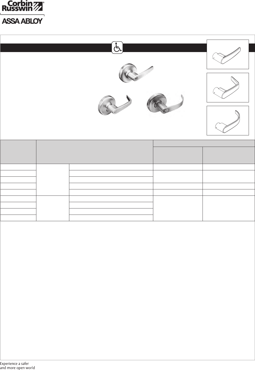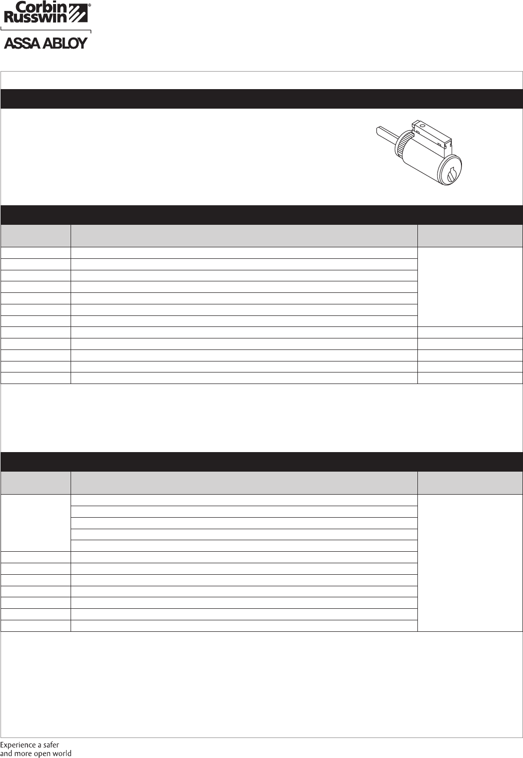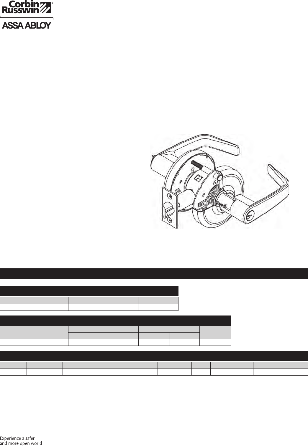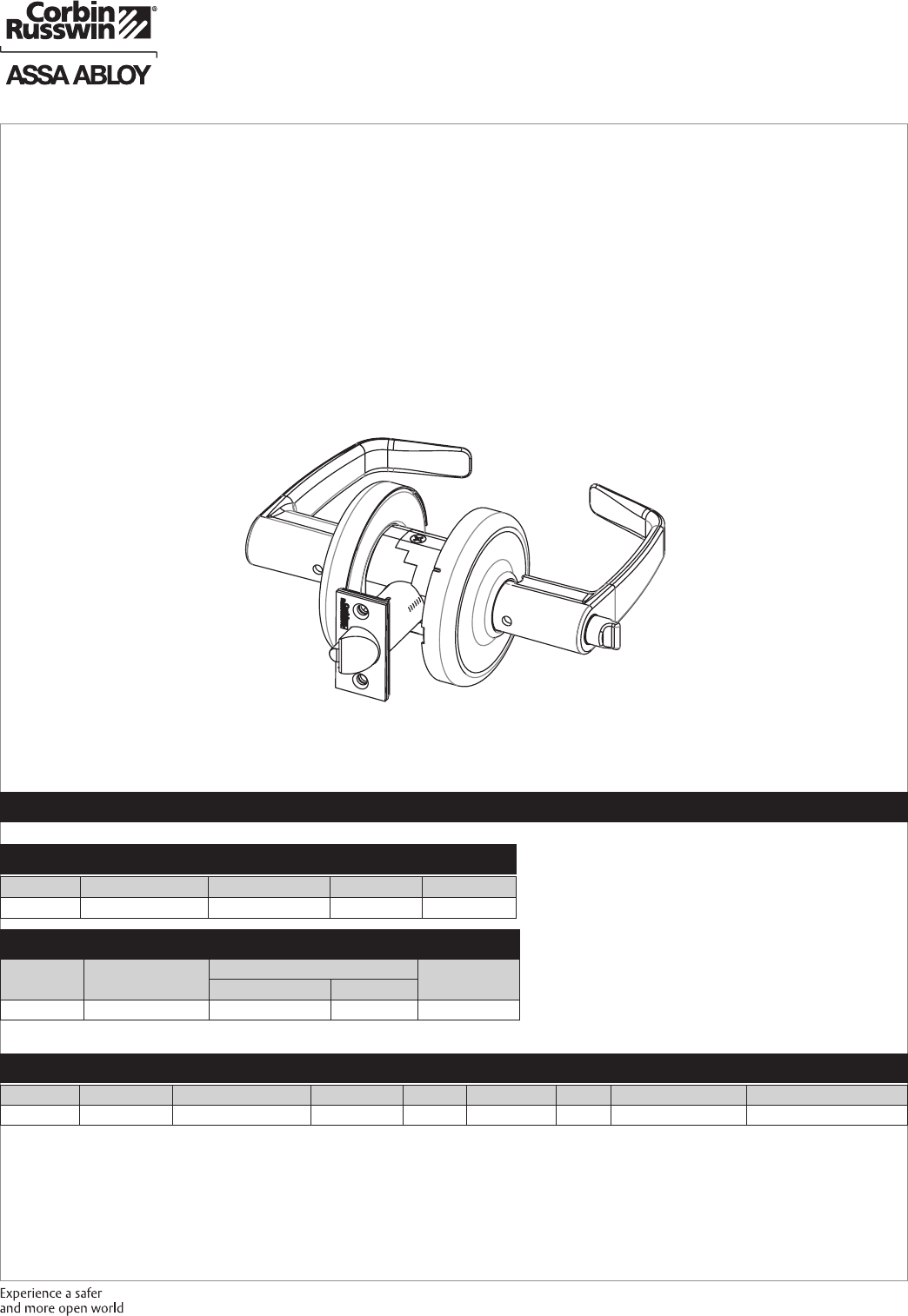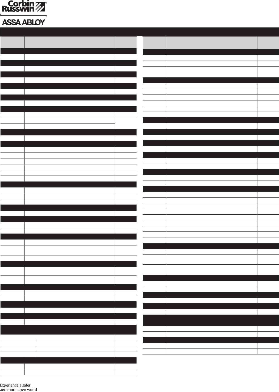 These materials are protected under US copyright laws. All contents current at time of publication. Corbin Russwin Inc., an ASSA ABLOY Group company reserves the right to change availability of any item in this