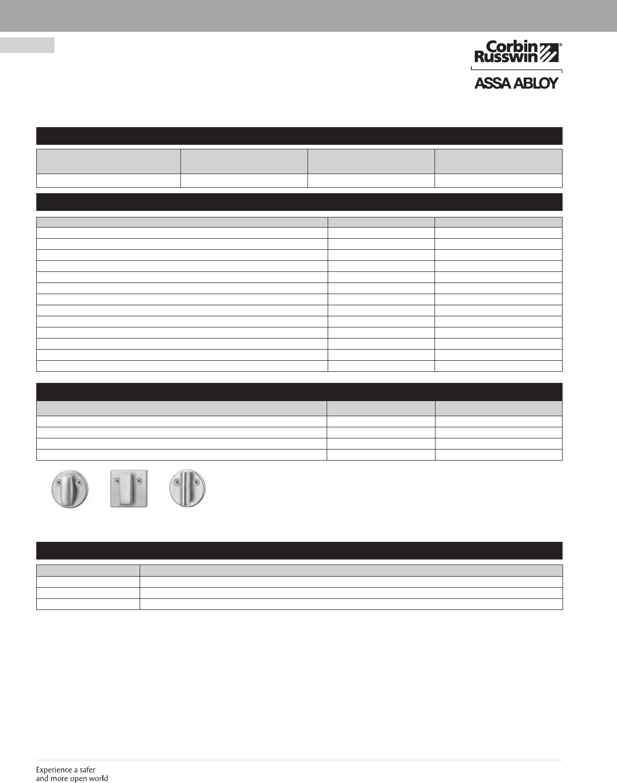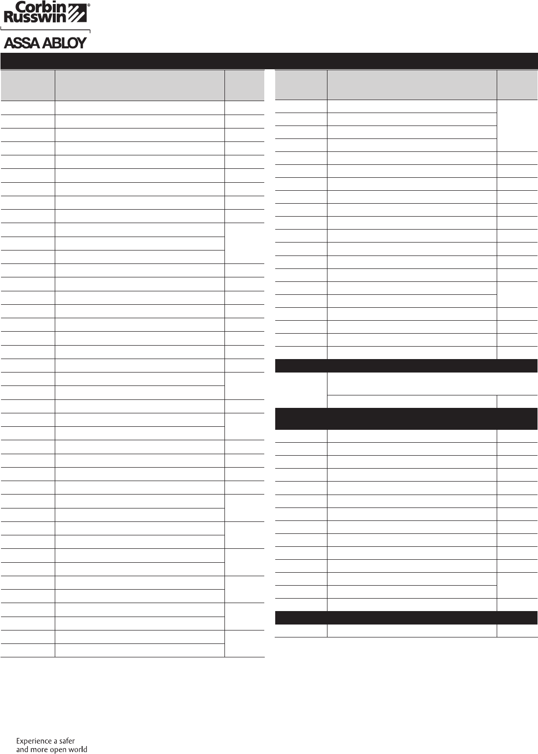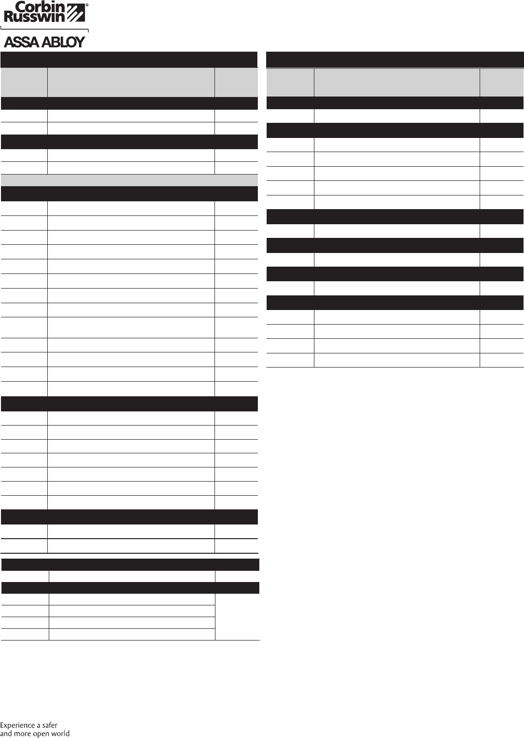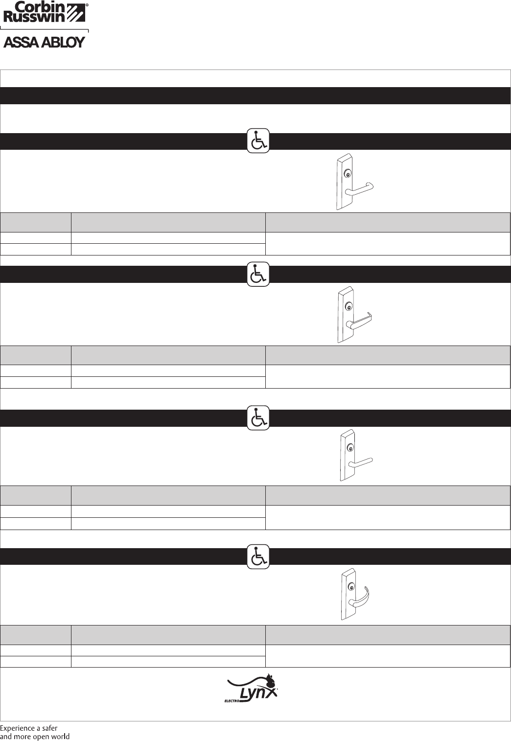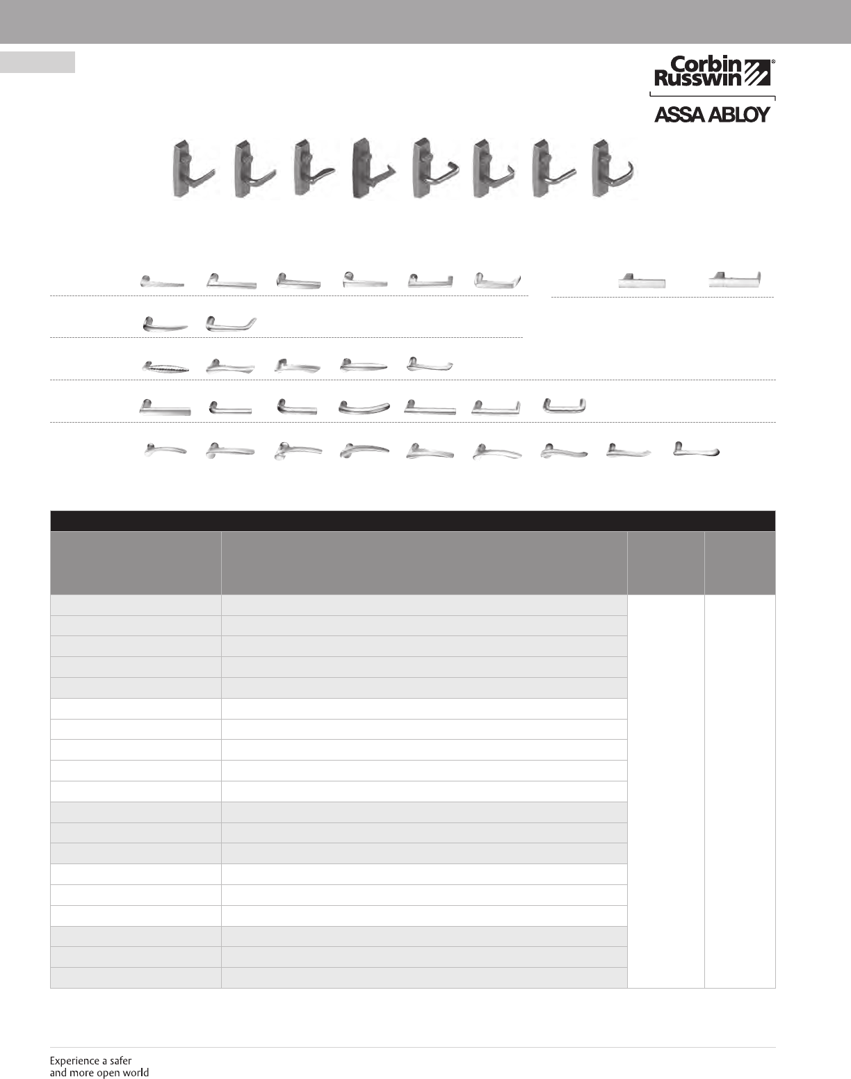 These materials are protected under US copyright laws. All contents current at time of publication. Corbin Russwin Inc., an ASSA ABLOY Group company reserves the right to change availability of any item in this