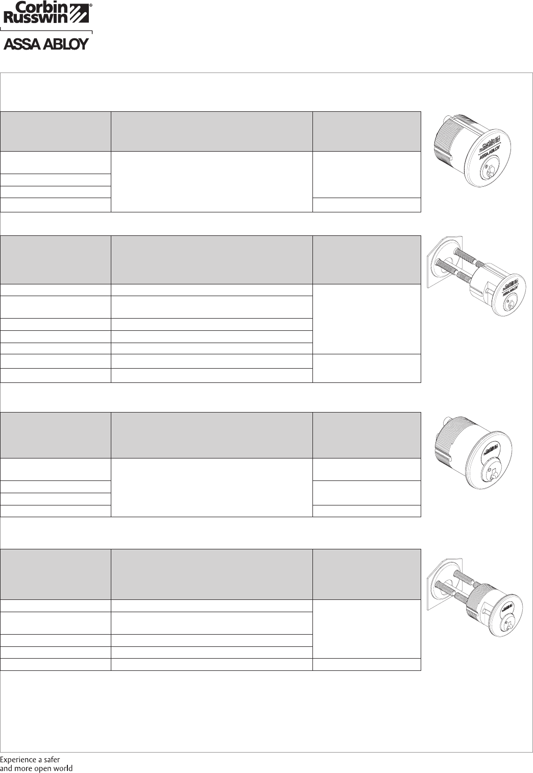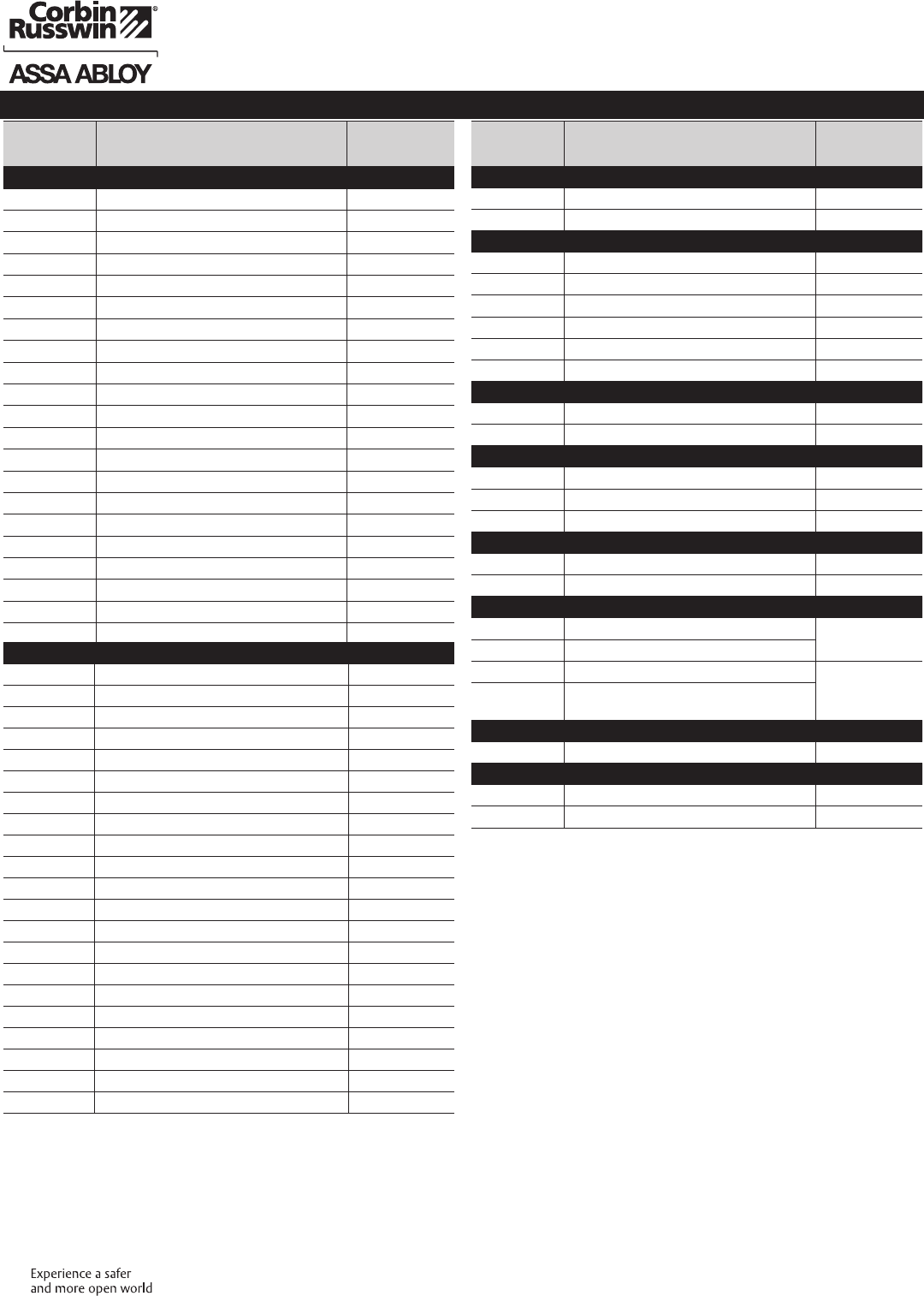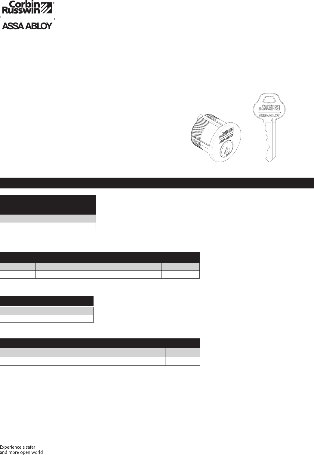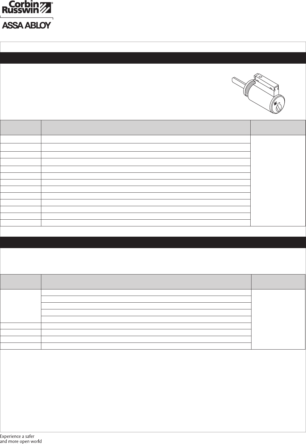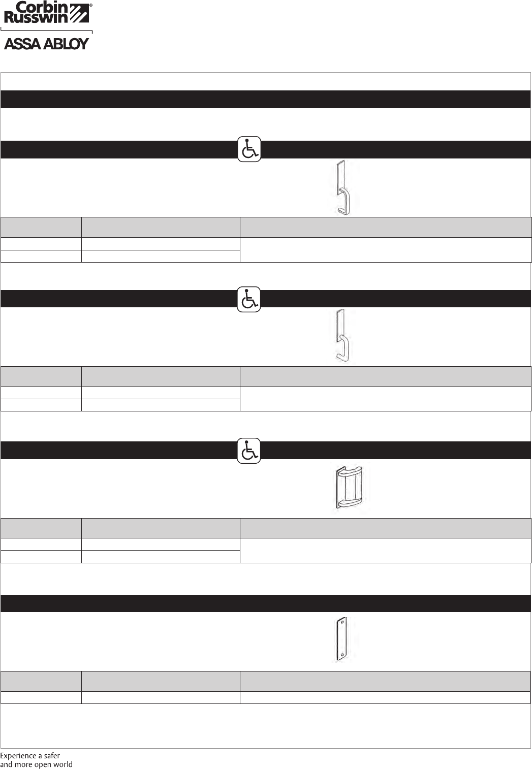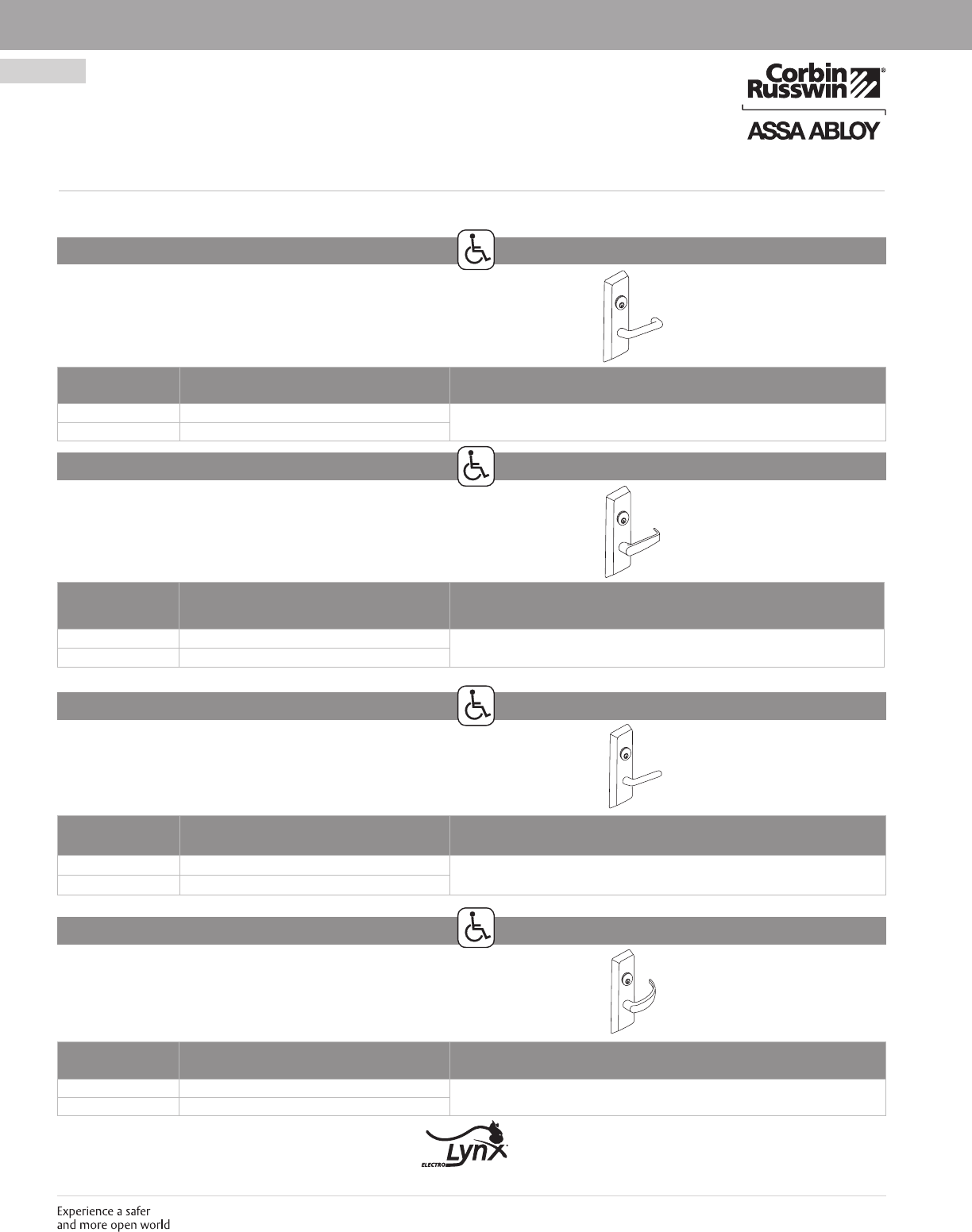 These materials are protected under US copyright laws. All contents current at time of publication. Corbin Russwin Inc., an ASSA ABLOY Group company reserves the right to change availability of any item in this