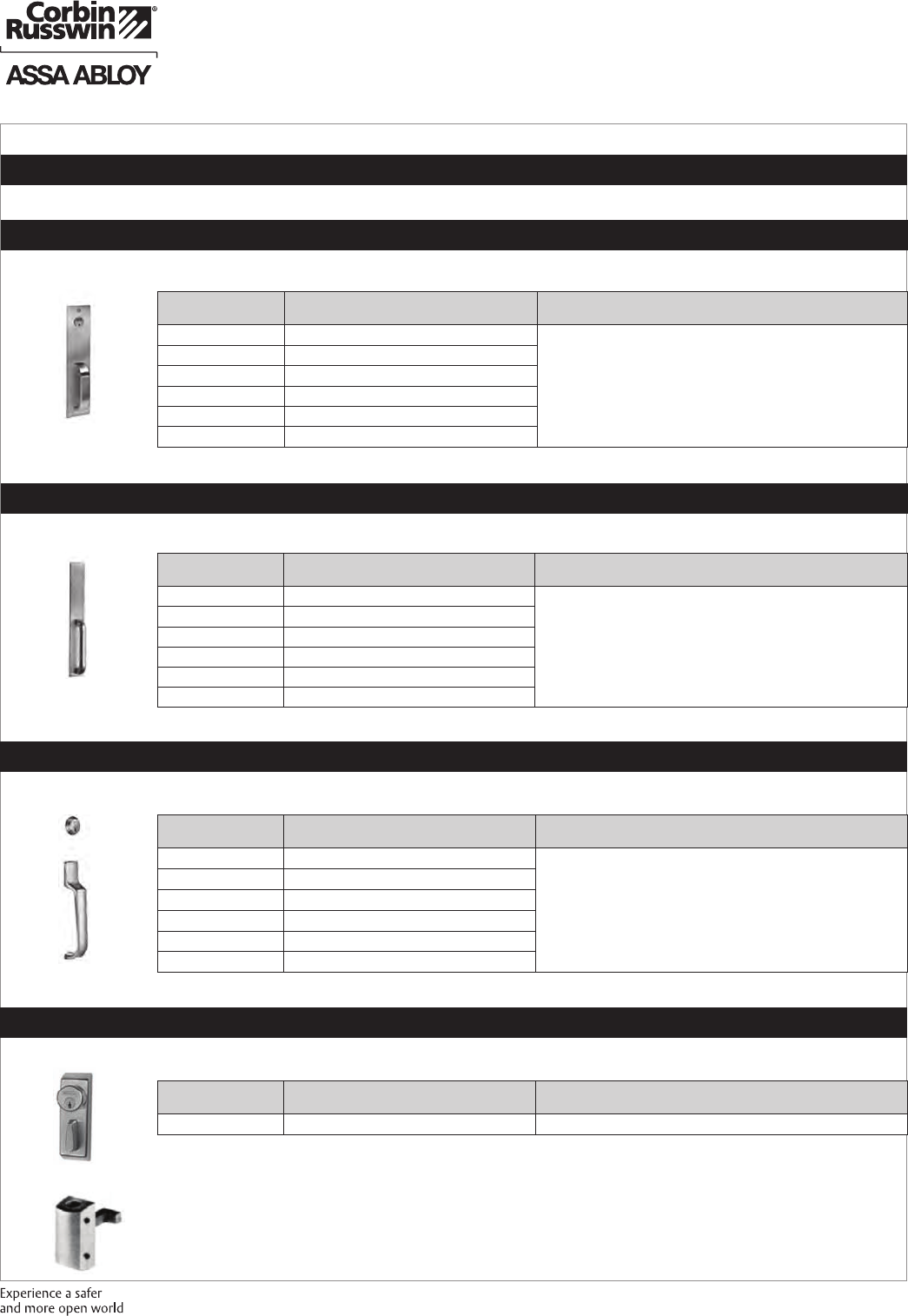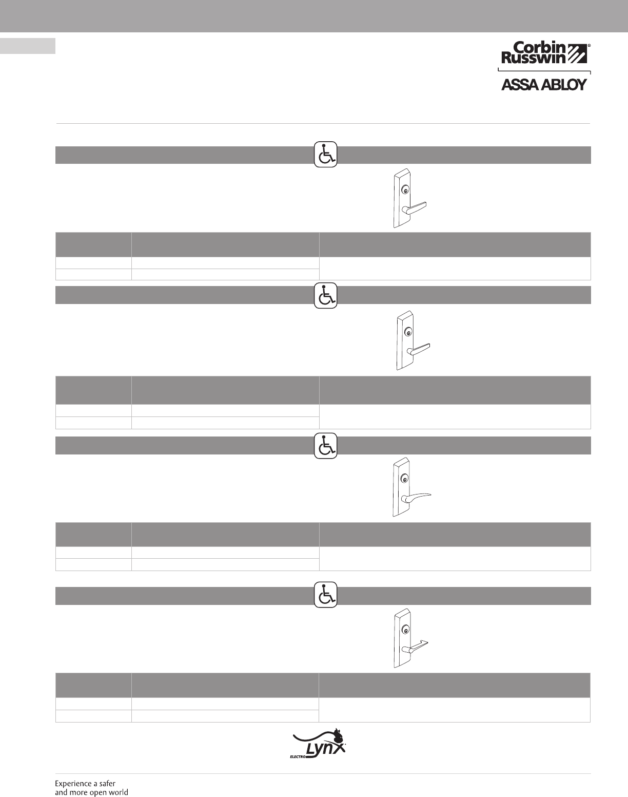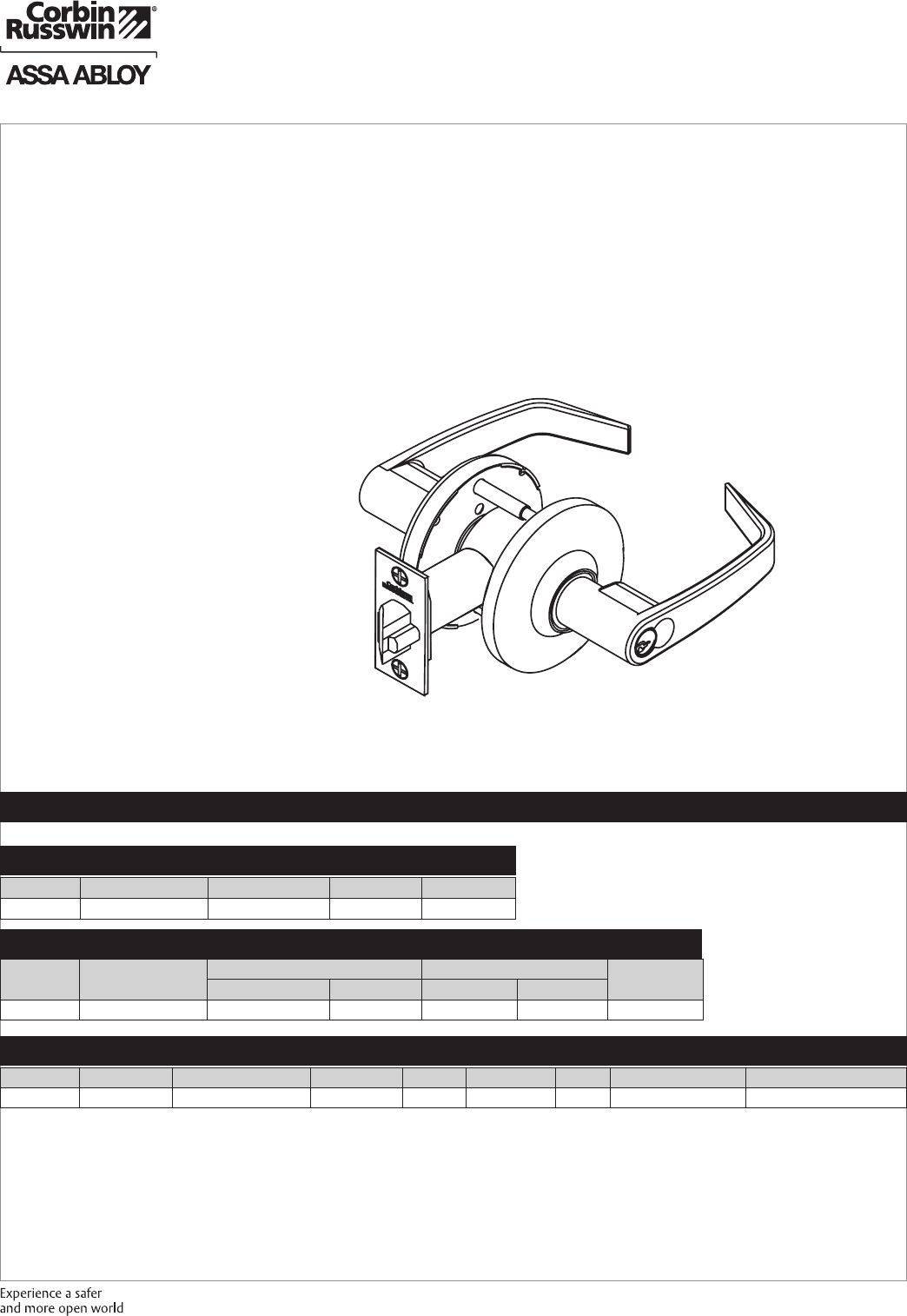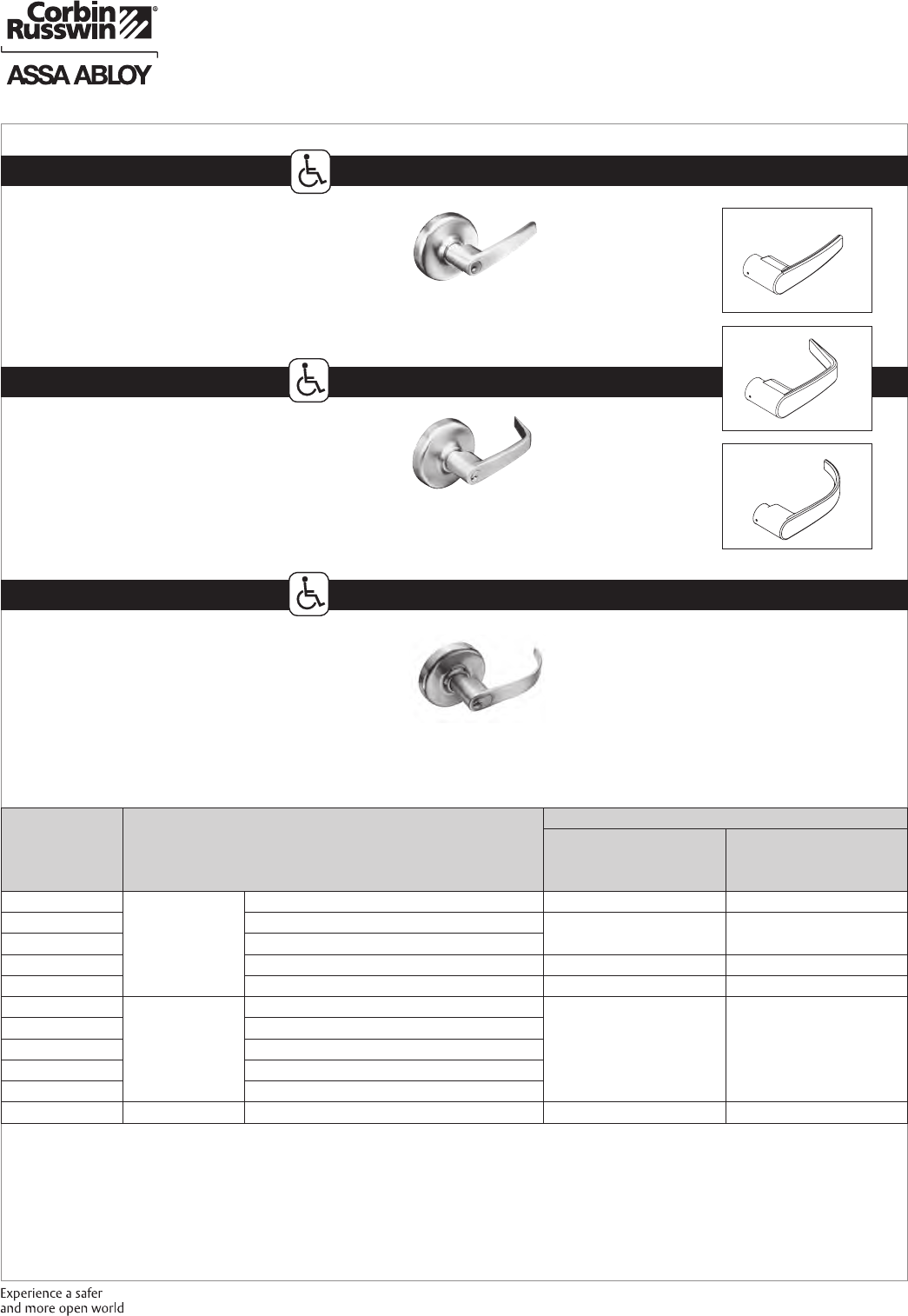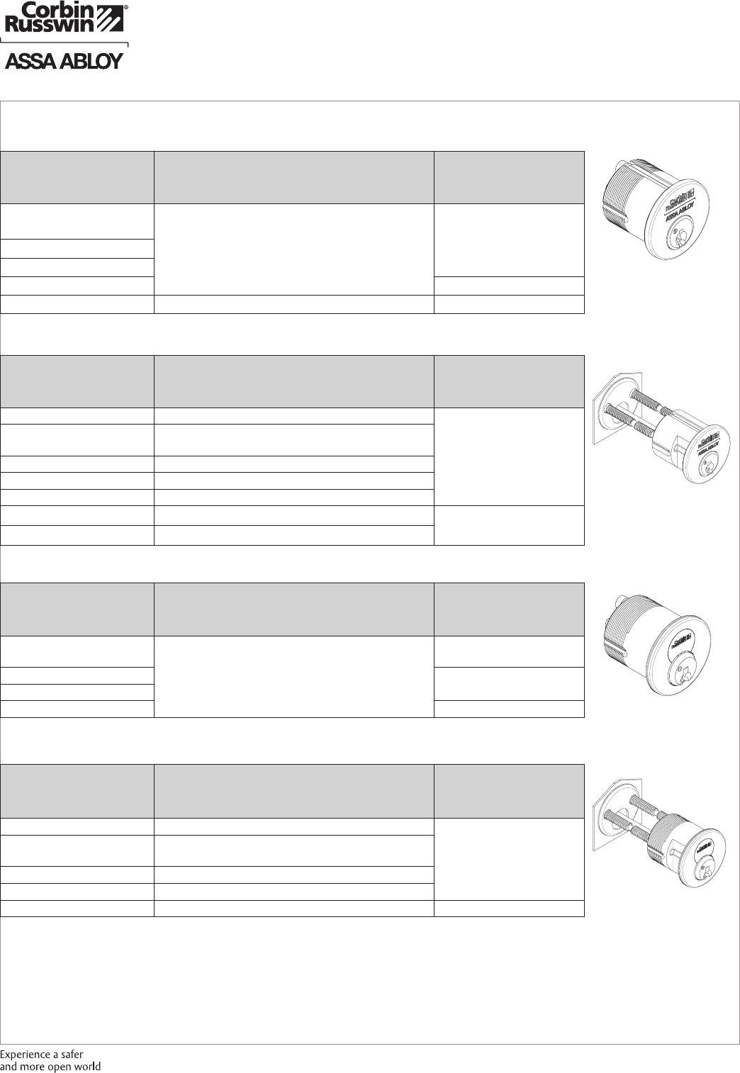 These materials are protected under US copyright laws. All contents current at time of publication. Corbin Russwin Inc., an ASSA ABLOY Group company reserves the right to change availability of any item in this