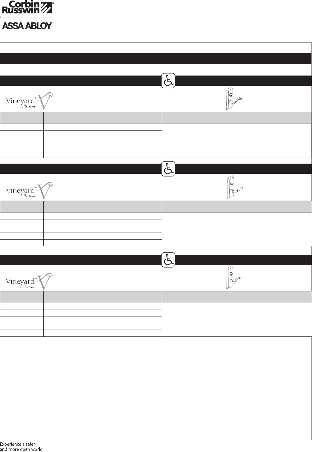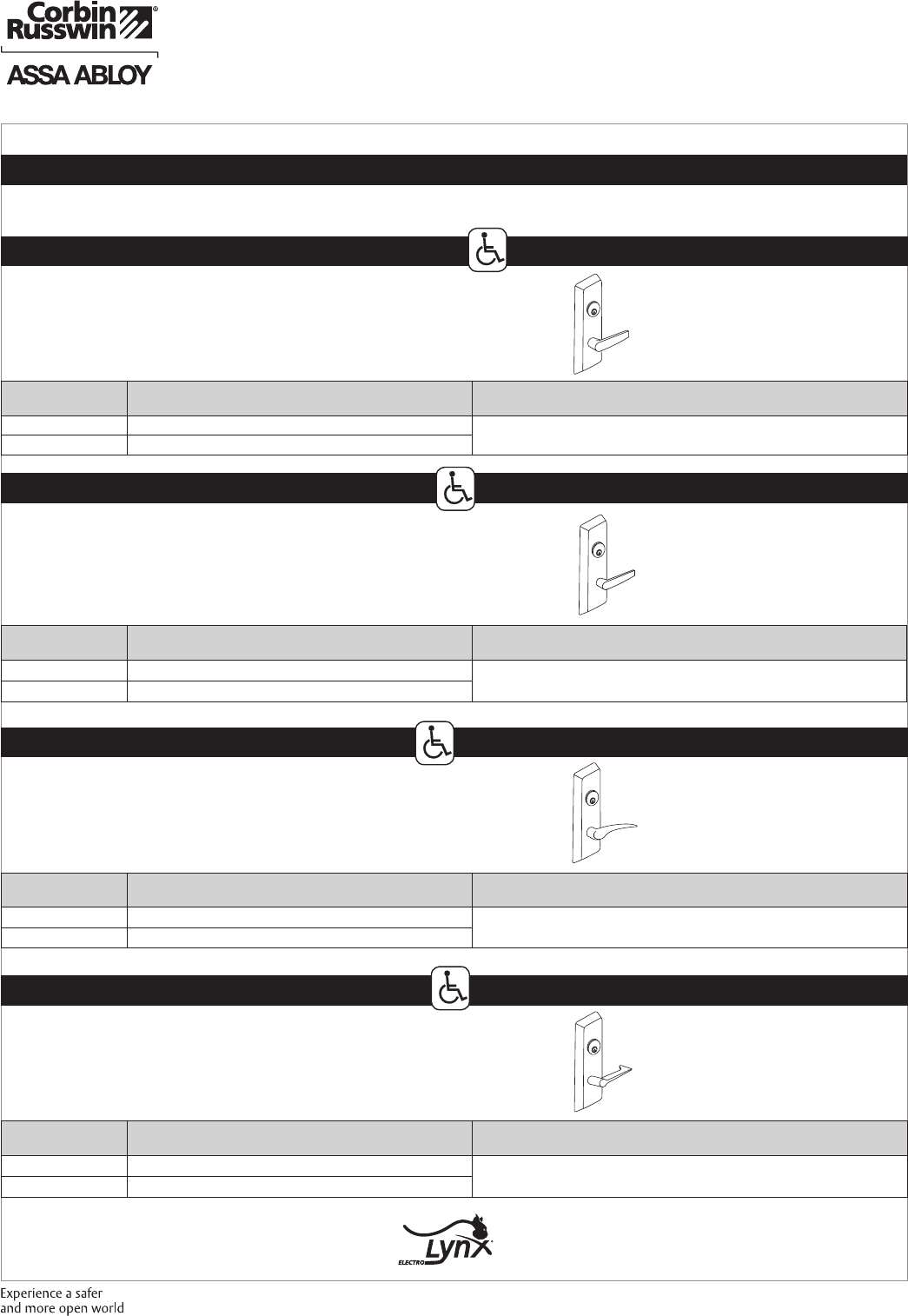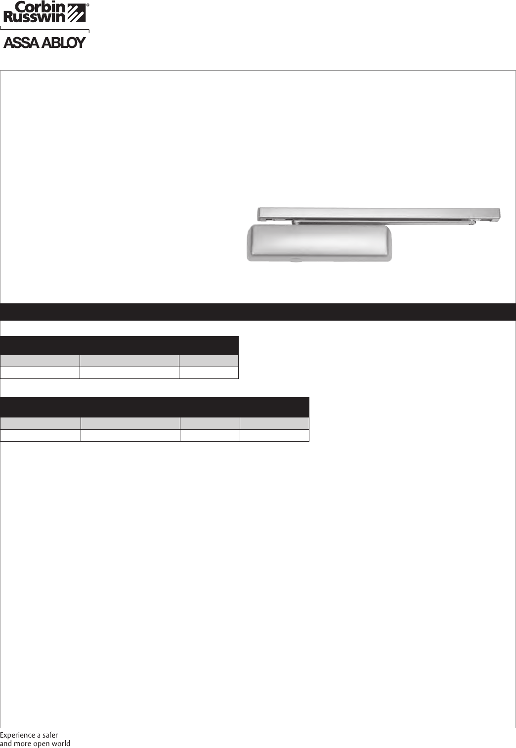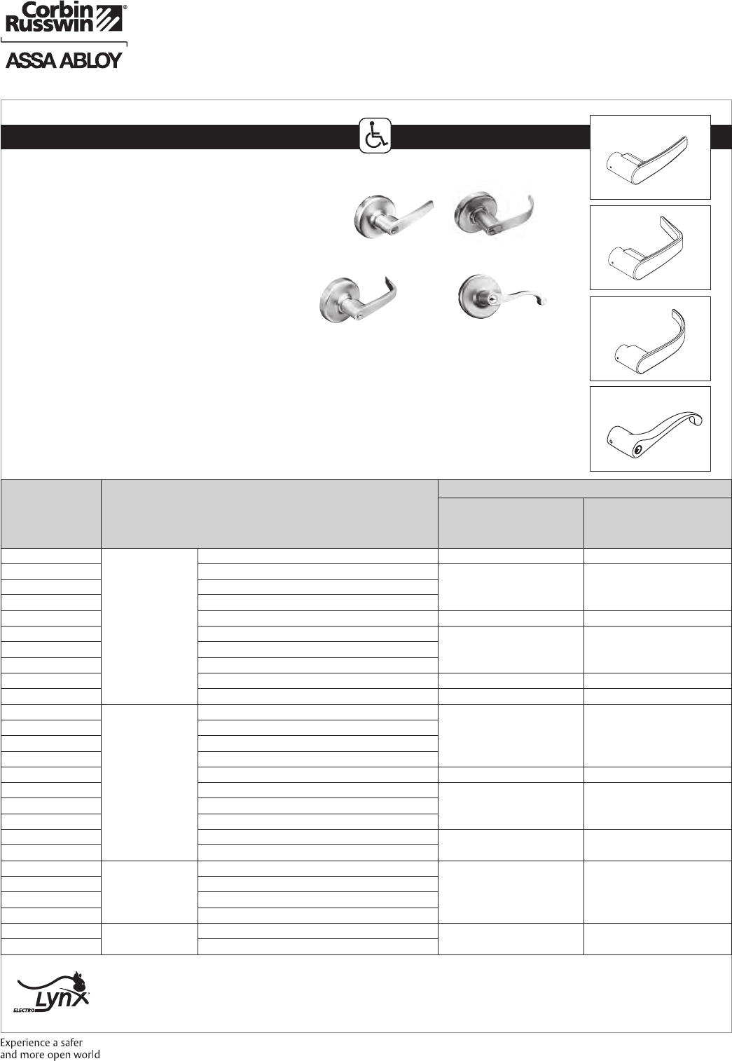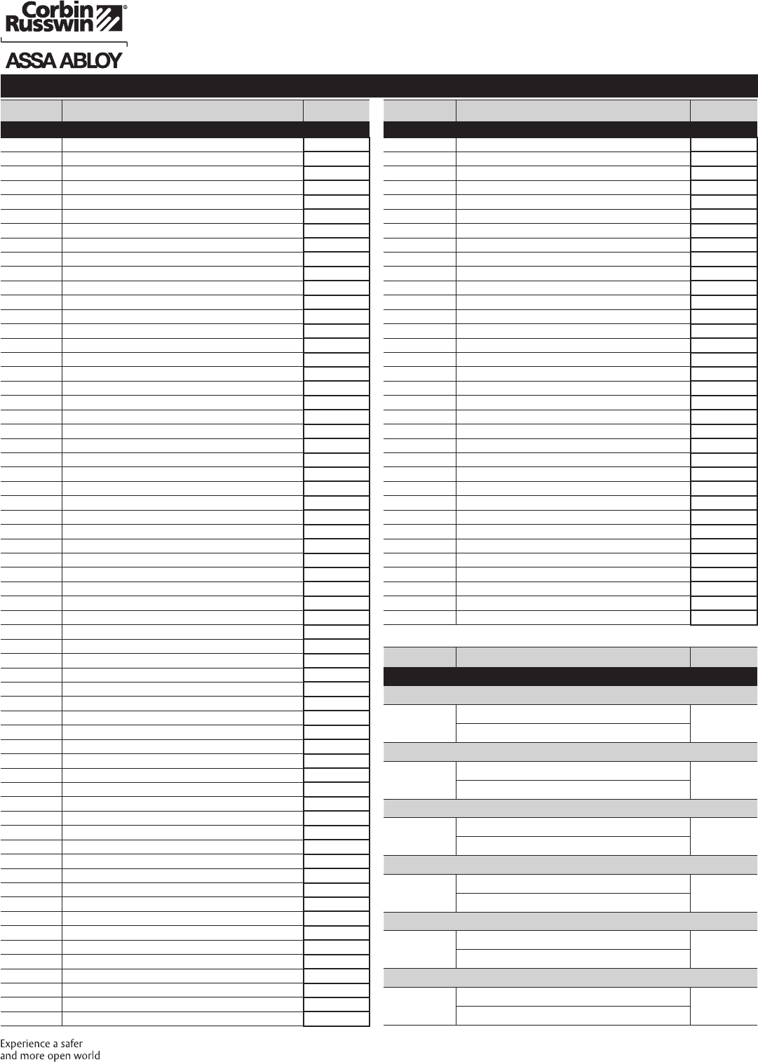 These materials are protected under US copyright laws. All contents current at time of publication. Corbin Russwin Inc., an ASSA ABLOY Group company reserves the right to change availability of any item in this