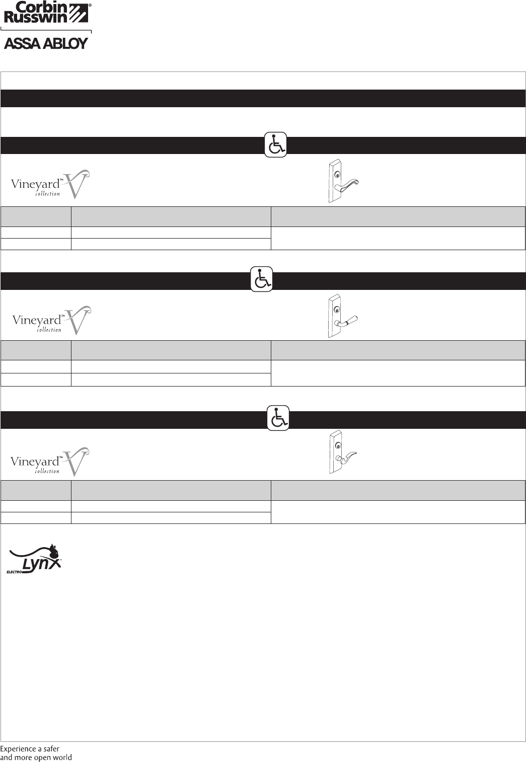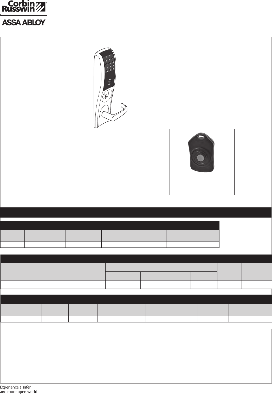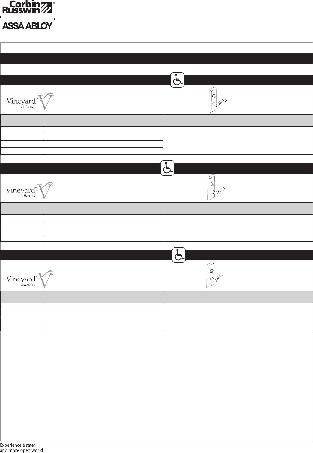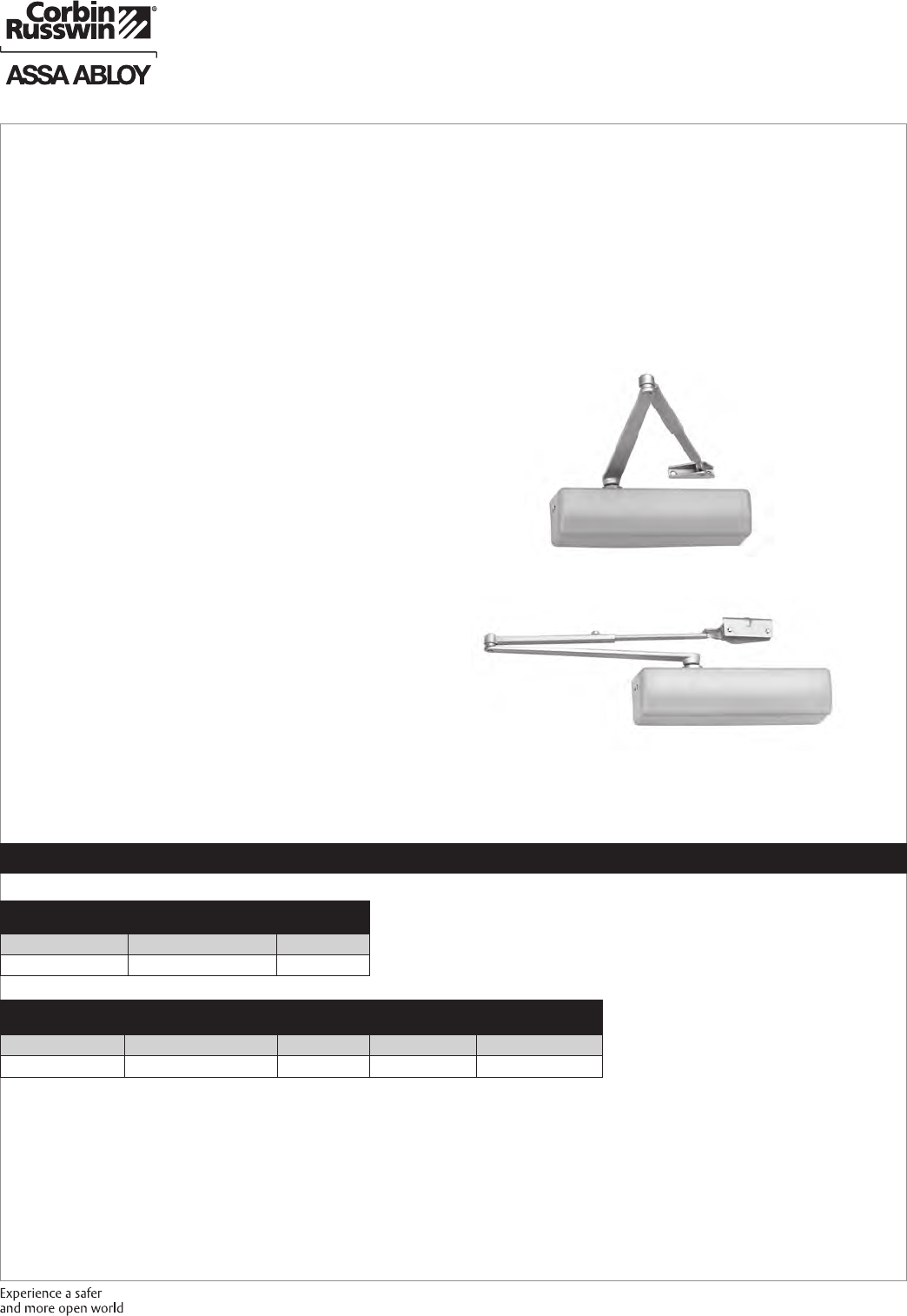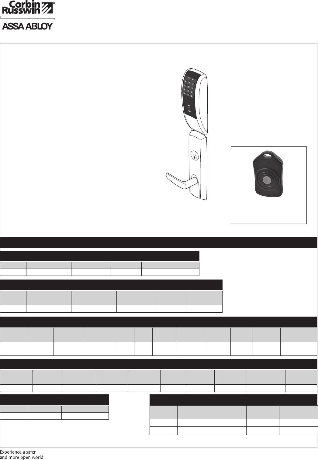 These materials are protected under US copyright laws. All contents current at time of publication. Corbin Russwin Inc., an ASSA ABLOY Group company reserves the right to change availability of any item in this