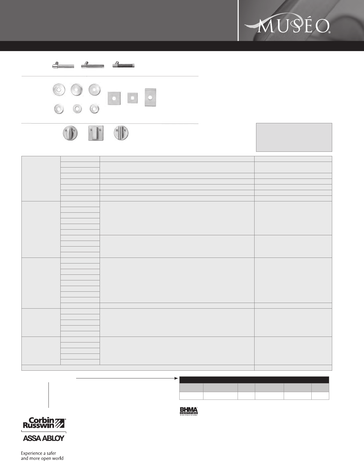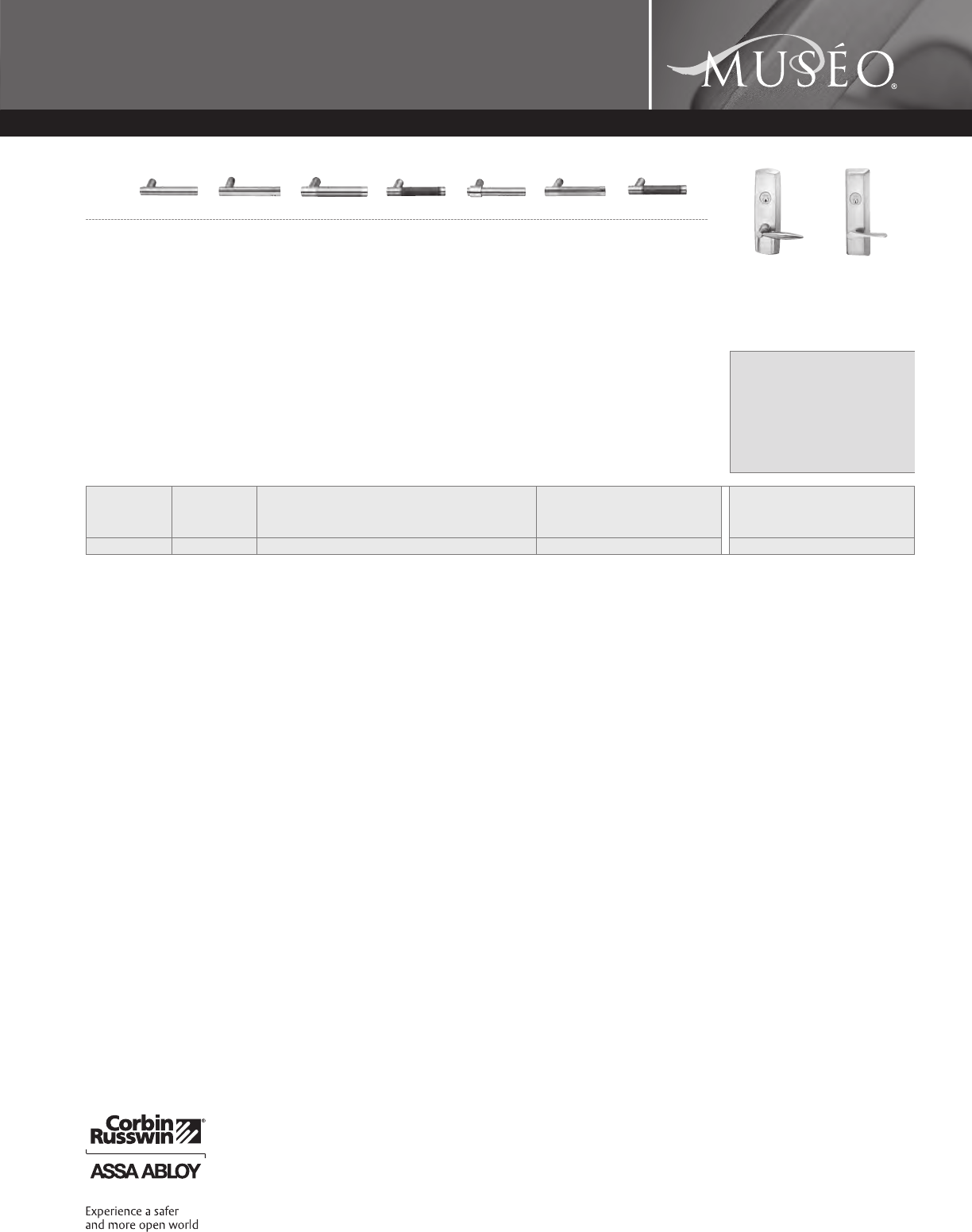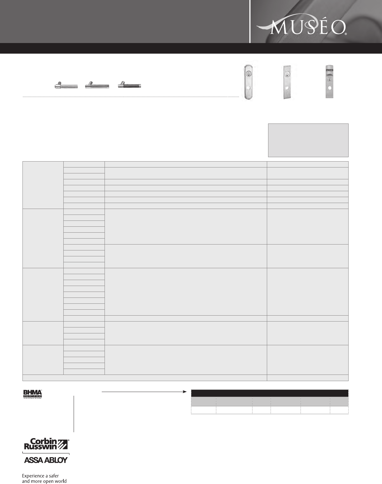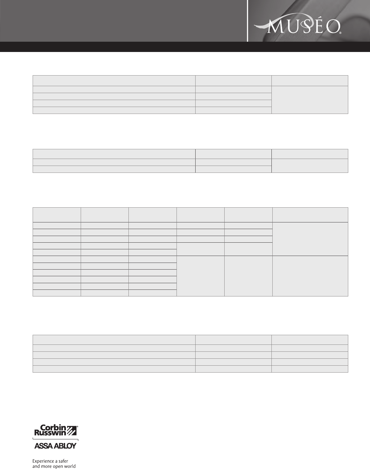 Corbin Russwin and Design®, Corbin®, Russwin®, and Design® Access 800®, Muséo®, and SecureBolt® are registered trademarks of Corbin Russwin, Inc., an ASSA ABLOY Group company.