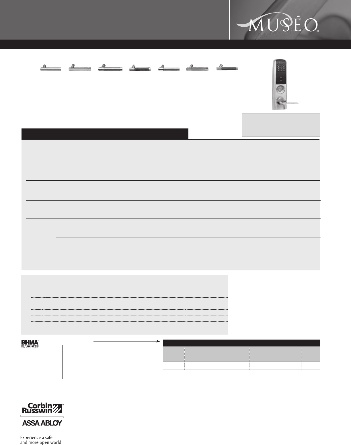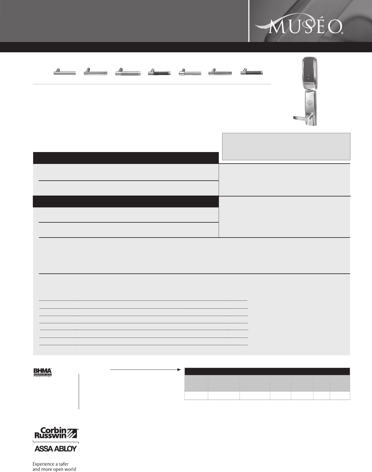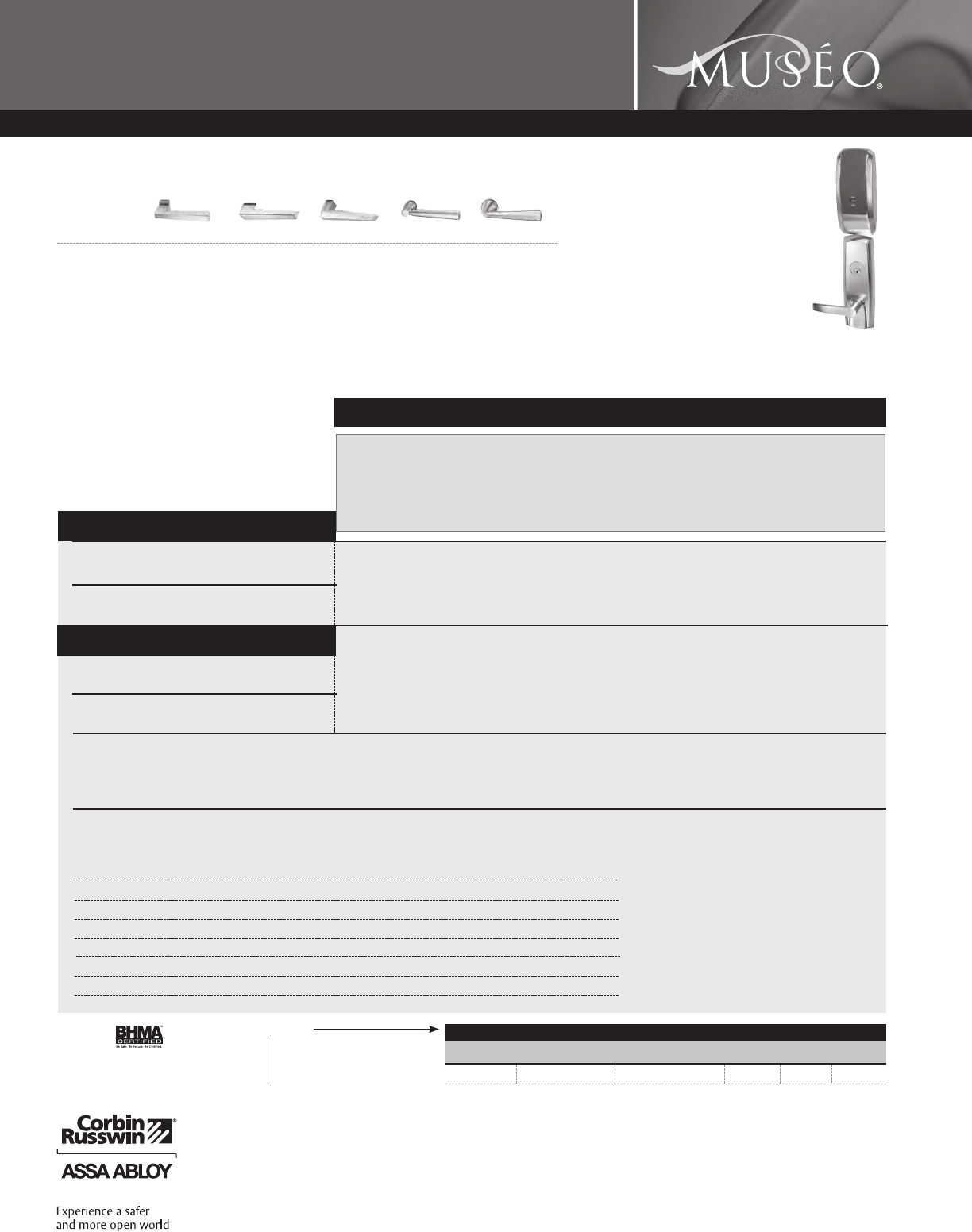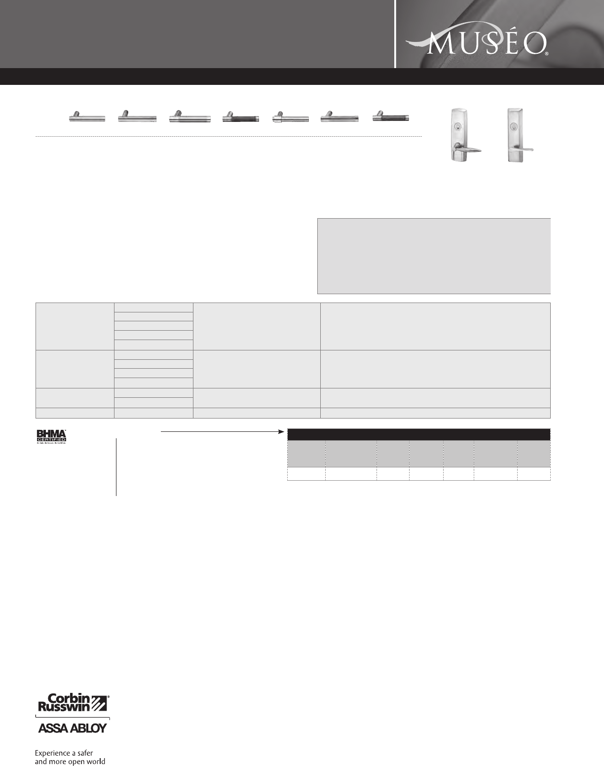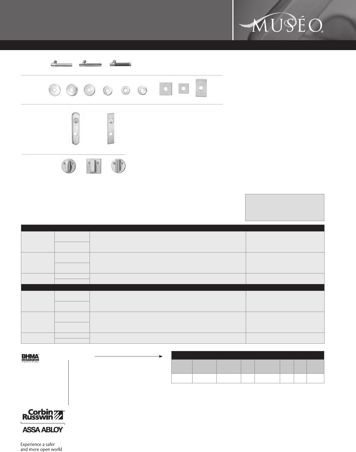 Corbin Russwin and Design®, Corbin®, Russwin®, and Design® Access 800®, Muséo®, and SecureBolt® are registered trademarks of Corbin Russwin, Inc., an ASSA ABLOY Group company.